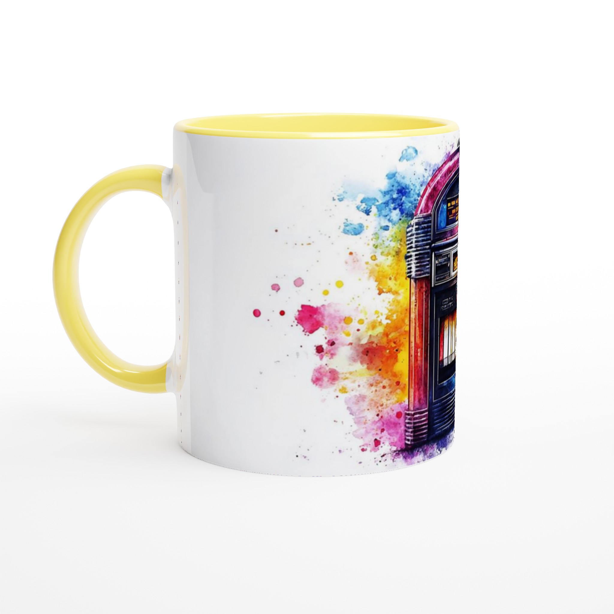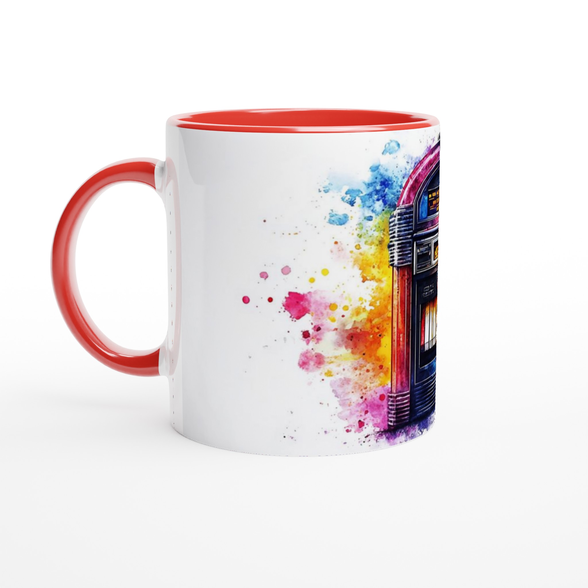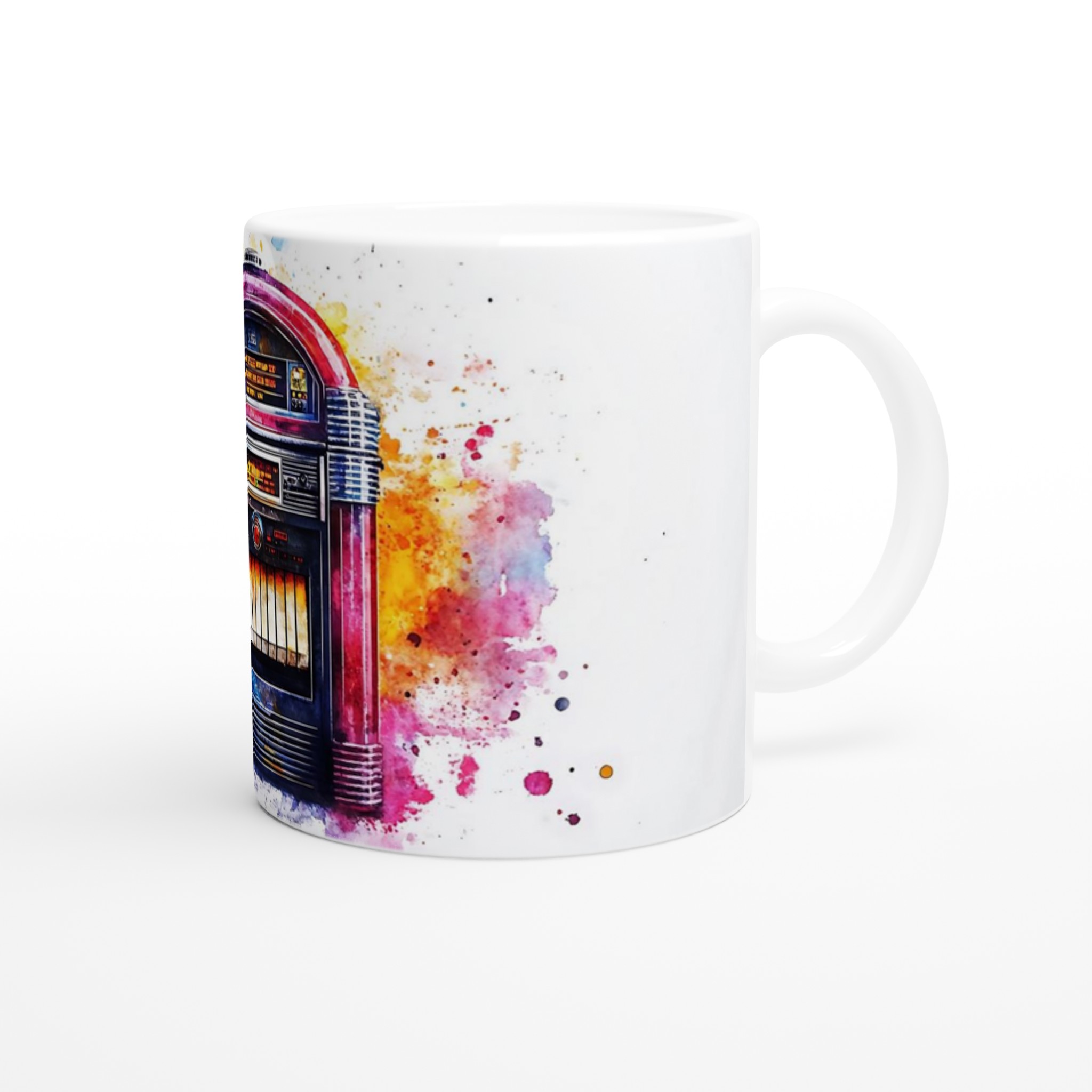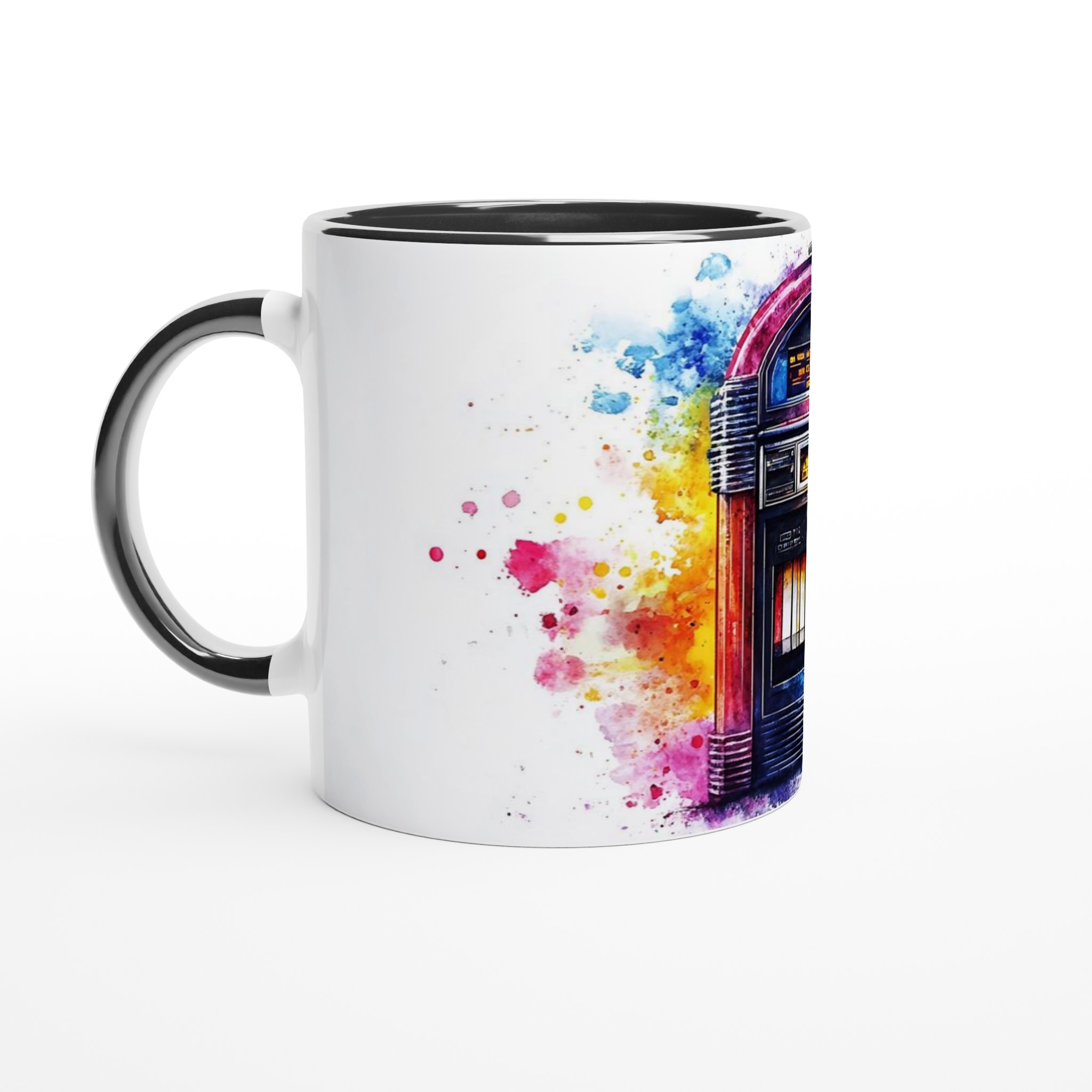 Retro Jukebox Watercolor Splash – Vibrant Ceramic Mug 11oz, in your choice of seven radiant hues