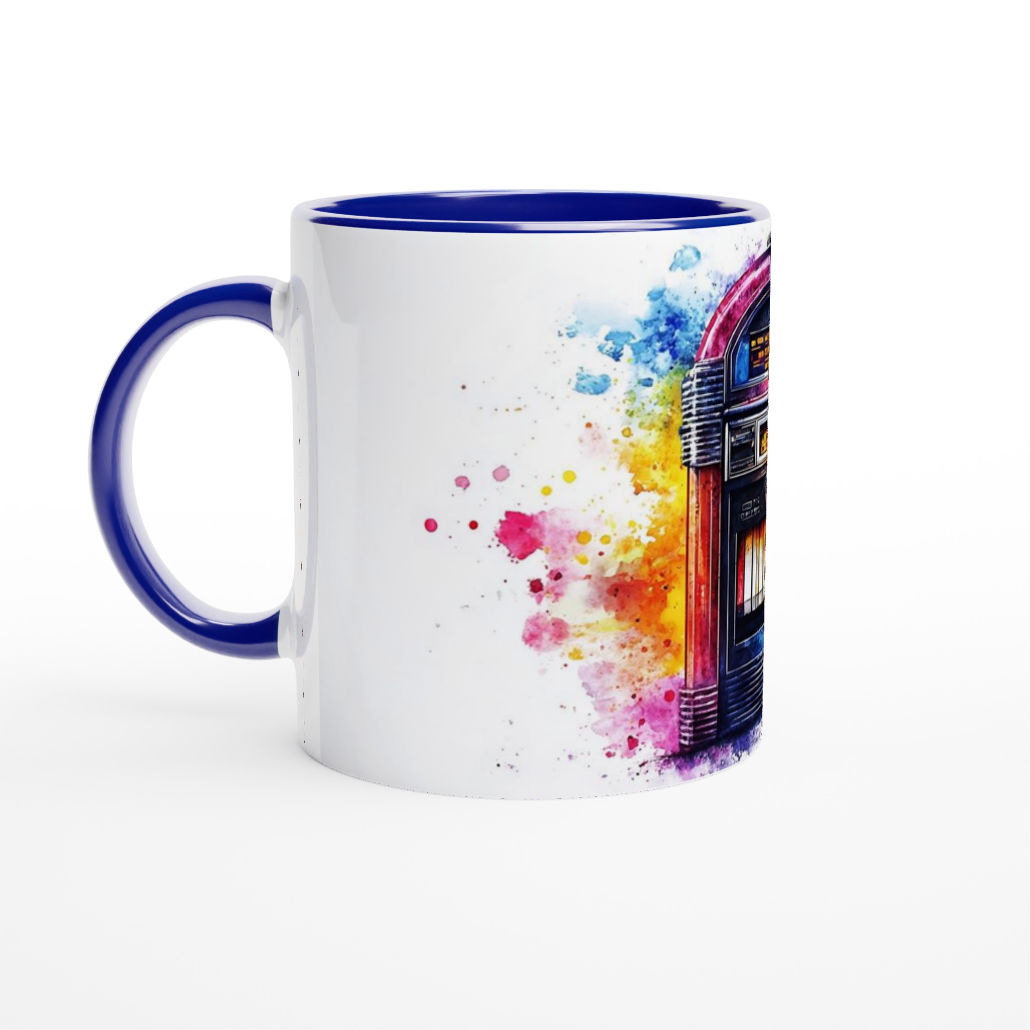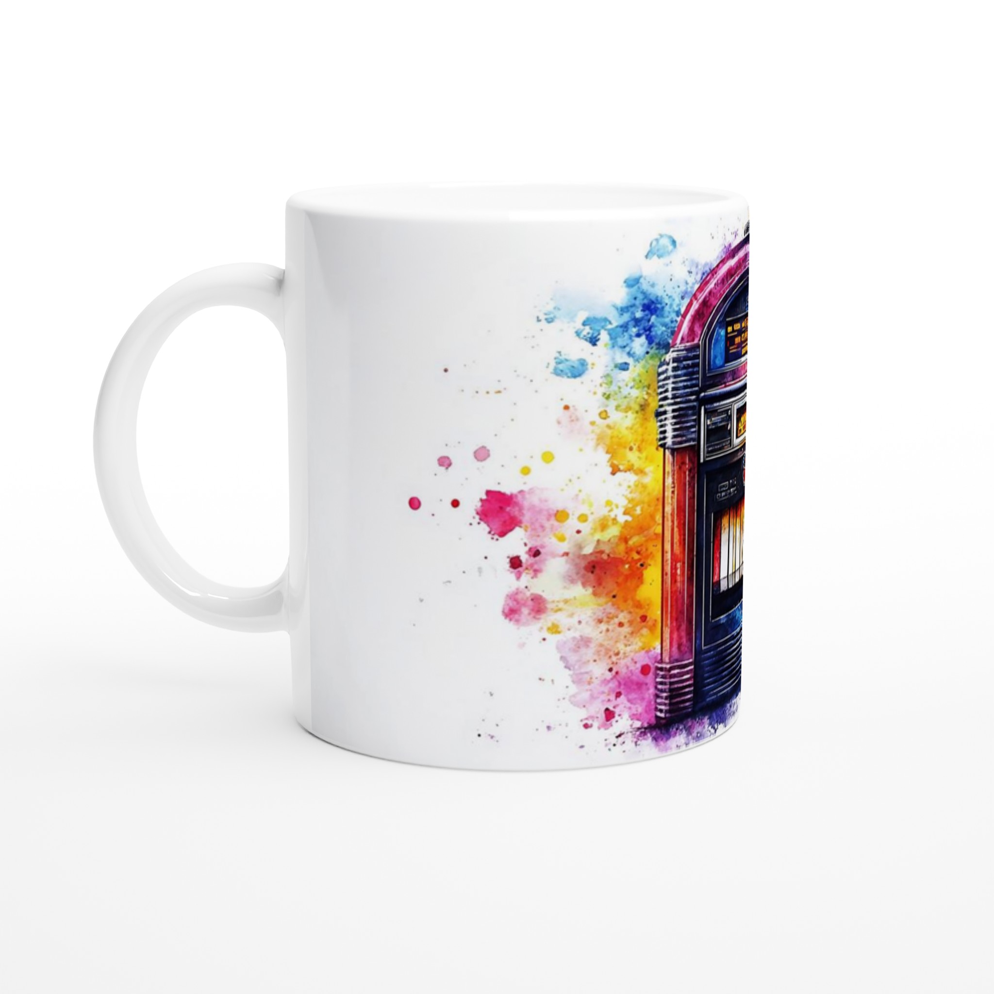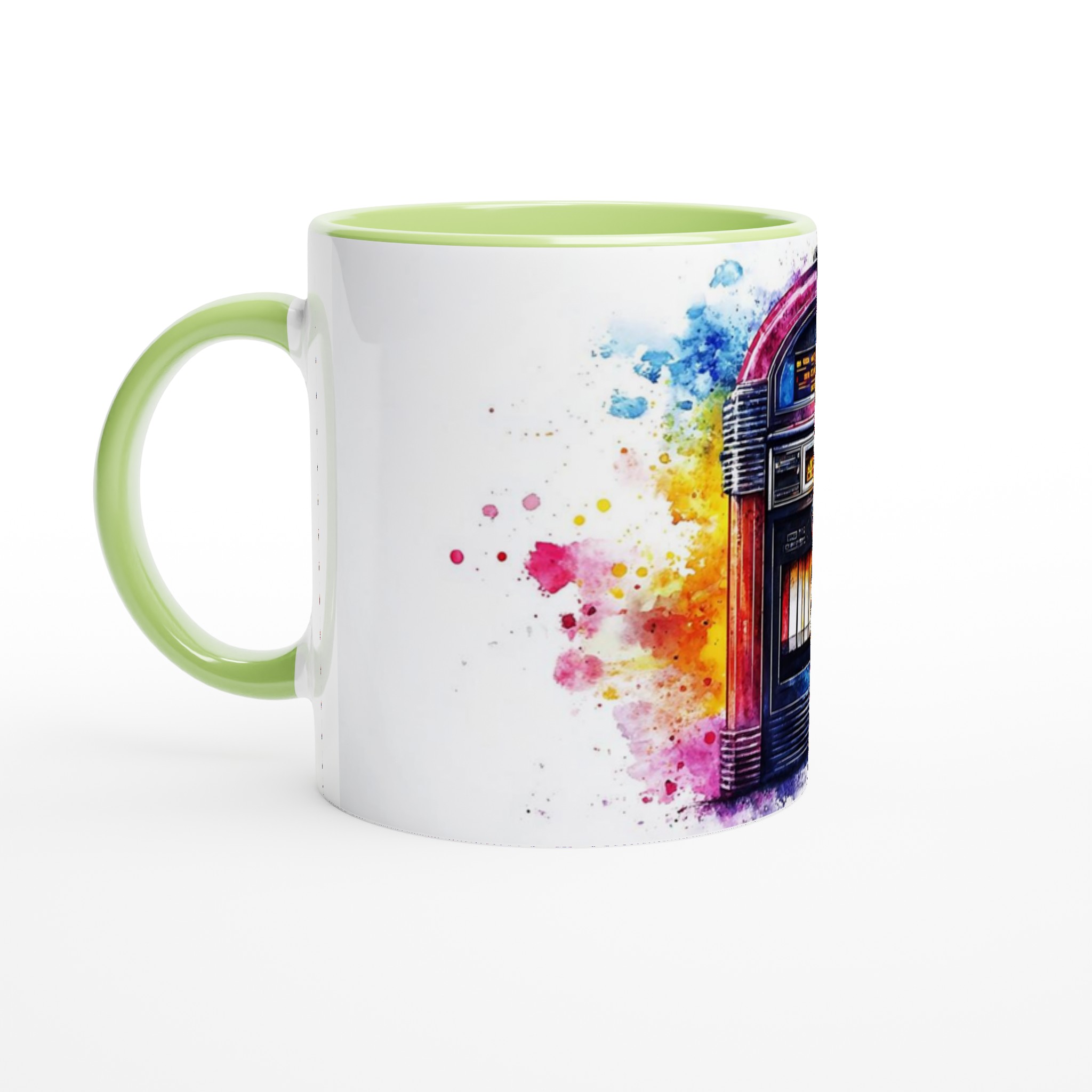 Retro Jukebox Watercolor Splash – Vibrant Ceramic Mug 11oz, in your choice of seven radiant hues