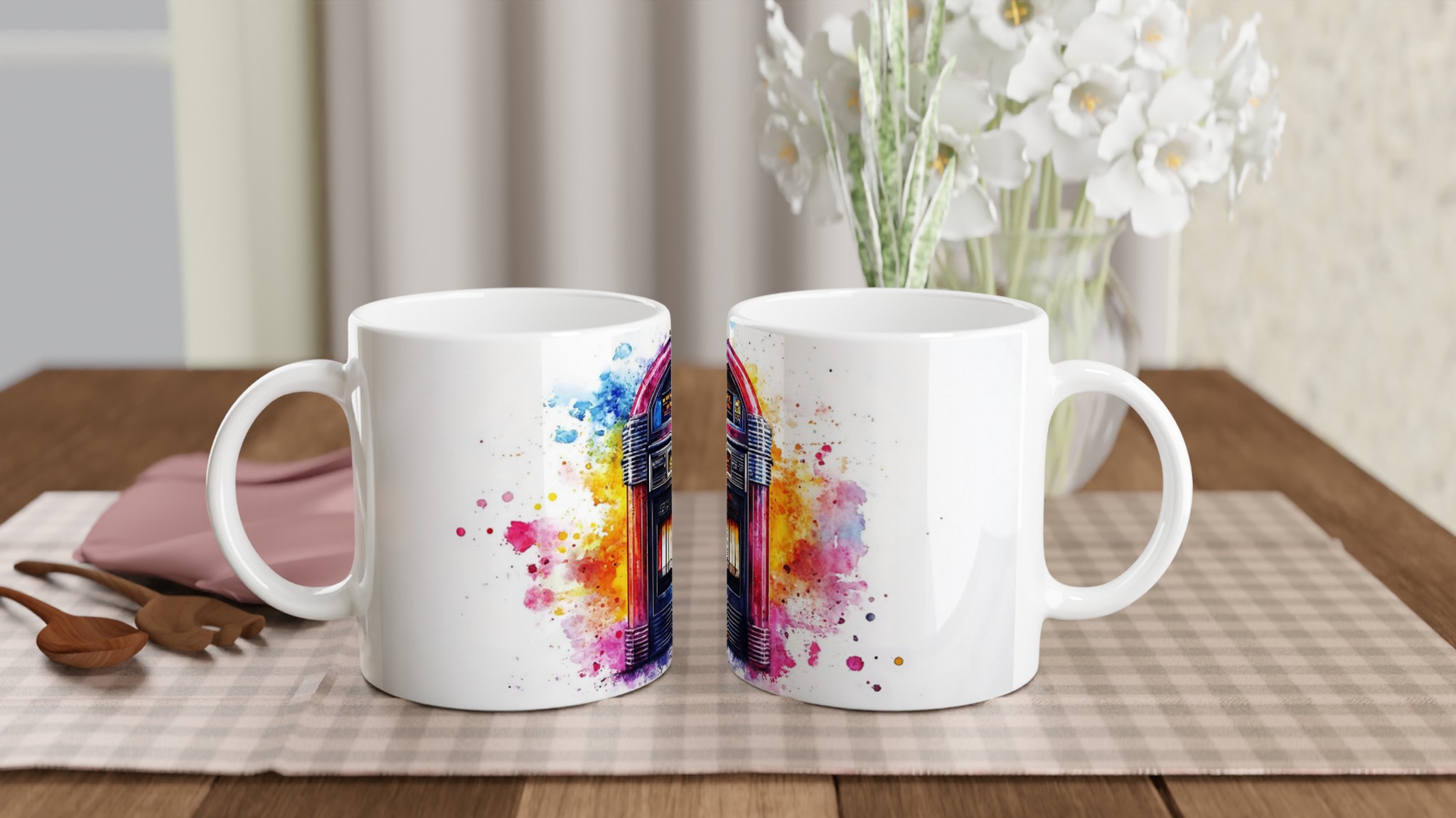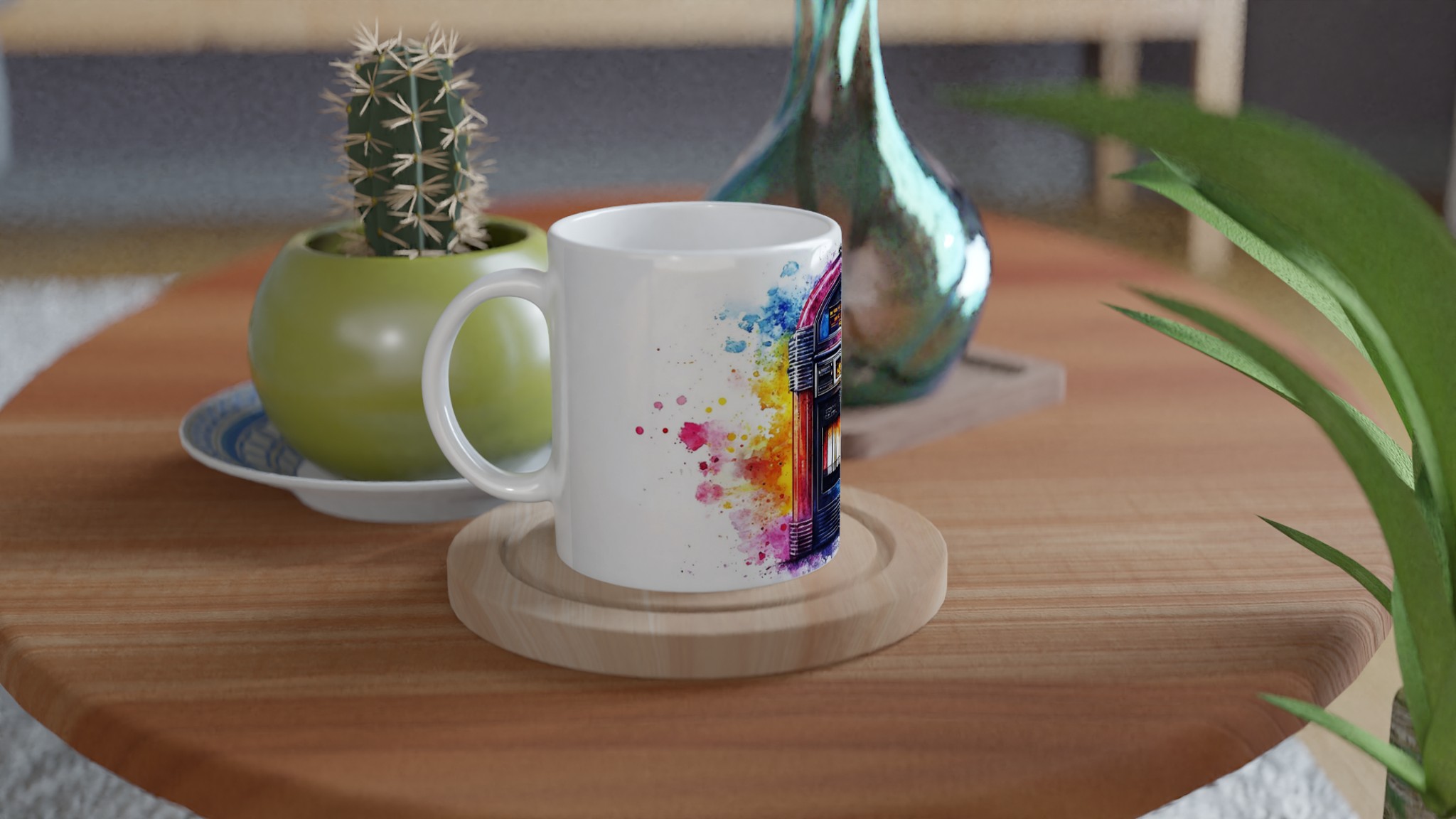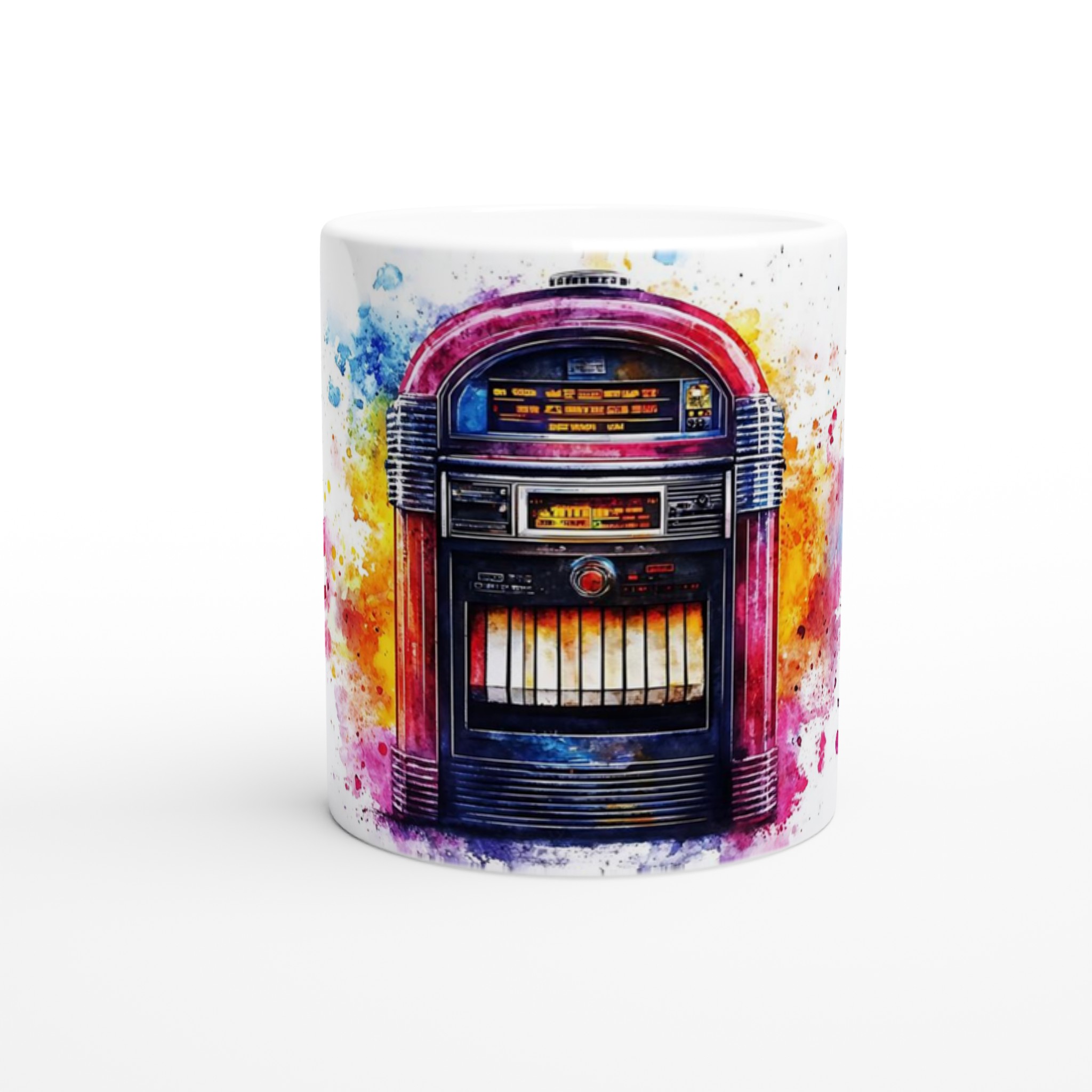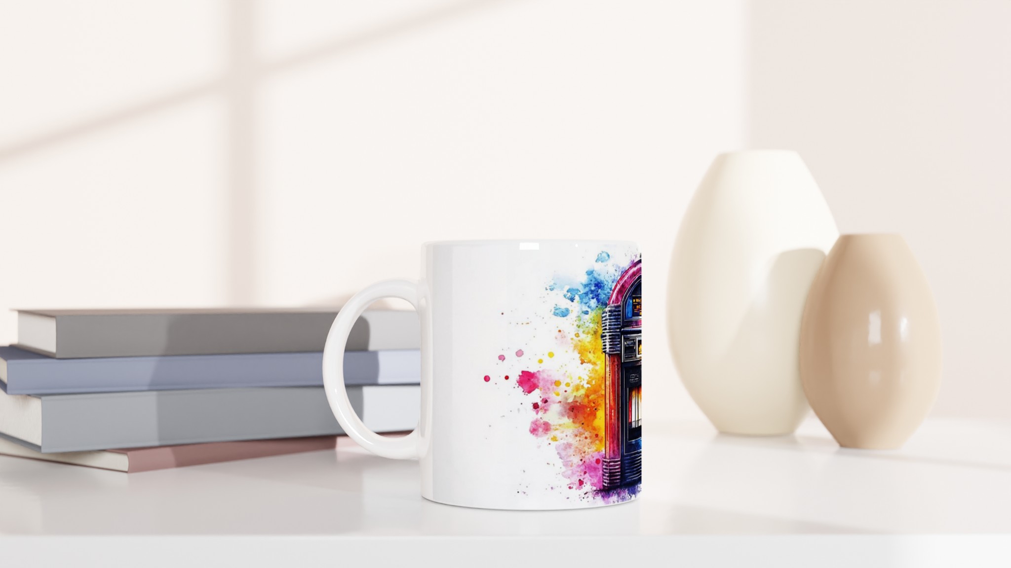 Retro Jukebox Watercolor Splash – Vibrant Ceramic Mug 11oz, in your choice of seven radiant hues