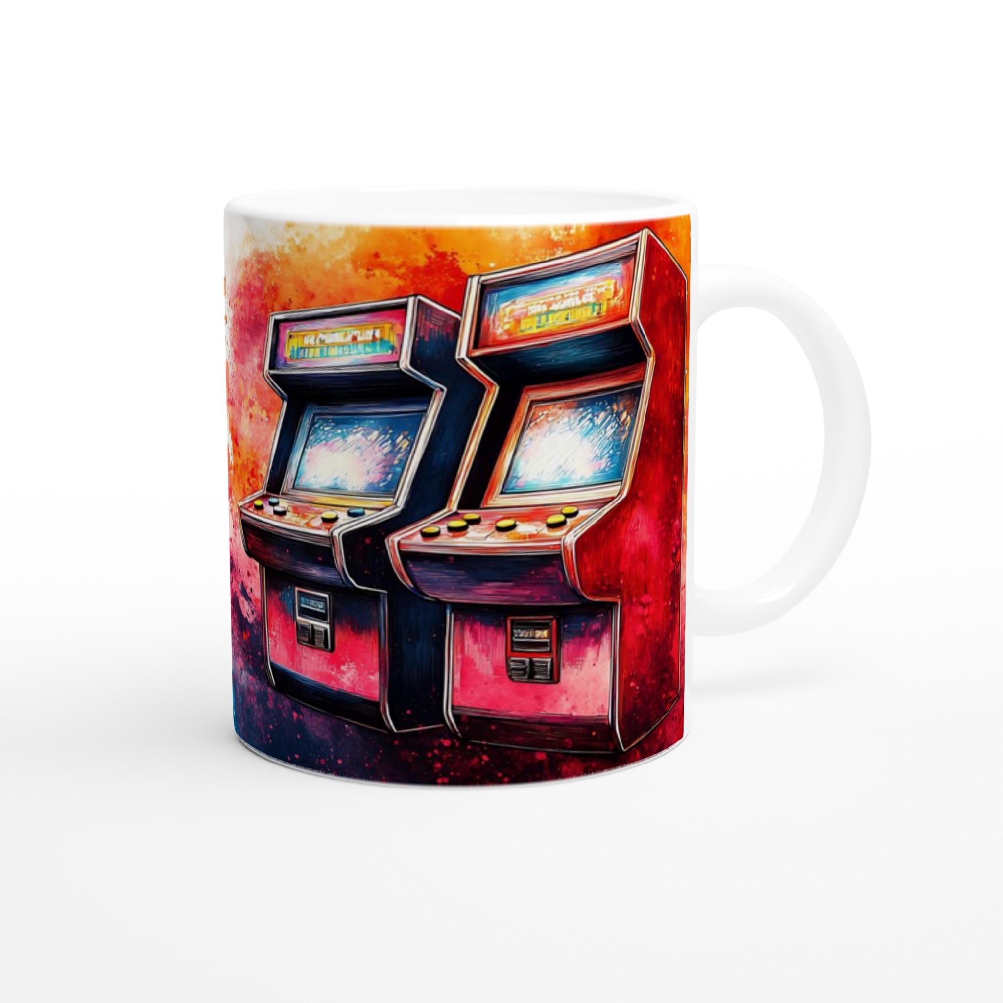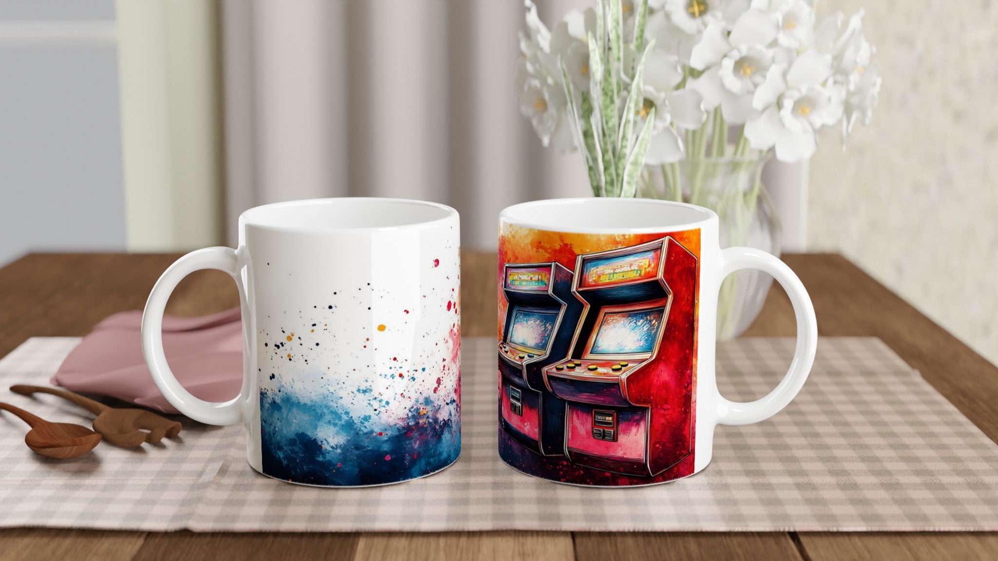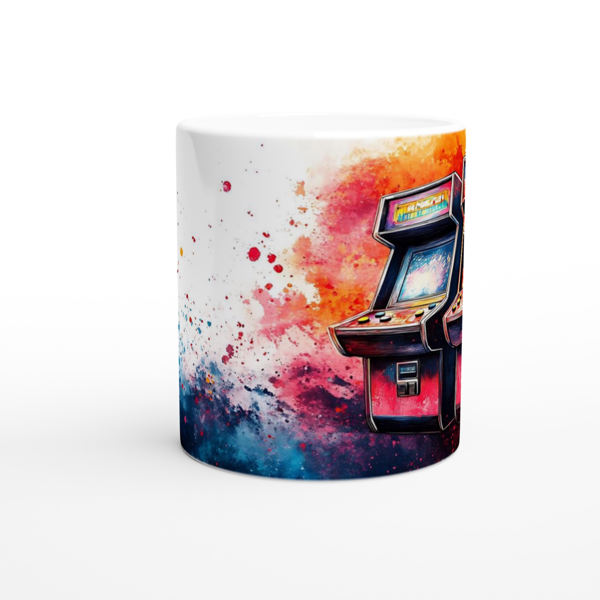 Retro Arcade Splash – Ceramic Mug 11oz for Gamers & Art Lovers, in 7 Vibrant Colors!