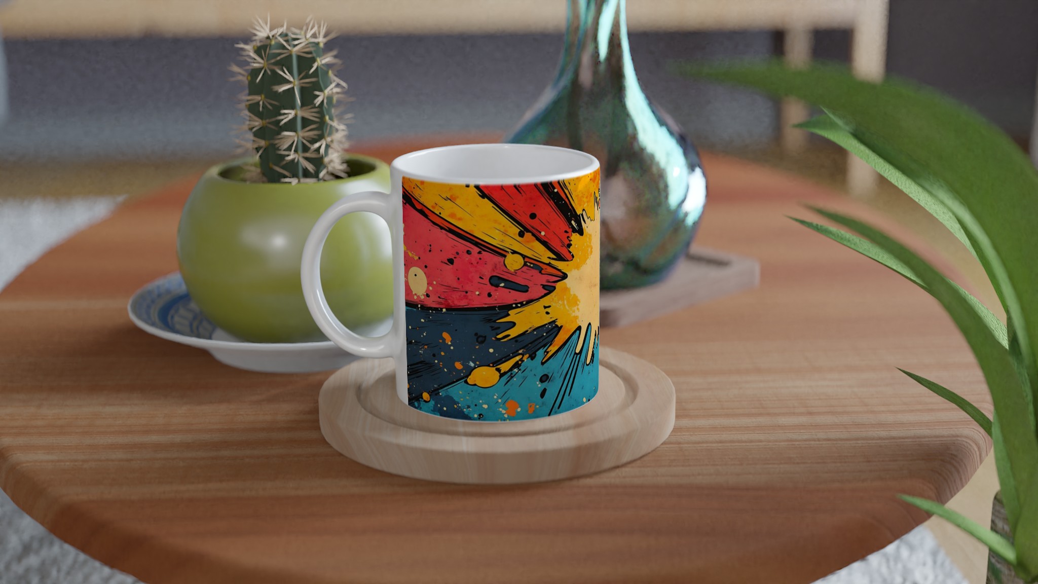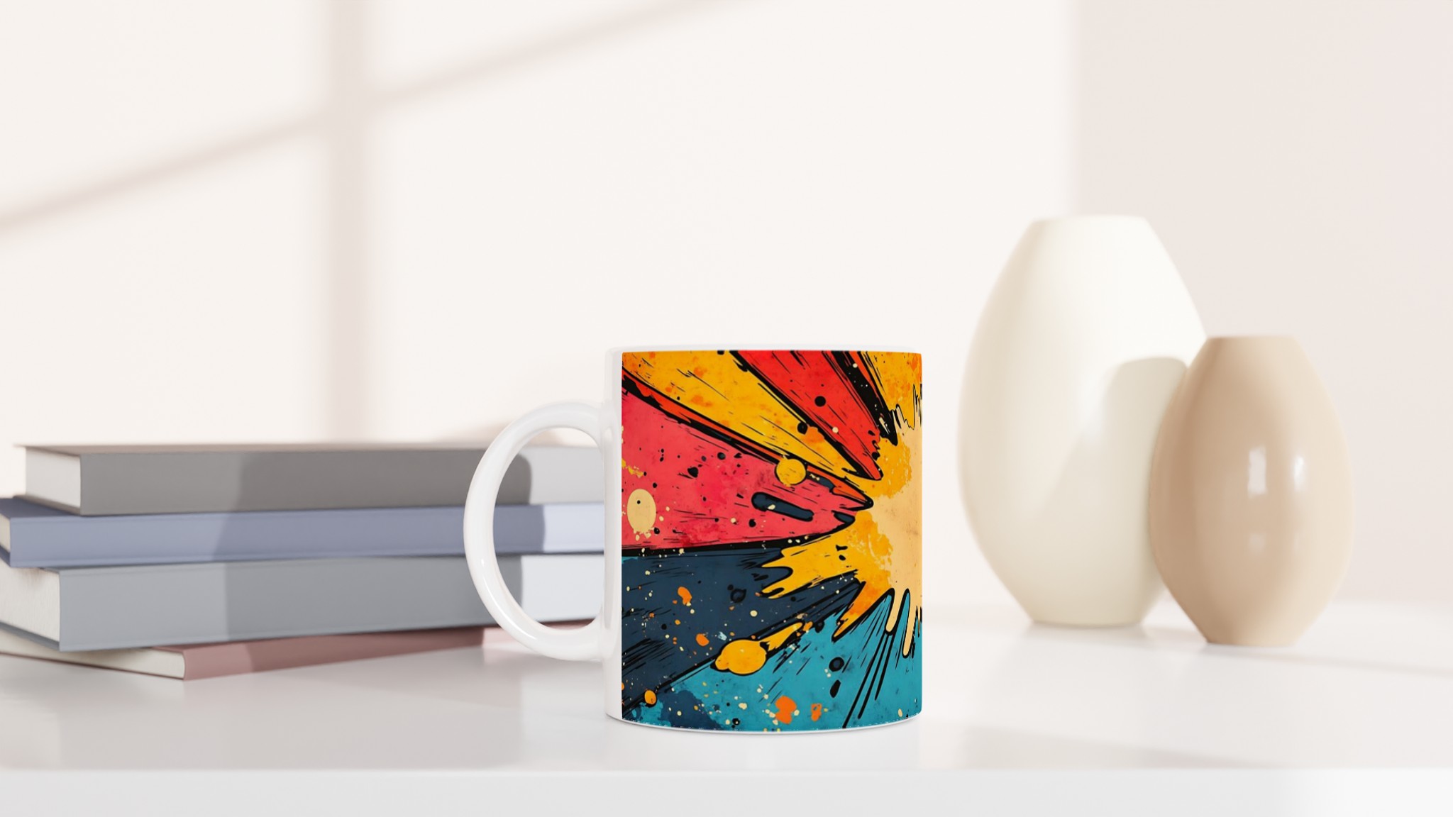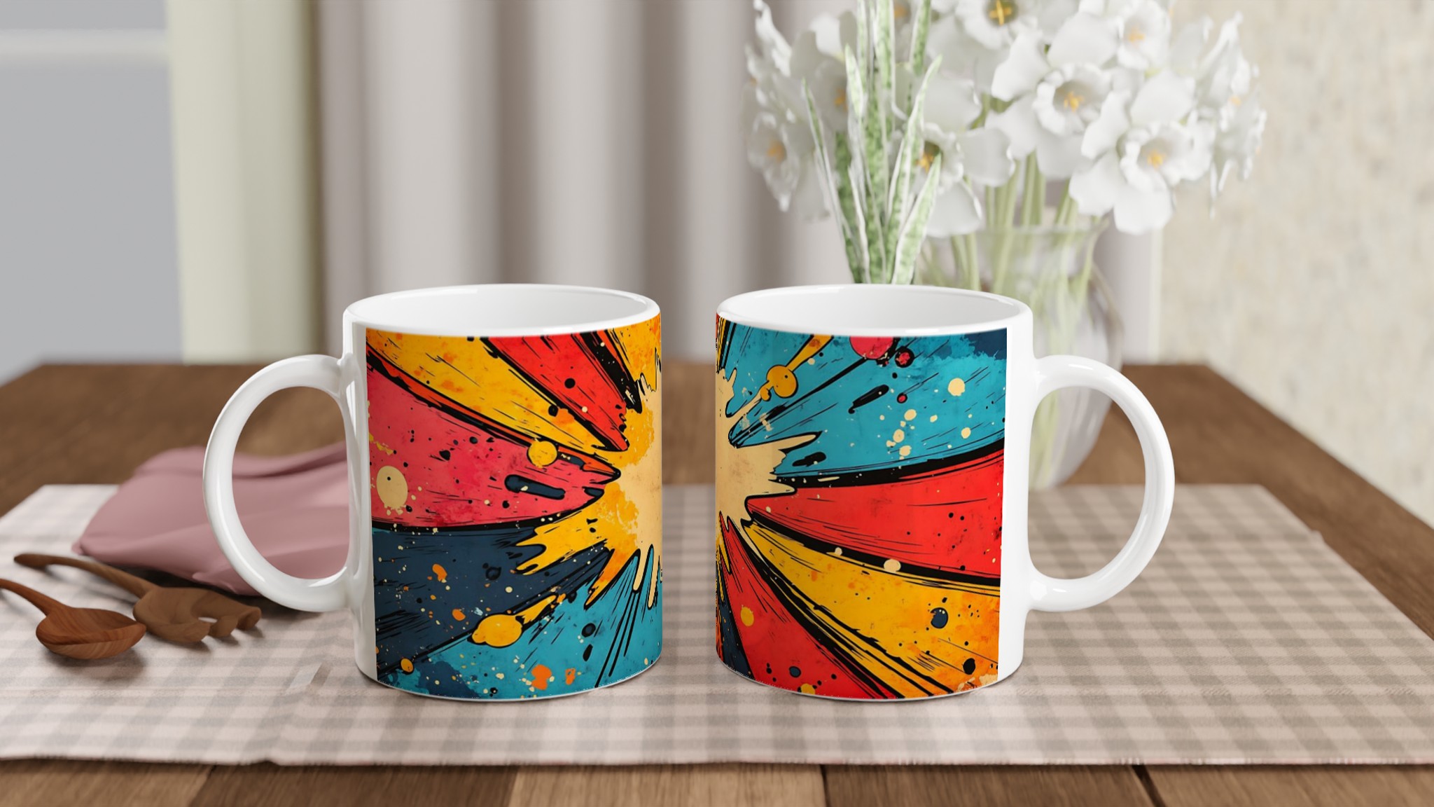 Vibrant Pop Art Burst – Everyday Ceramic Mug 11oz – Choose Your Dynamic Color