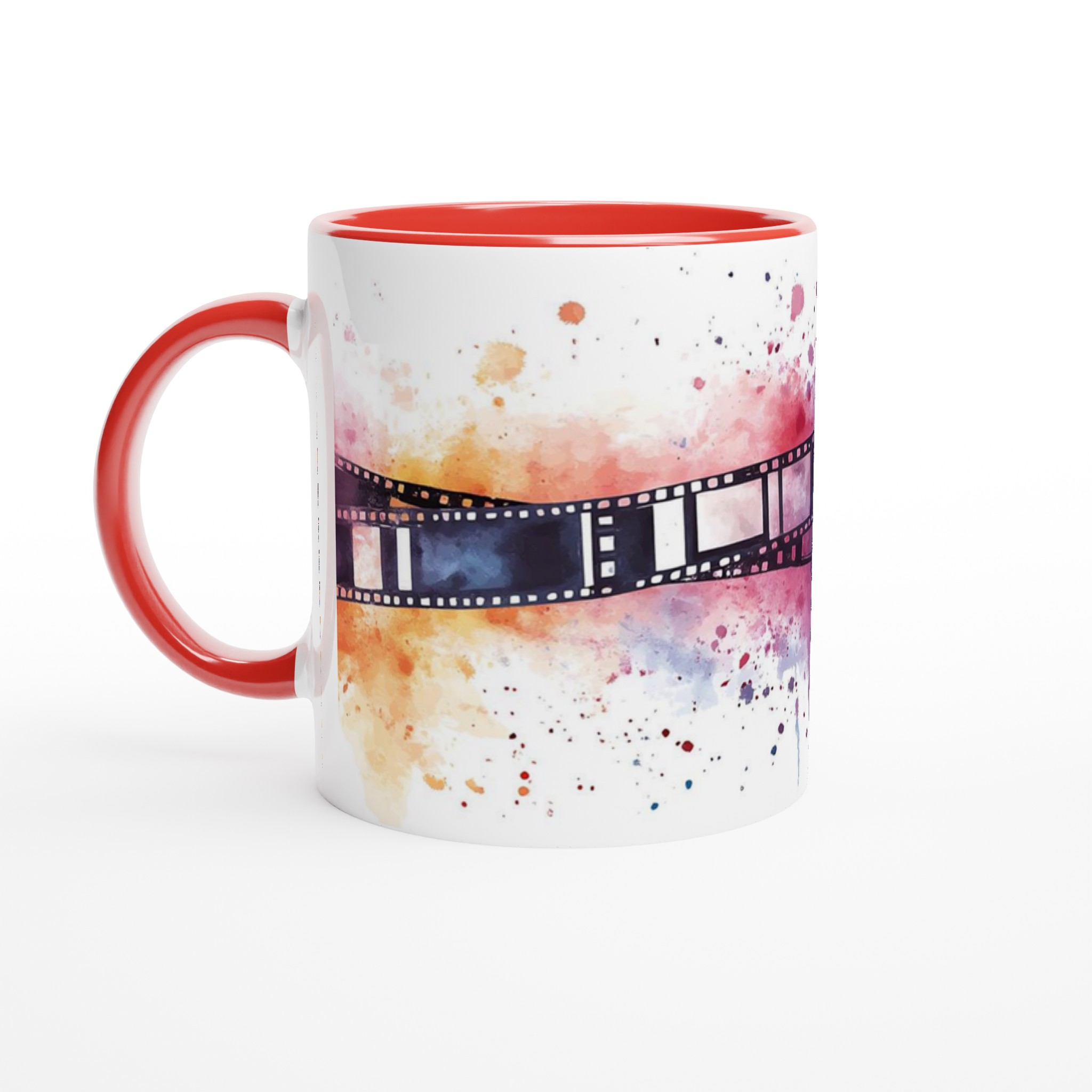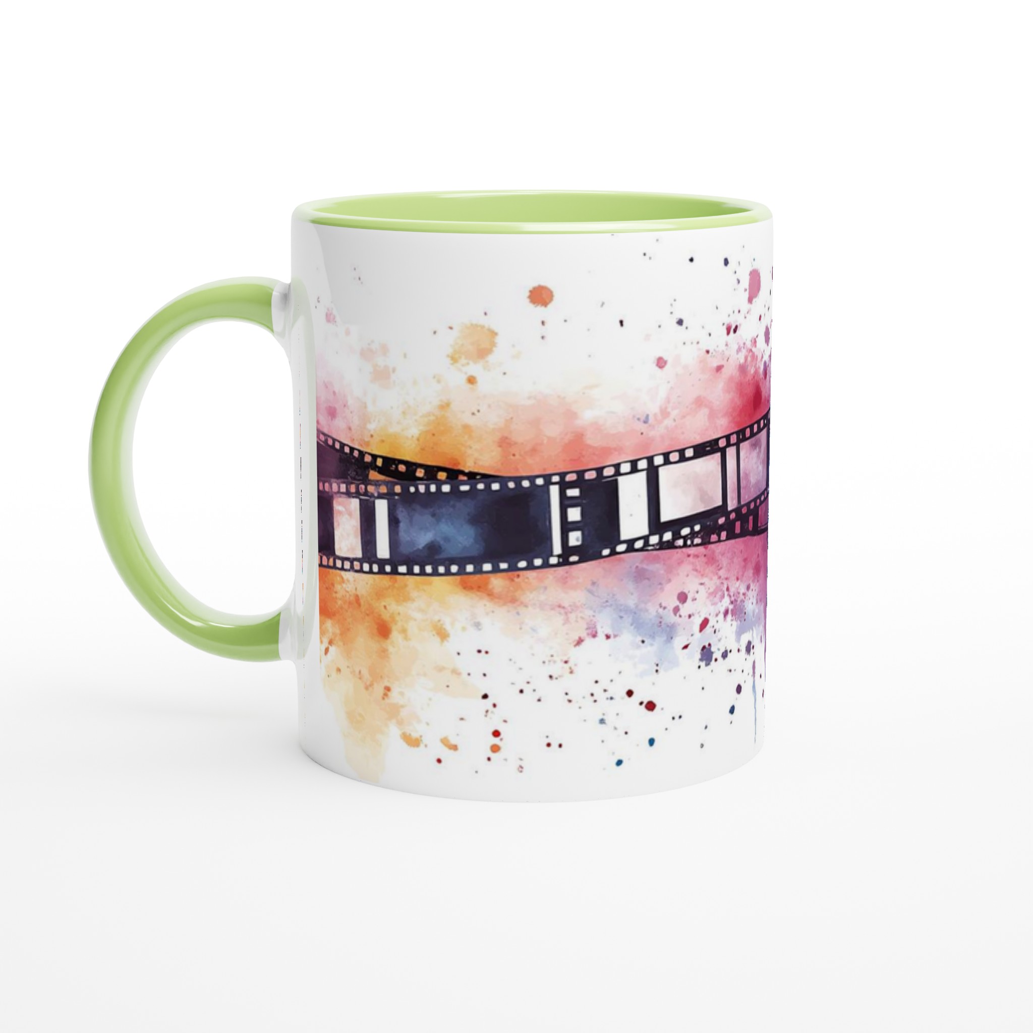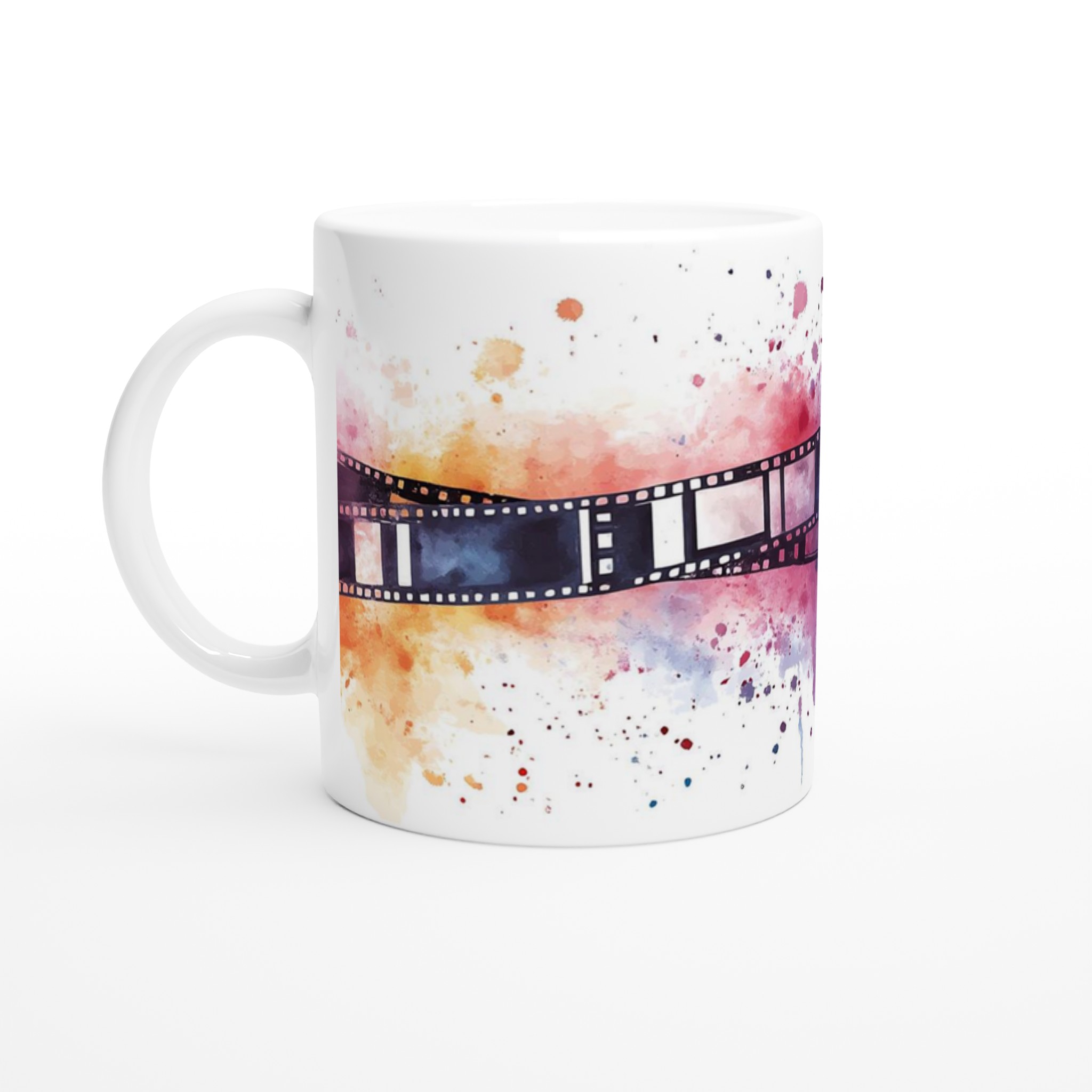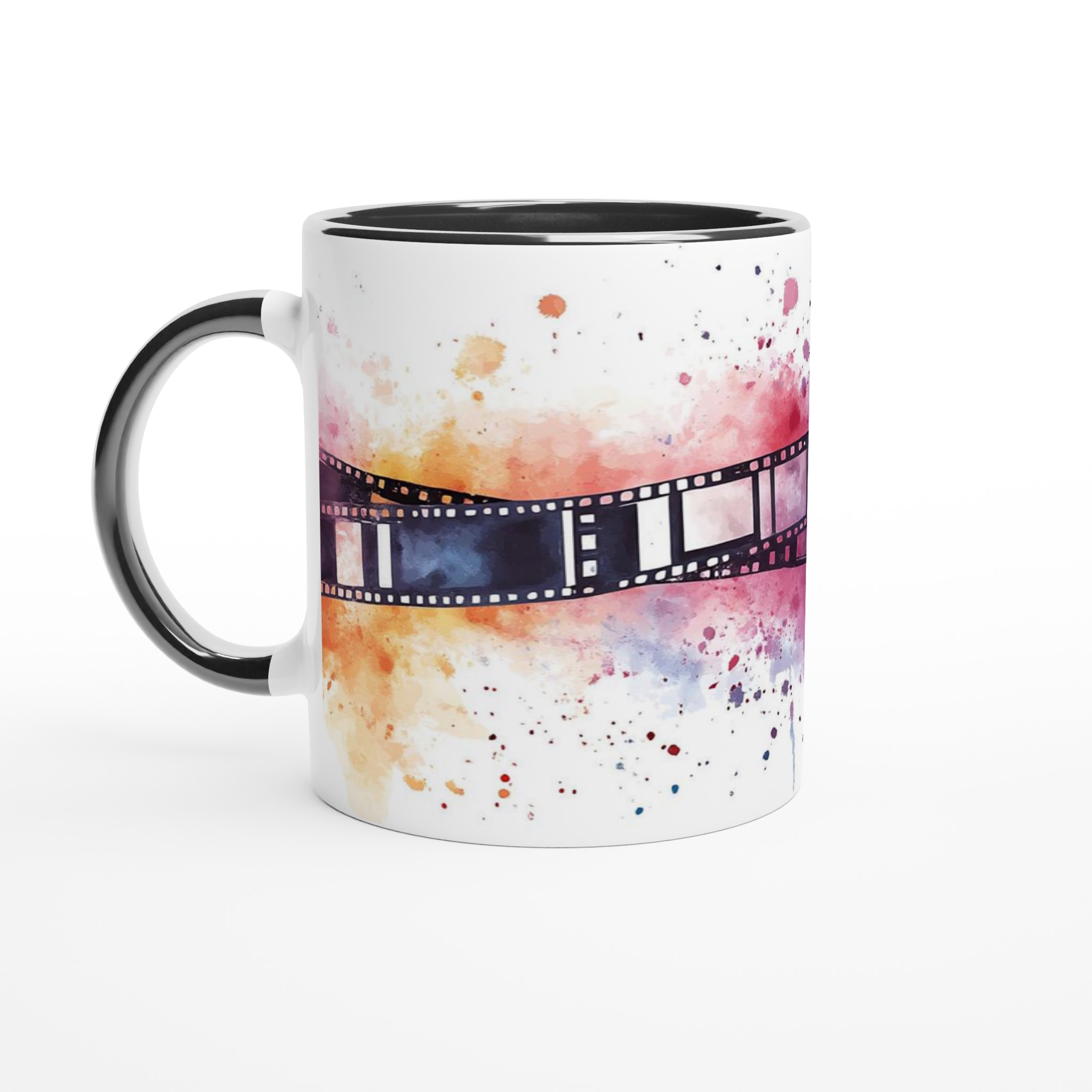 Vibrant Cinema Dreams – Watercolor Film Strip Ceramic Mug, 11oz – Choose Your Favorite Hue!