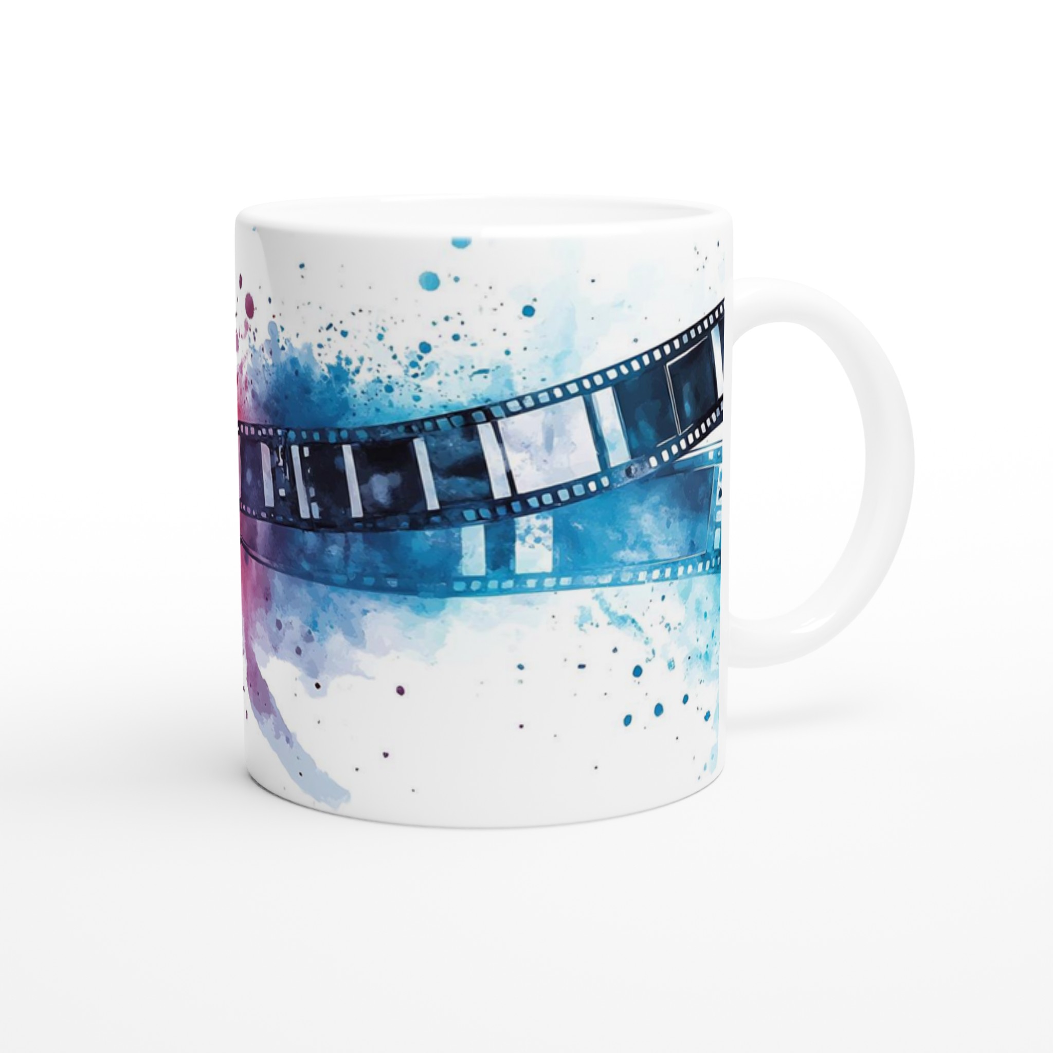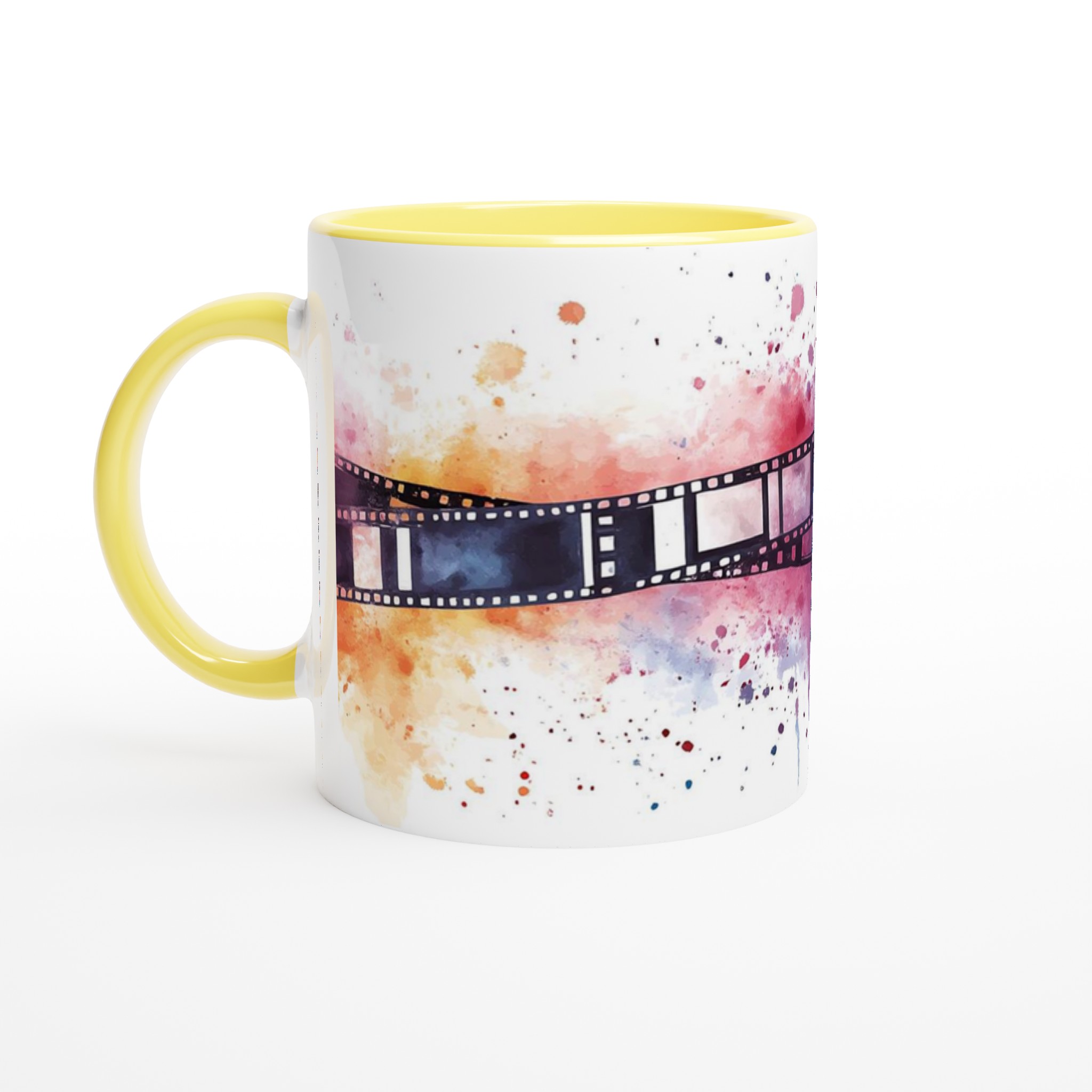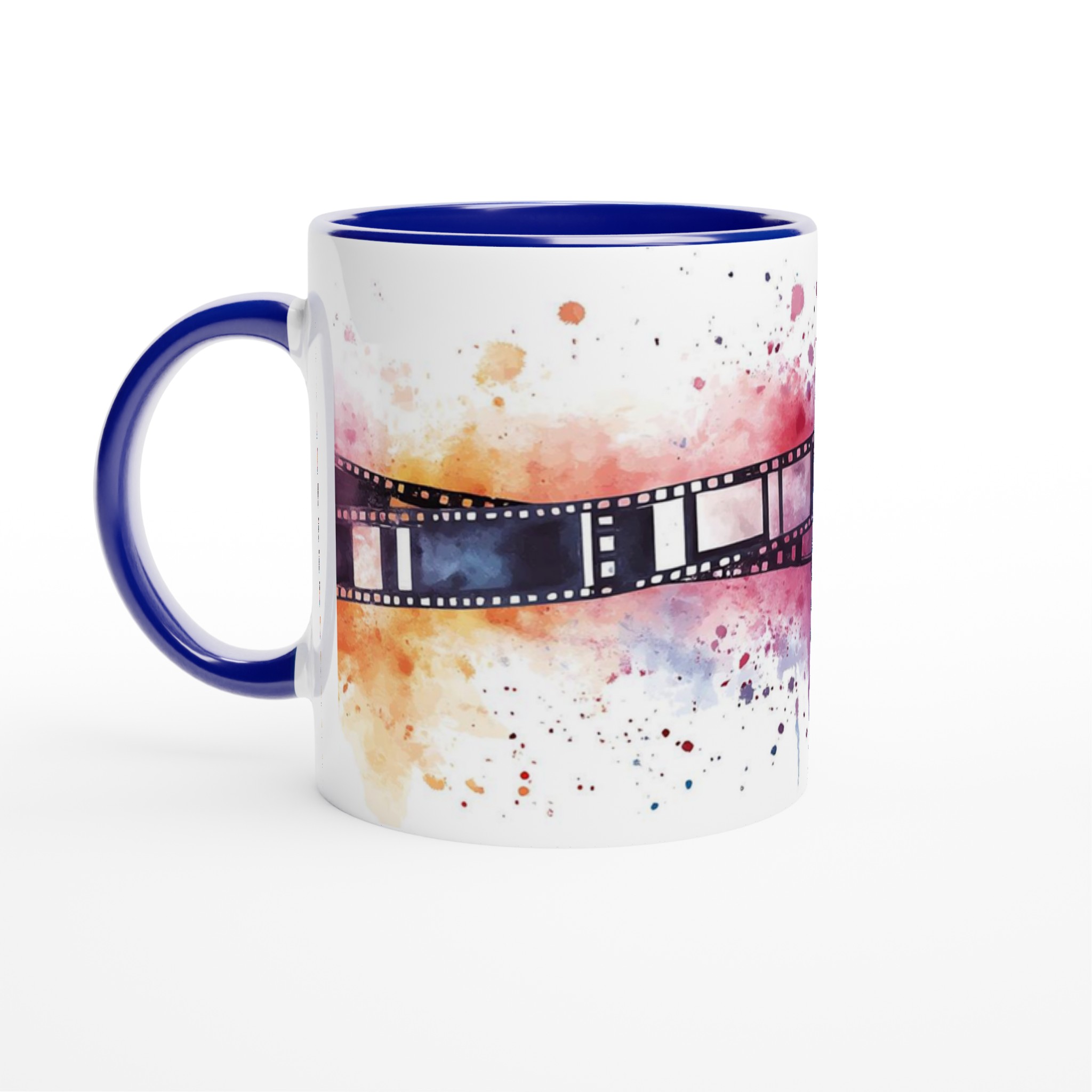 Vibrant Cinema Dreams – Watercolor Film Strip Ceramic Mug, 11oz – Choose Your Favorite Hue!