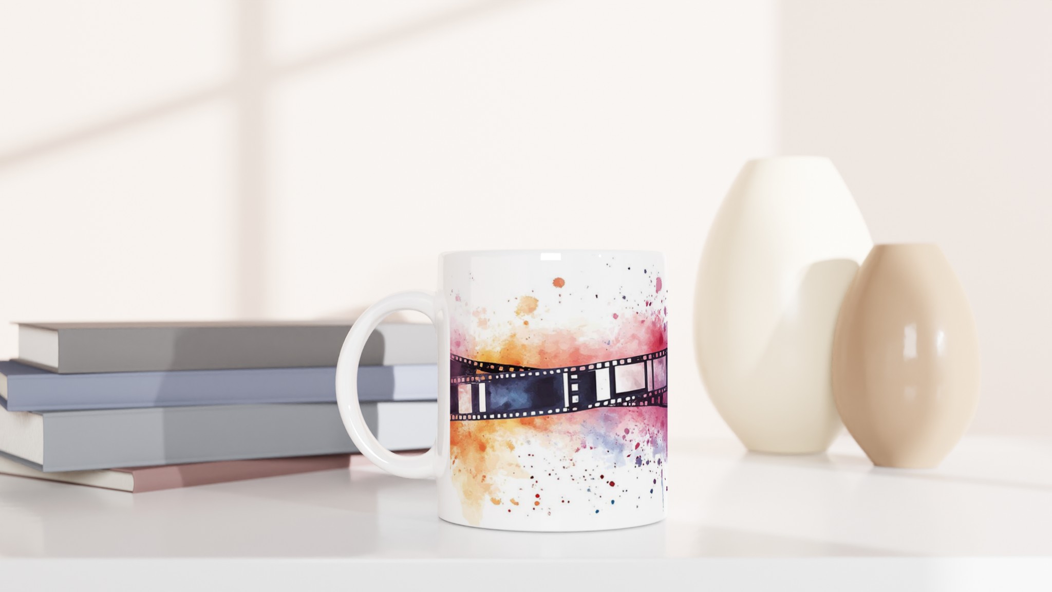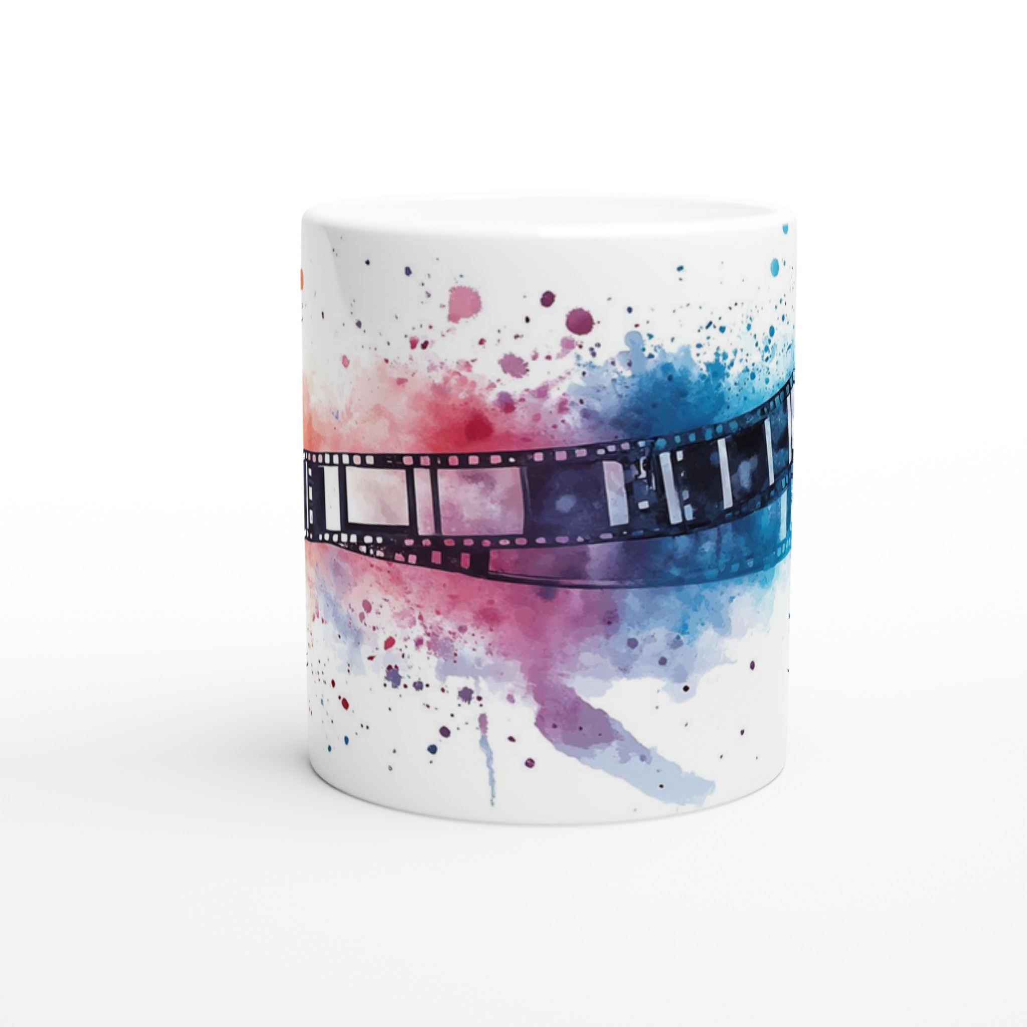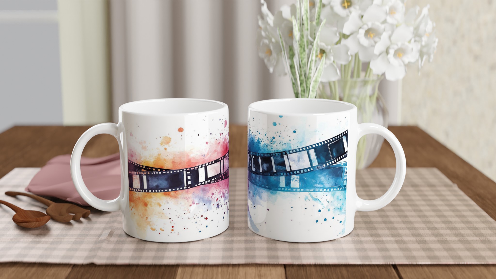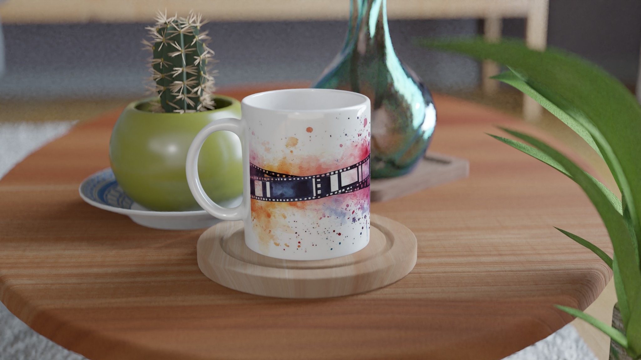 Vibrant Cinema Dreams – Watercolor Film Strip Ceramic Mug, 11oz – Choose Your Favorite Hue!