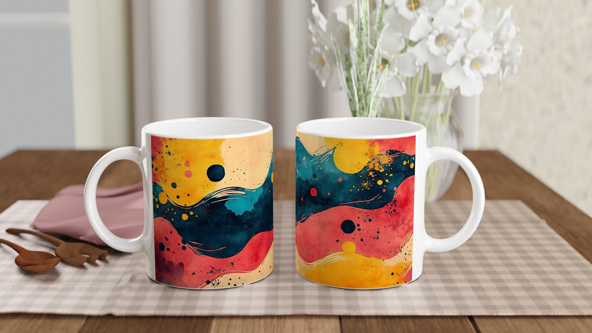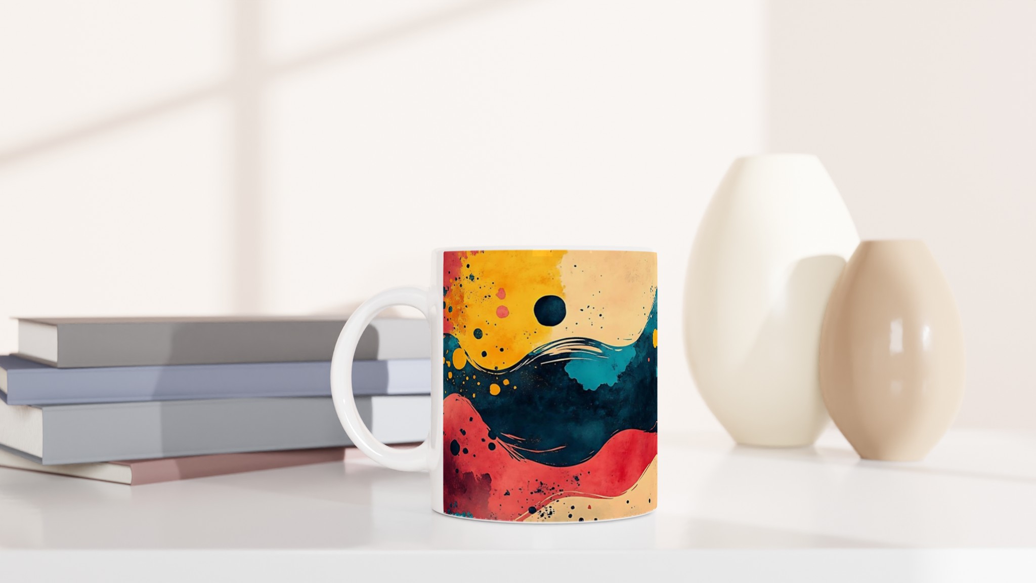 Abstract Waves Ceramic Mug 11oz – Your Daily Dose of Modern Art in a Choice of 7 Vibrant Colors