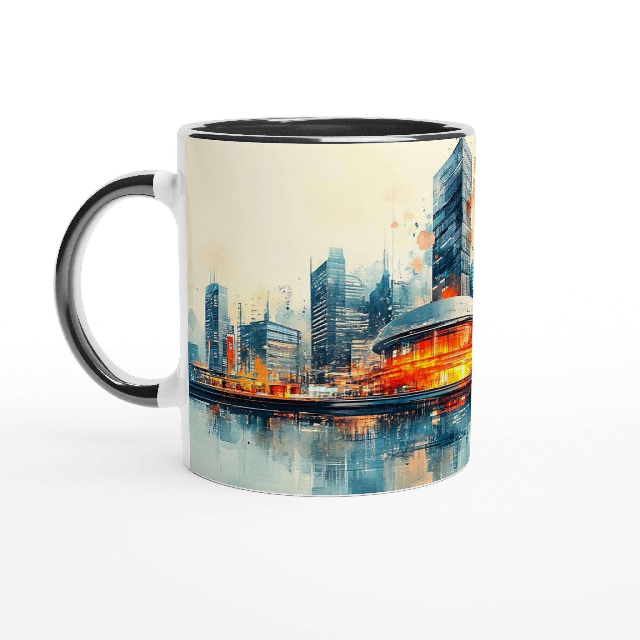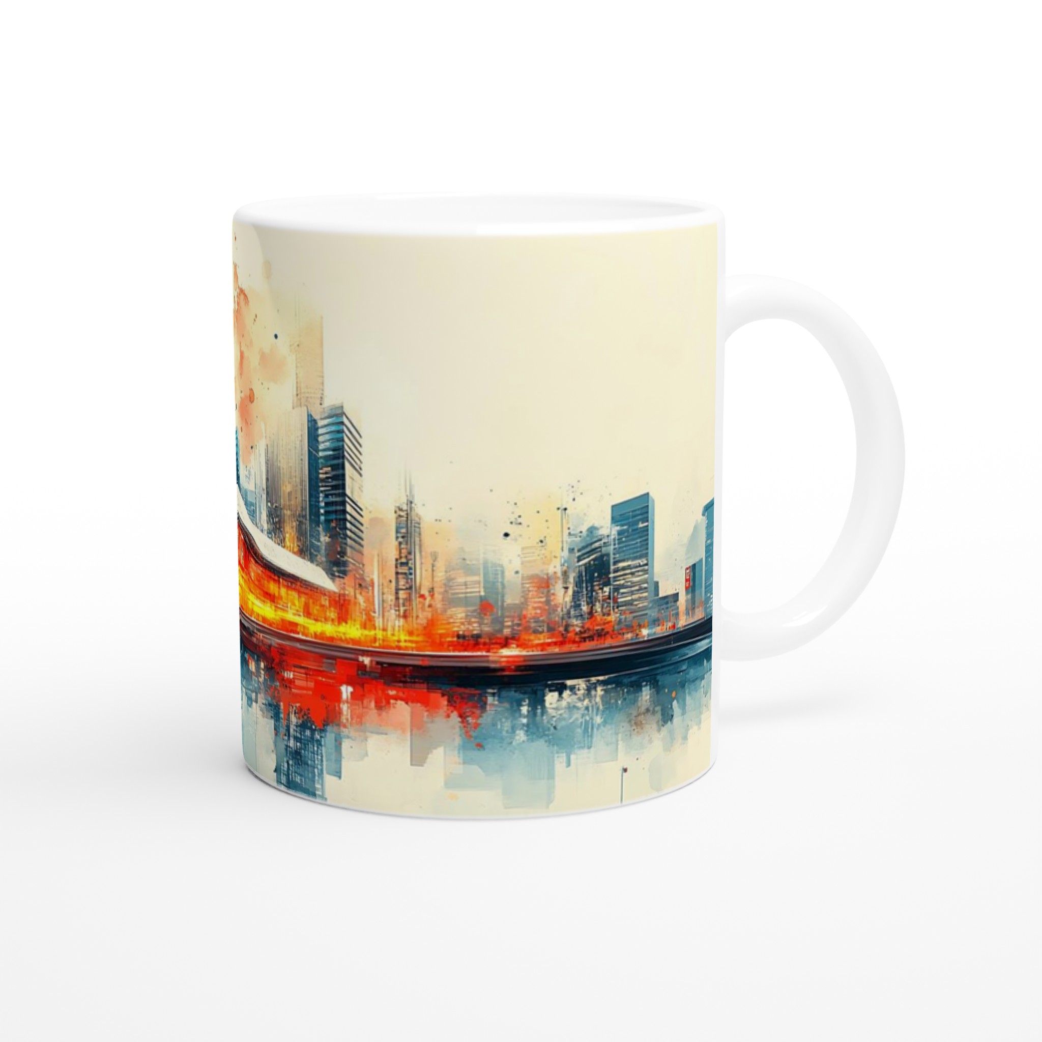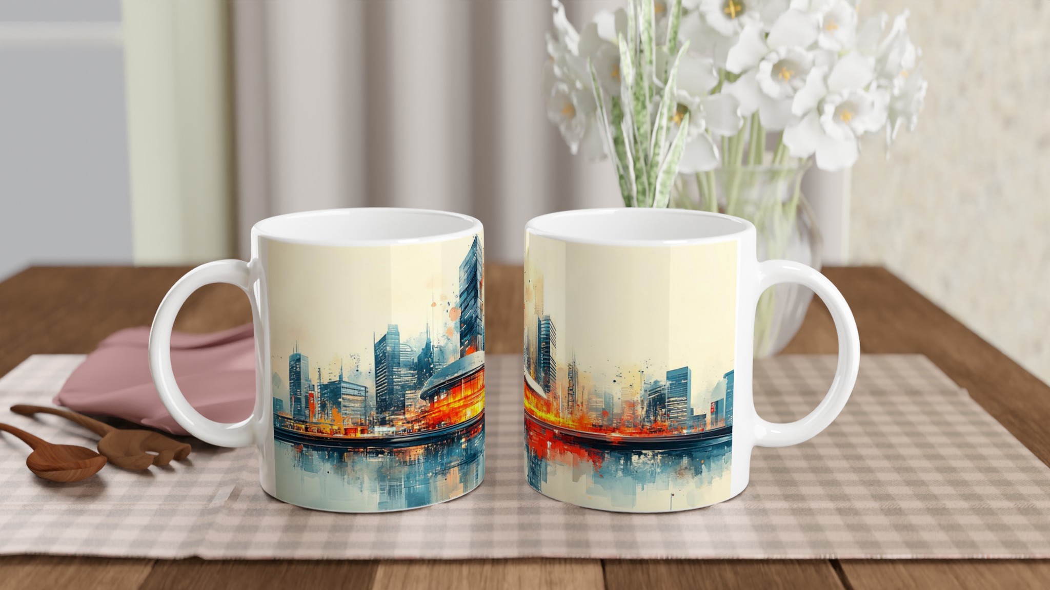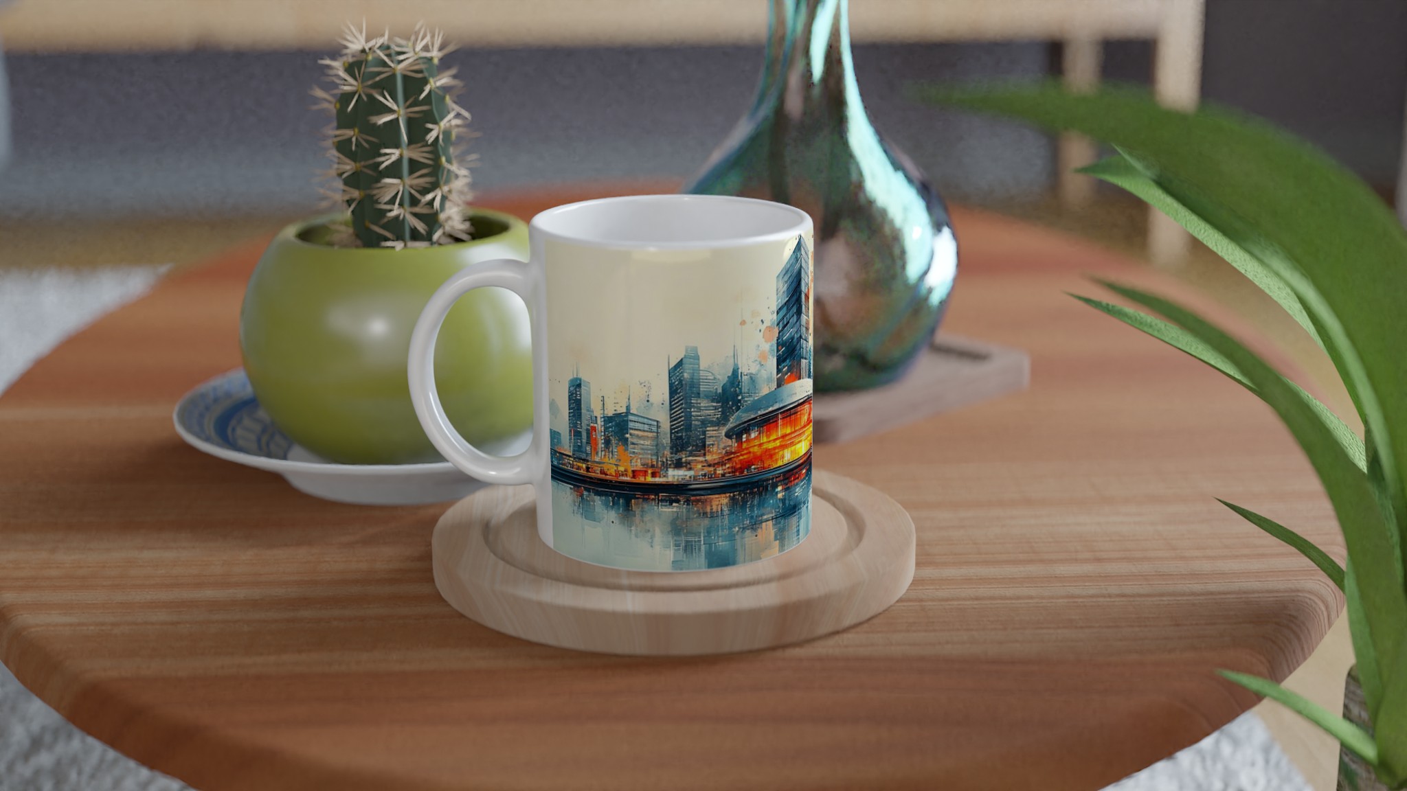 Abstract Cityscape Splendor – Premium Ceramic Mug 11oz, in a choice of vibrant colors