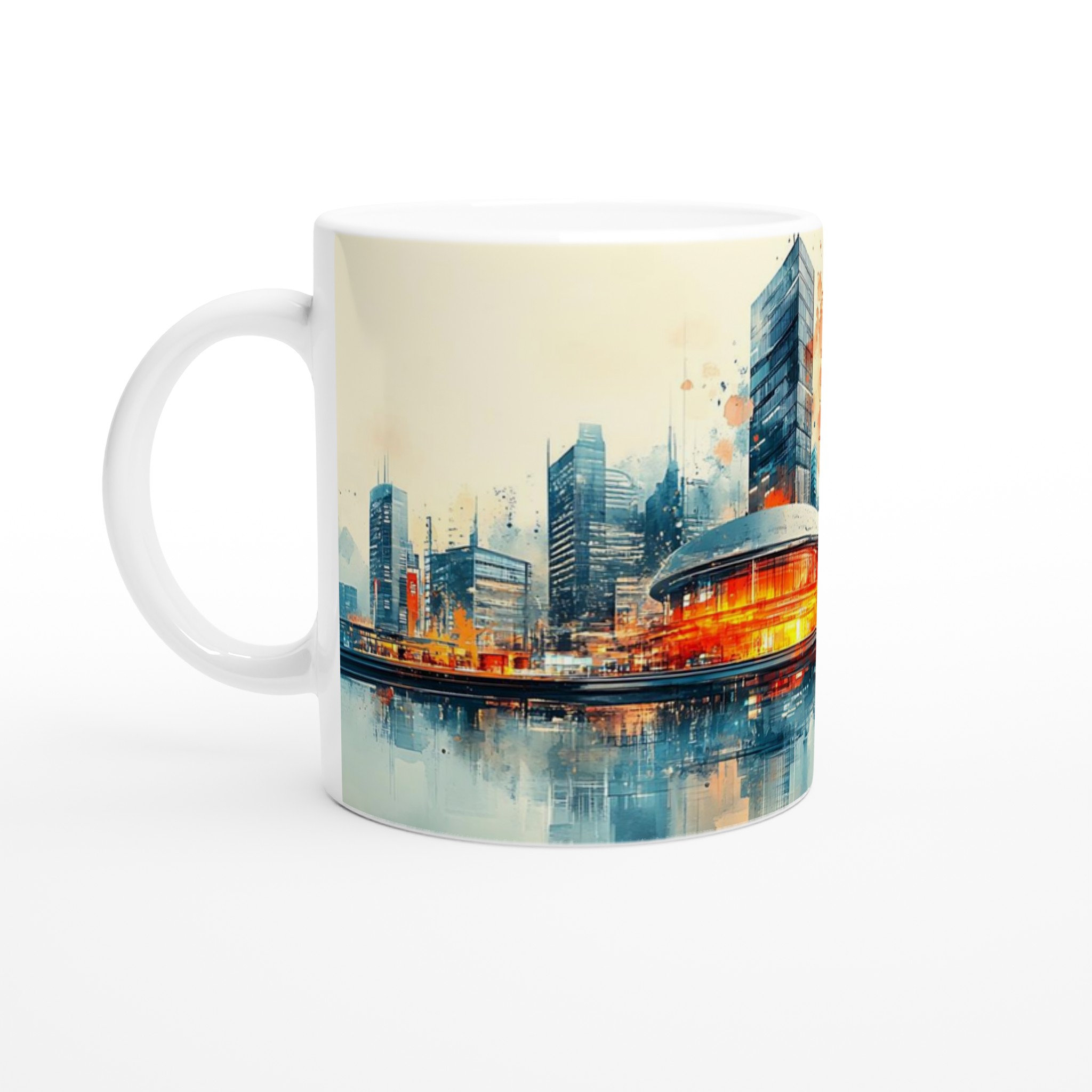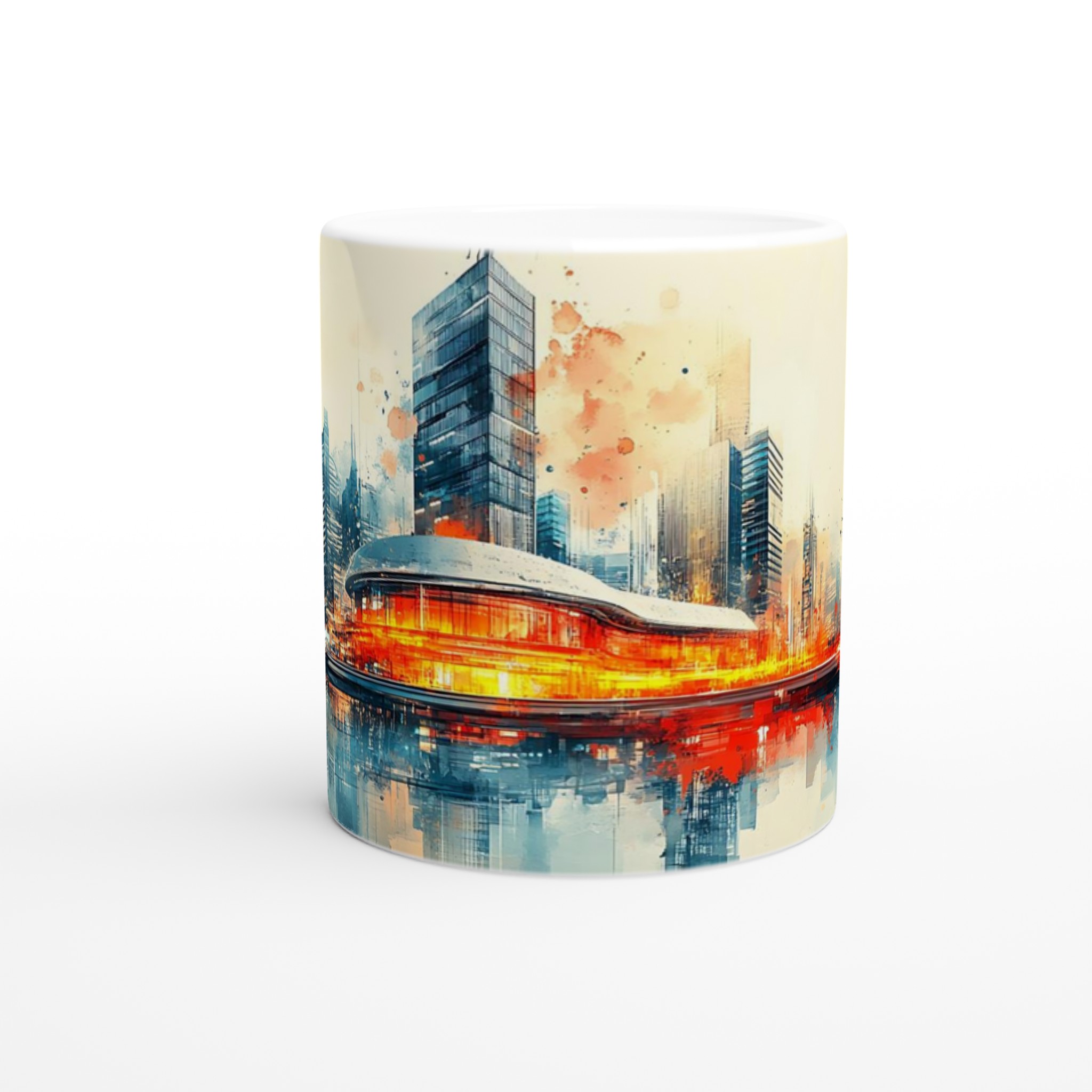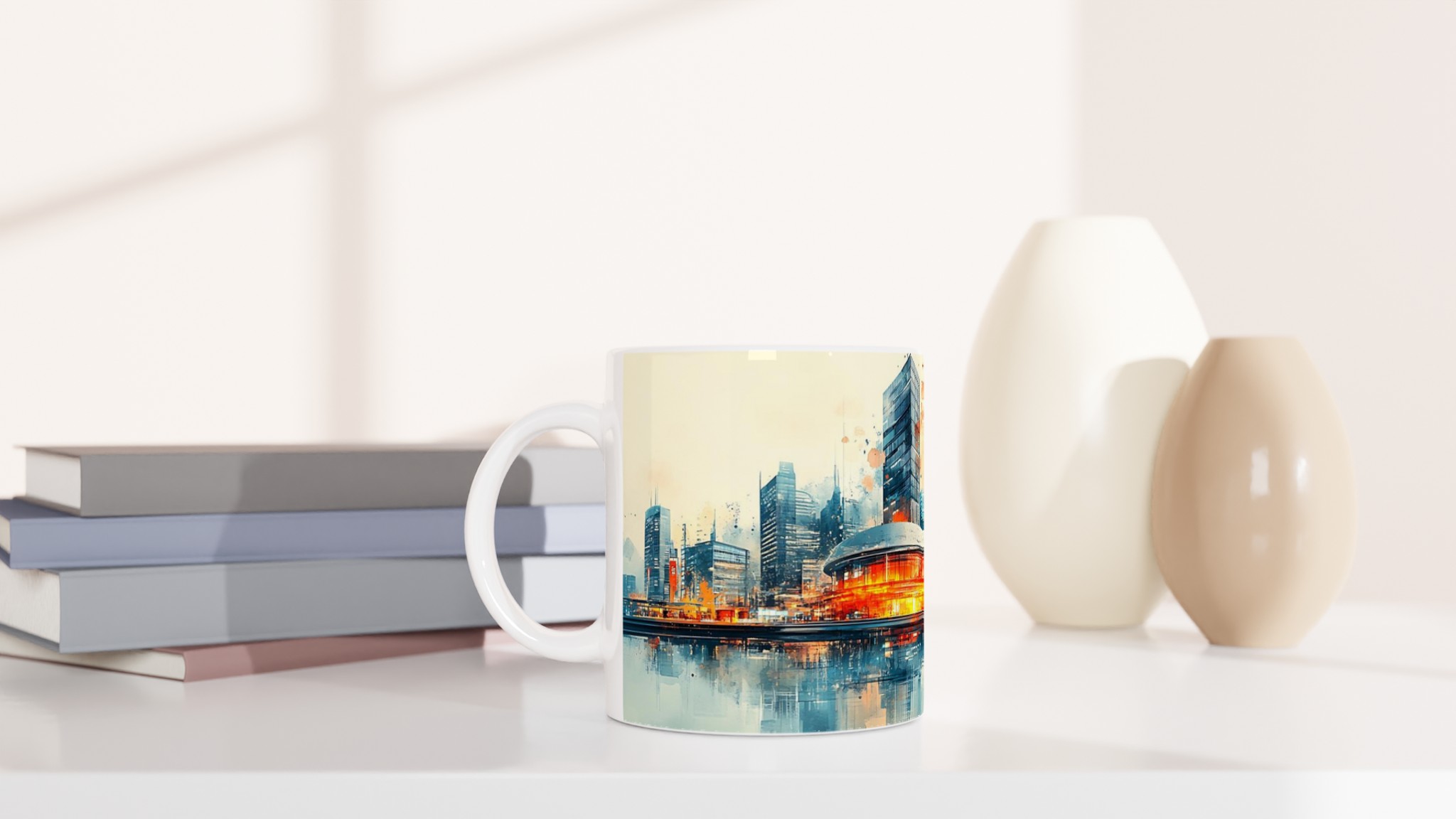 Abstract Cityscape Splendor – Premium Ceramic Mug 11oz, in a choice of vibrant colors