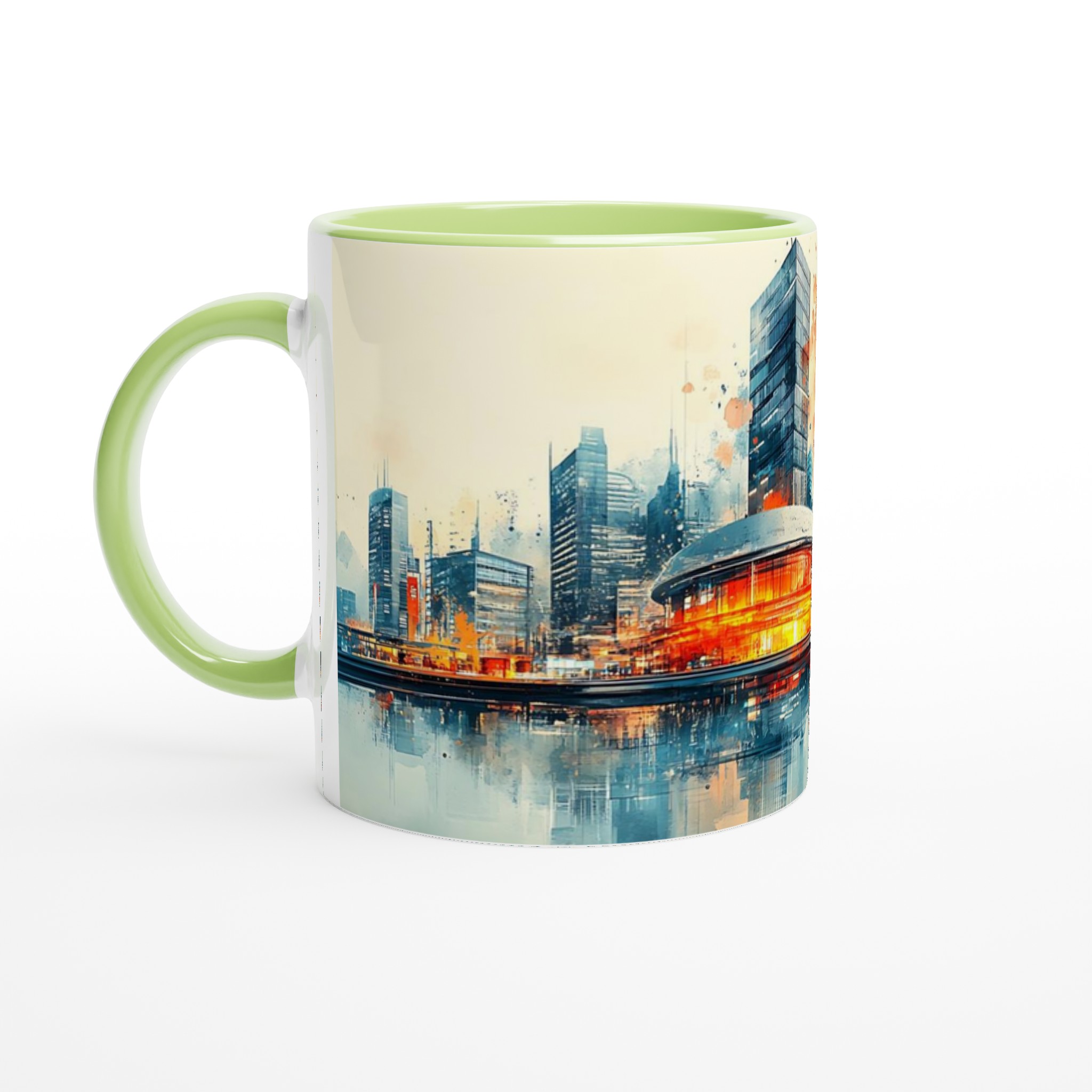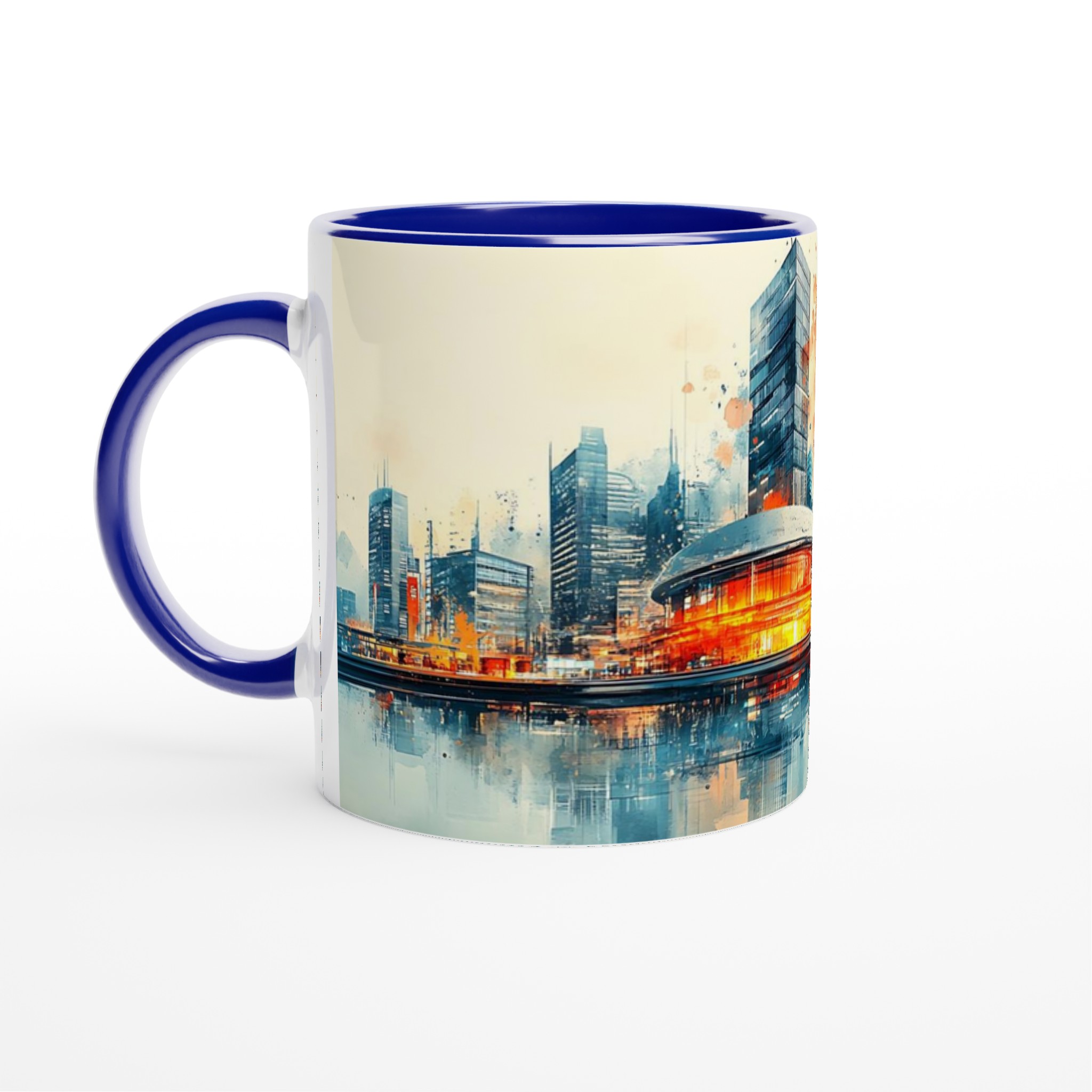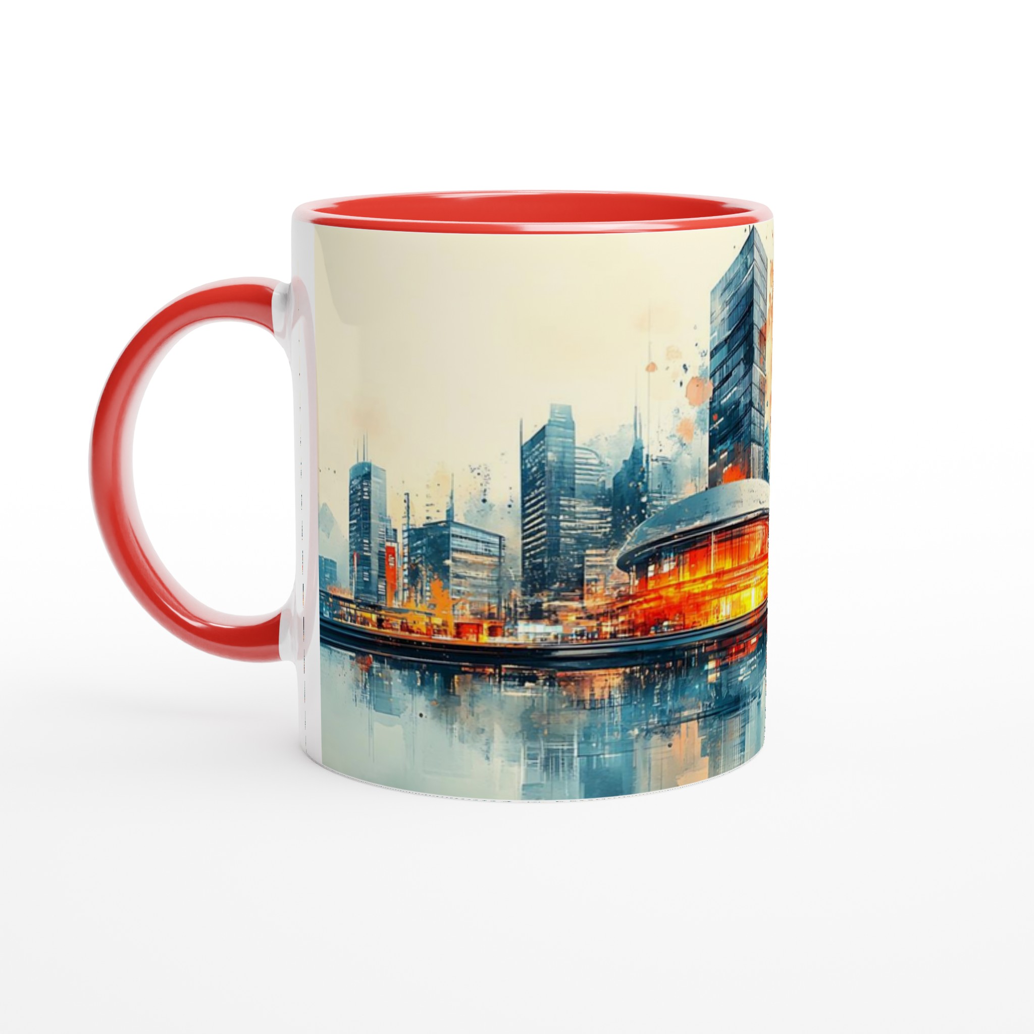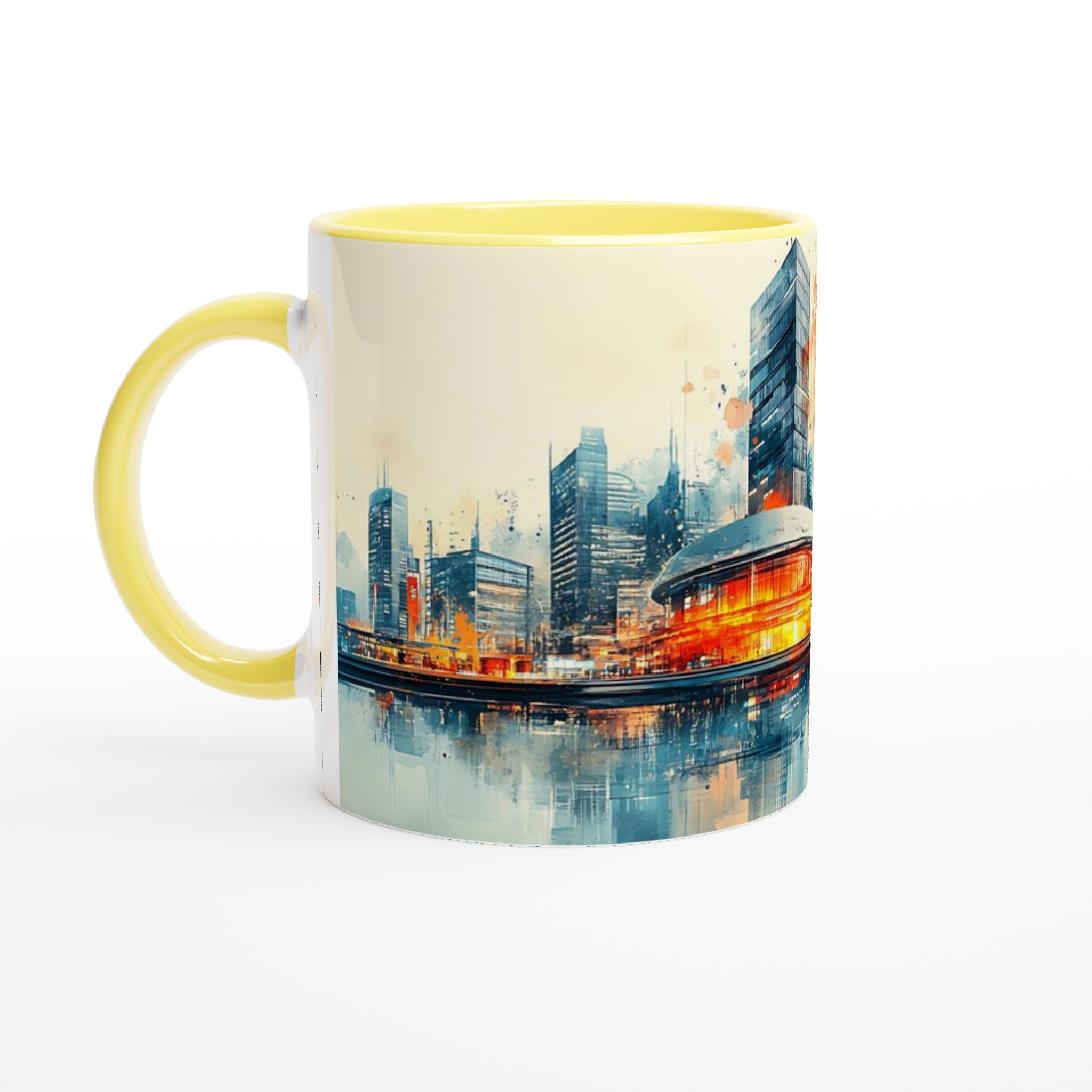 Abstract Cityscape Splendor – Premium Ceramic Mug 11oz, in a choice of vibrant colors