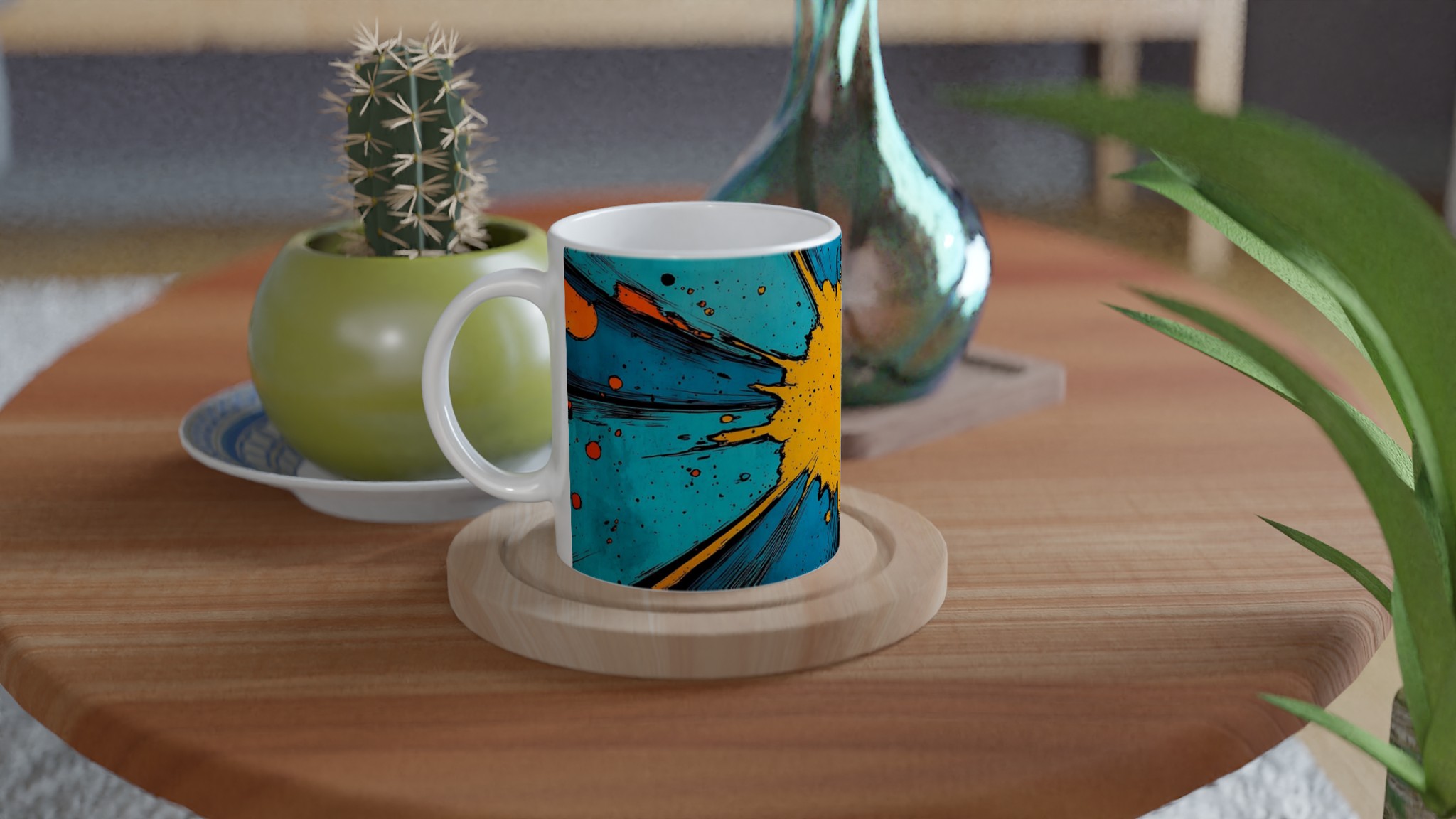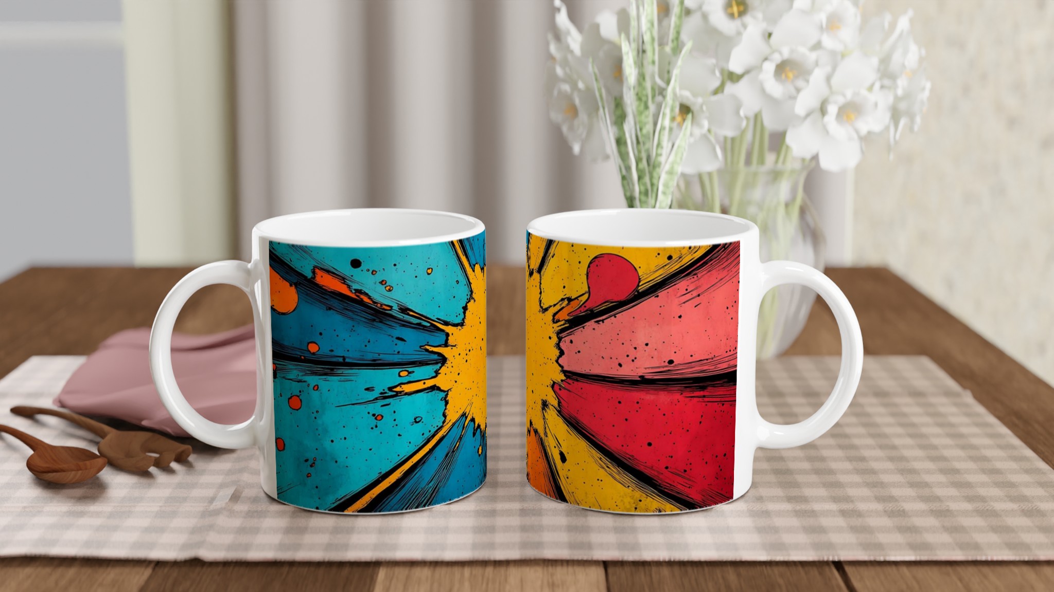 Vibrant Pop Art Burst – Ceramic Coffee Mug 11oz, in your choice of seven dynamic colors!