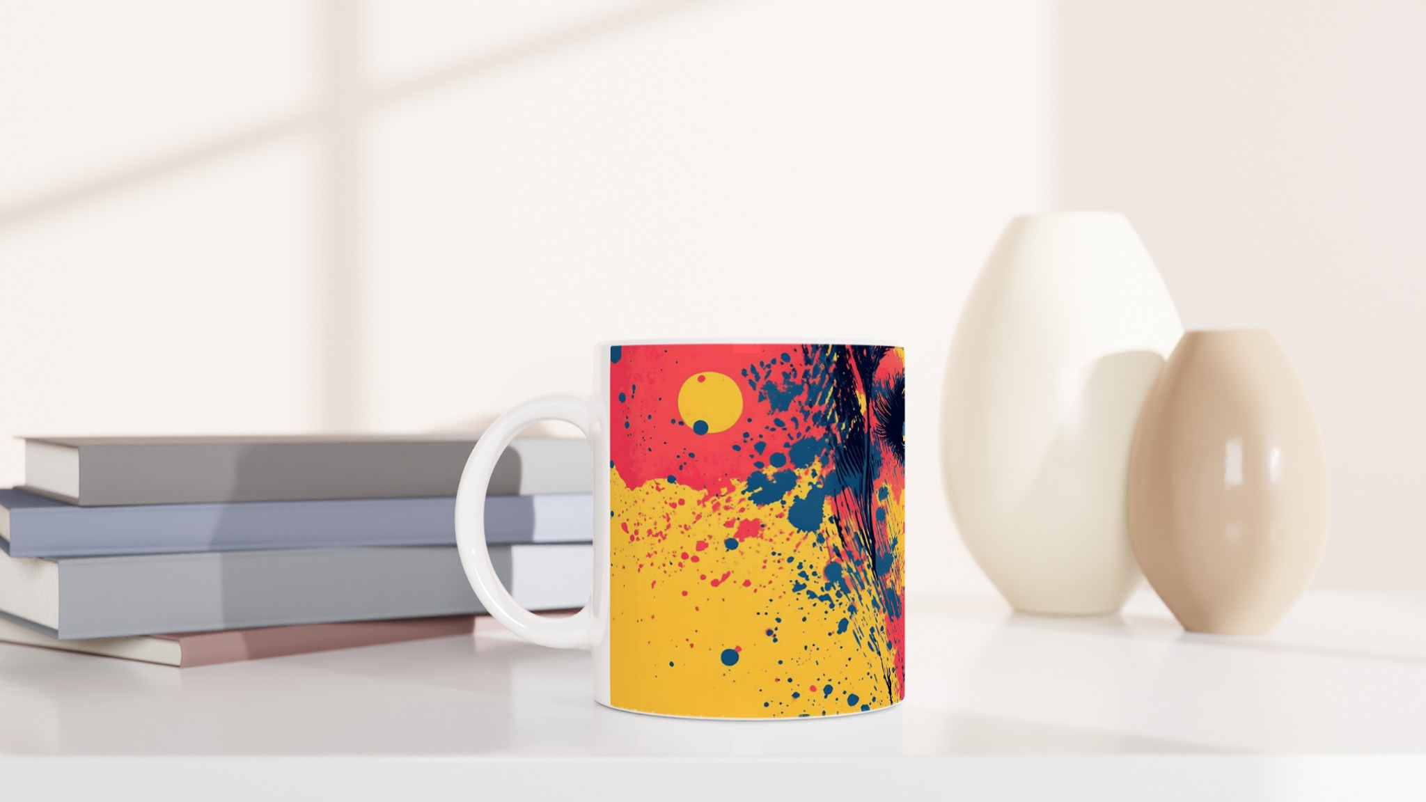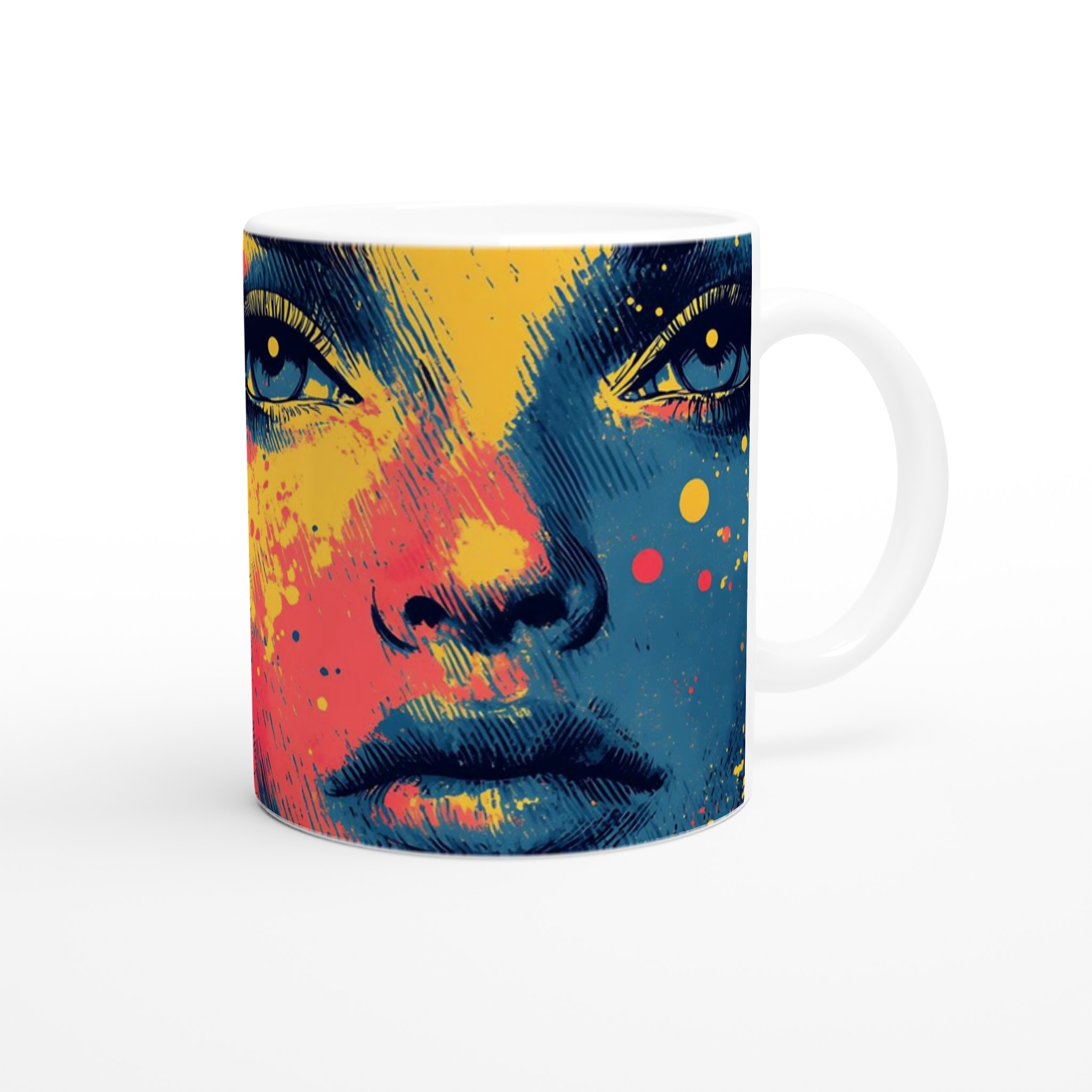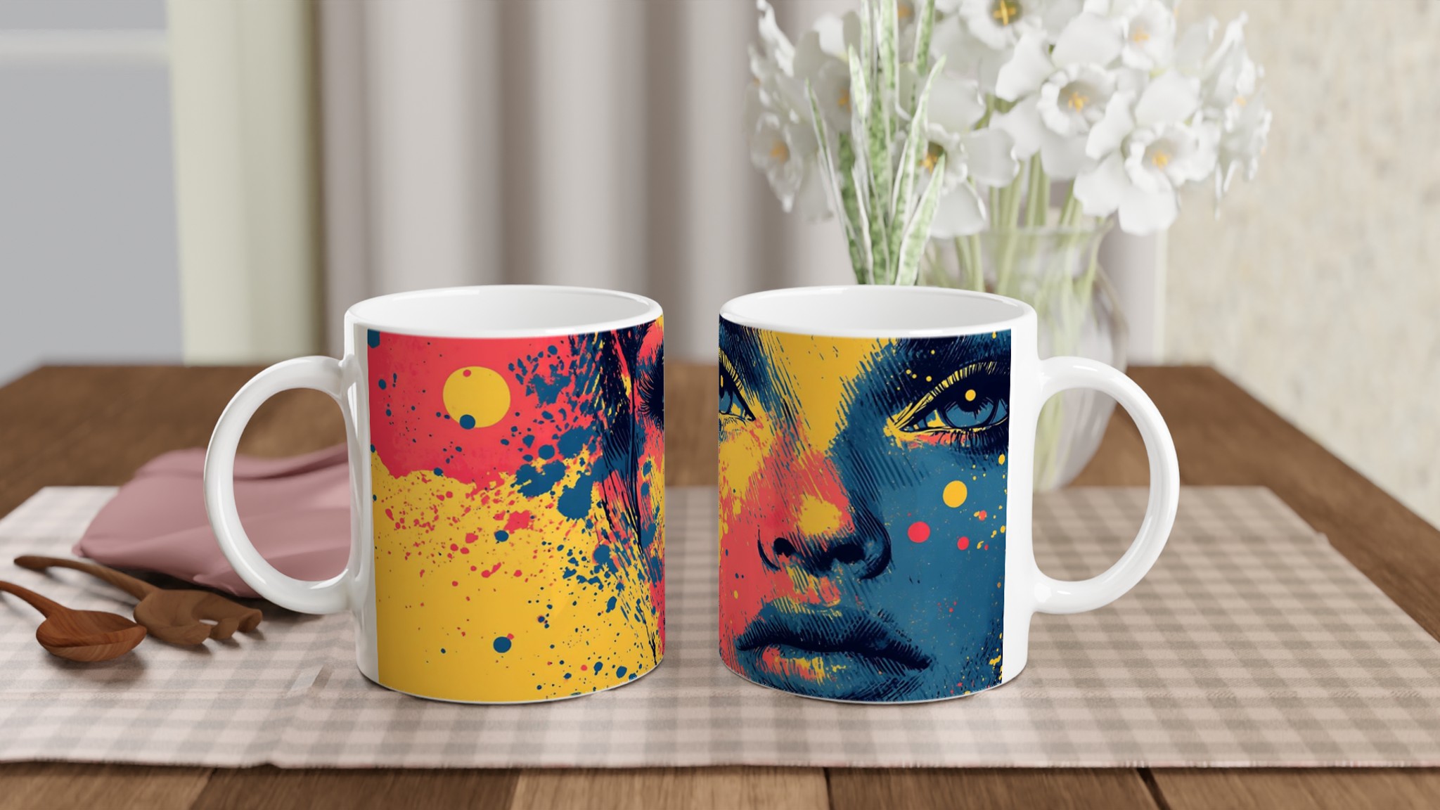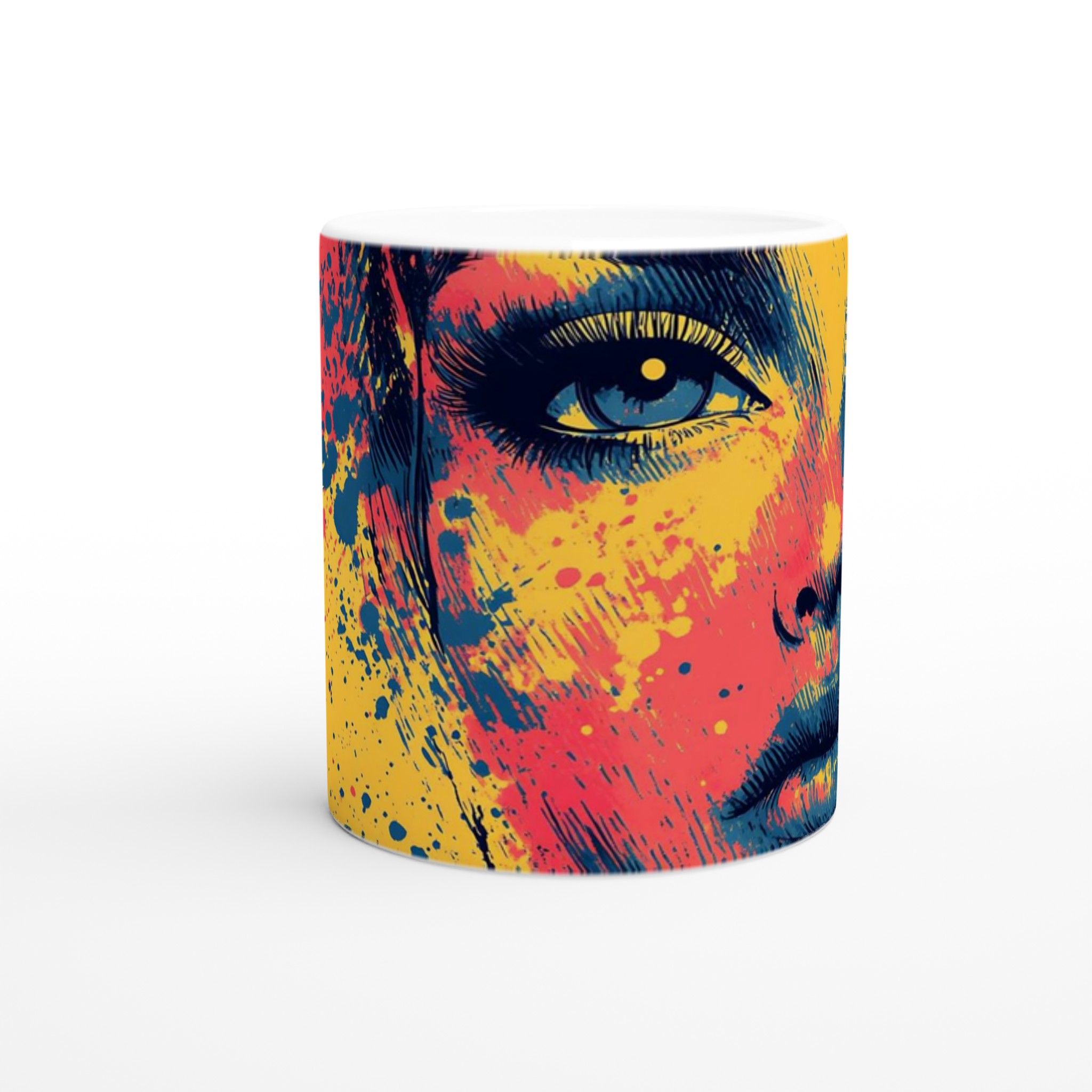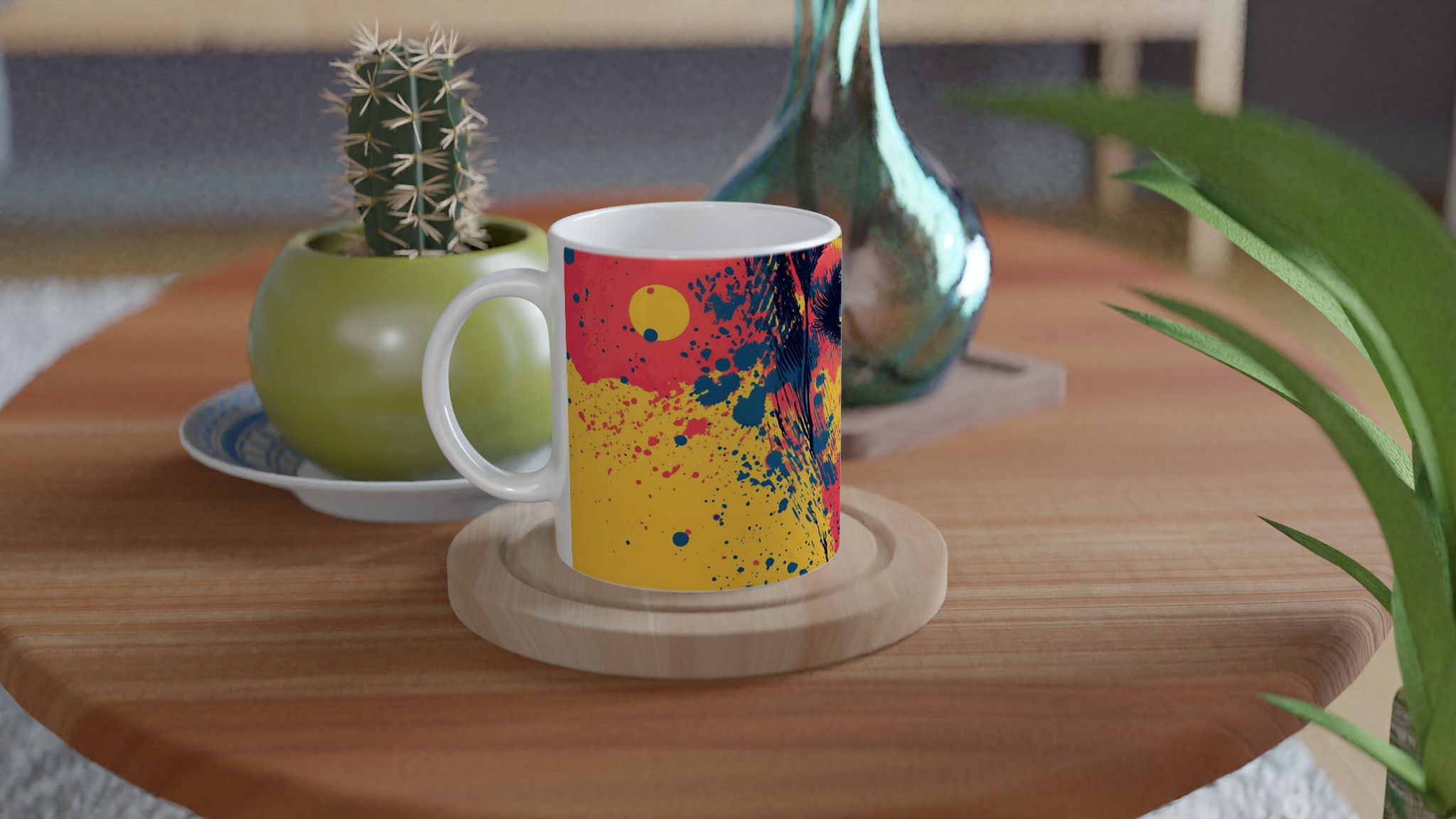 Abstract Pop Art Ceramic Mug – Vibrant 11oz Coffee Cup in Your Choice of Seven Bold Hues