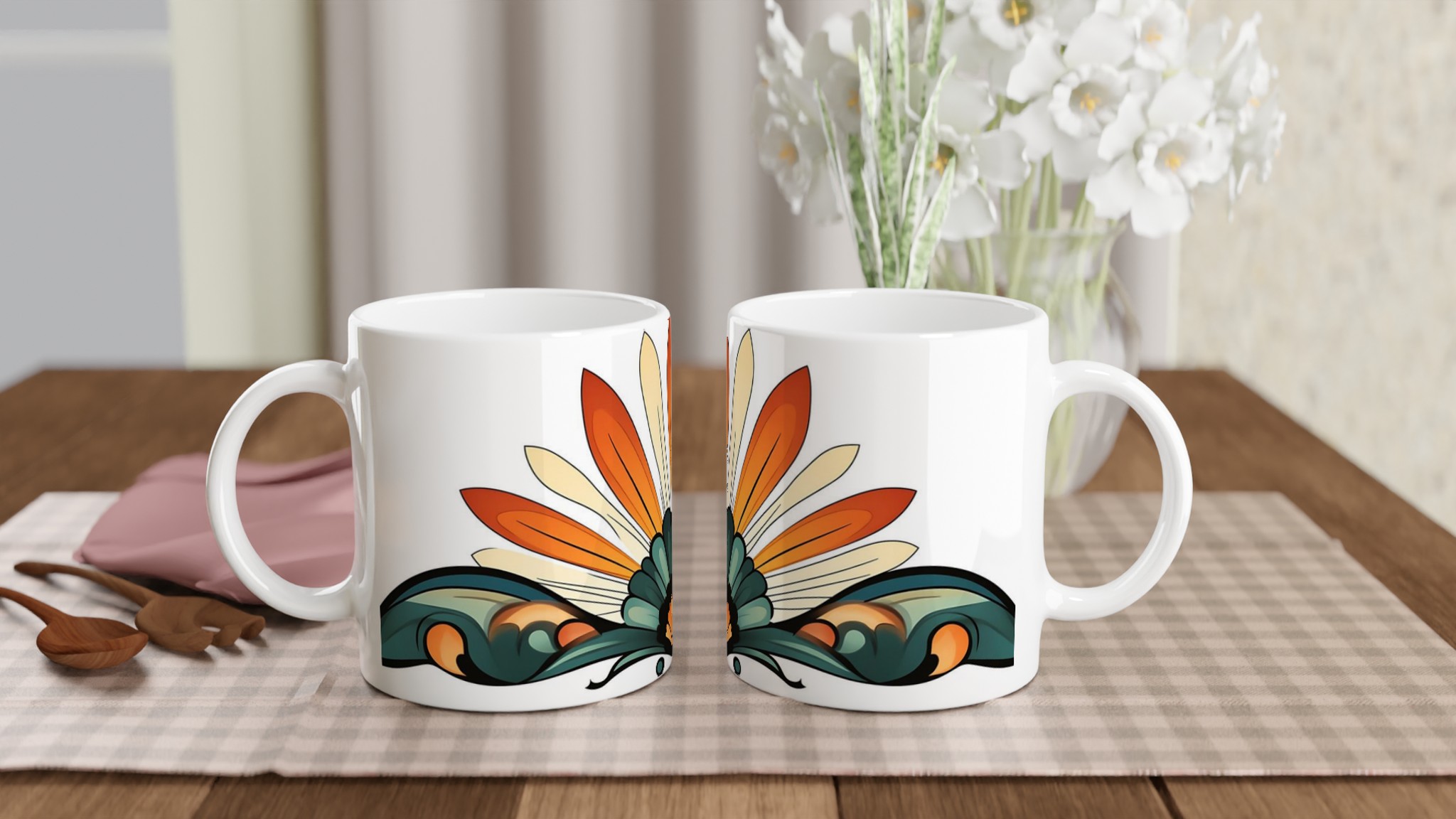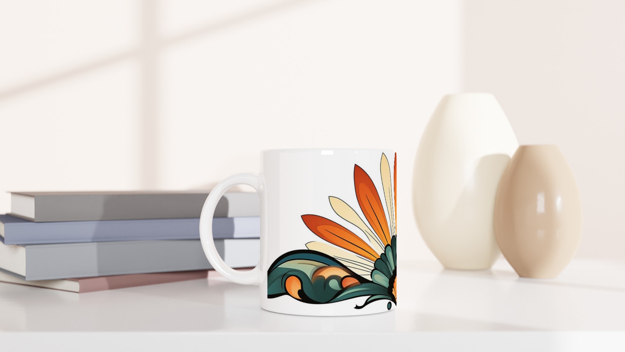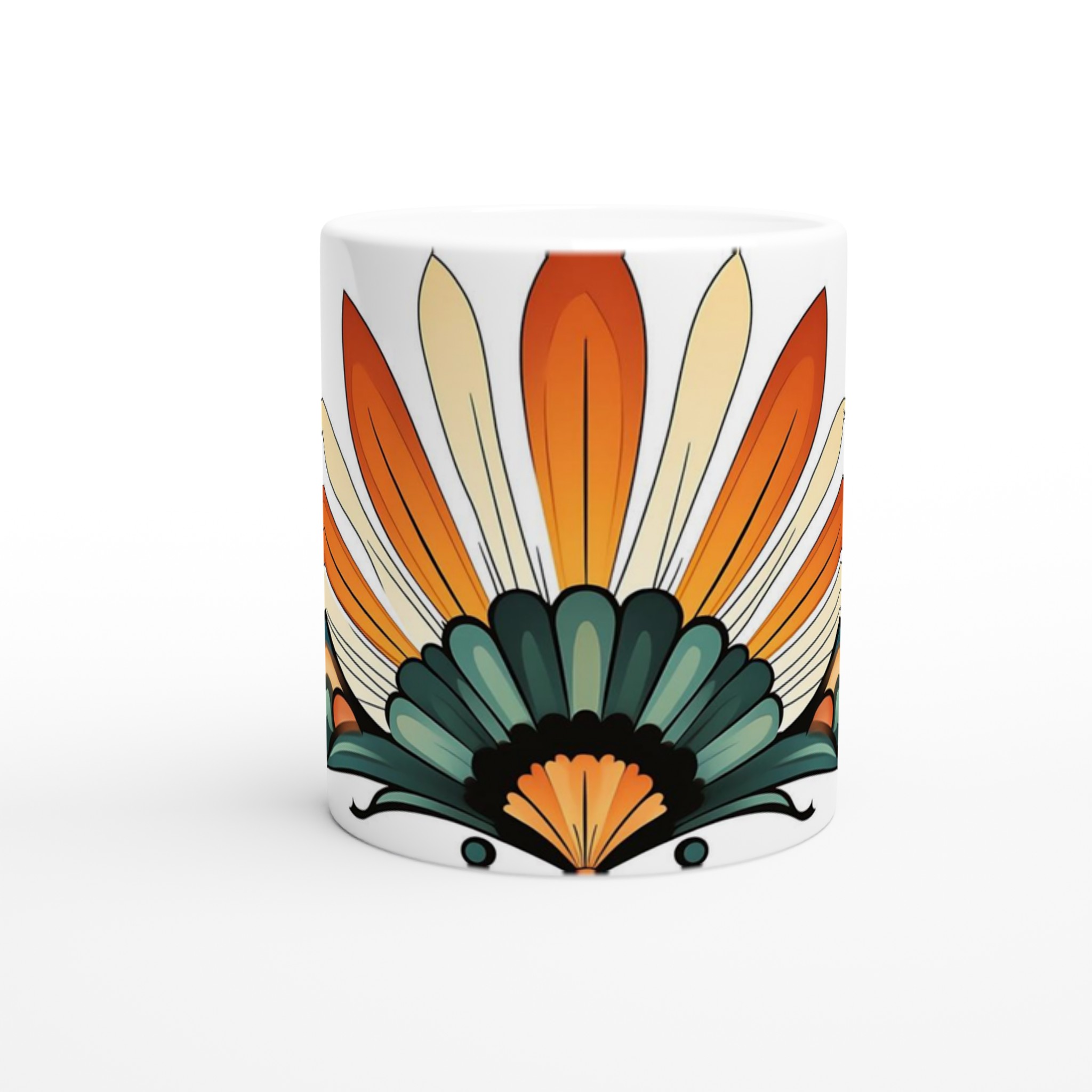 Art Deco Fan – Stylish Ceramic Mug 11oz, in your choice of seven vibrant hues