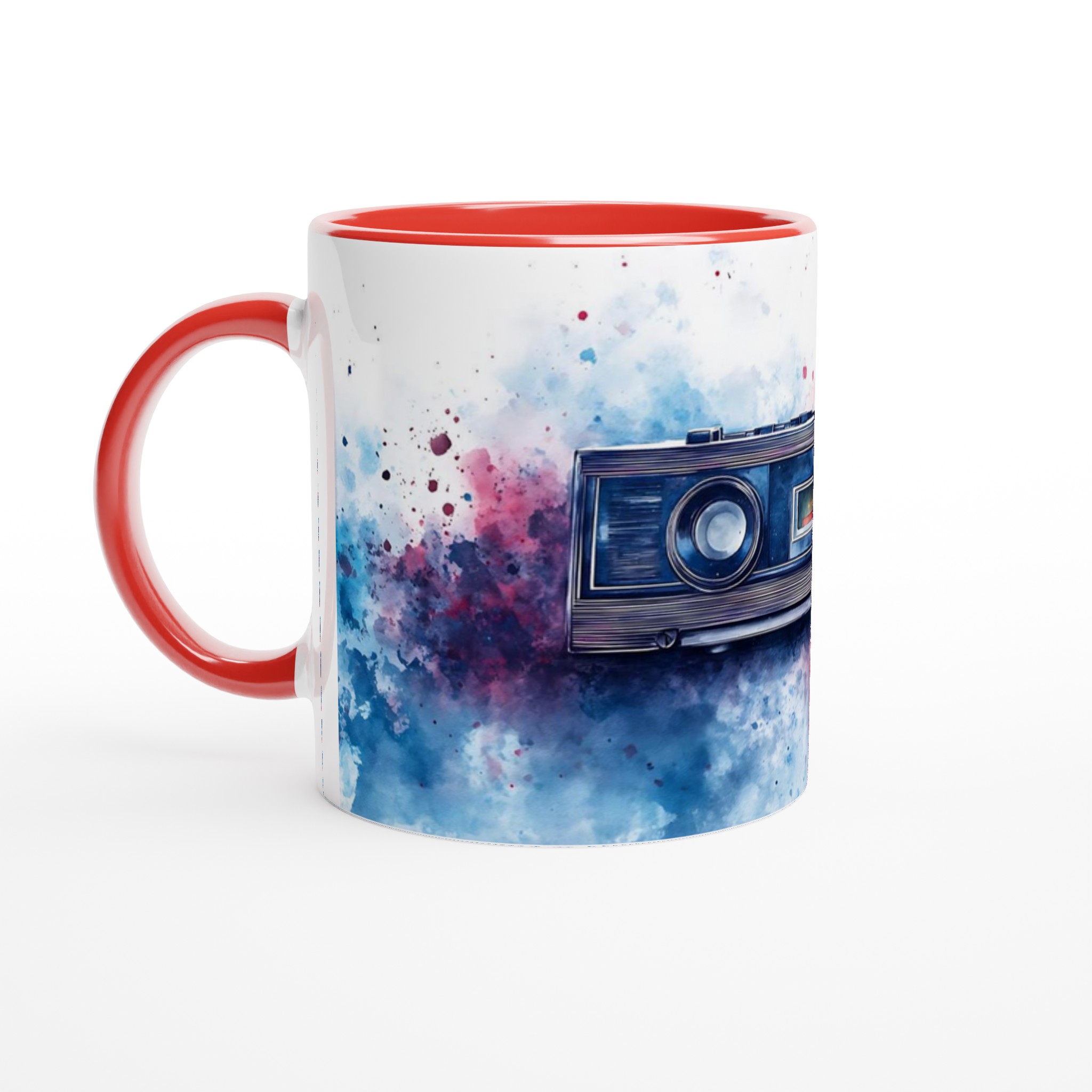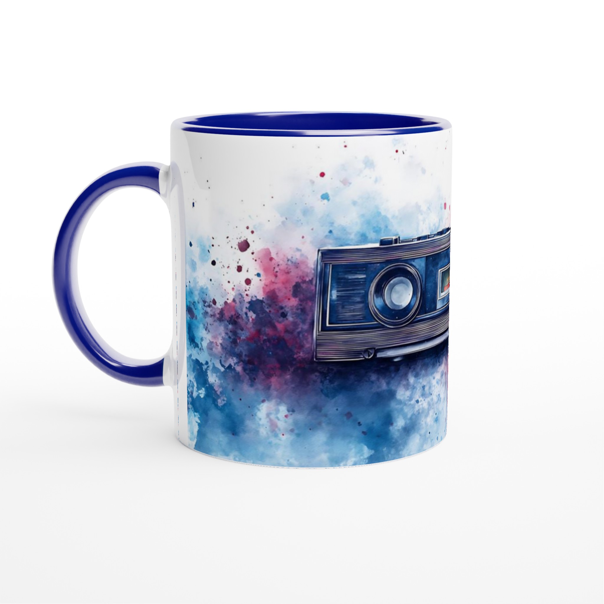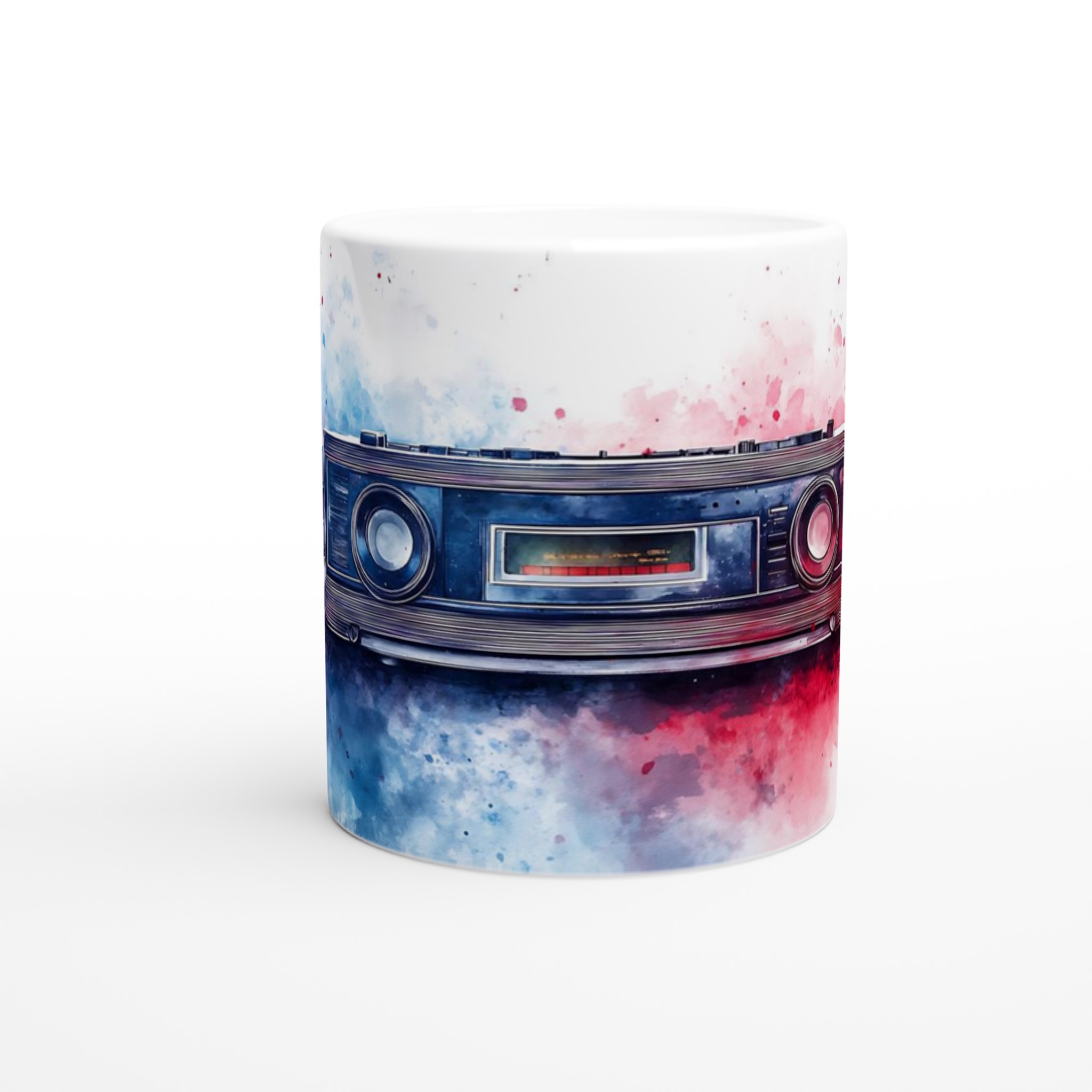 Retro Boombox & Watercolor Splatter Mug – Everyday Favorite Ceramic 11oz, in your choice of vibrant colors