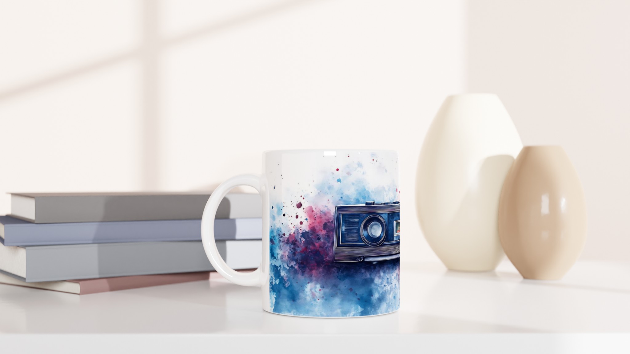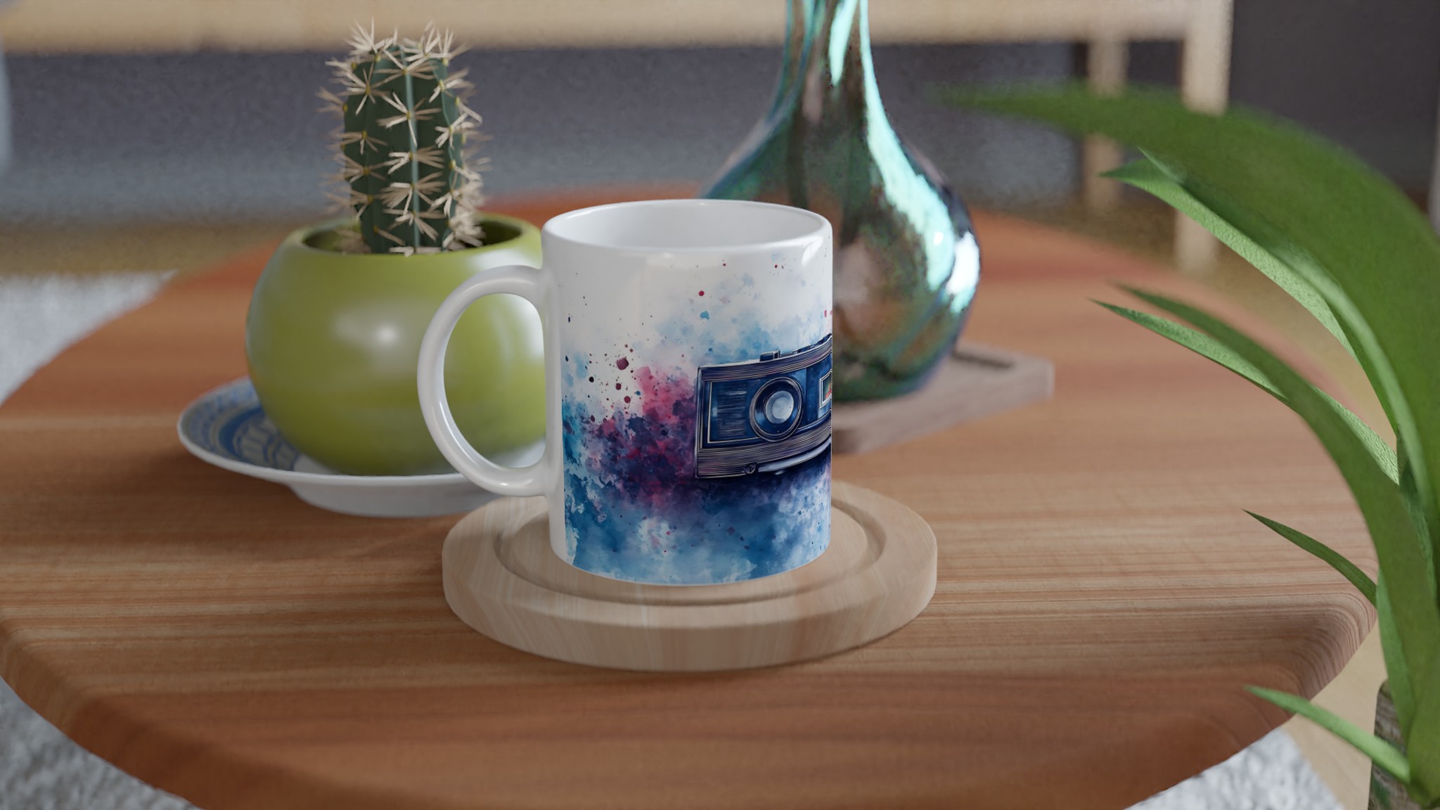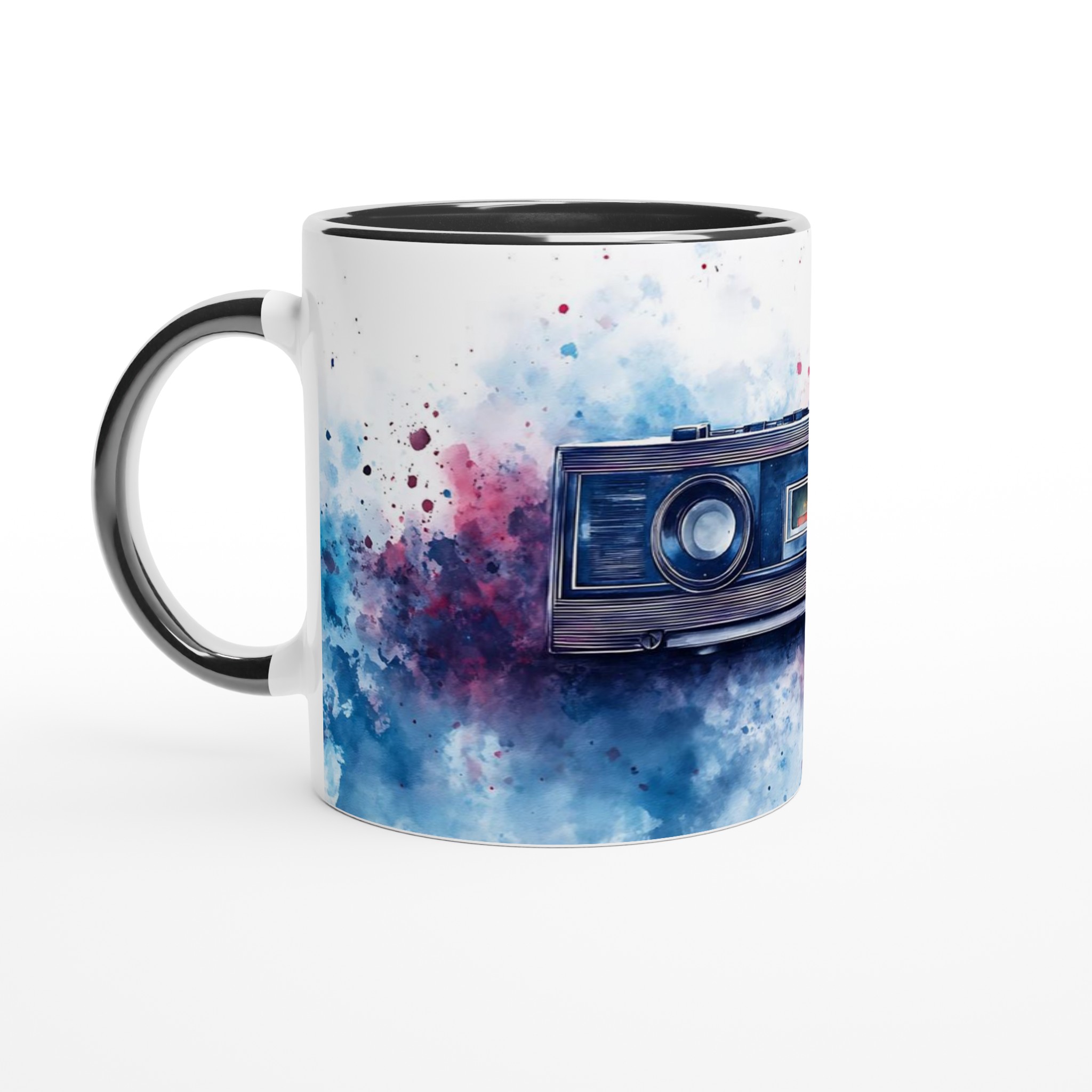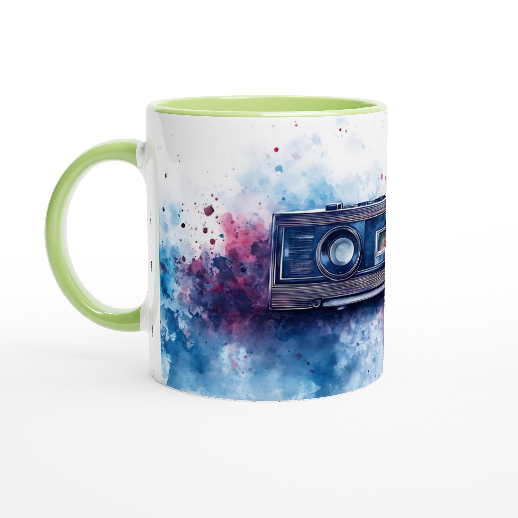 Retro Boombox & Watercolor Splatter Mug – Everyday Favorite Ceramic 11oz, in your choice of vibrant colors