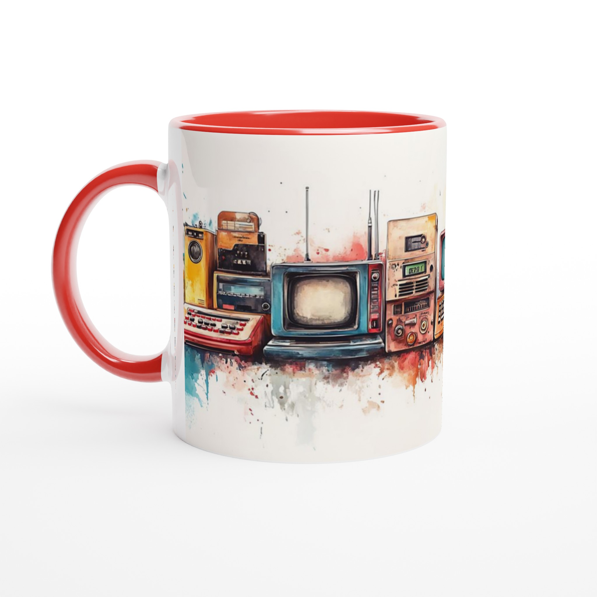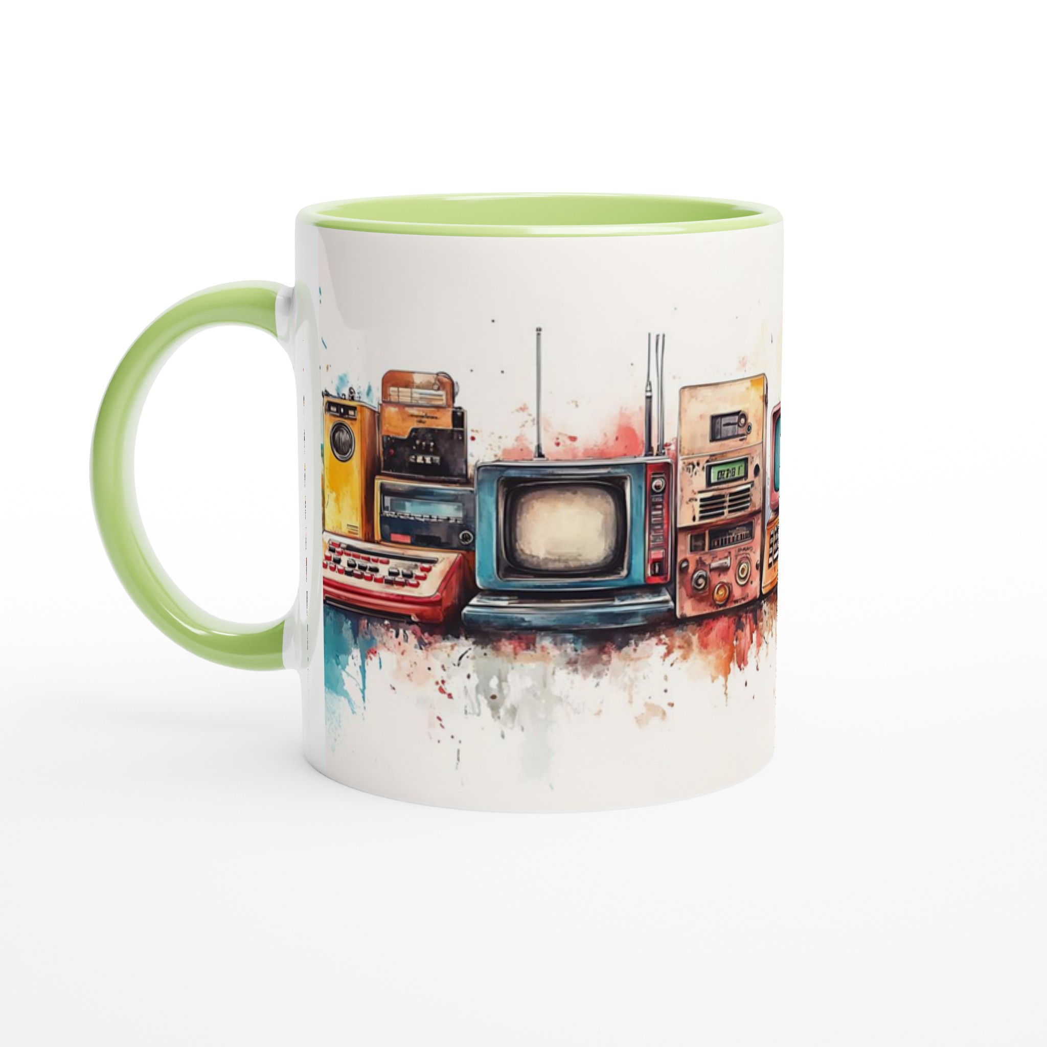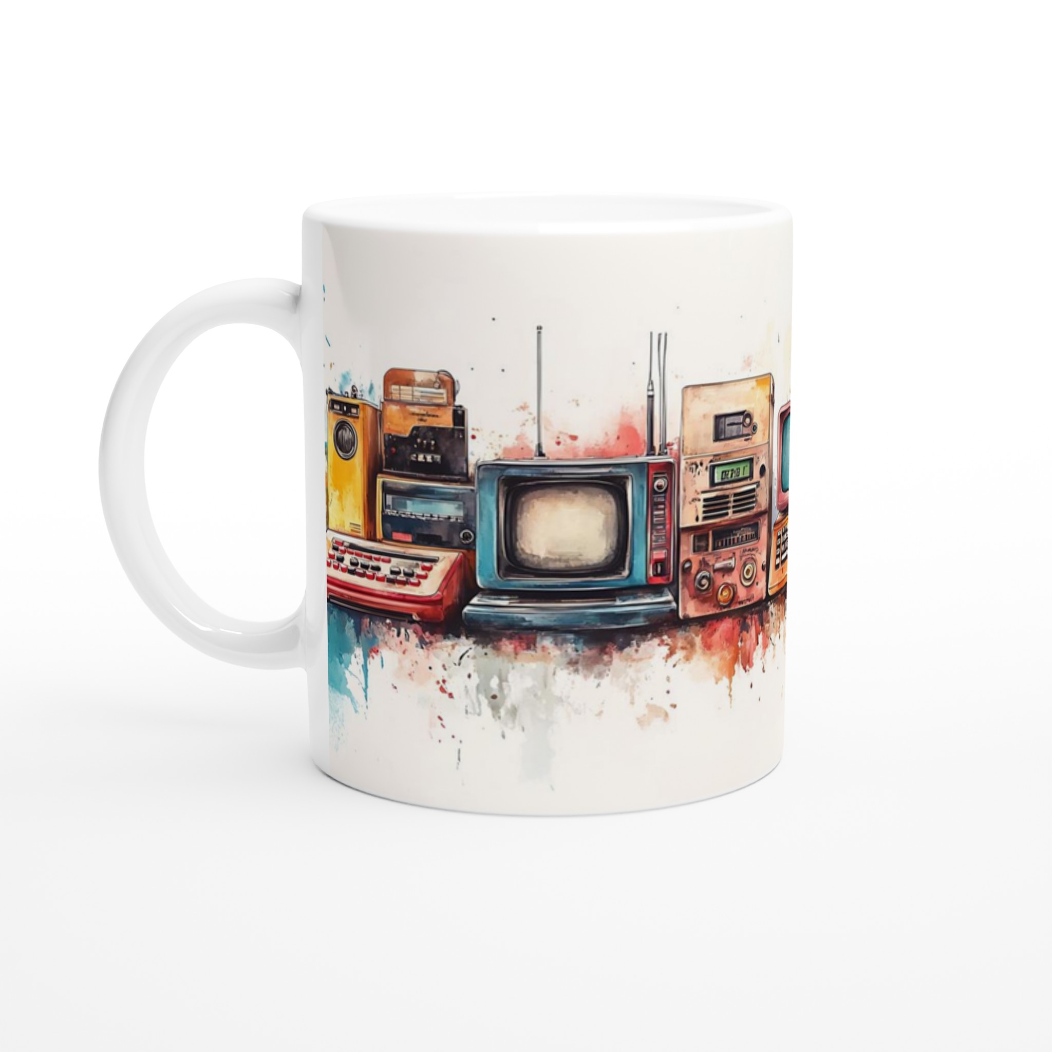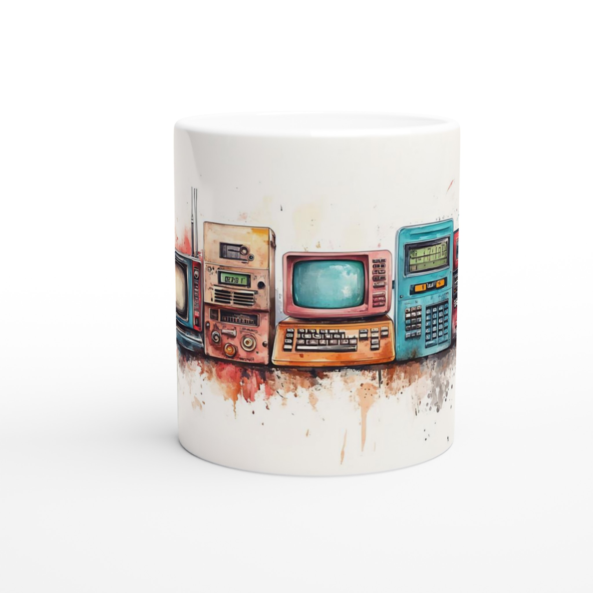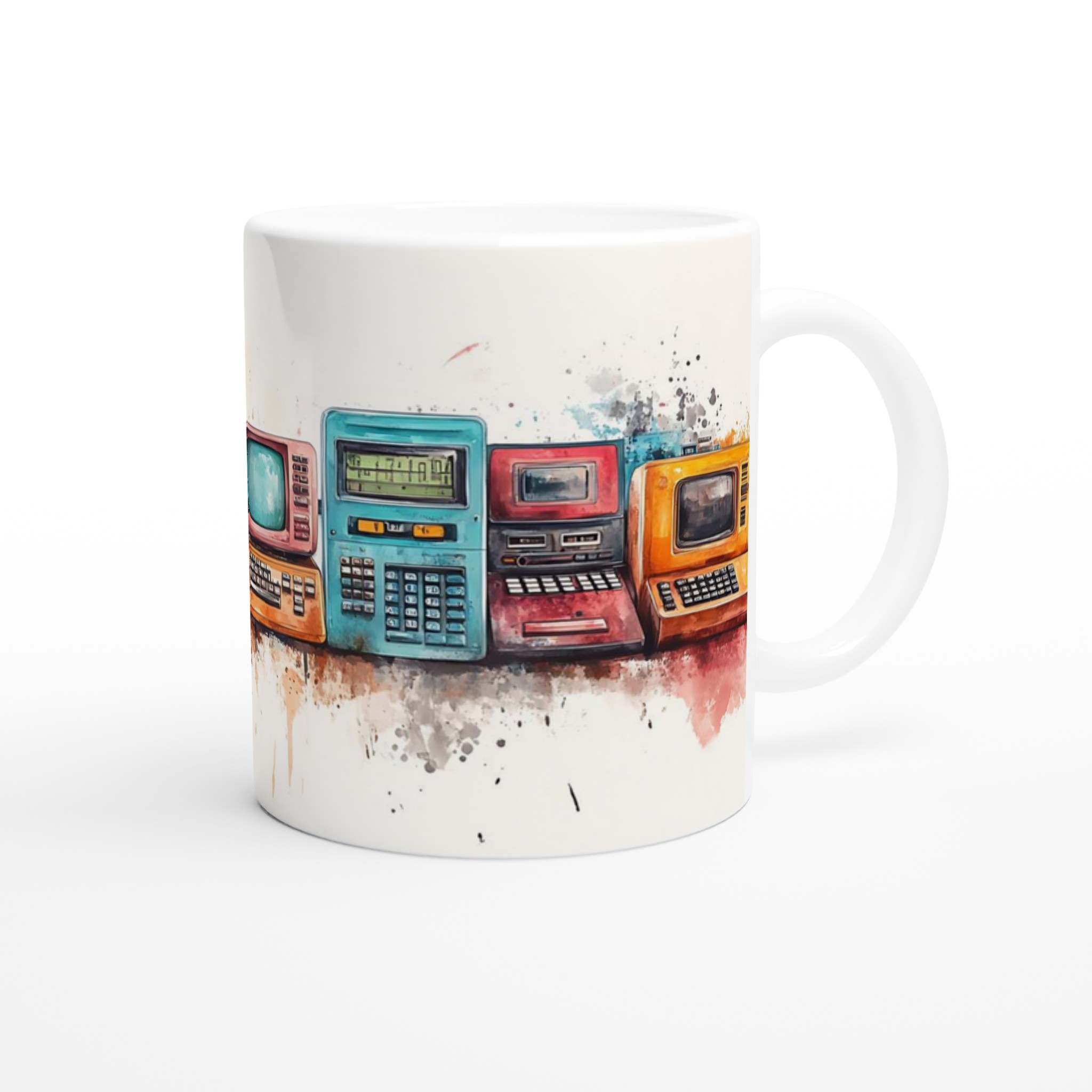 Retro Tech Watercolor – 11oz Ceramic Mug in Your Choice of Seven Vibrant Hues