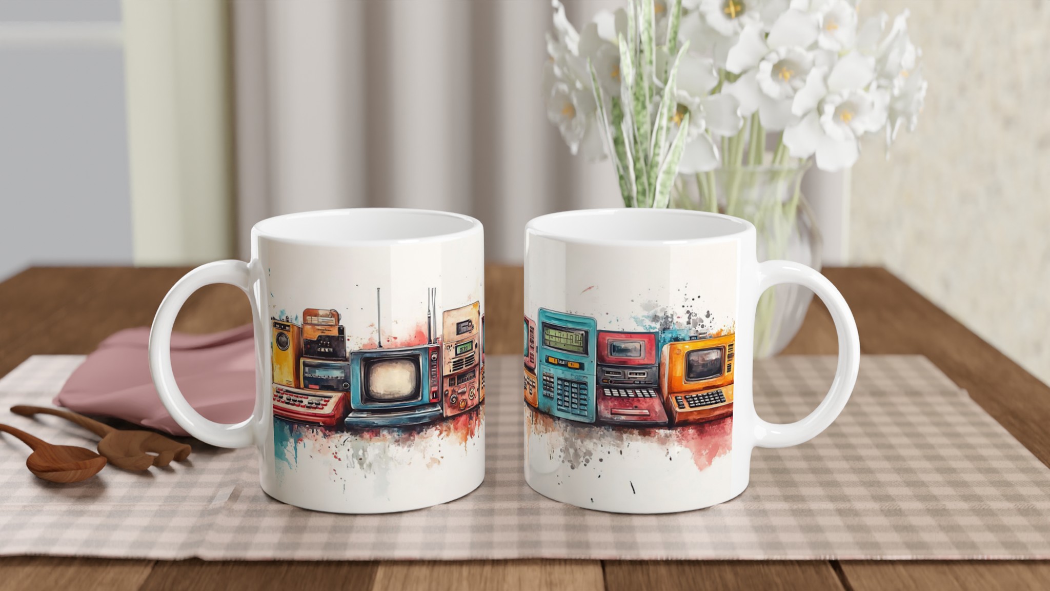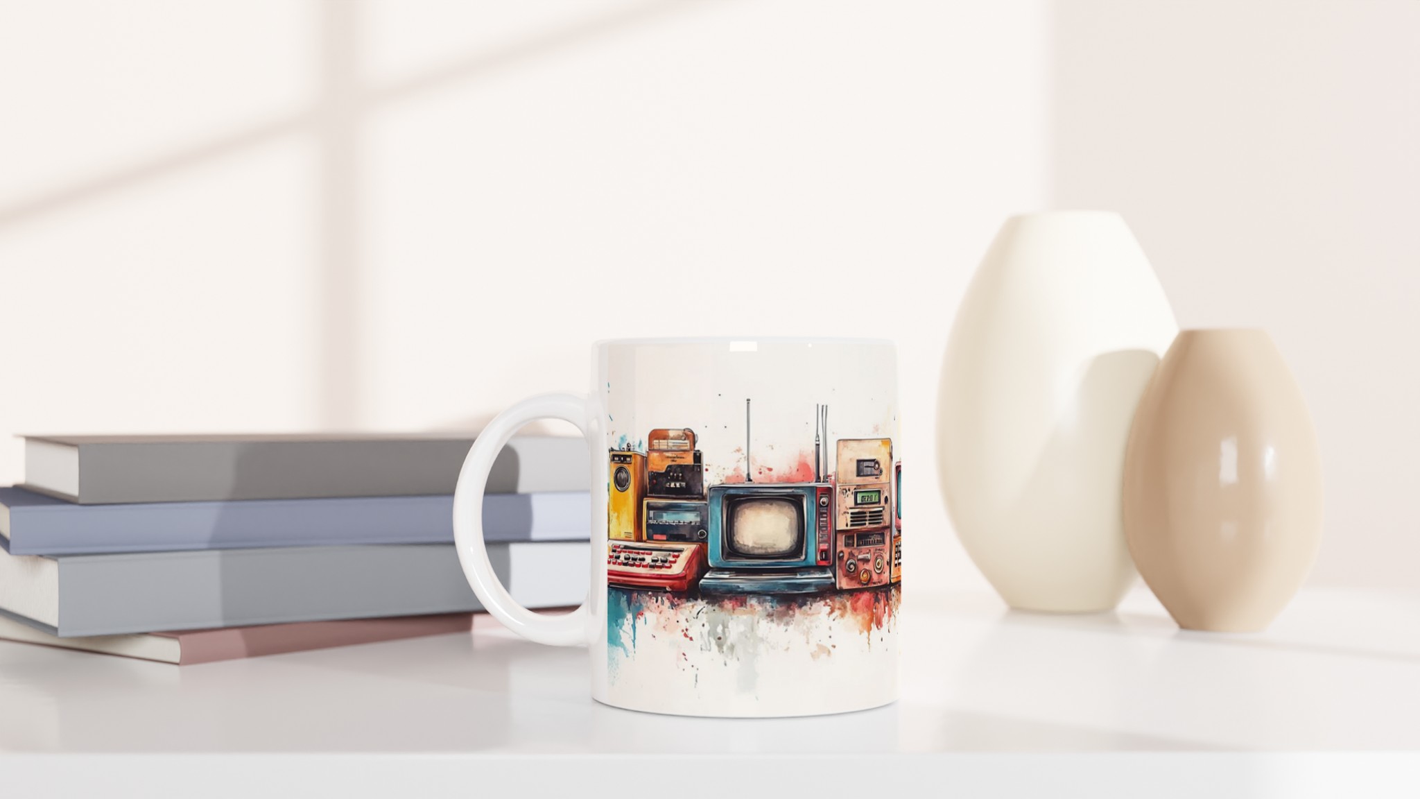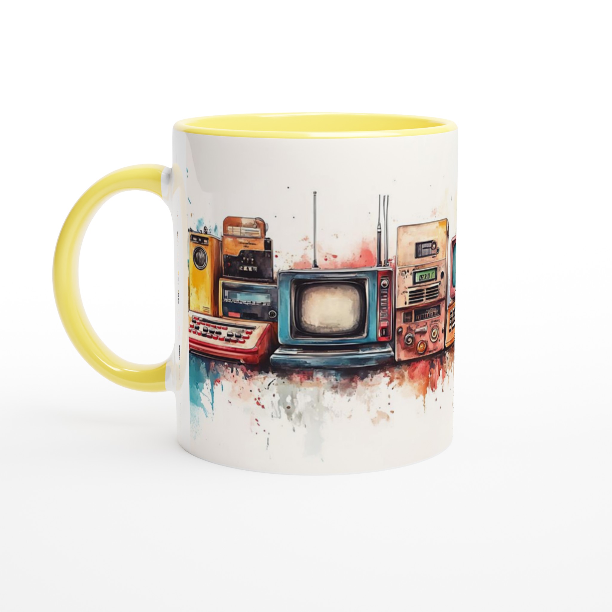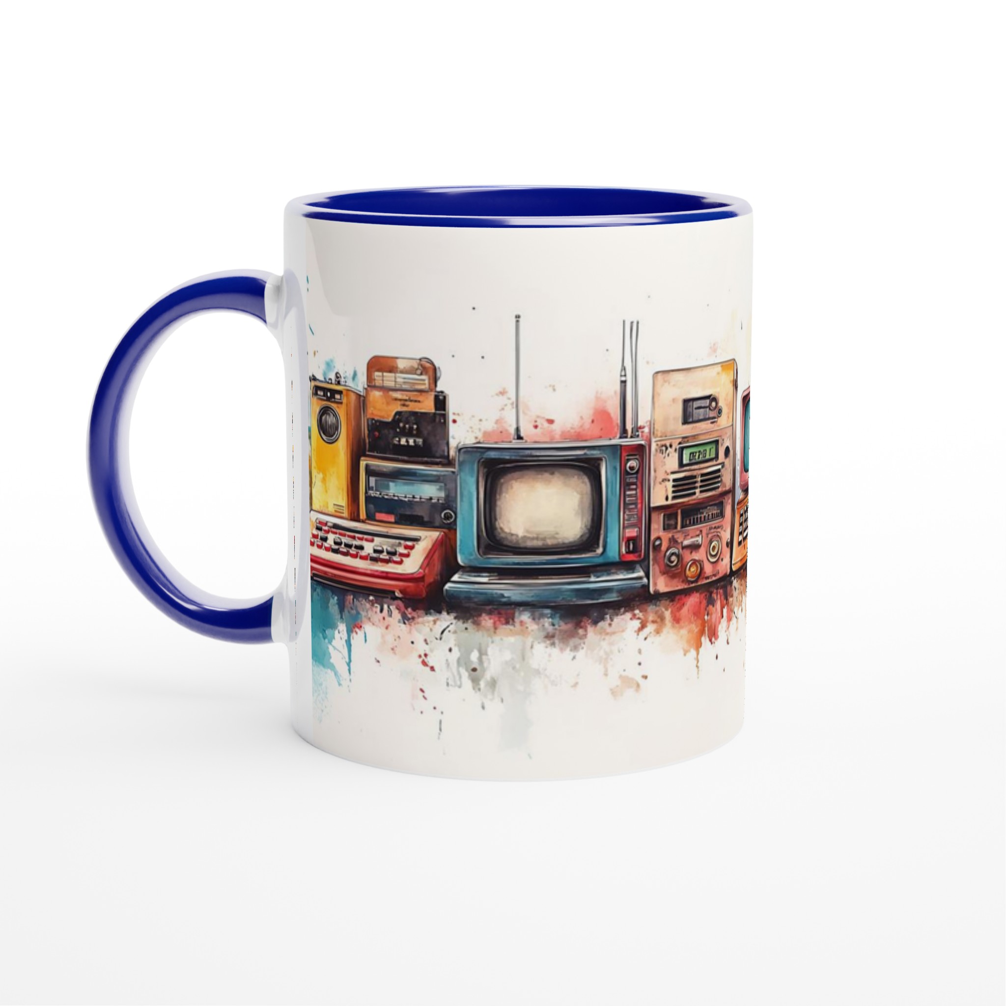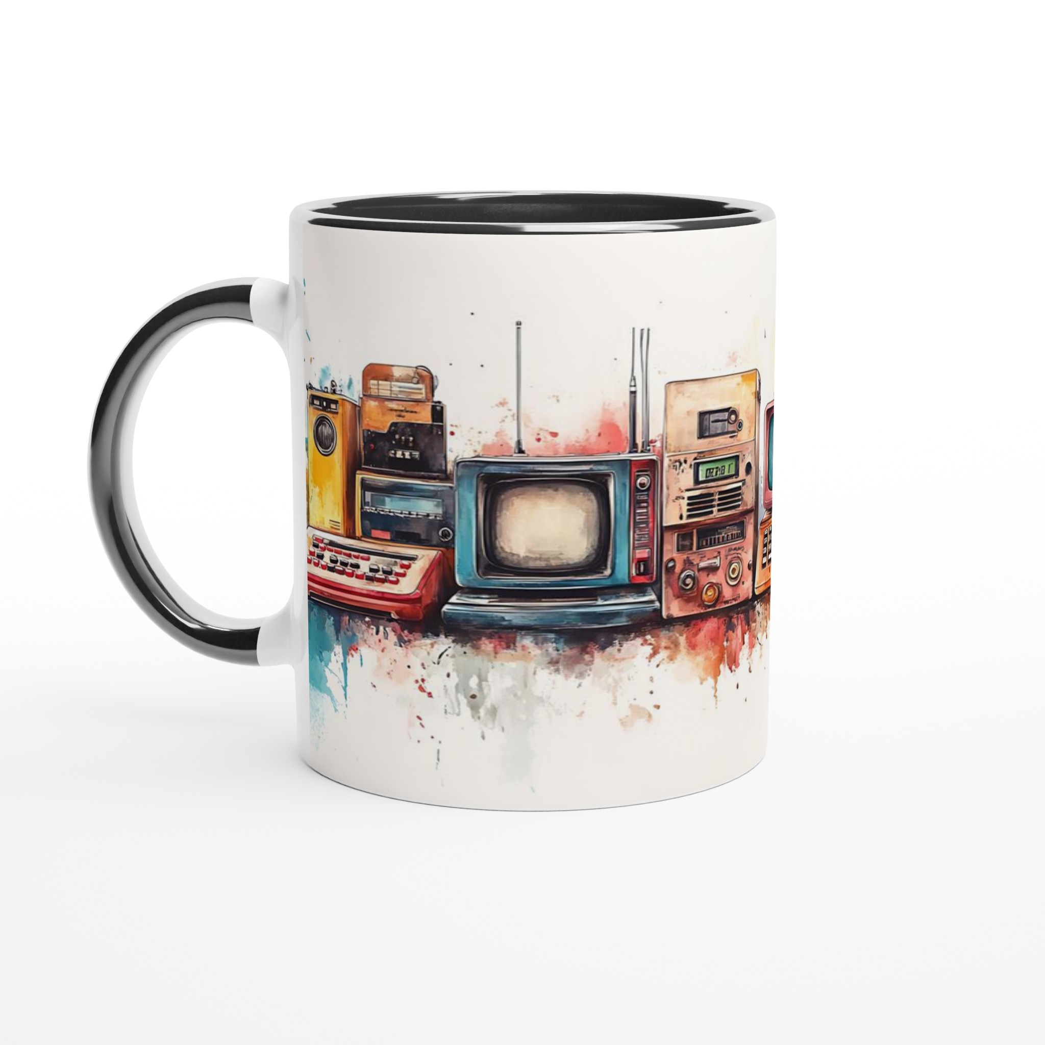 Retro Tech Watercolor – 11oz Ceramic Mug in Your Choice of Seven Vibrant Hues
