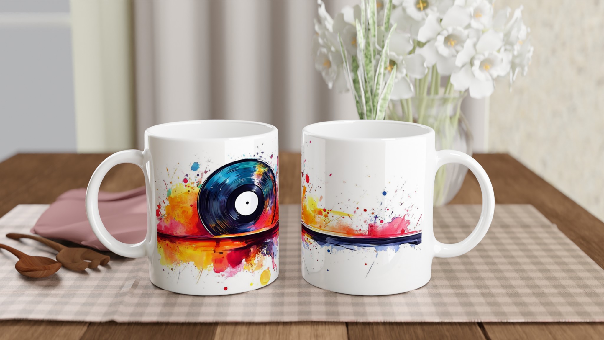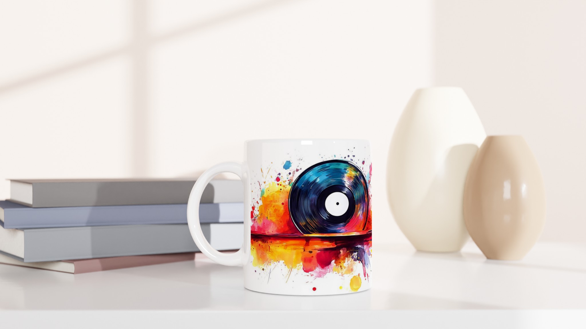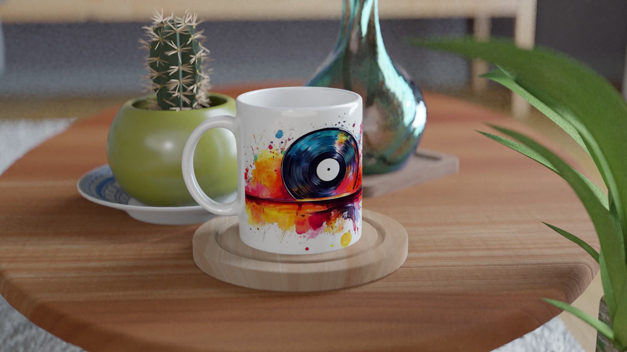 Vibrant Vinyl Groove – Artful Ceramic Mug 11oz in your choice of seven radiant hues