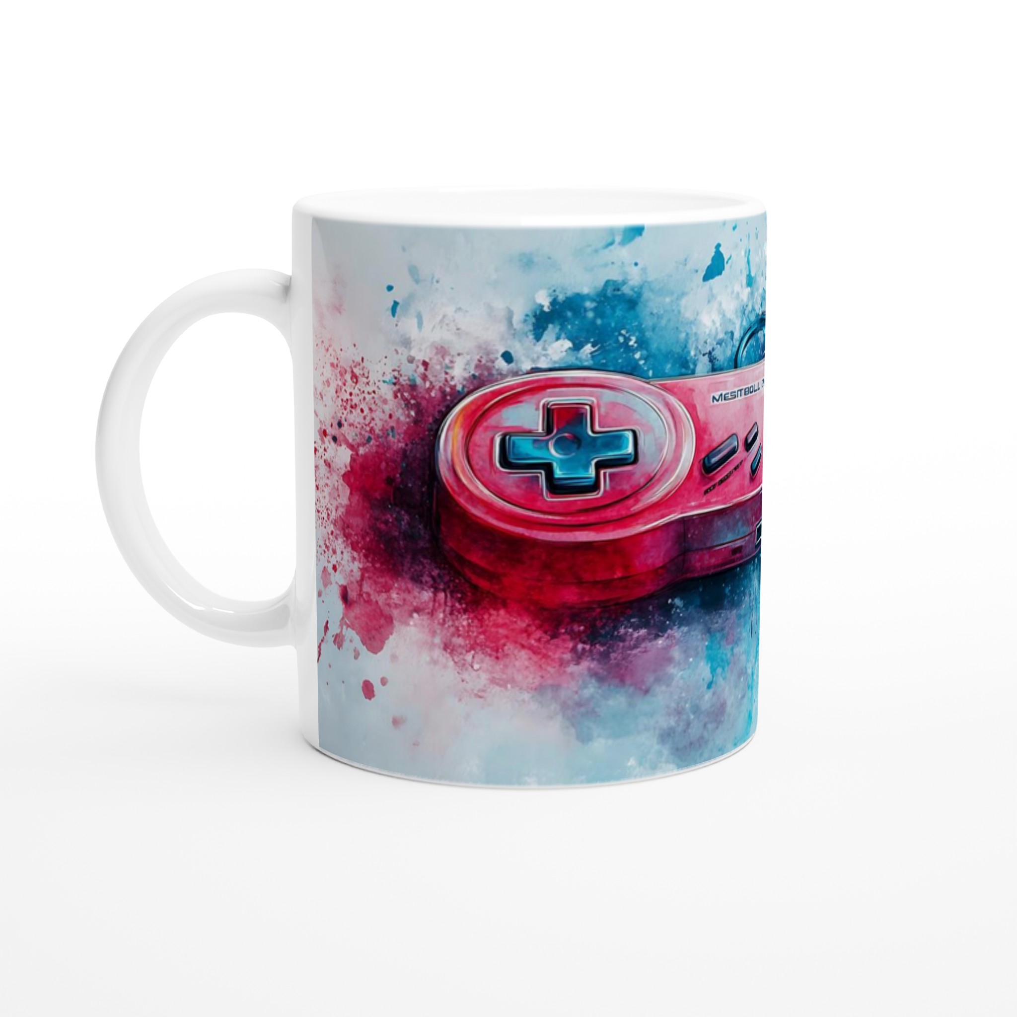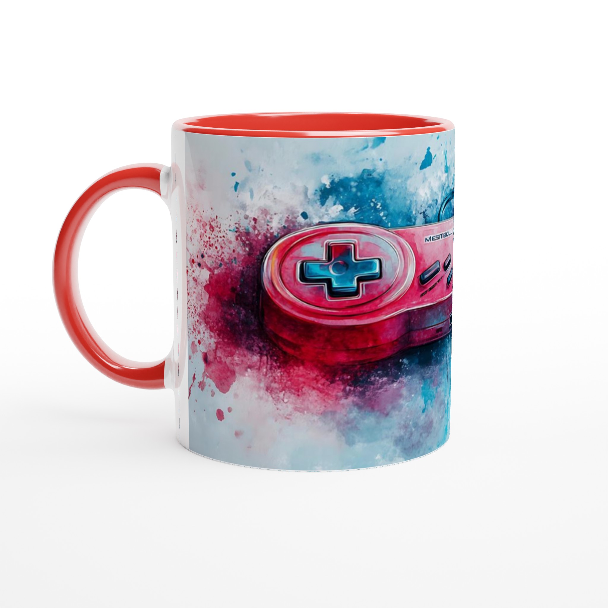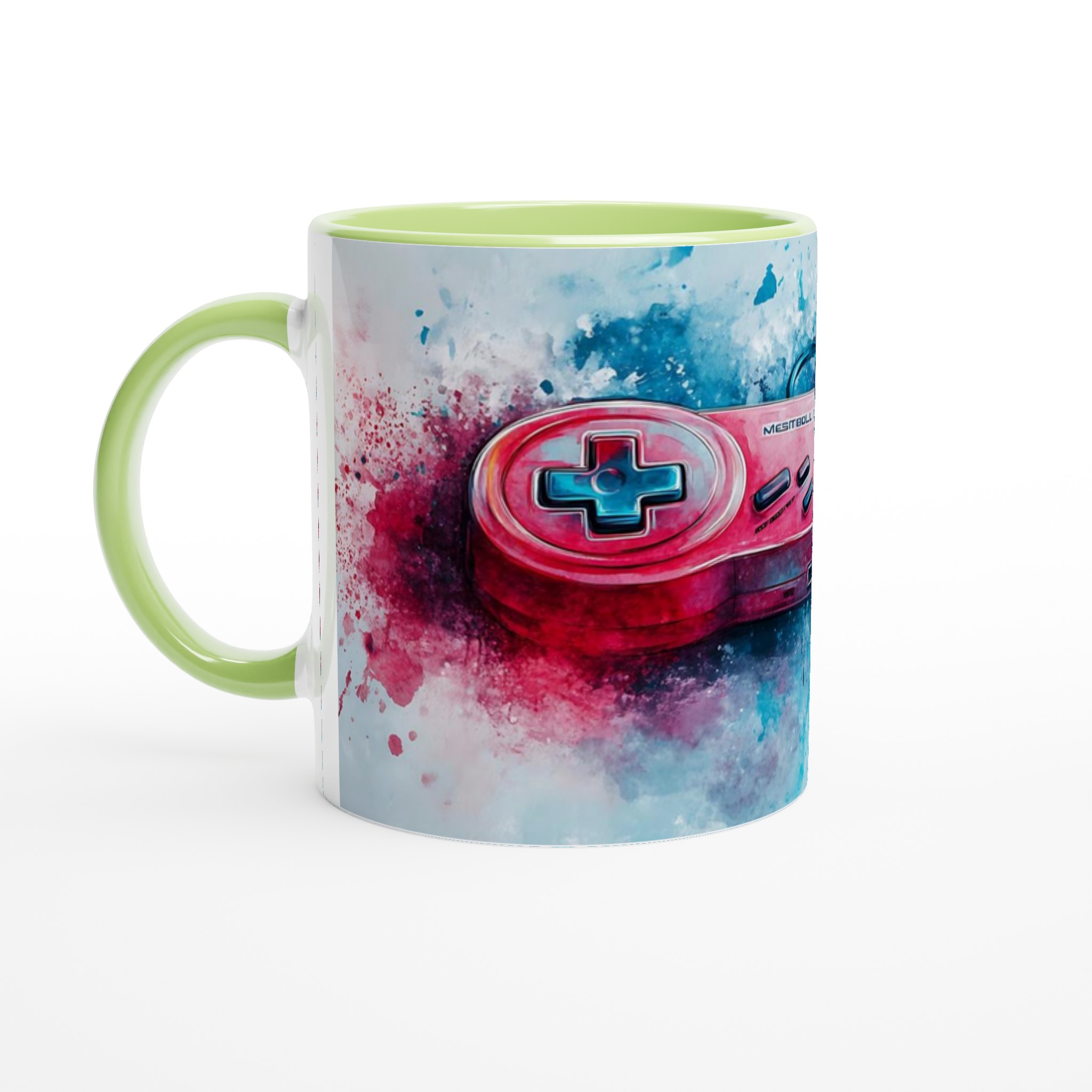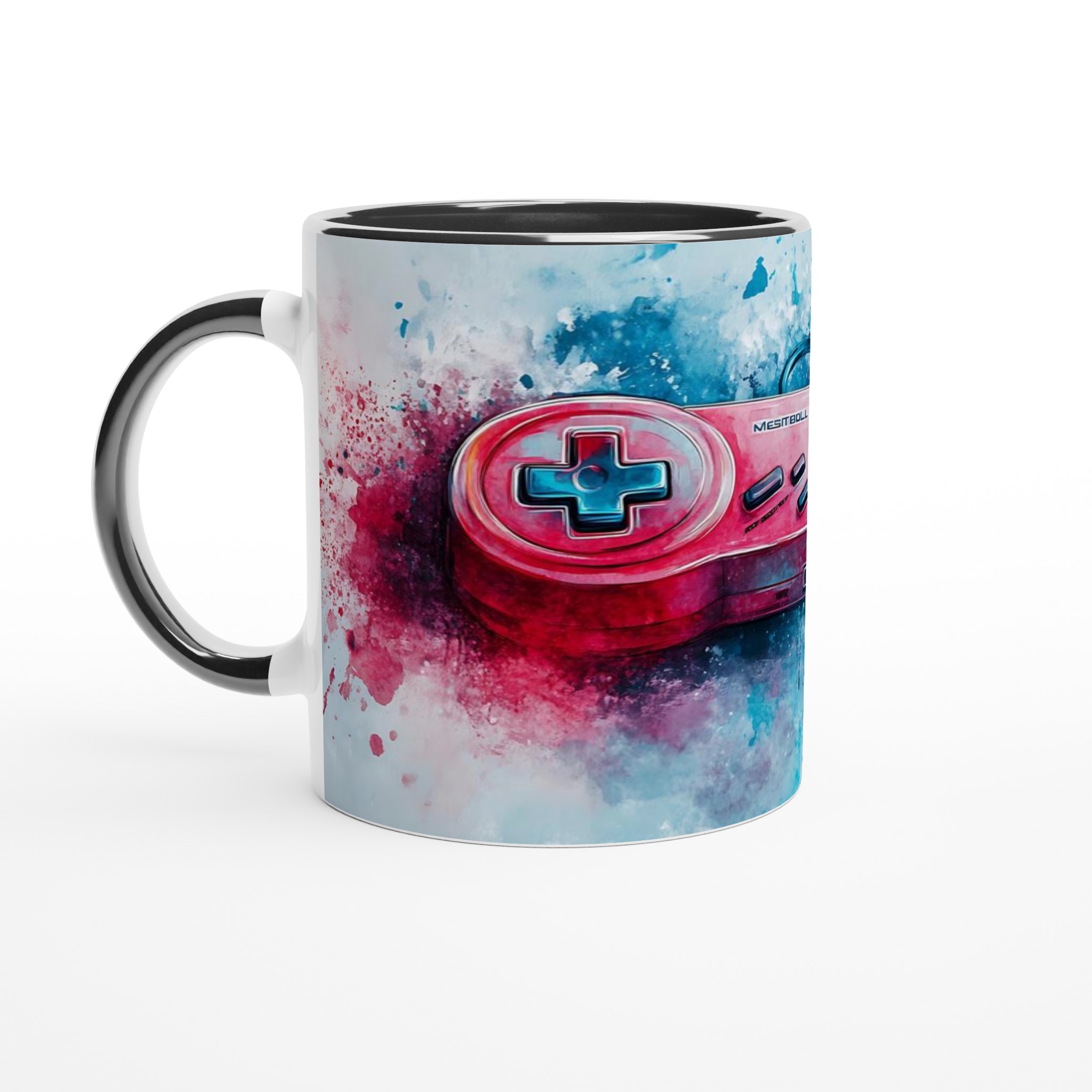 Retro Gamer’s Dream – Watercolor Splash Ceramic Mug 11oz, in your choice of seven vibrant shades