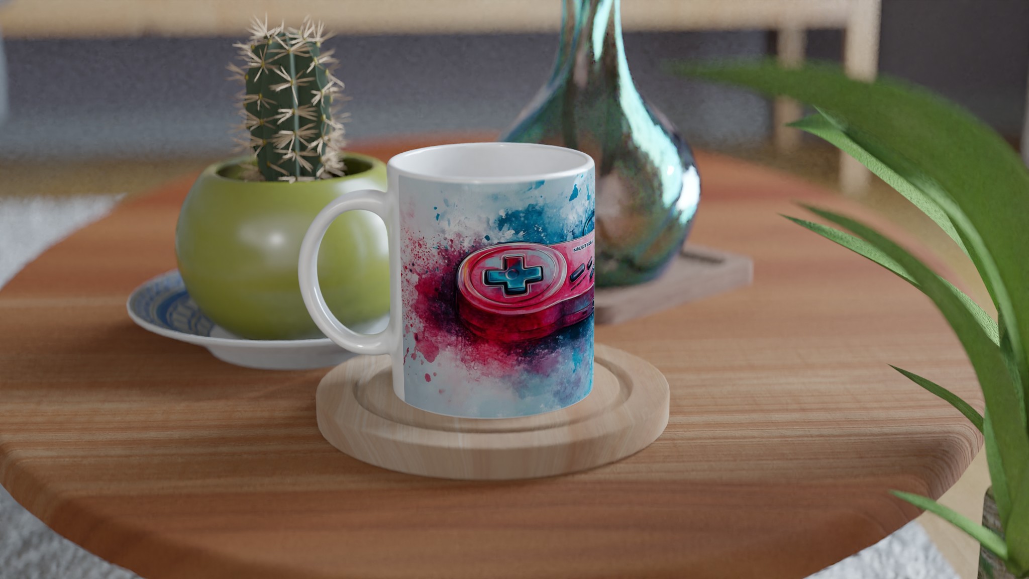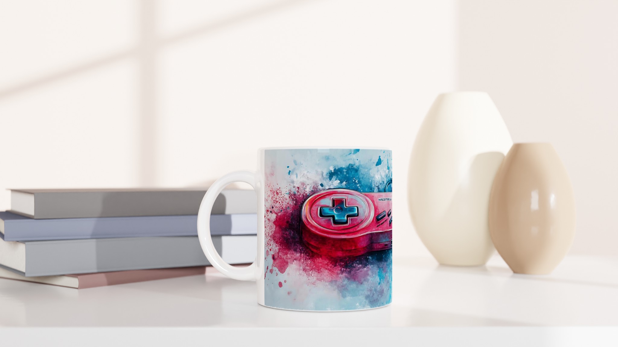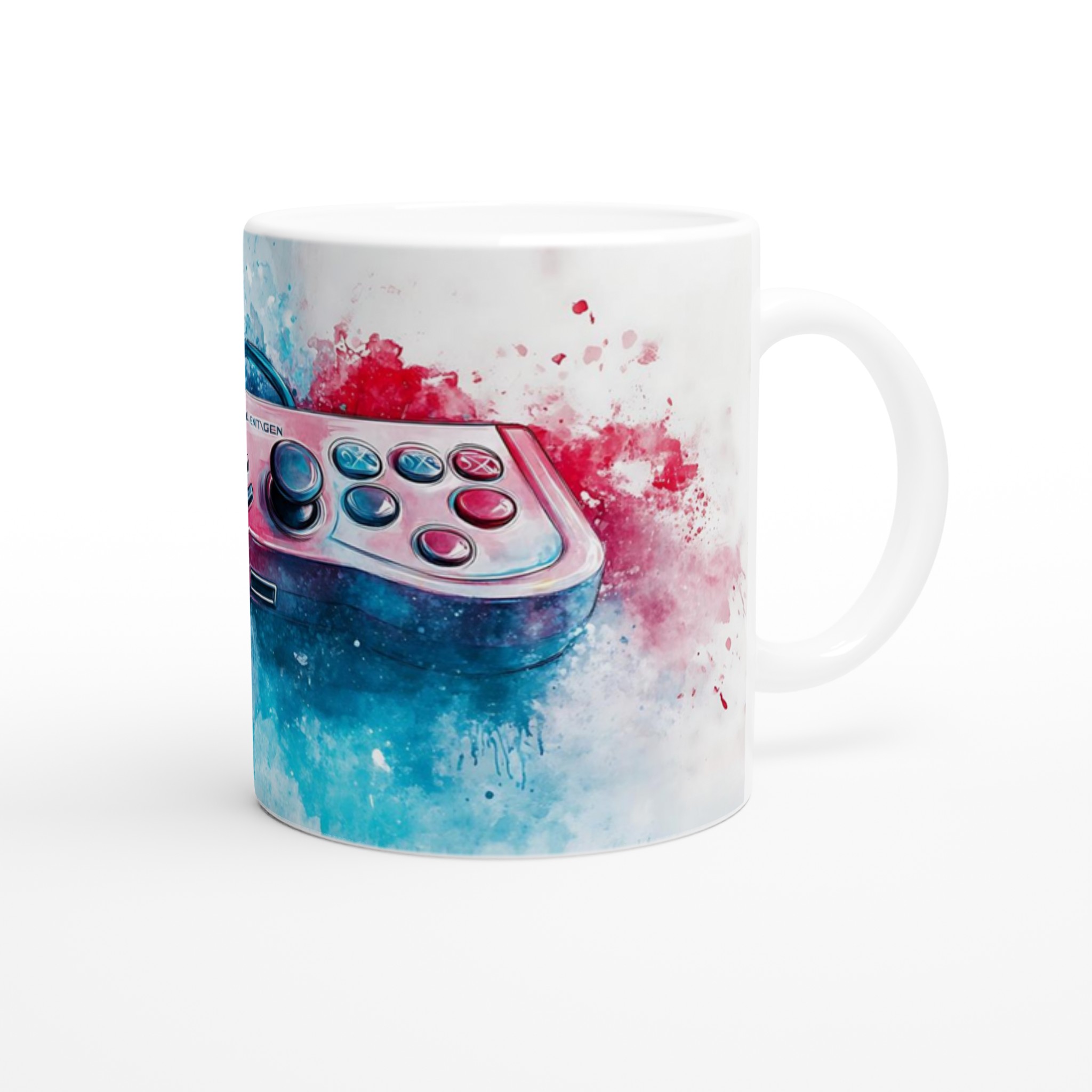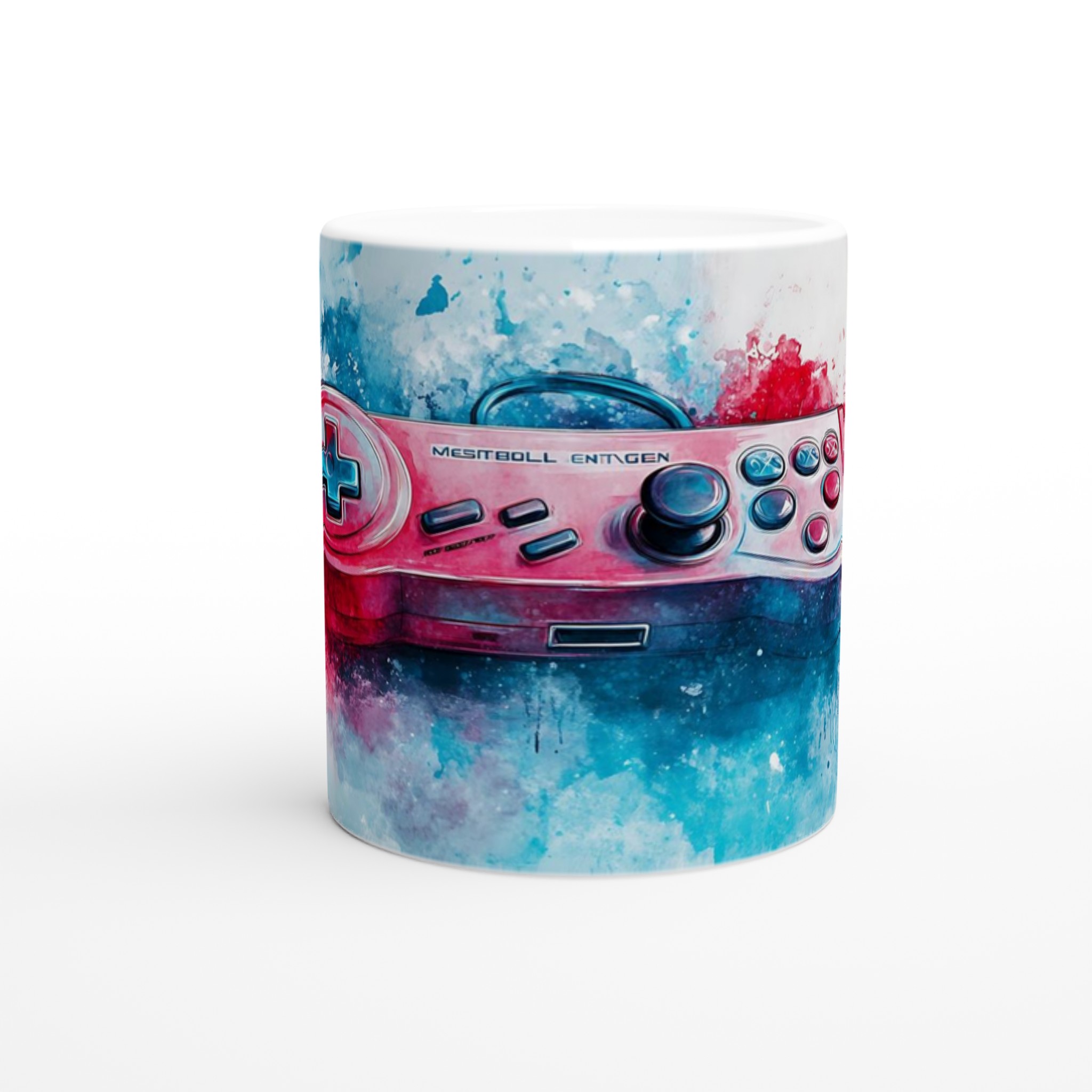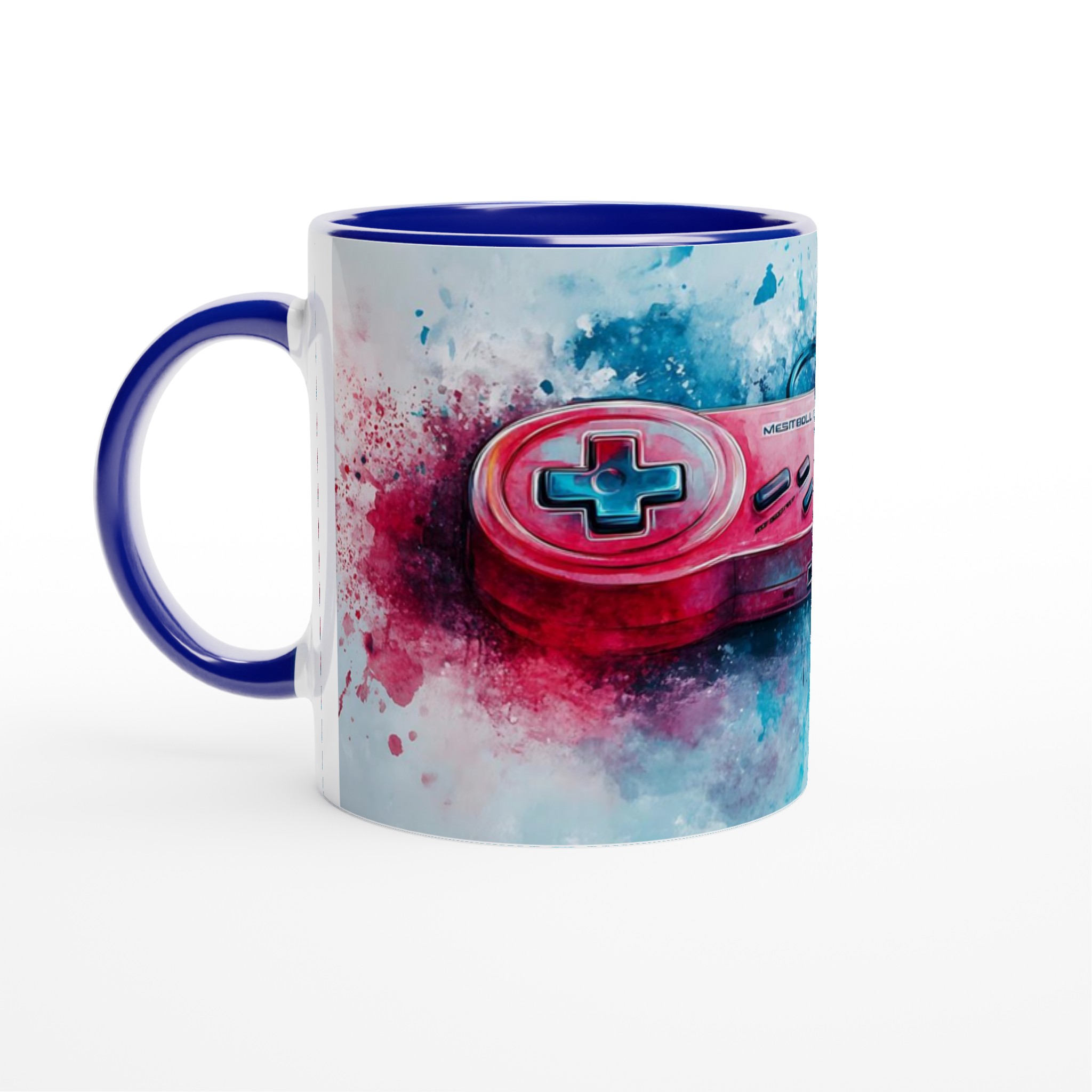 Retro Gamer’s Dream – Watercolor Splash Ceramic Mug 11oz, in your choice of seven vibrant shades