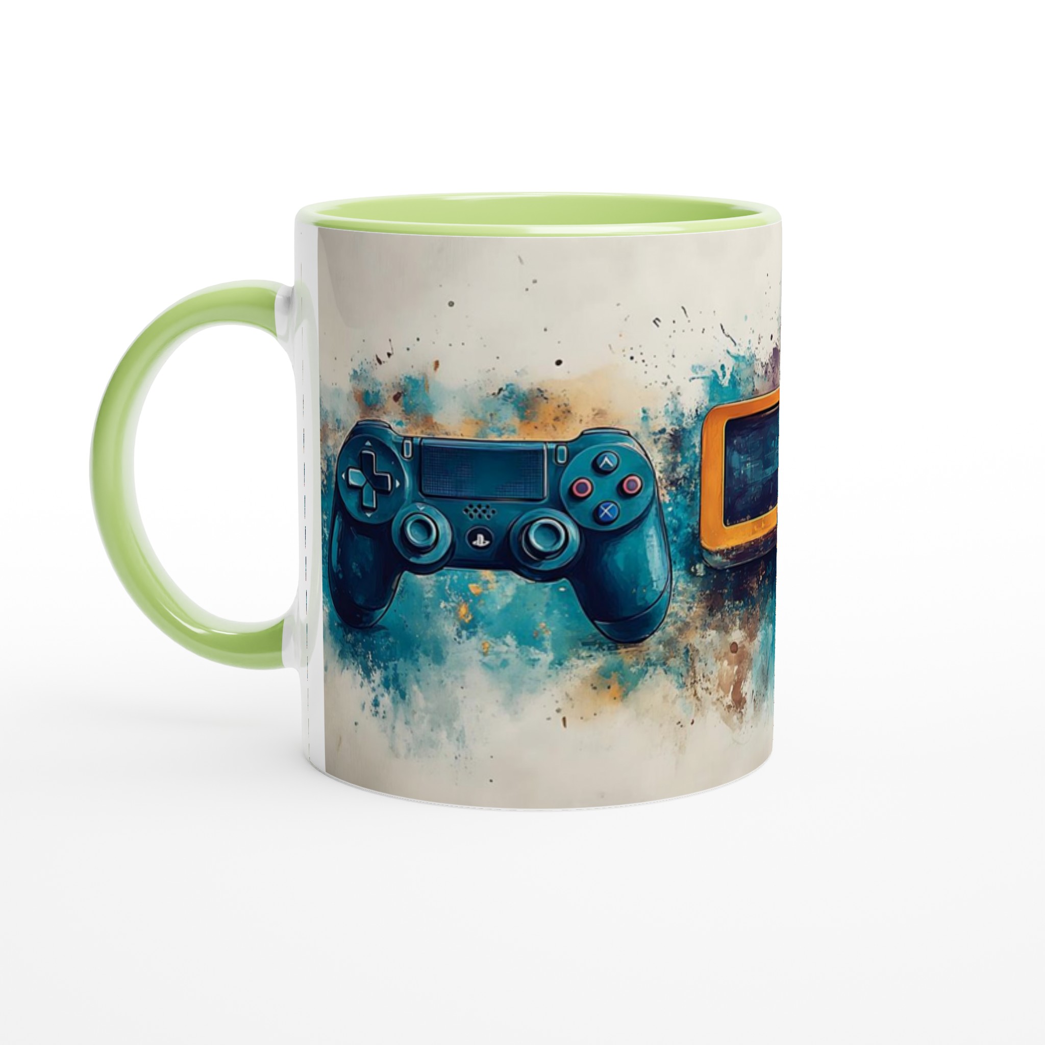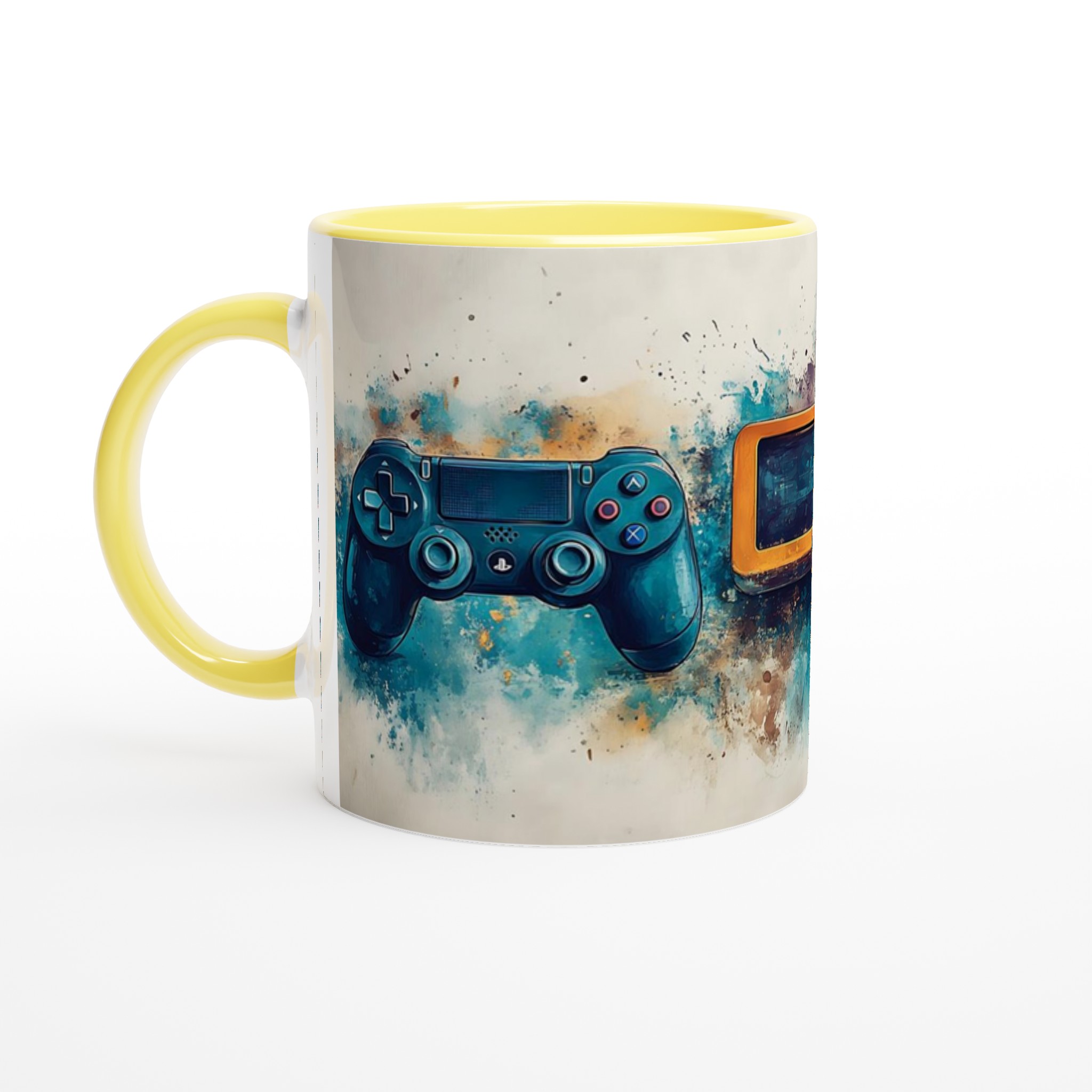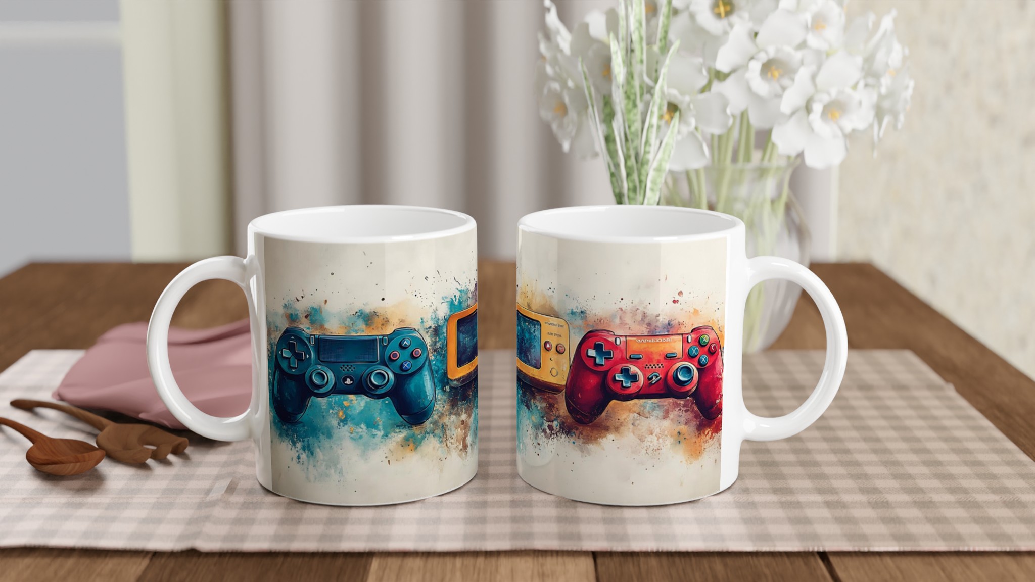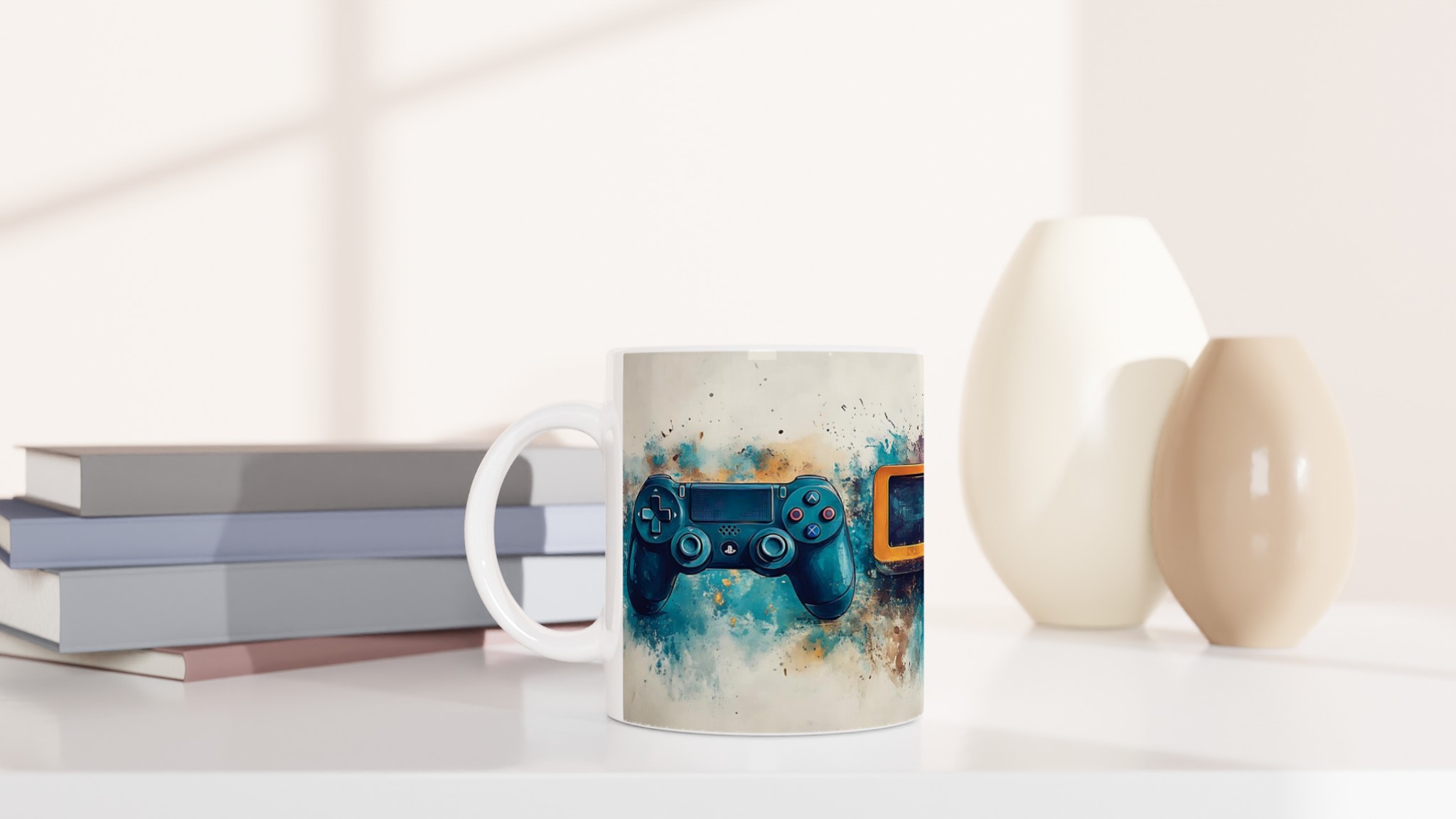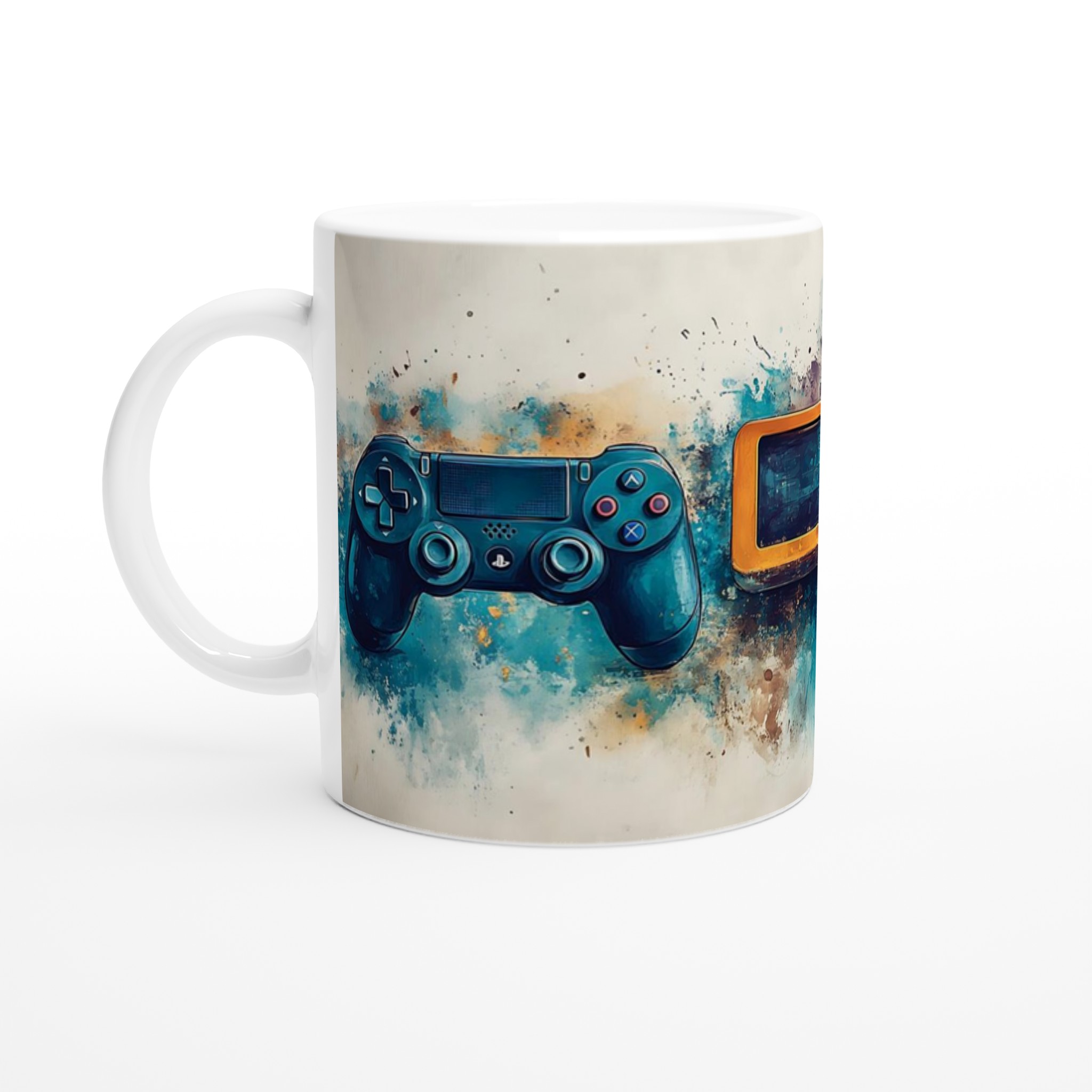 Retro Gamer Art – White Ceramic Mug 11oz, Perfect for Gamers & Art Enthusiasts