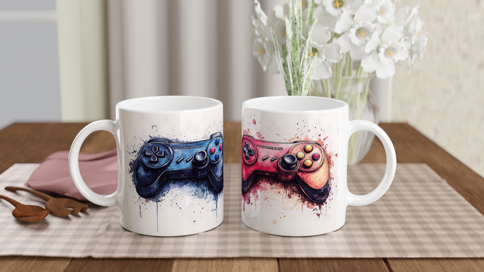 Gamer’s Watercolor Splash – Ceramic Mug 11oz: Vibrant Gaming Art in Your Choice of 7 Colors