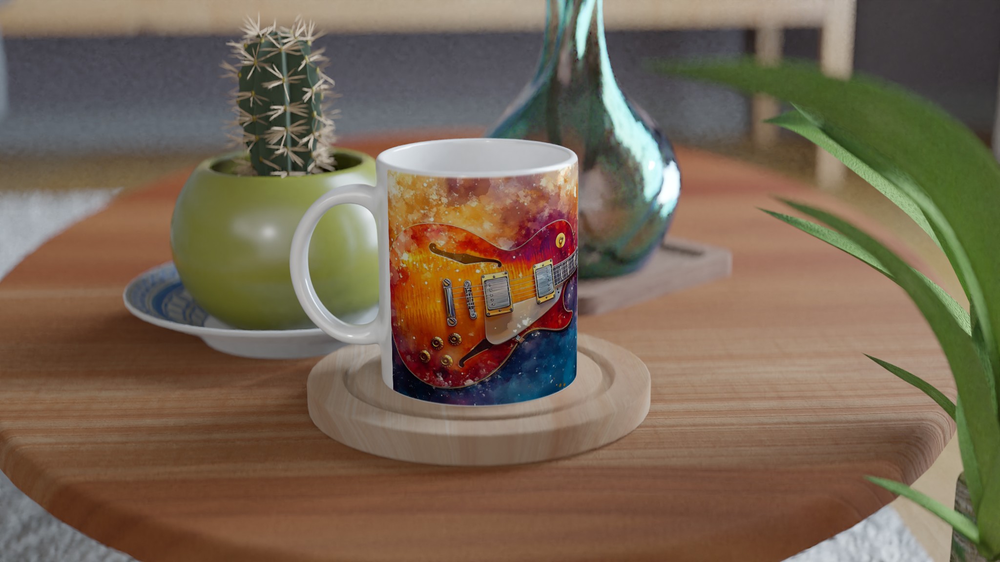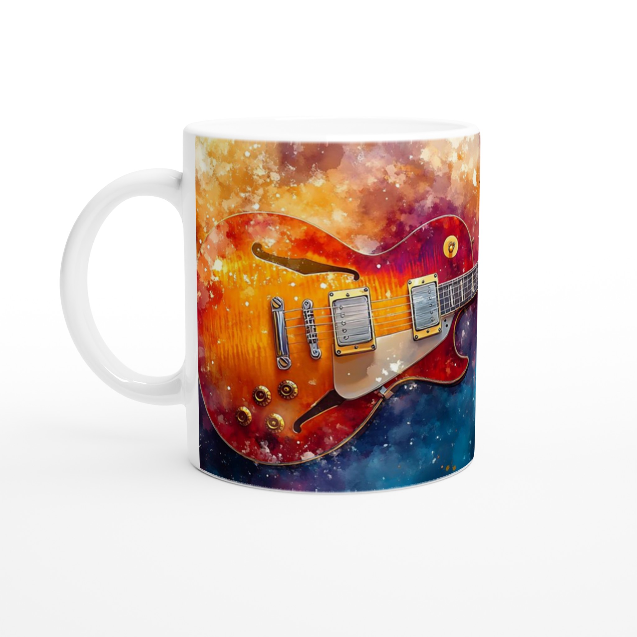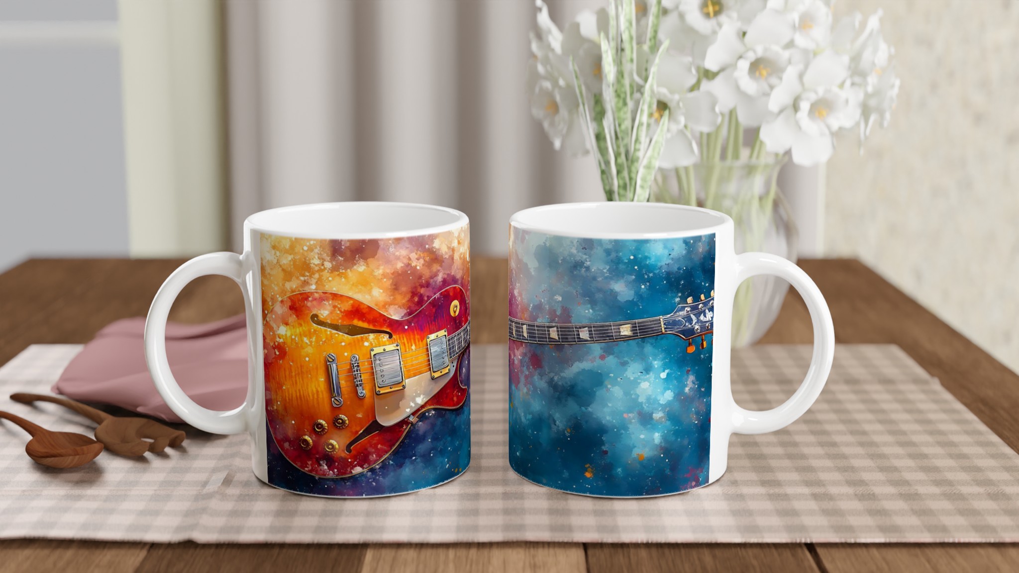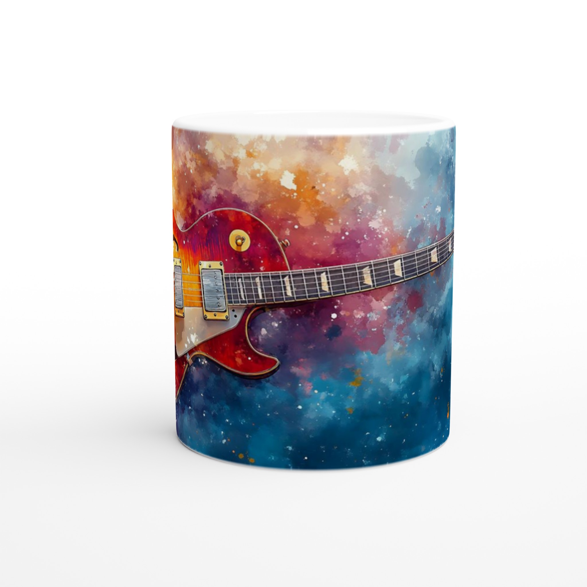 Cosmic Electric Guitar – Premium Ceramic Mug 11oz, in your choice of seven vibrant hues