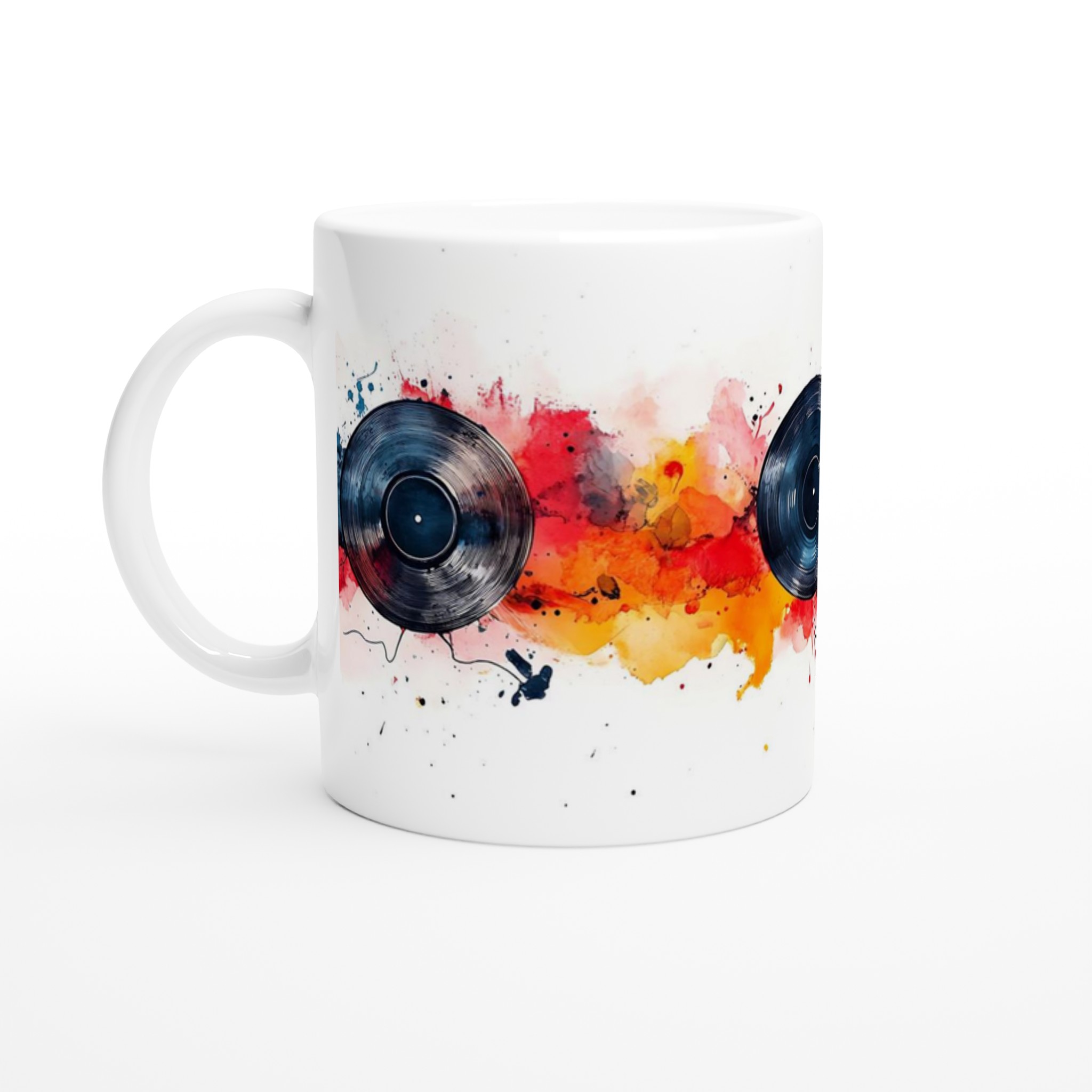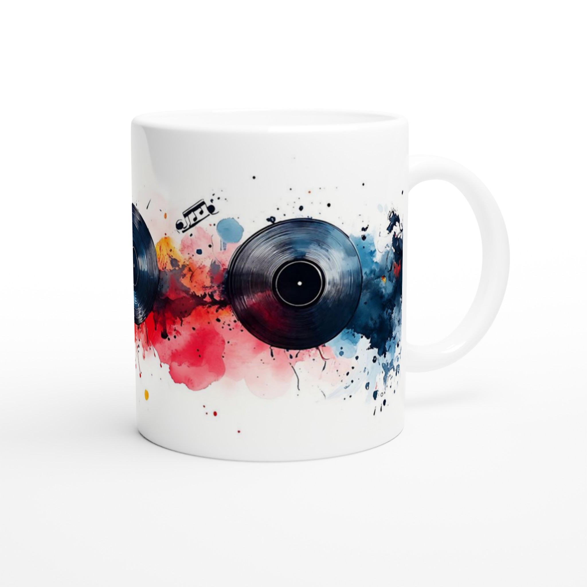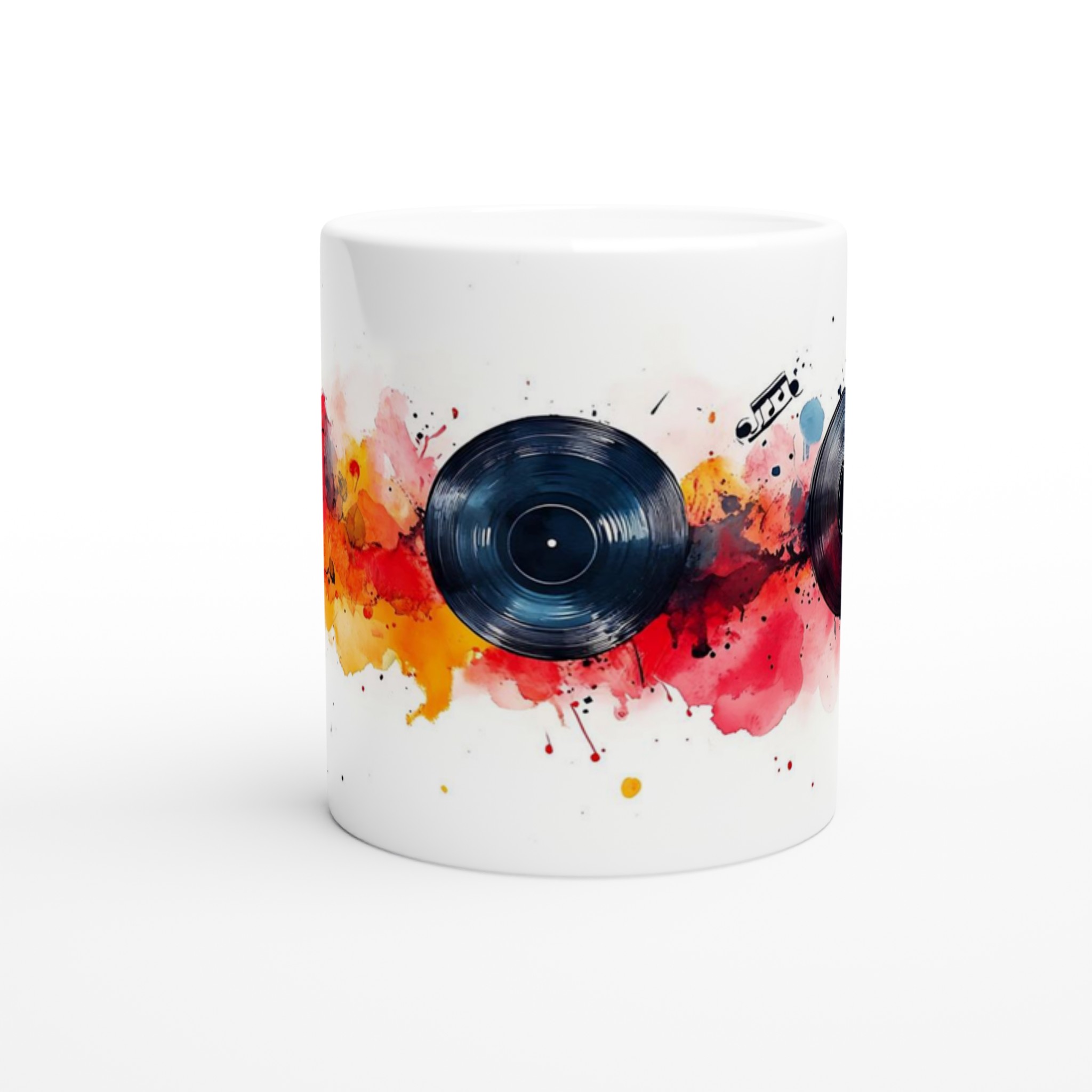 Vinyl Vibes Watercolor Art Mug – Everyday Favorite 11oz Ceramic Mug in Vibrant Hues