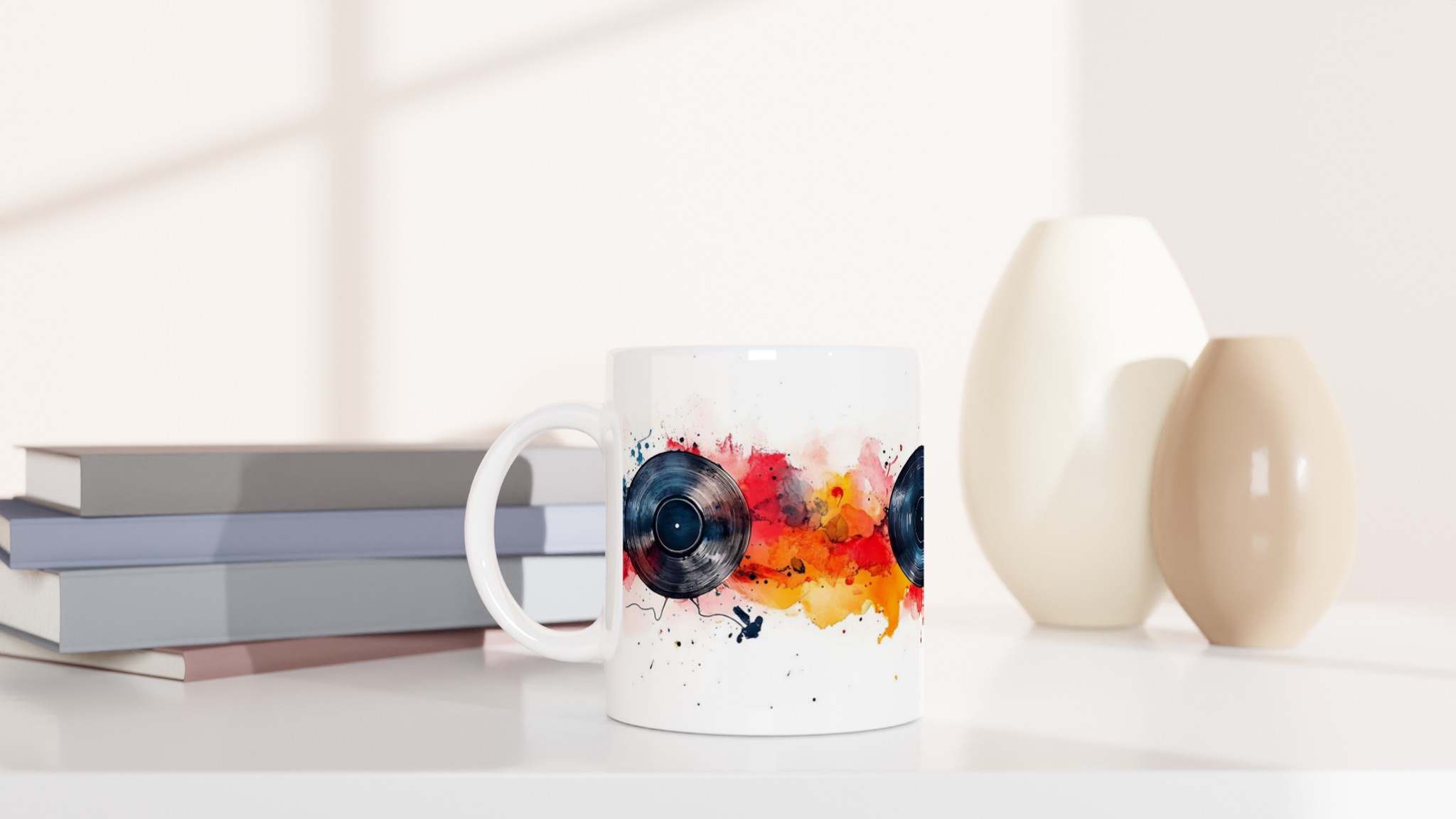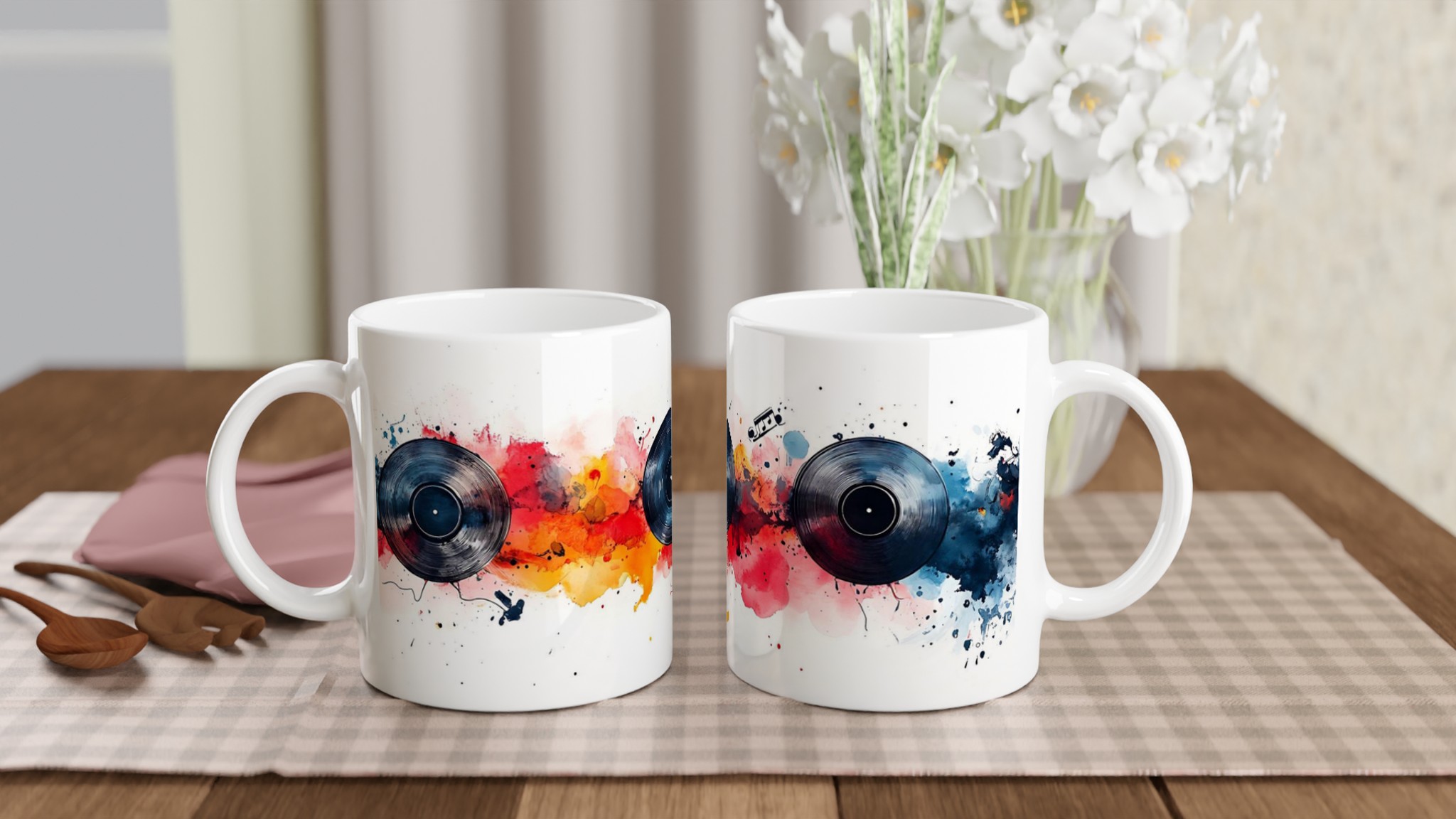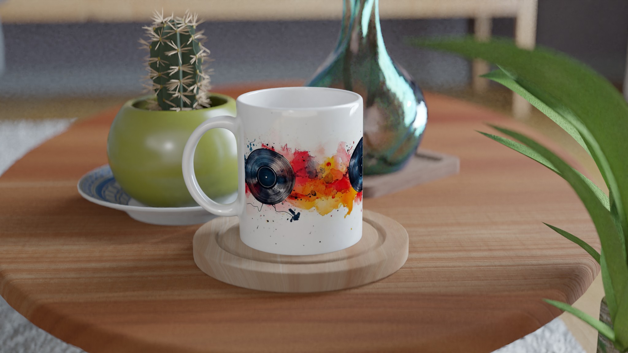 Vinyl Vibes Watercolor Art Mug – Everyday Favorite 11oz Ceramic Mug in Vibrant Hues