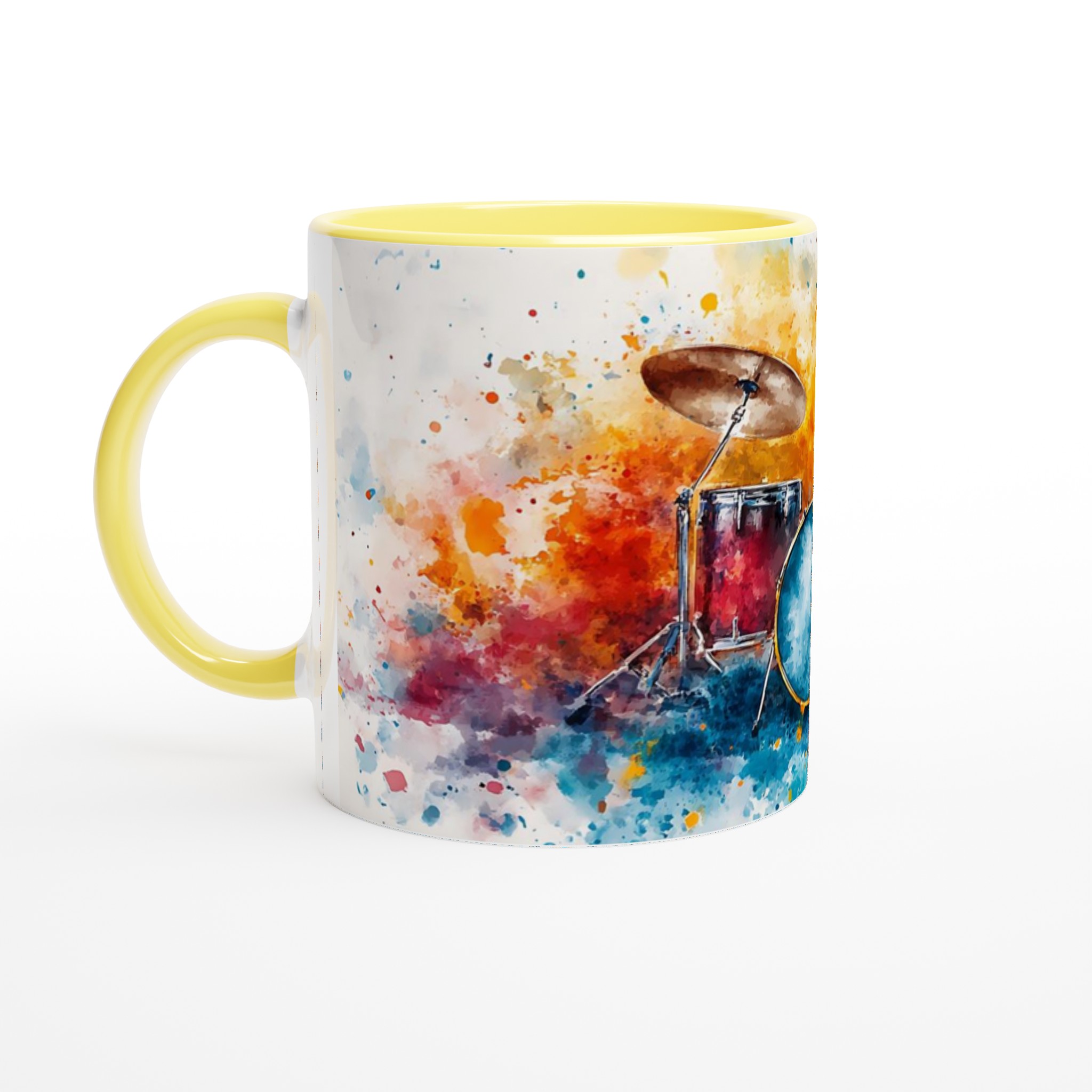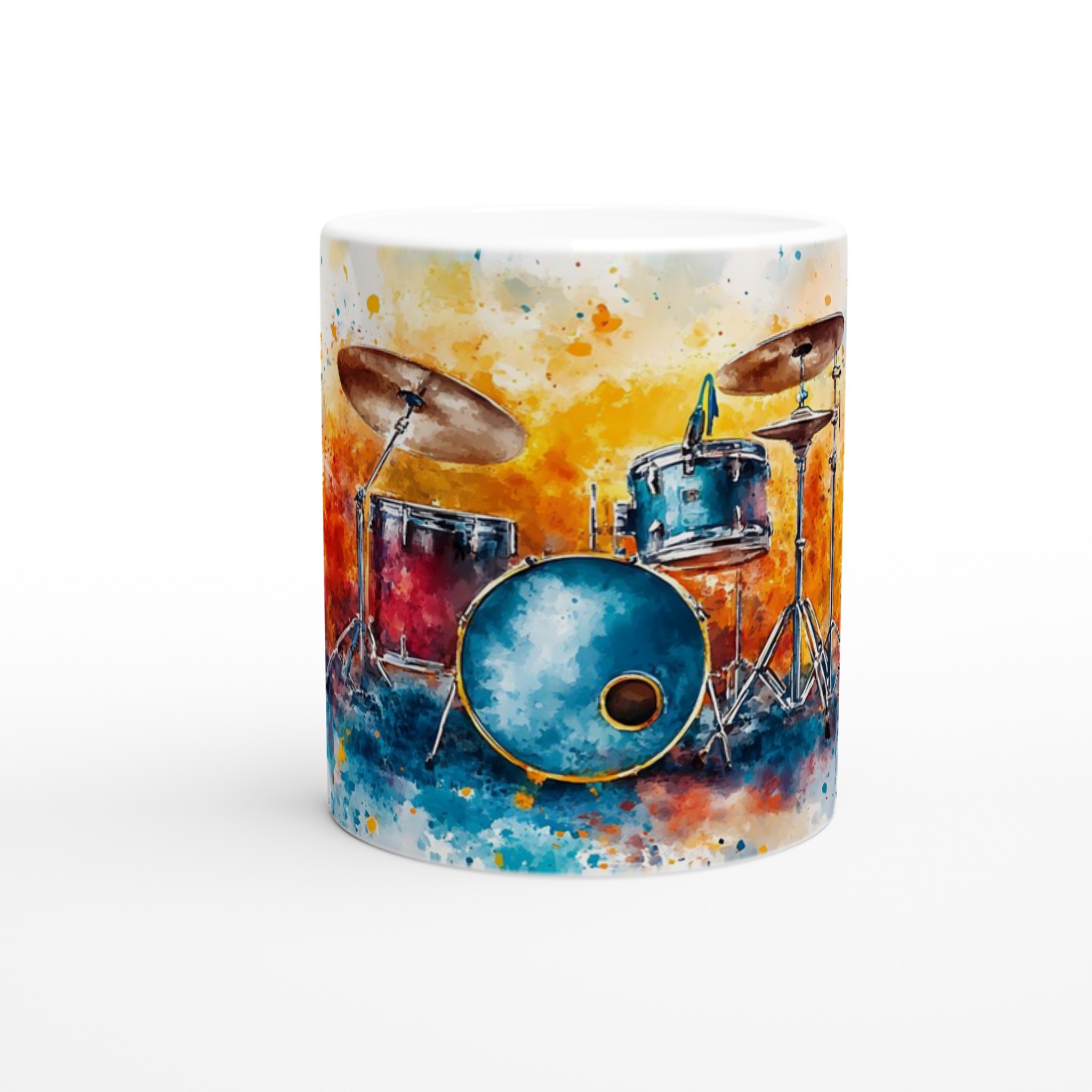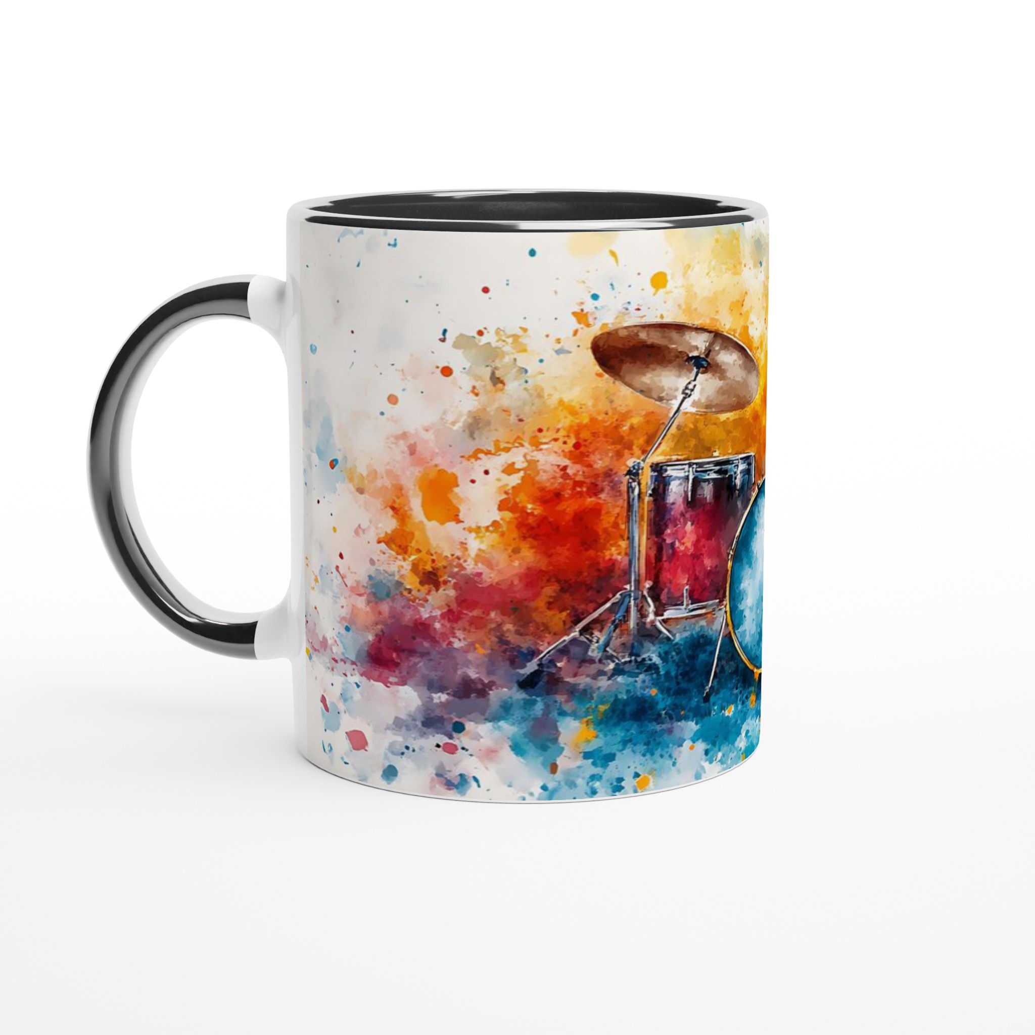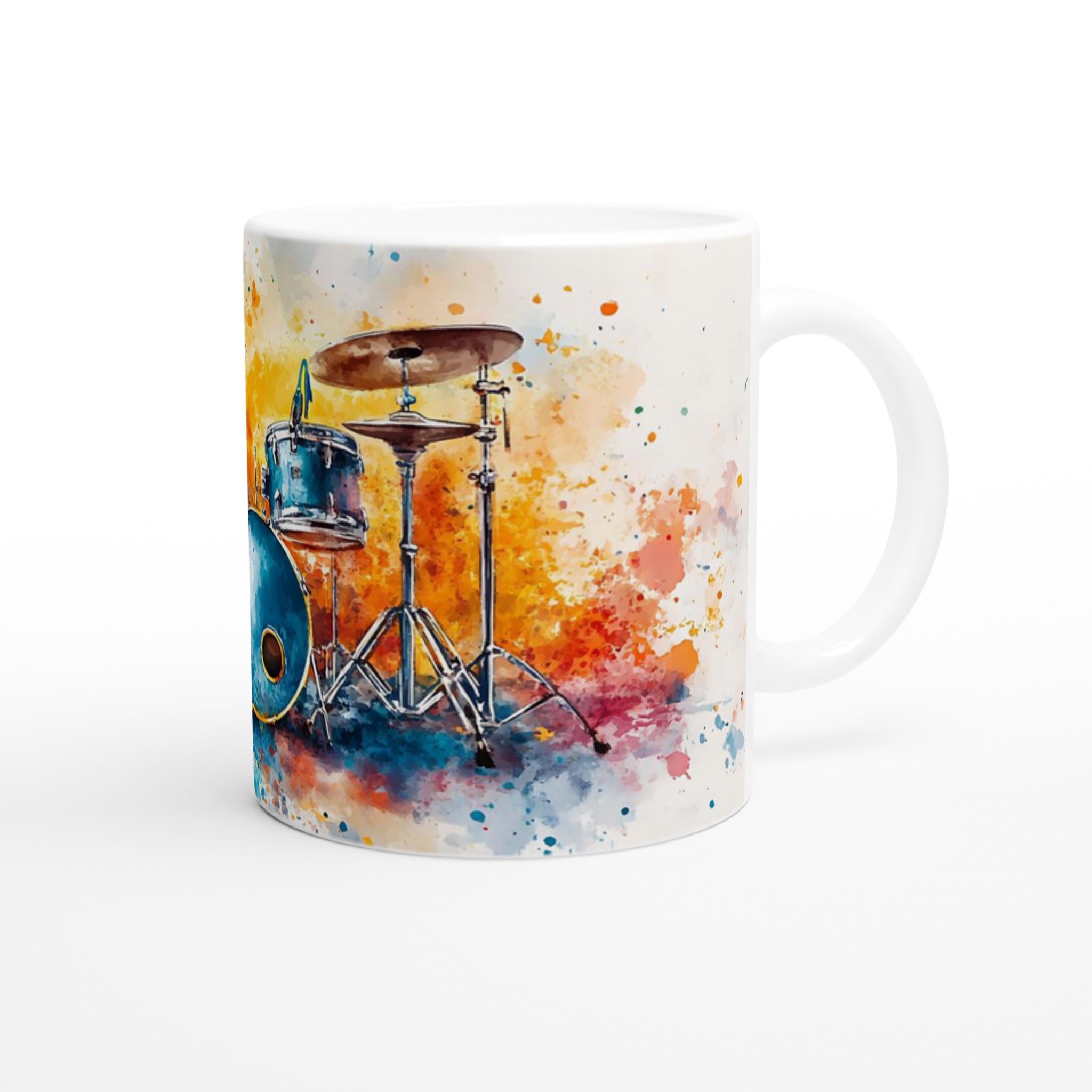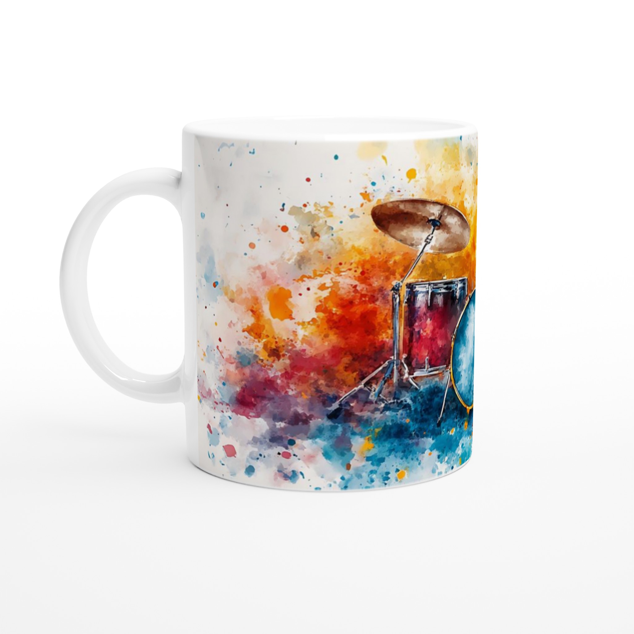 Vibrant Abstract Drums – Ceramic Coffee Mug 11oz, Music Art Splash Design in Your Choice of 7 Colors