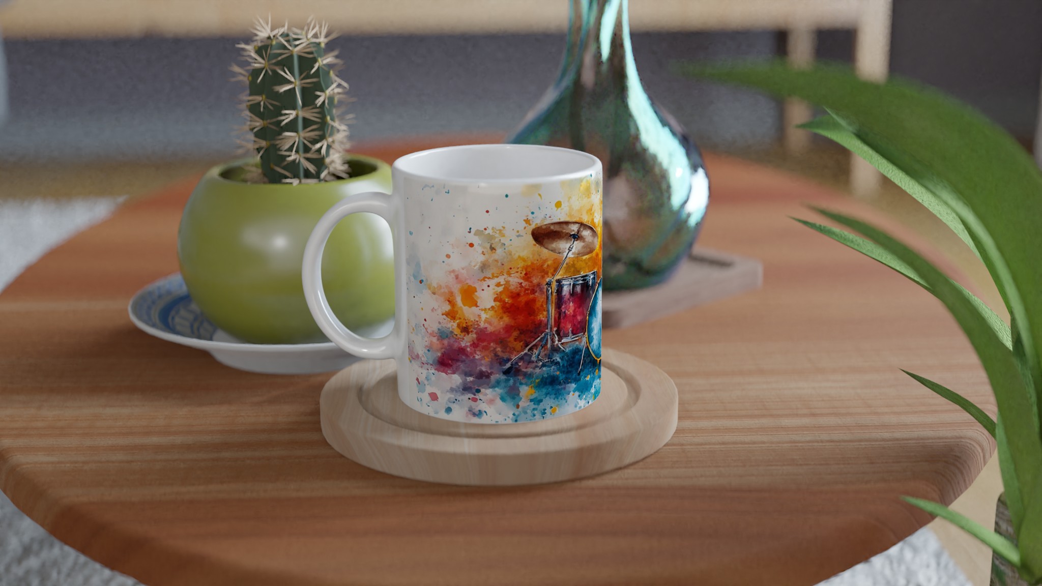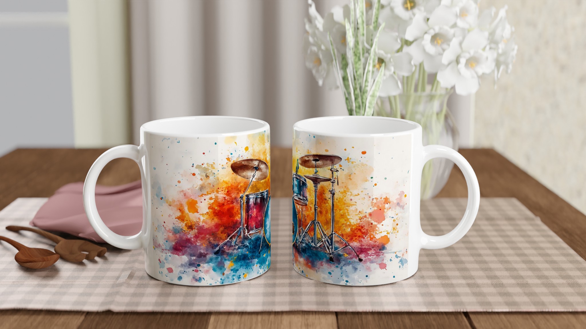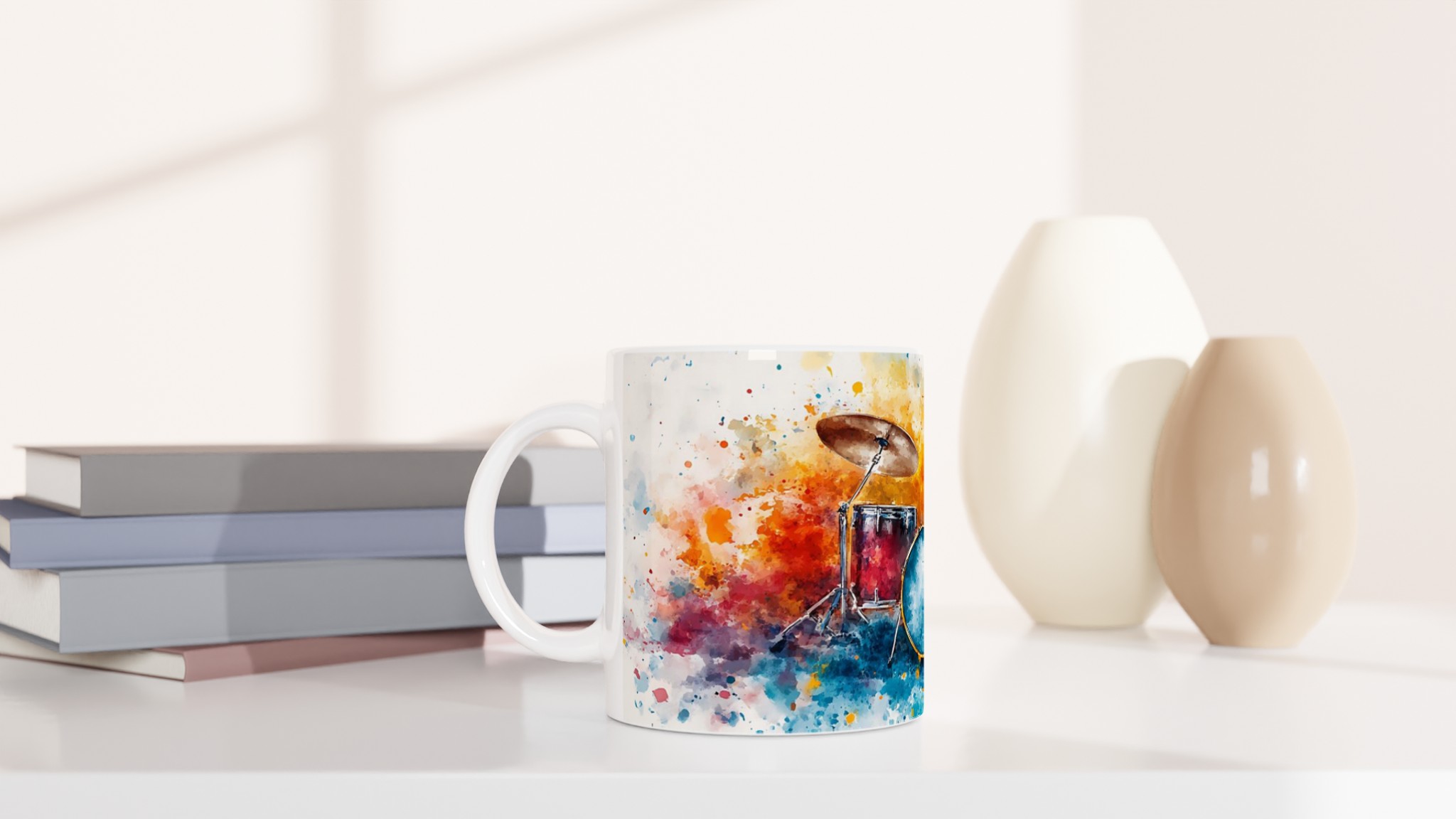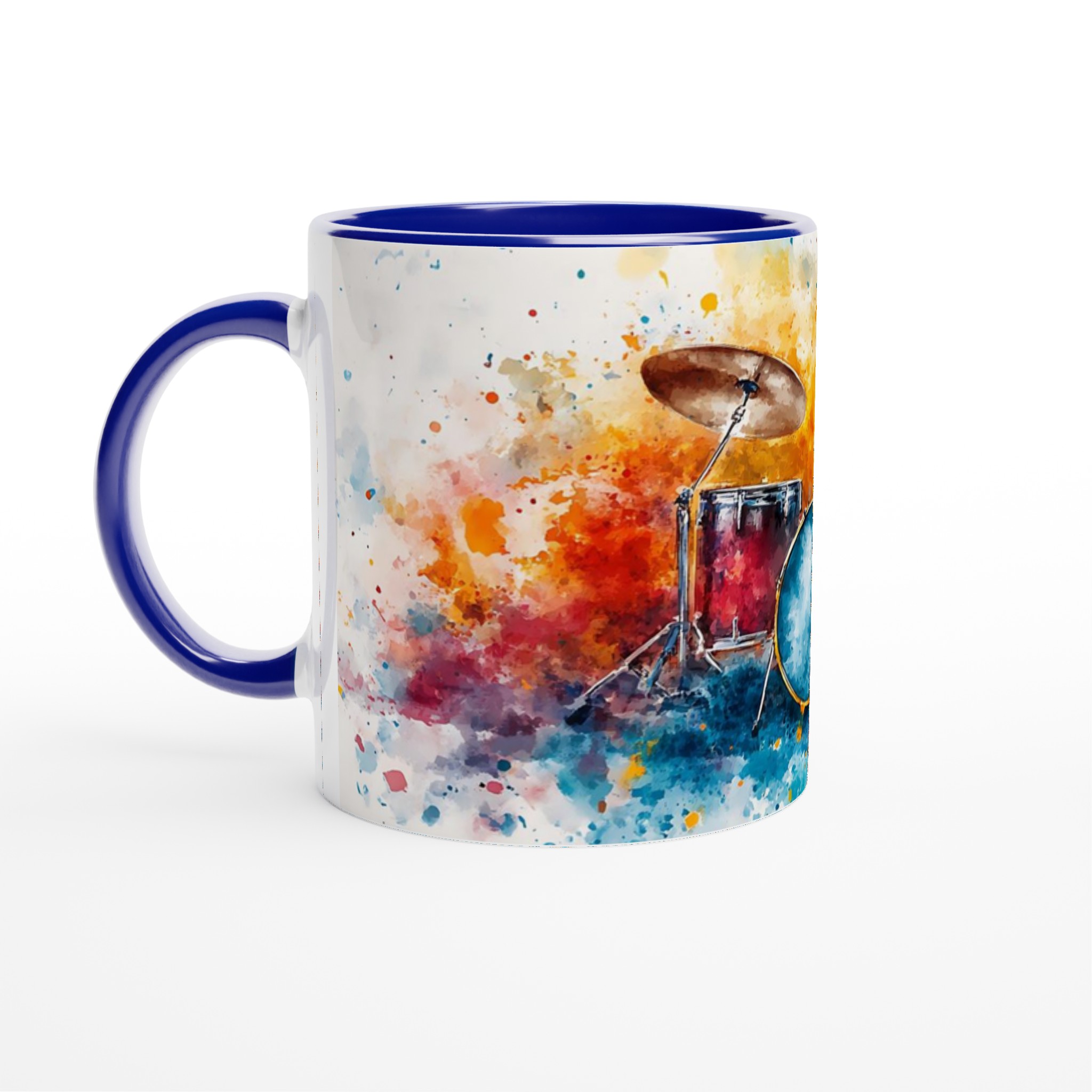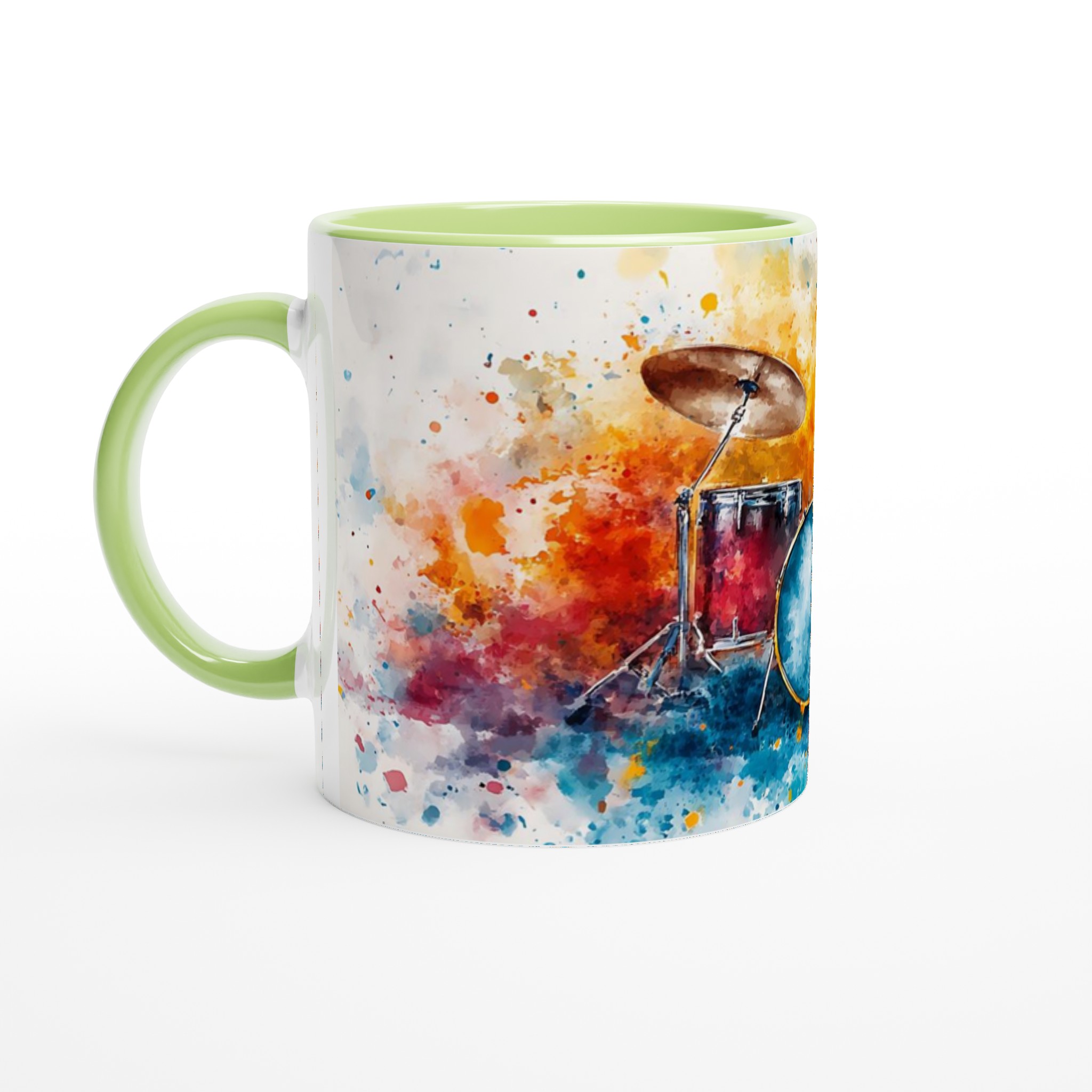 Vibrant Abstract Drums – Ceramic Coffee Mug 11oz, Music Art Splash Design in Your Choice of 7 Colors