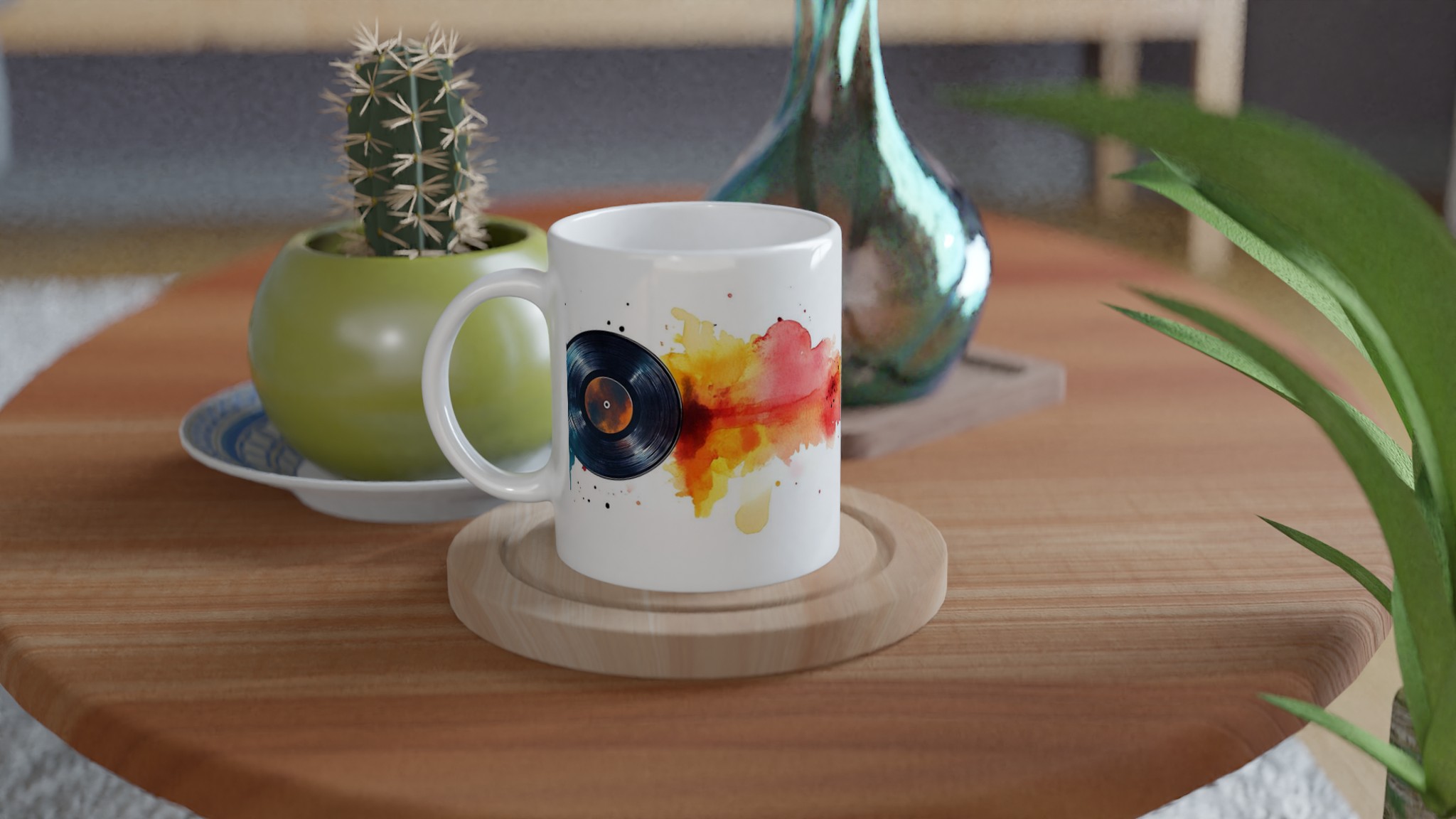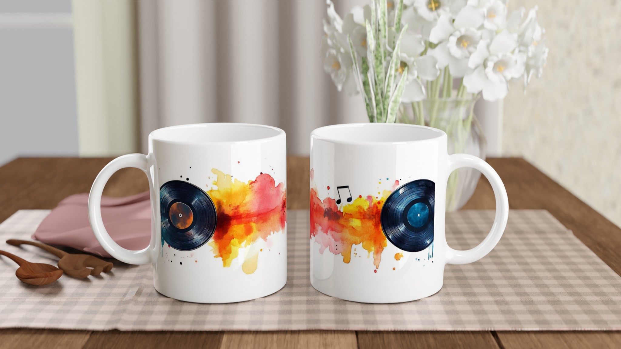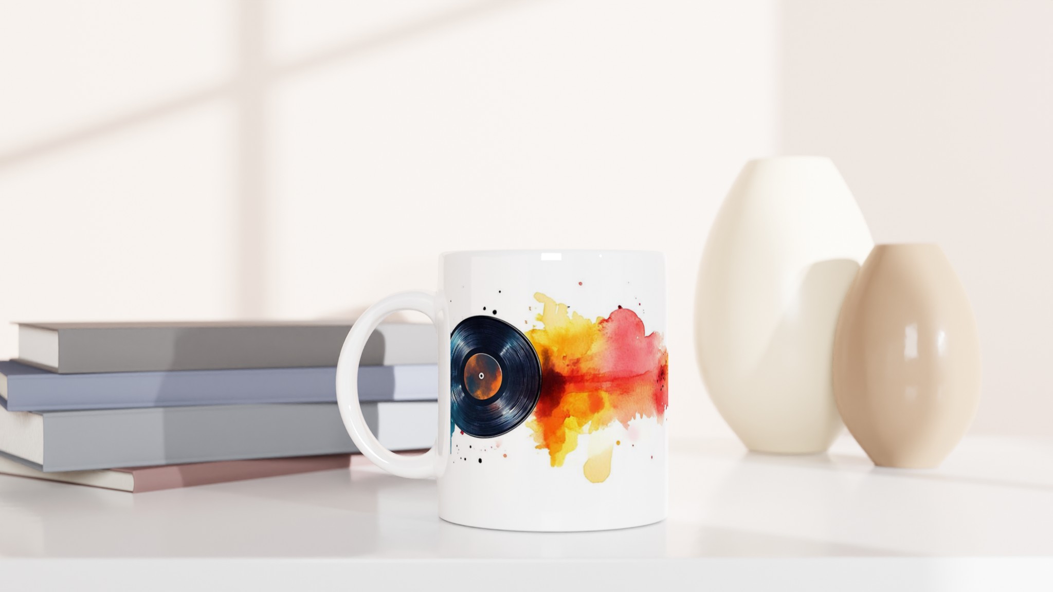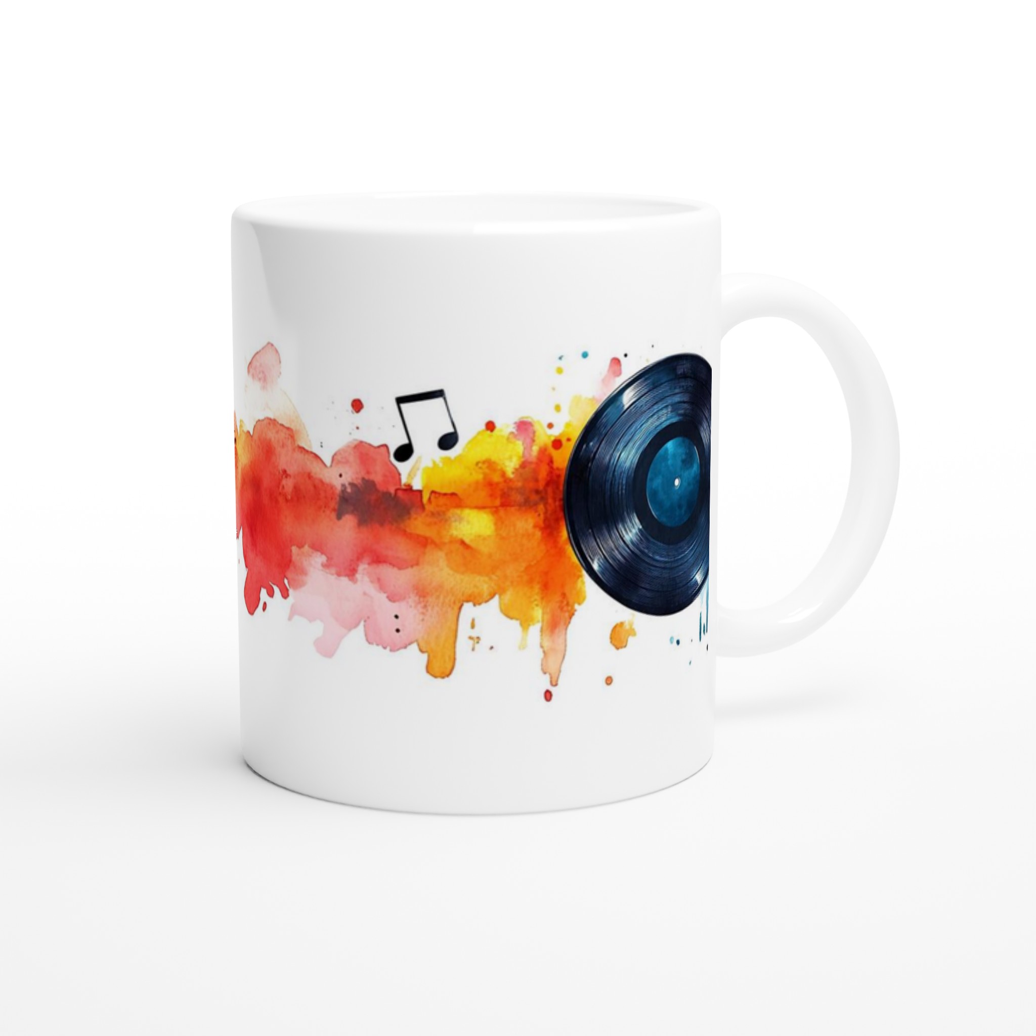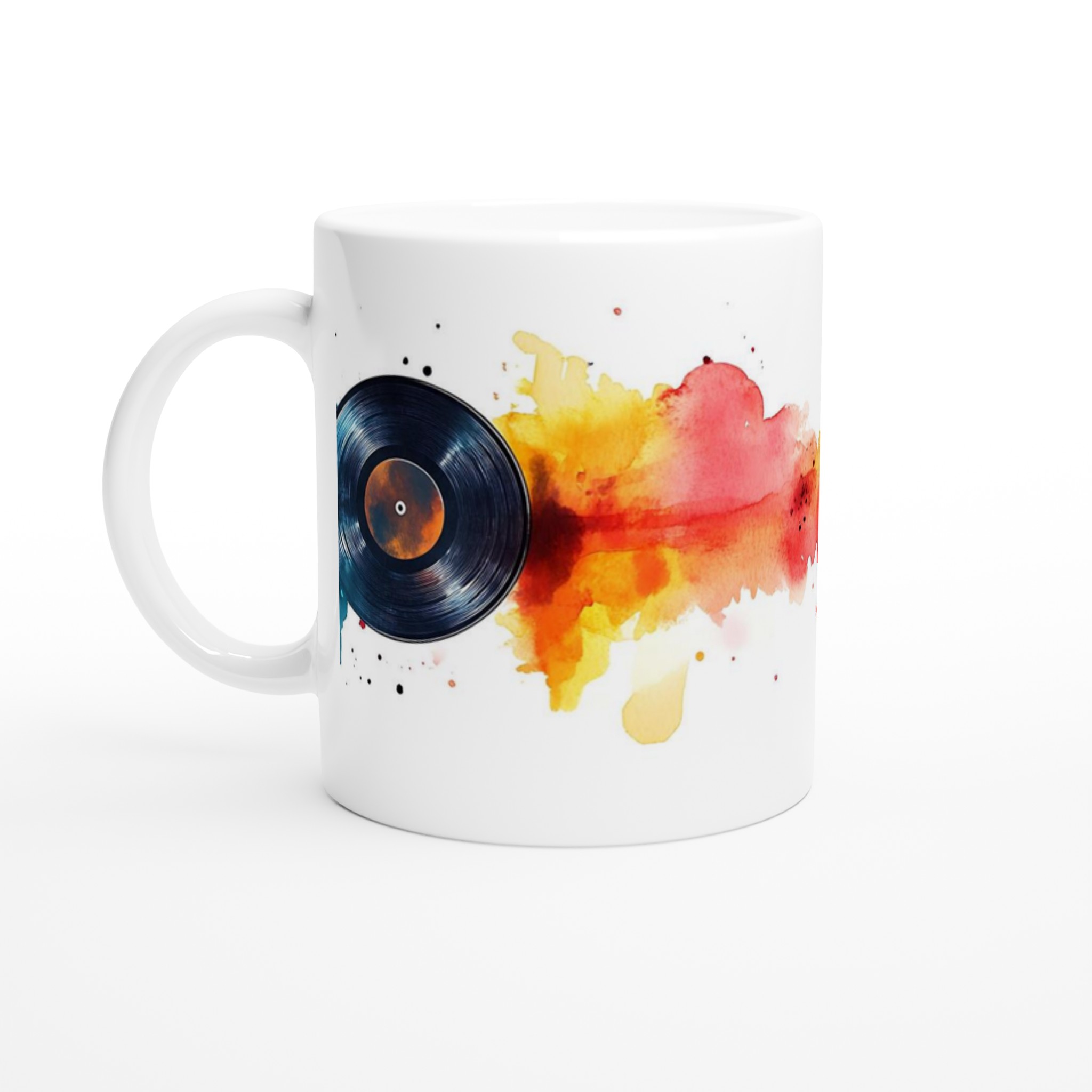 Retro Beats Watercolor Vinyl – Ceramic Mug 11oz, in Your Choice of Seven Vibrant Hues