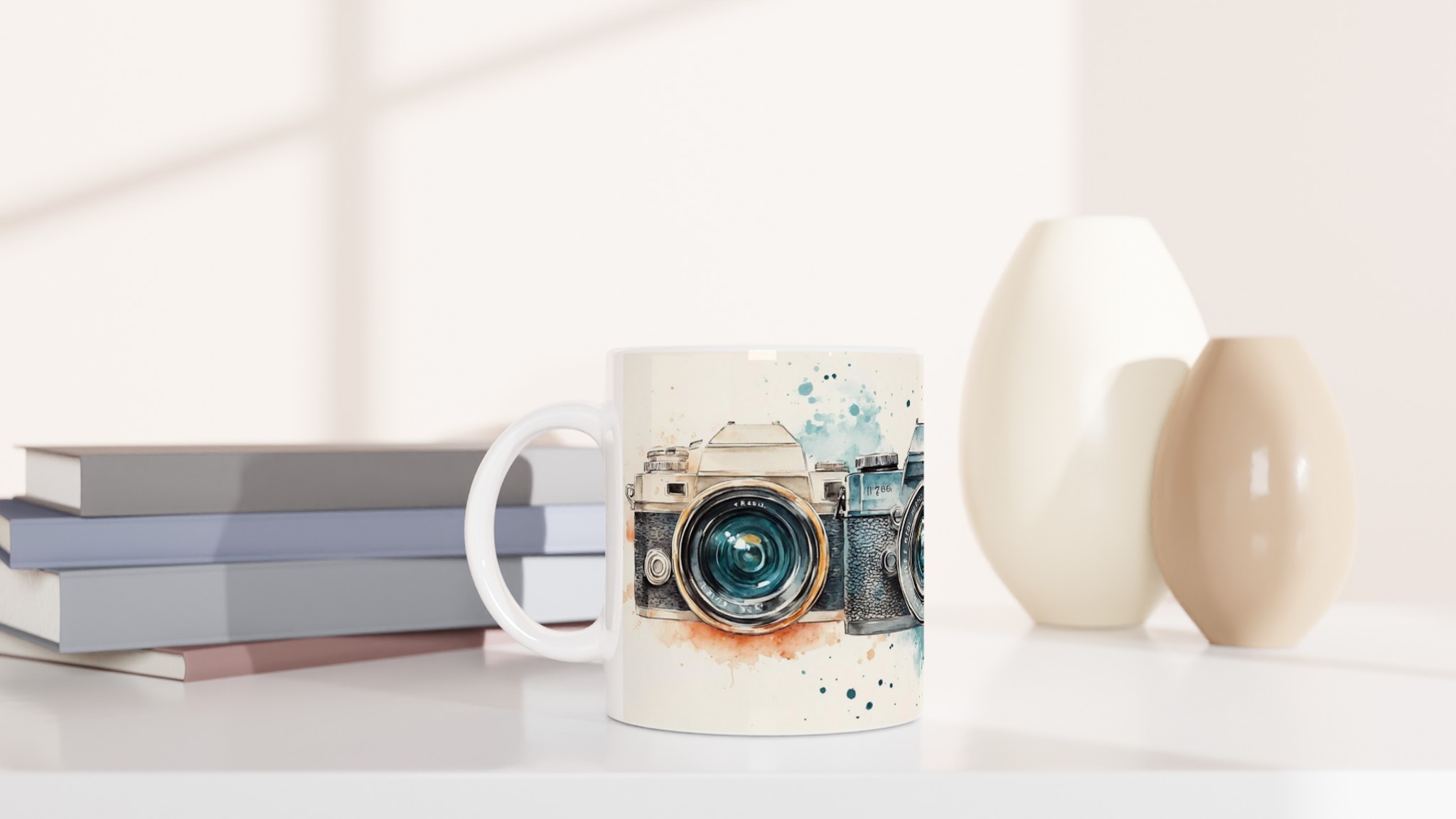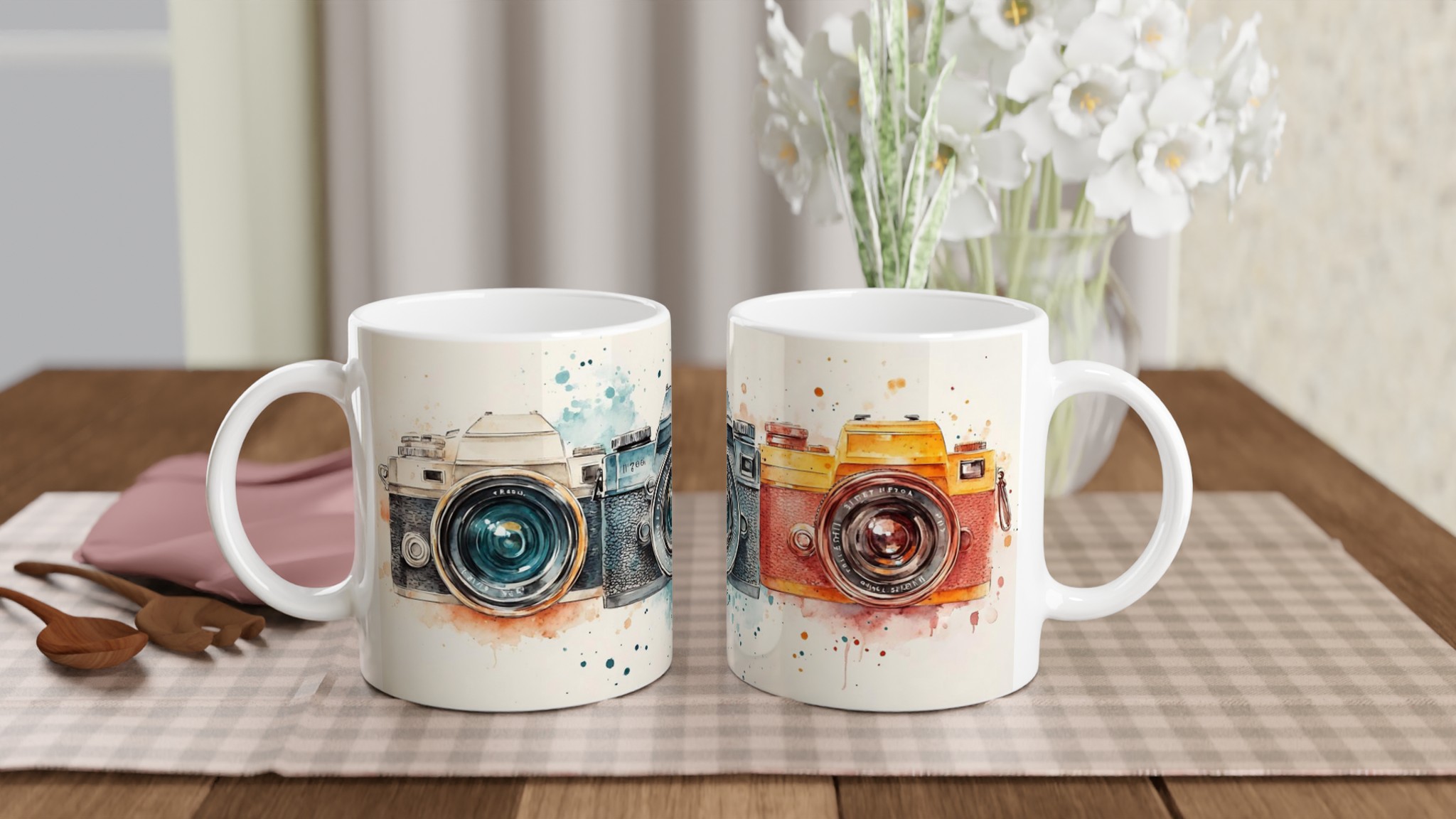 Vintage Camera Watercolor Mug – Capture the Moment in your Choice of Seven Vibrant Hues