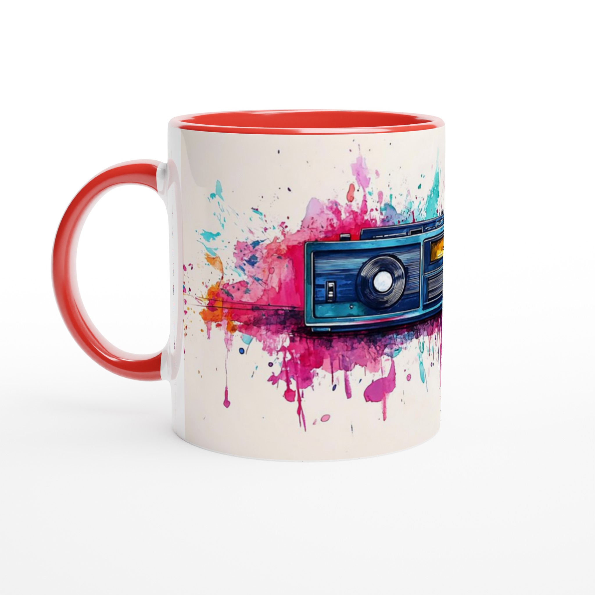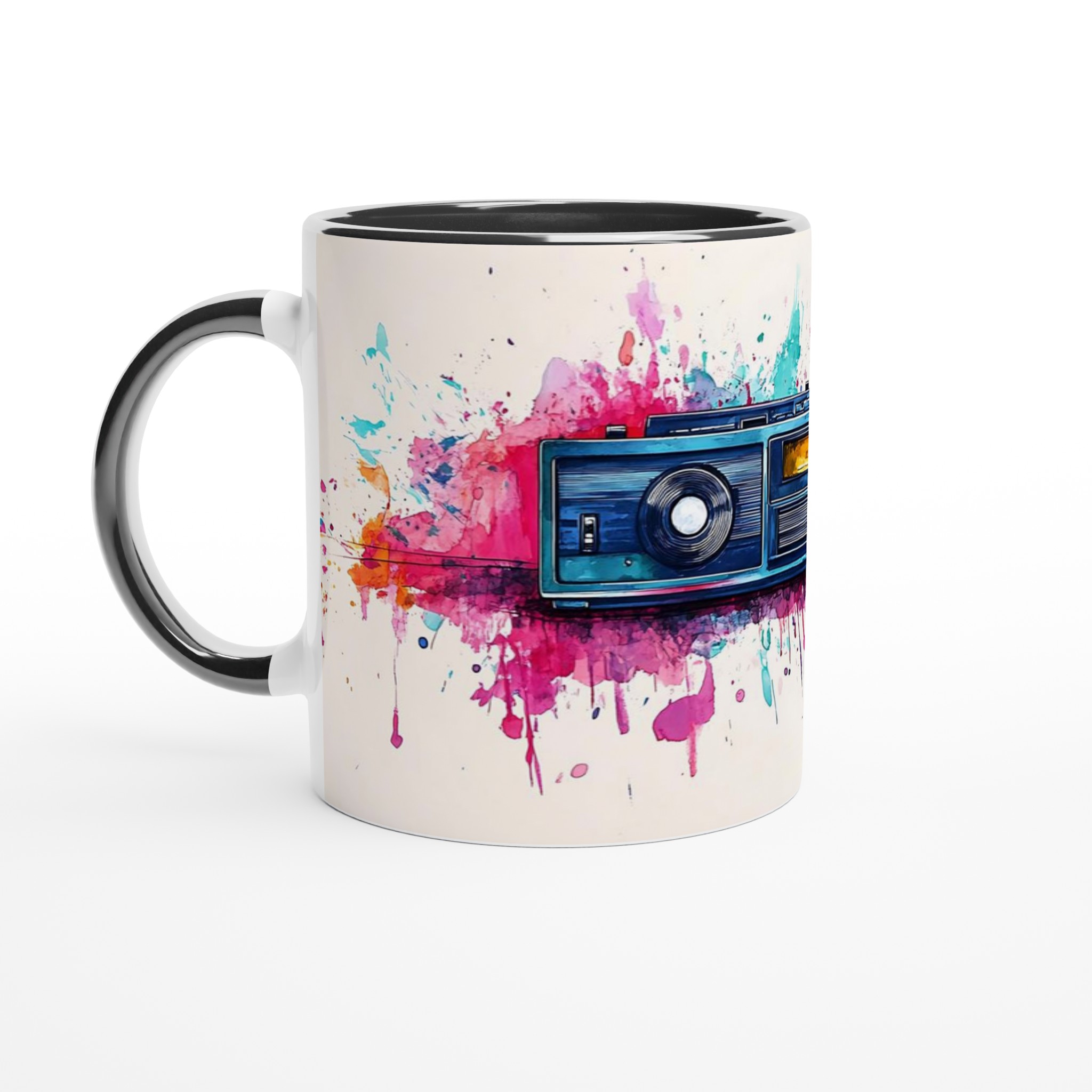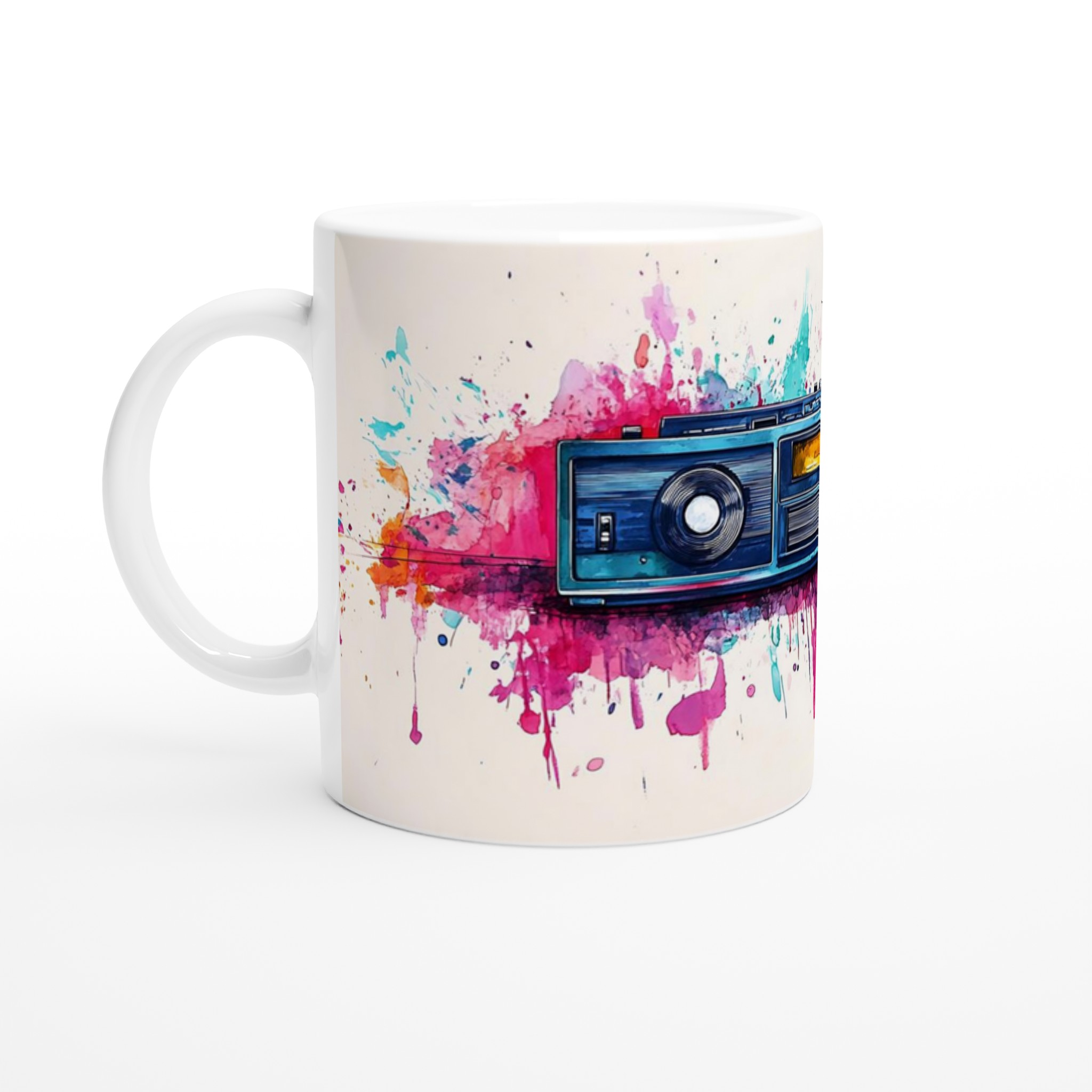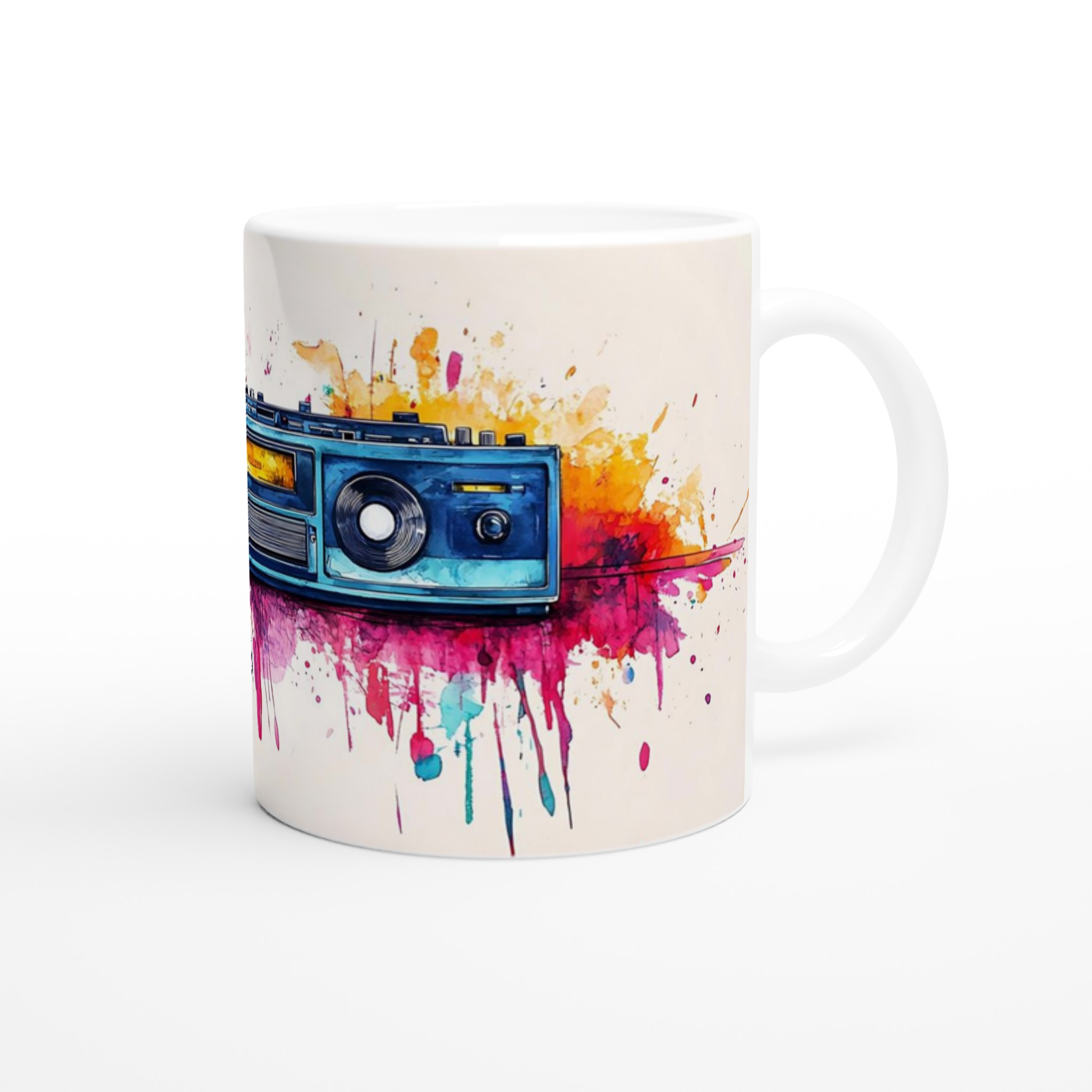 Retro Boombox Watercolor Art Mug – Everyday Favorite 11oz Ceramic Mug in Your Choice of Seven Vibrant Hues