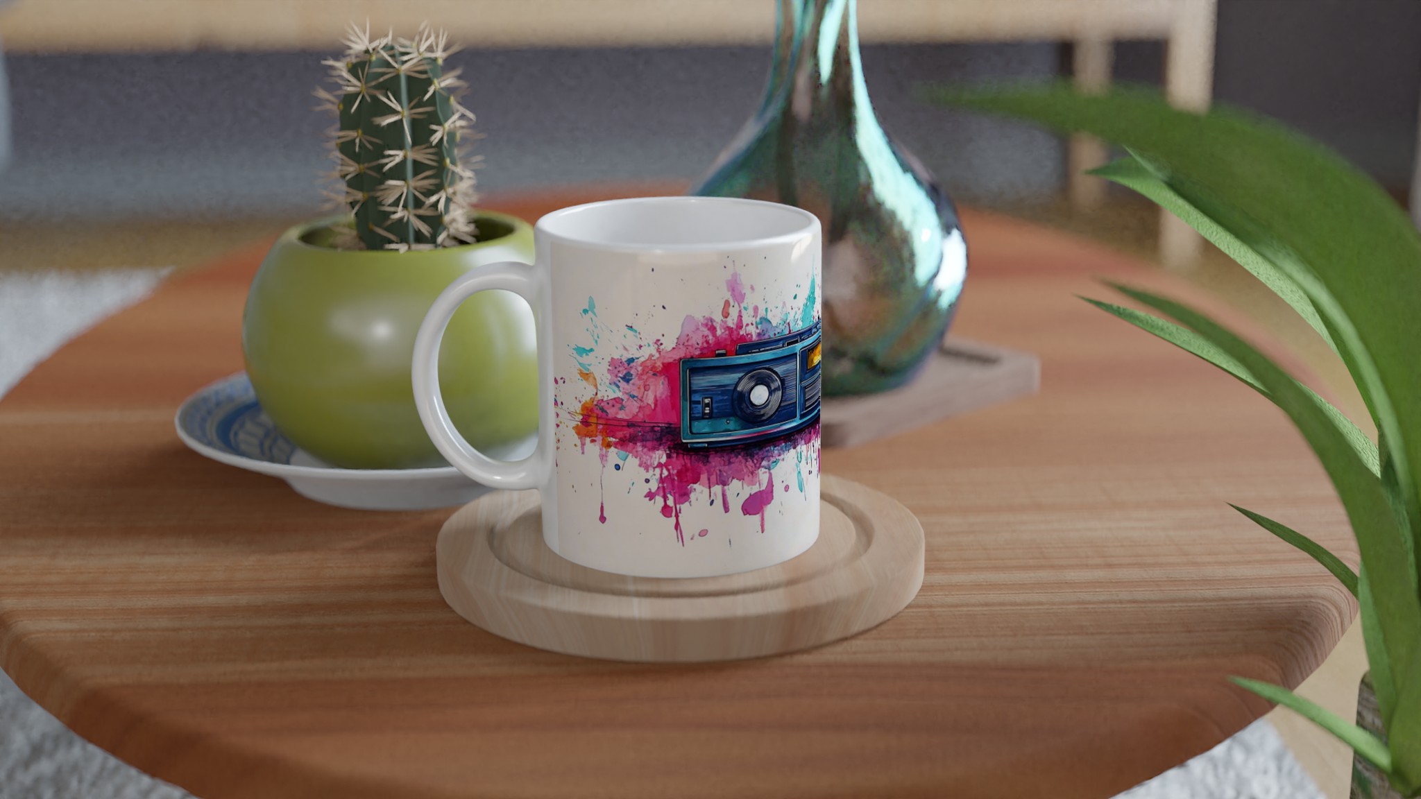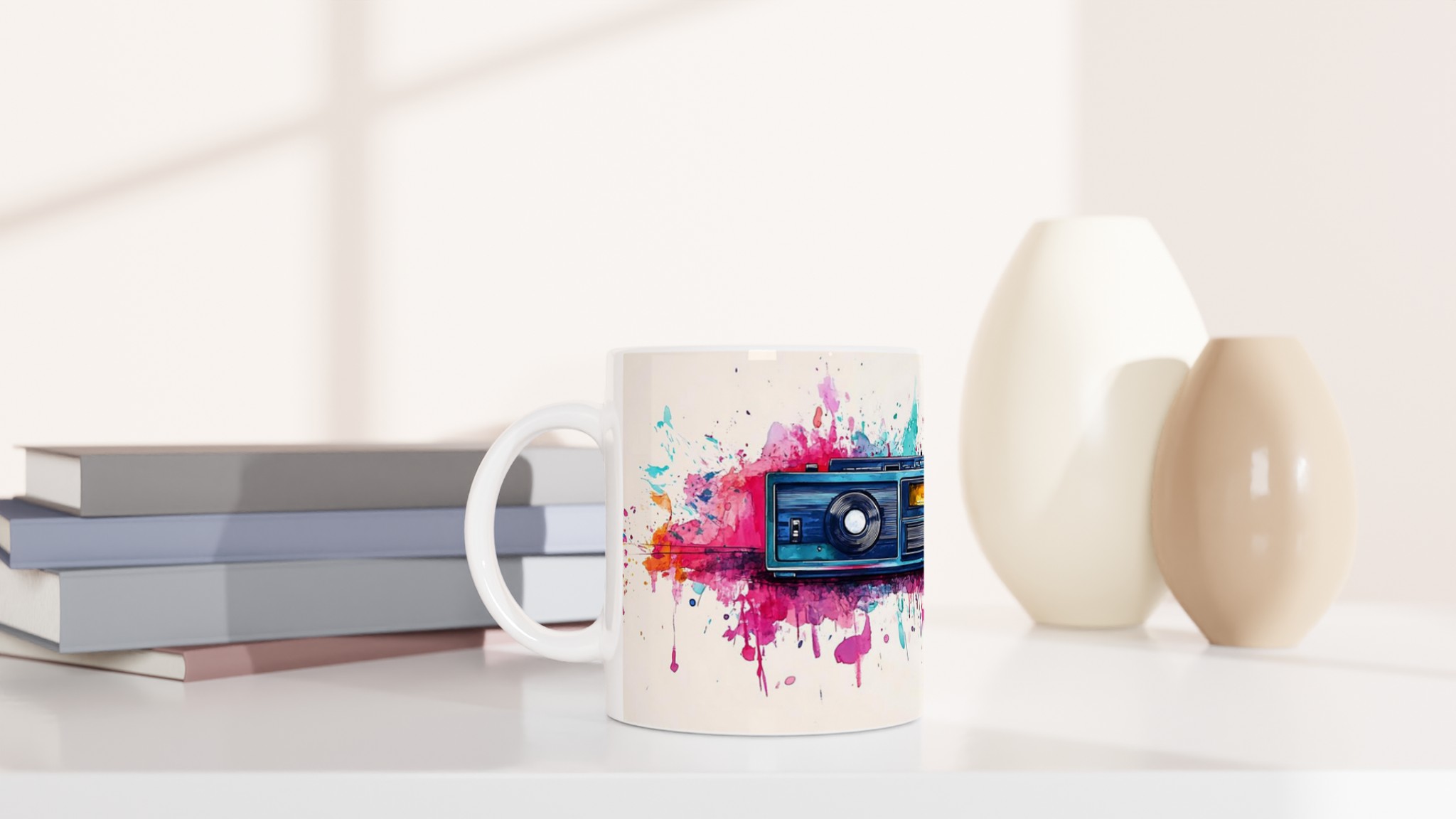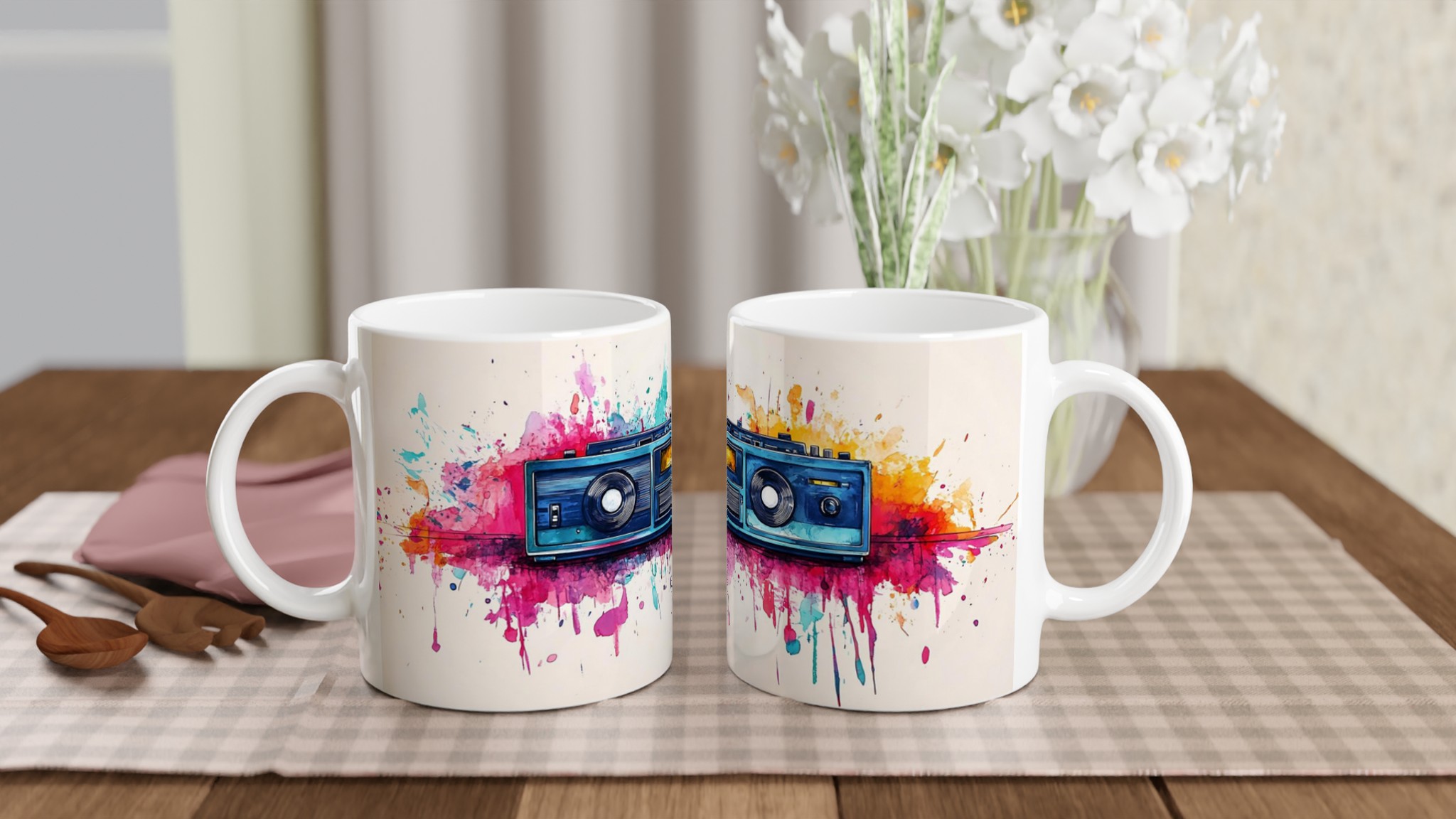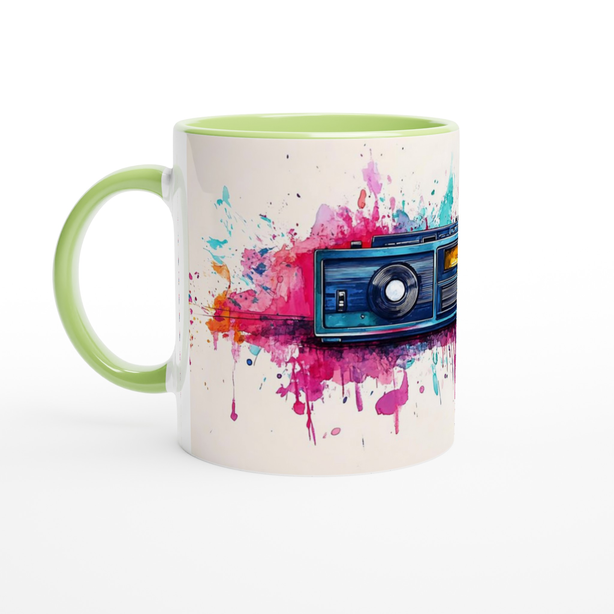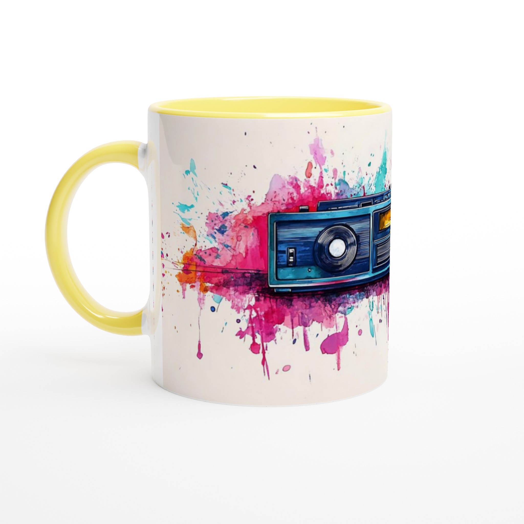 Retro Boombox Watercolor Art Mug – Everyday Favorite 11oz Ceramic Mug in Your Choice of Seven Vibrant Hues
