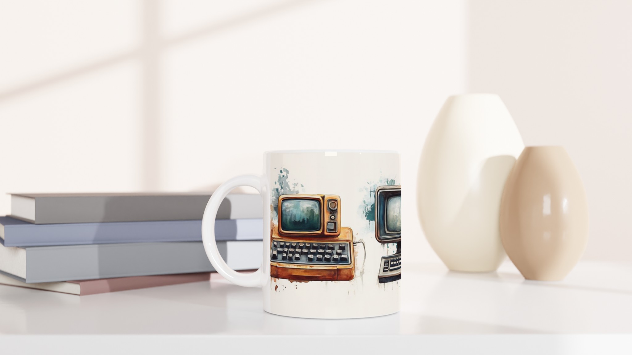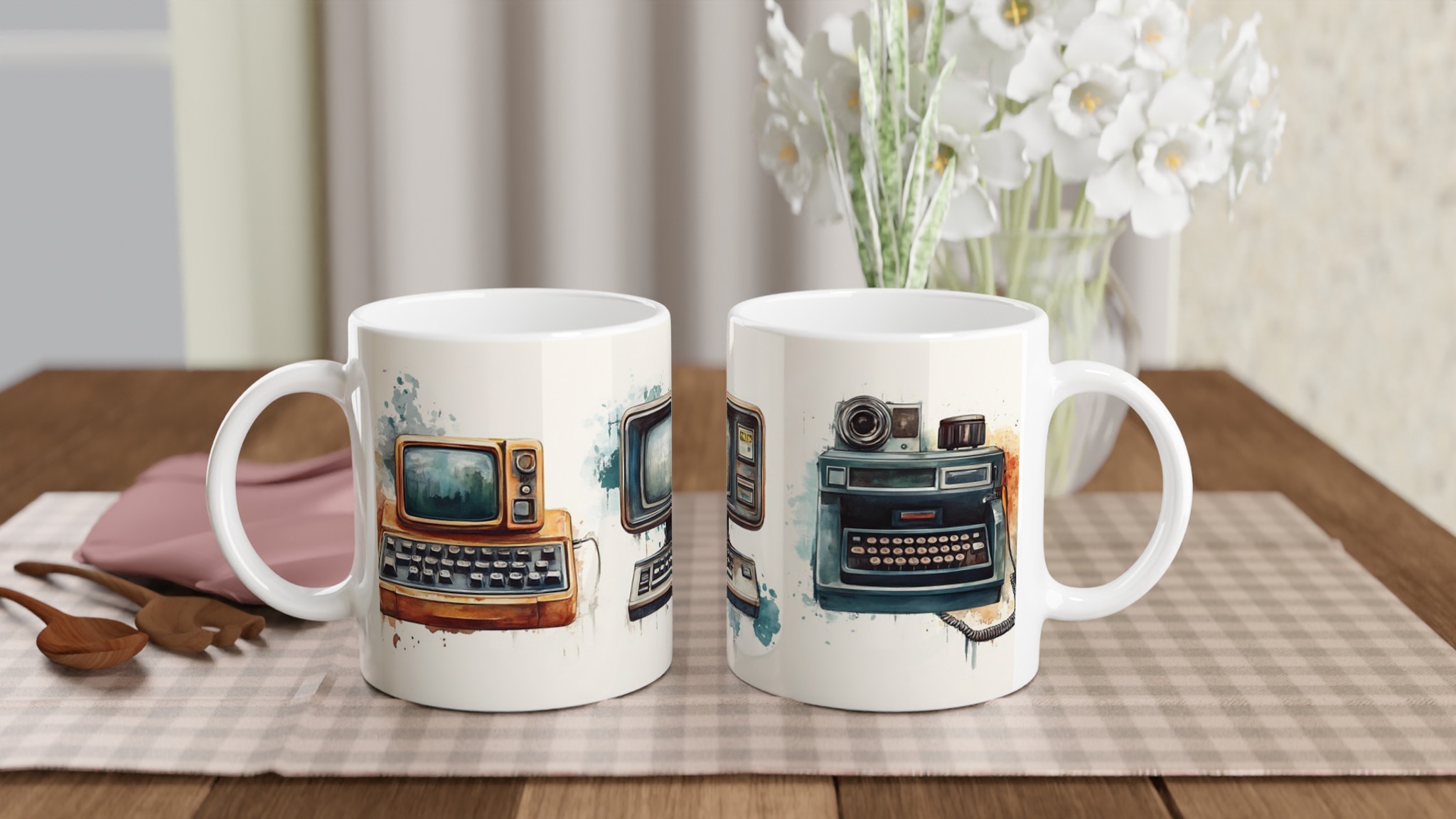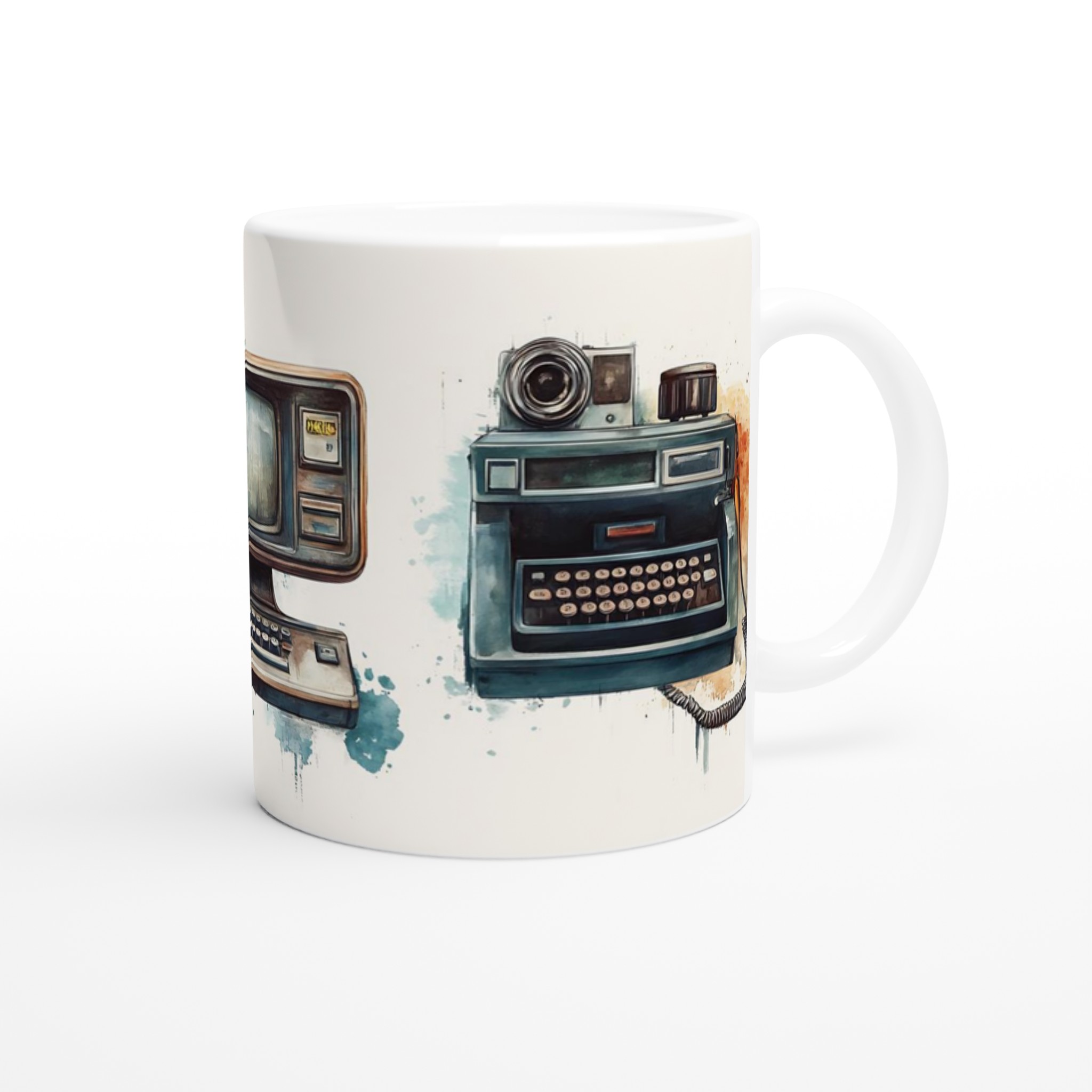 Retro Tech Charm – Vintage Computing & Typewriter Art Ceramic Mug 11oz