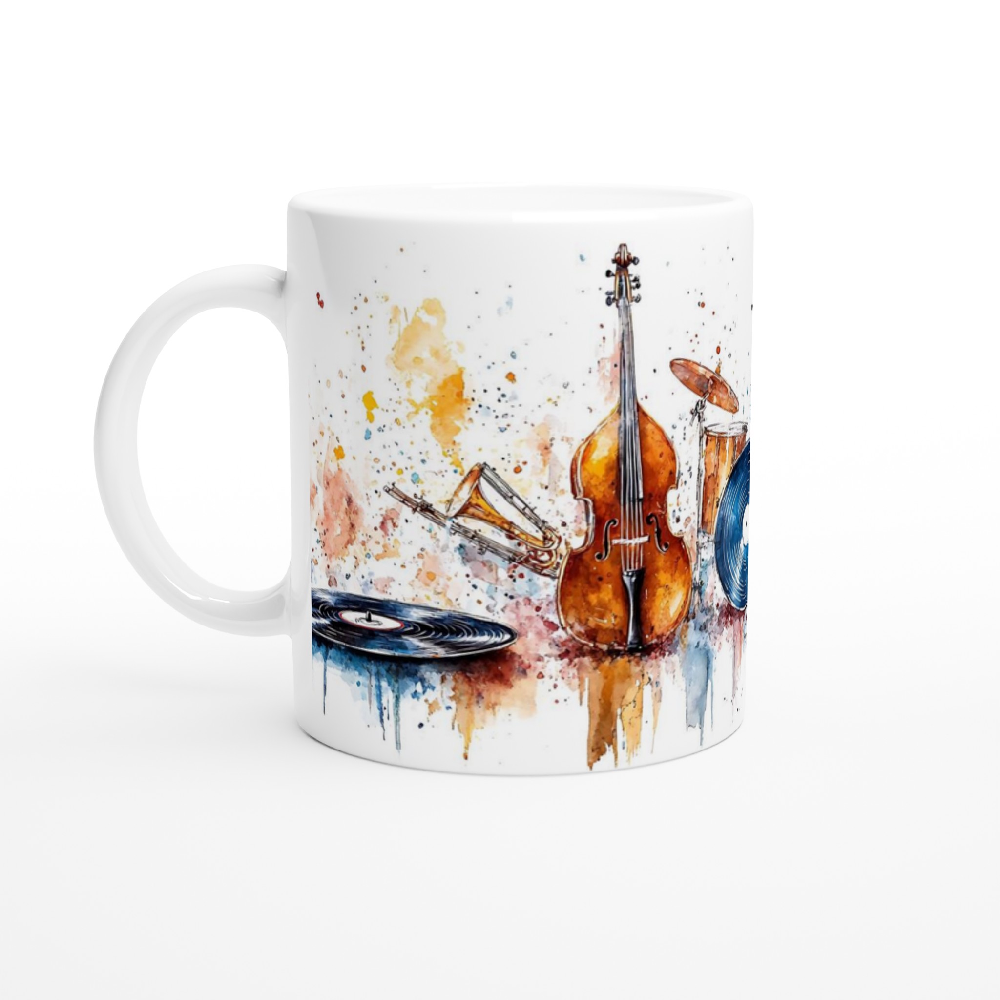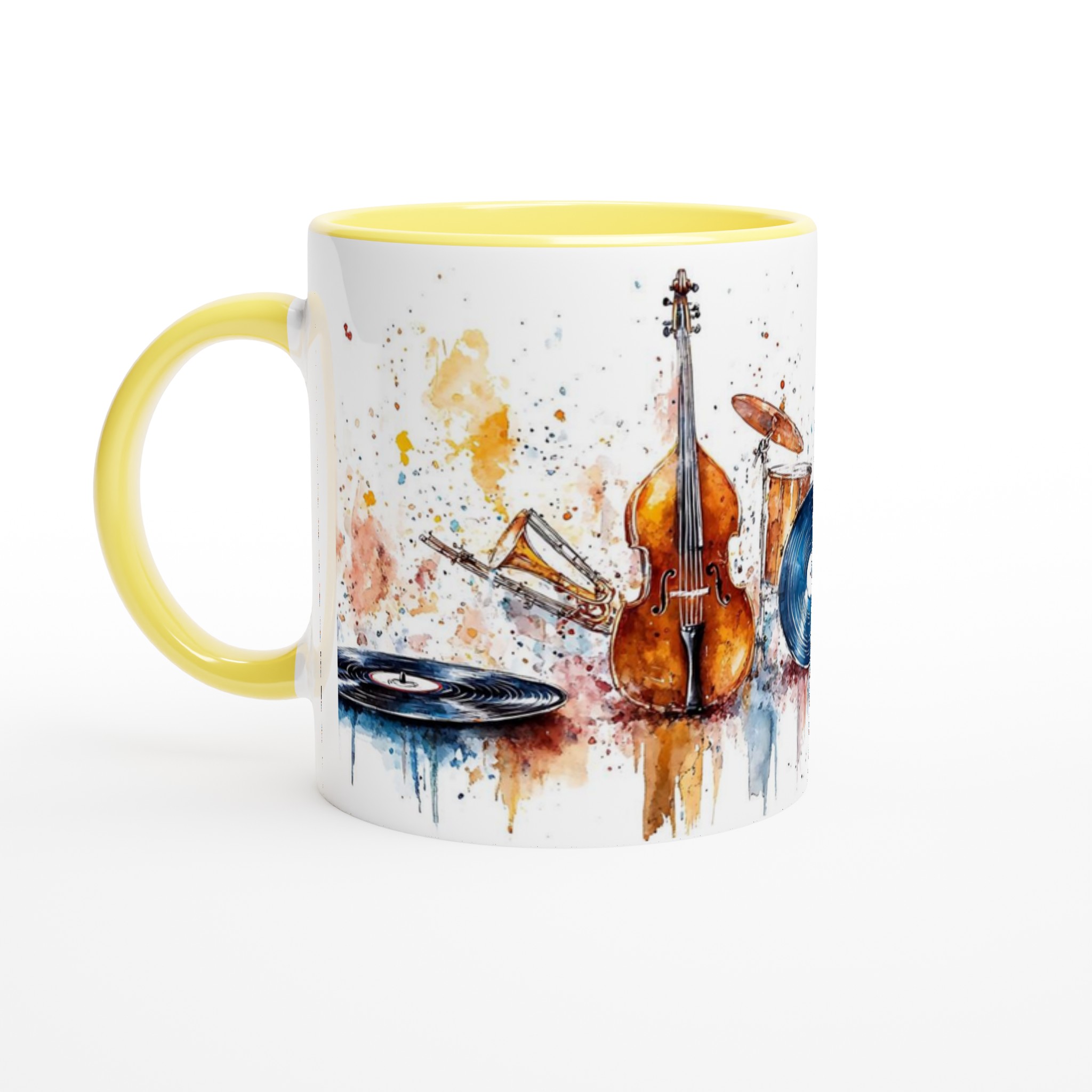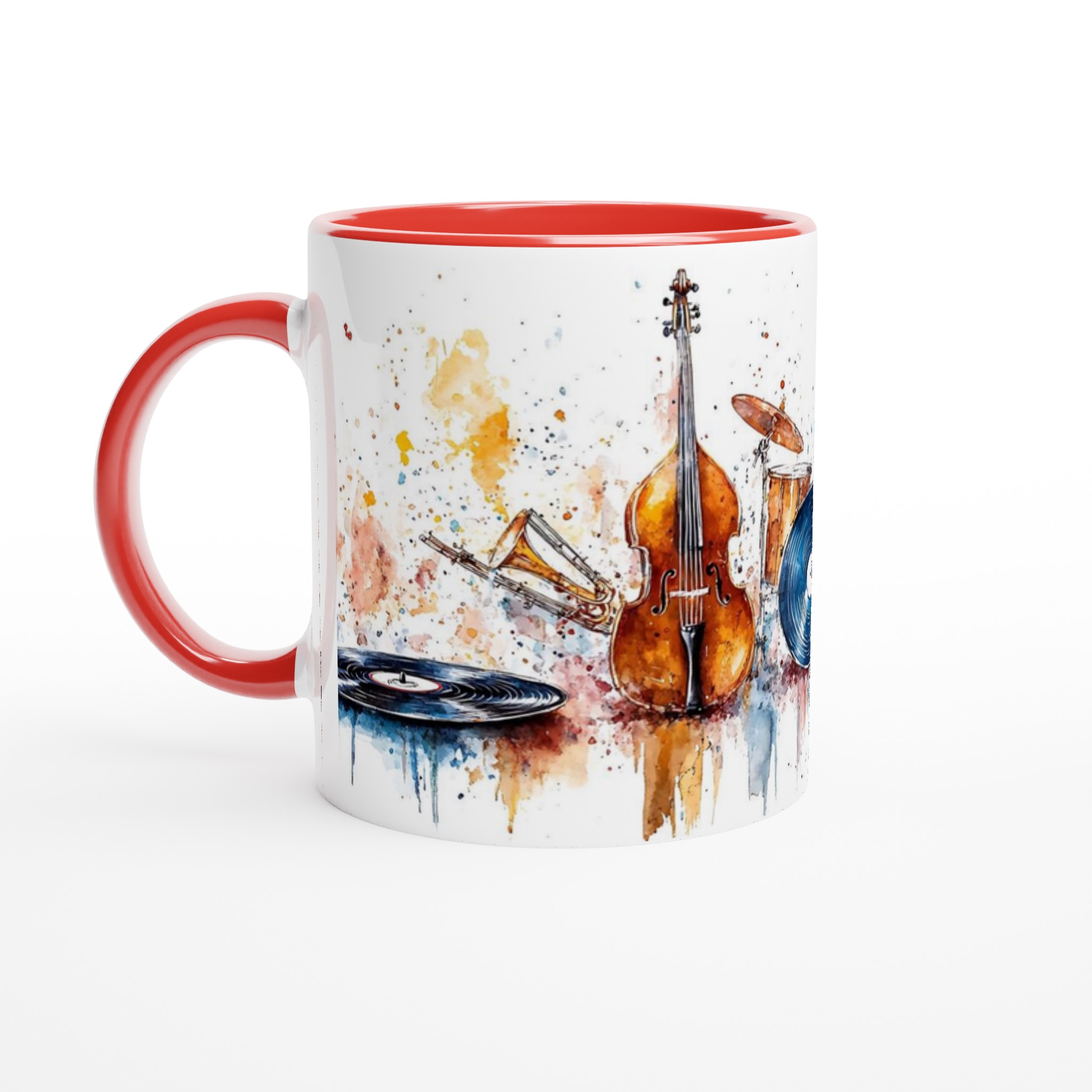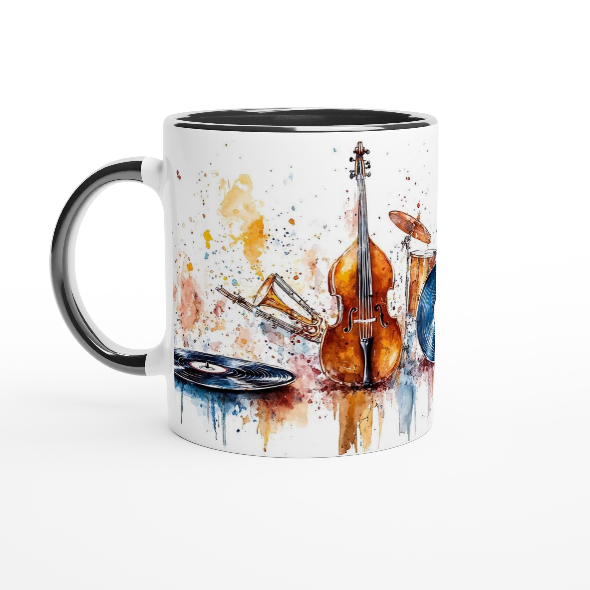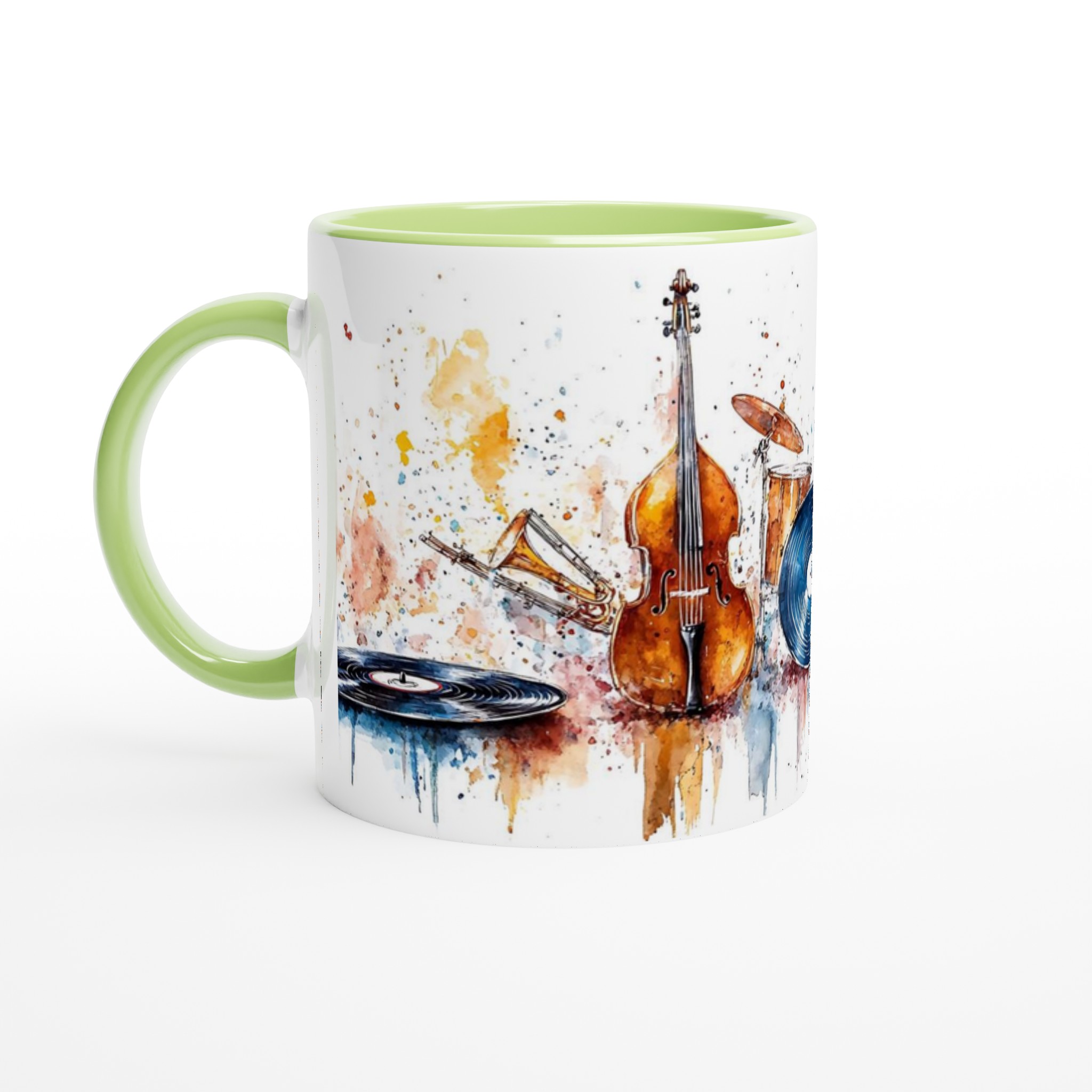 Jazz Fusion Watercolor Mug – Dynamic Music Art 11oz Ceramic Mug in Your Choice of Seven Vibrant Colors