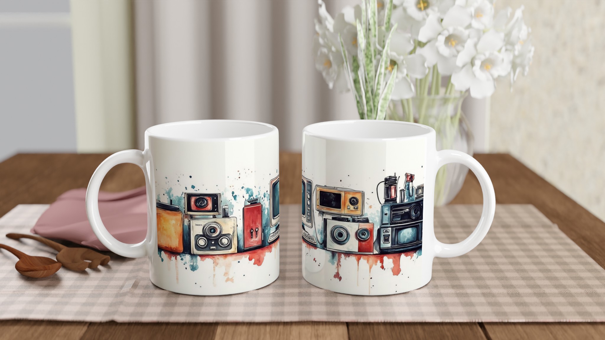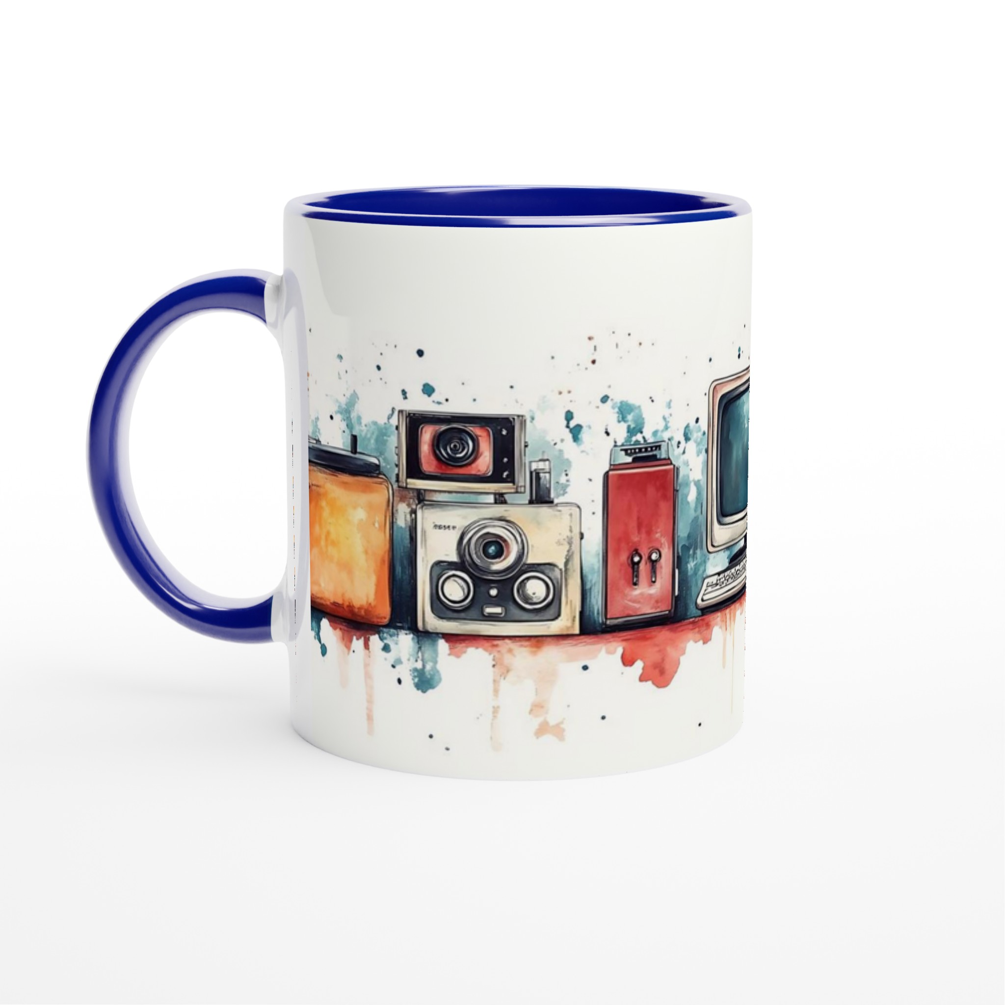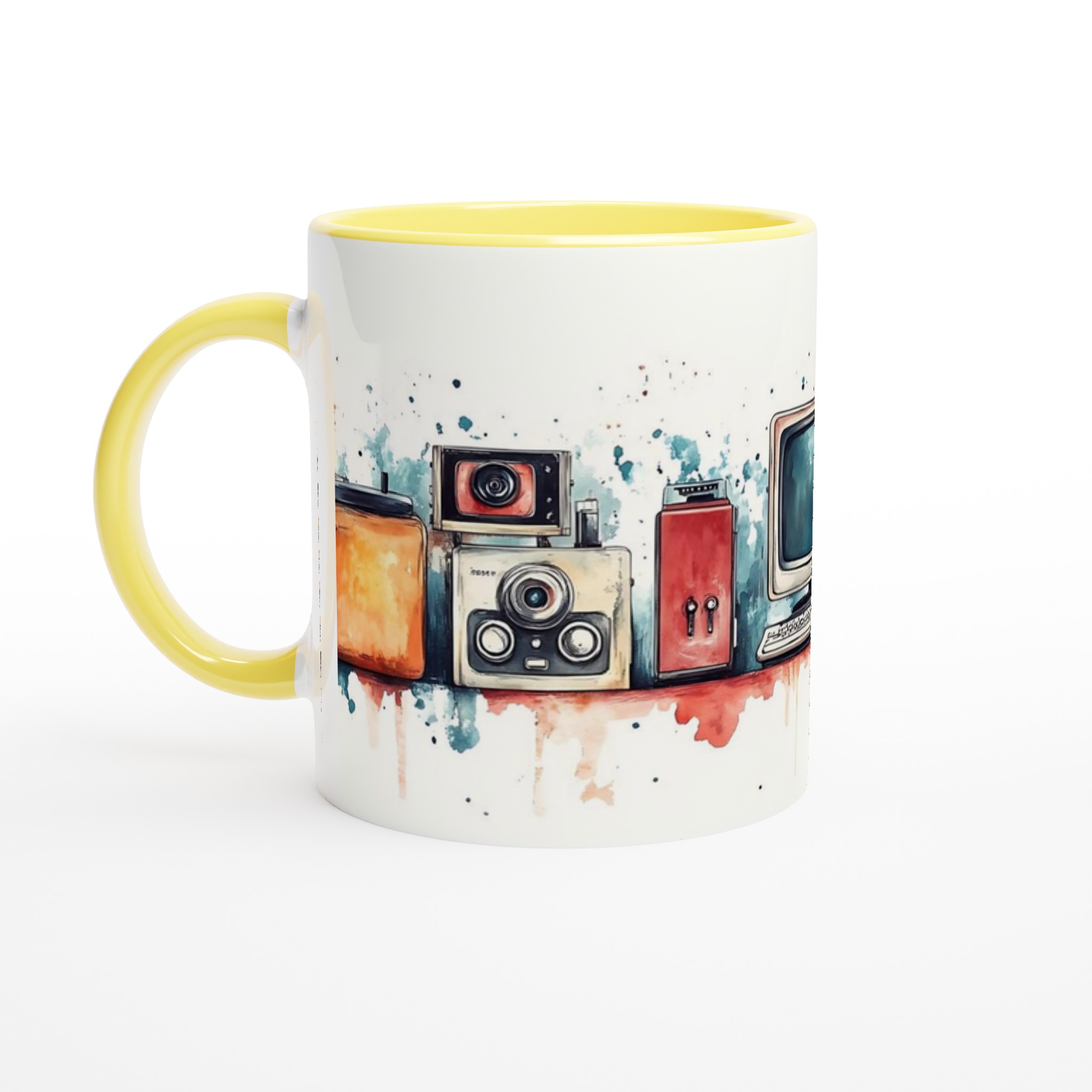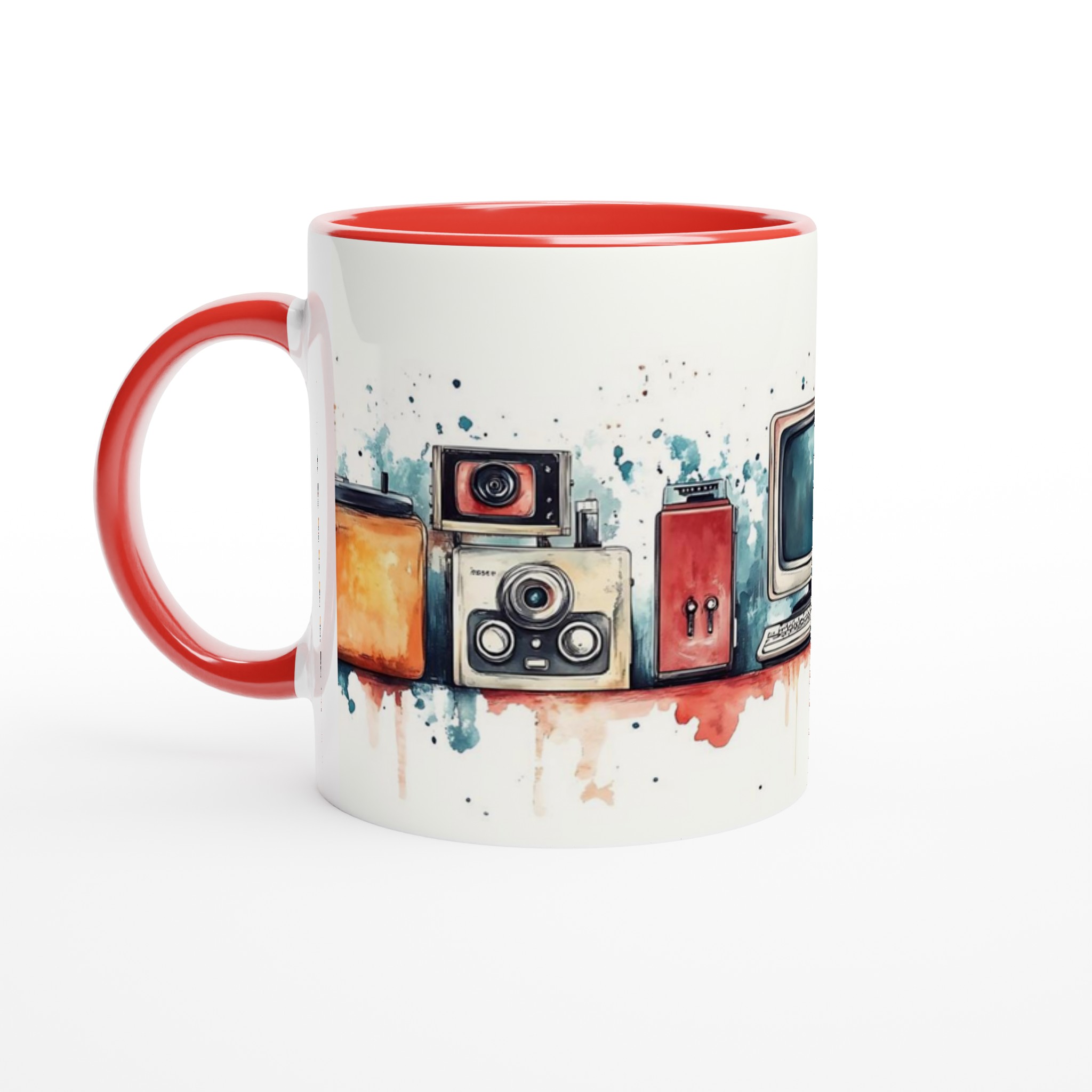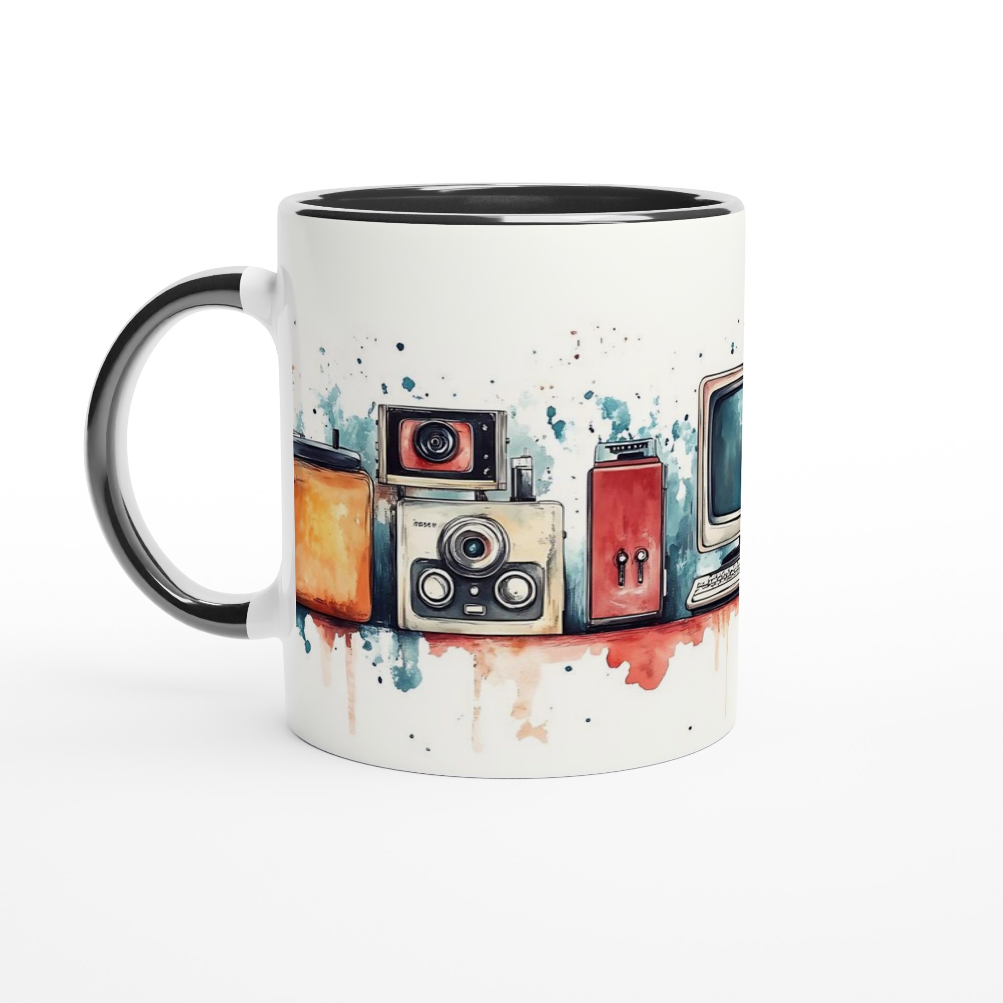 Retro Tech Chic – Watercolor Art Ceramic Mug, 11oz – Your Choice of 7 Vibrant Colors!