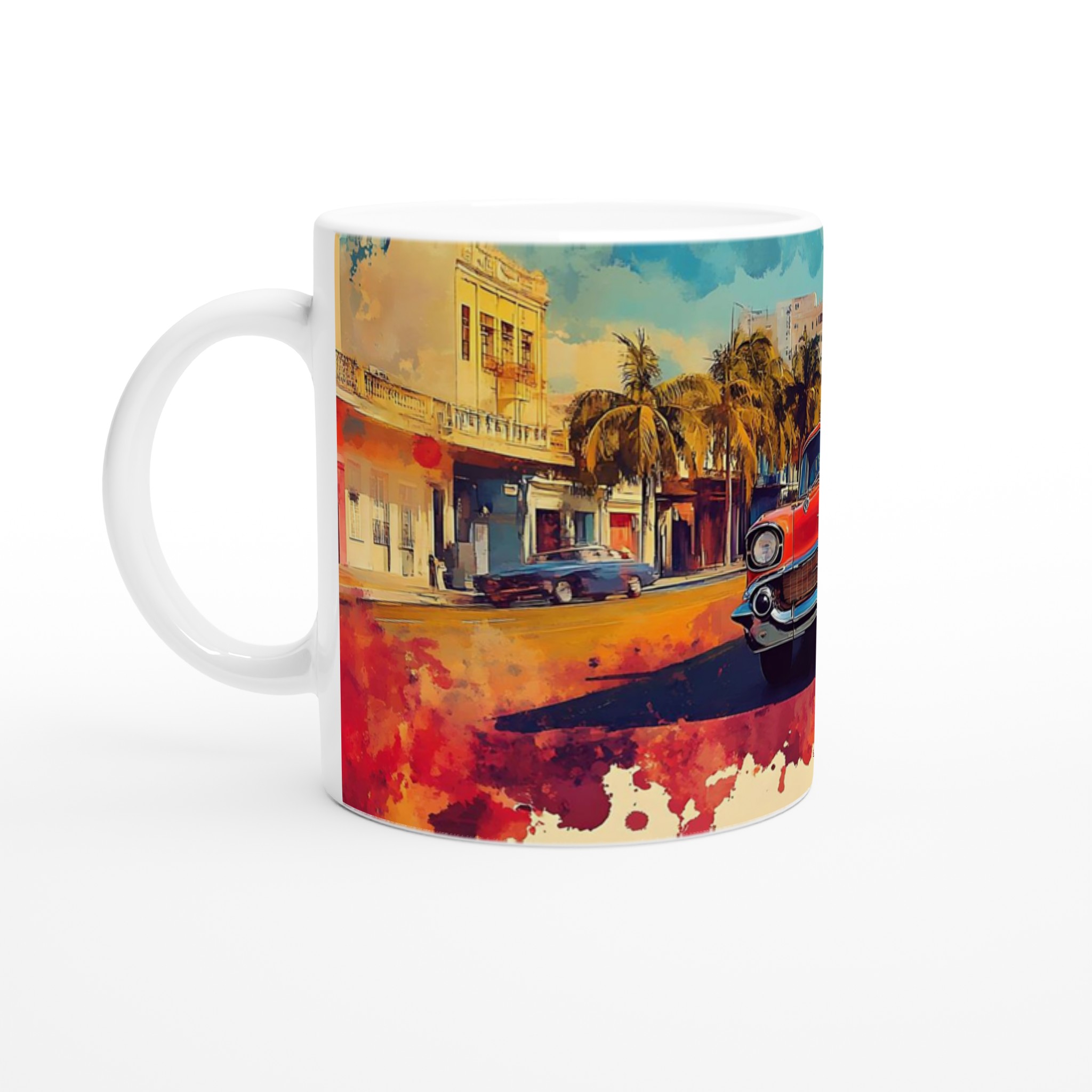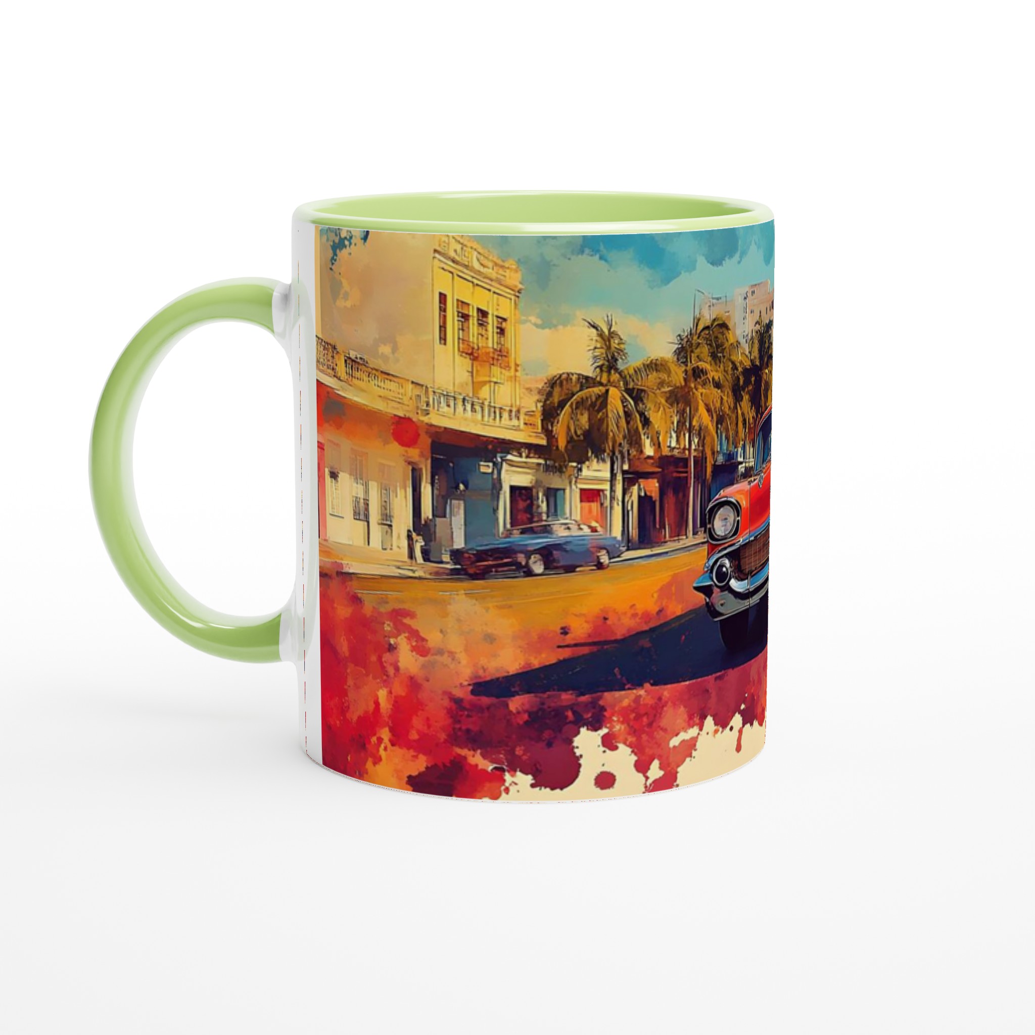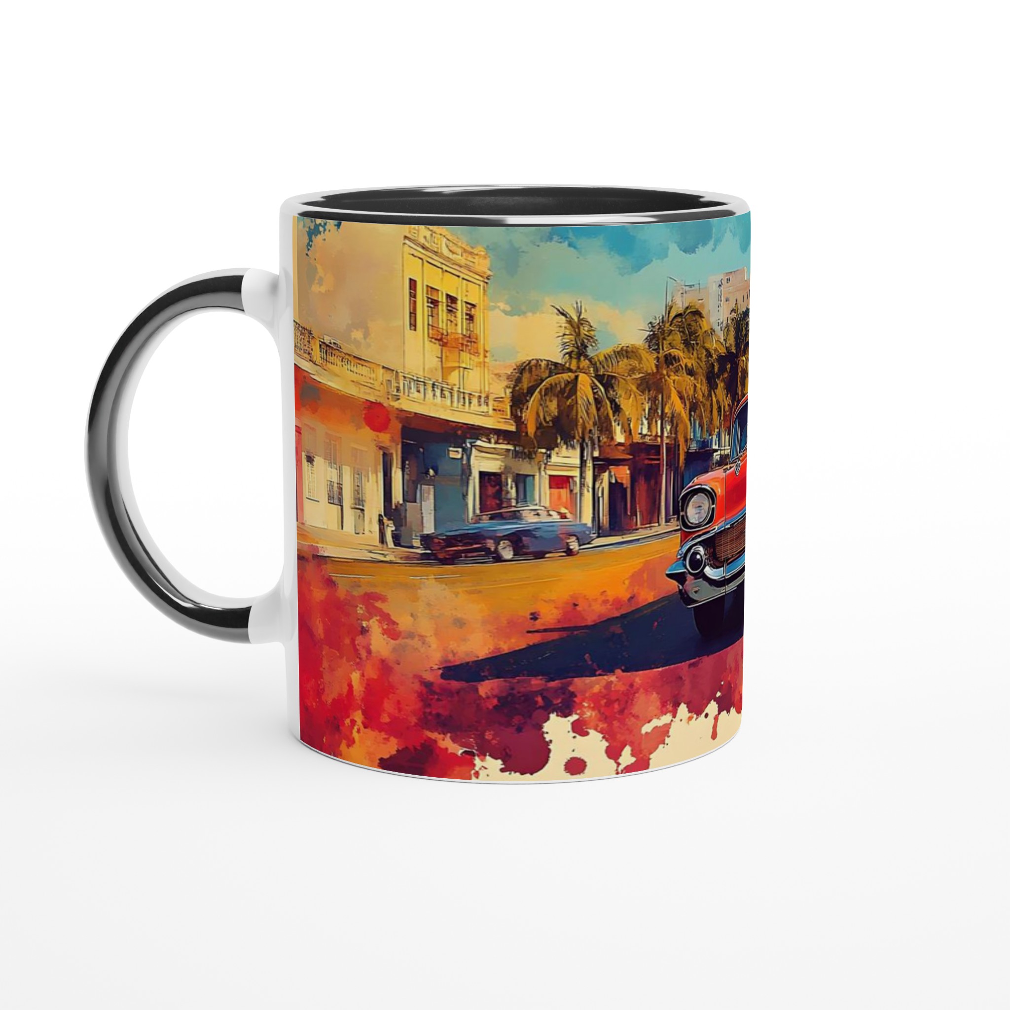 Retro Havana Vibes – Premium Ceramic Mug 11oz, in your choice of seven vibrant colors