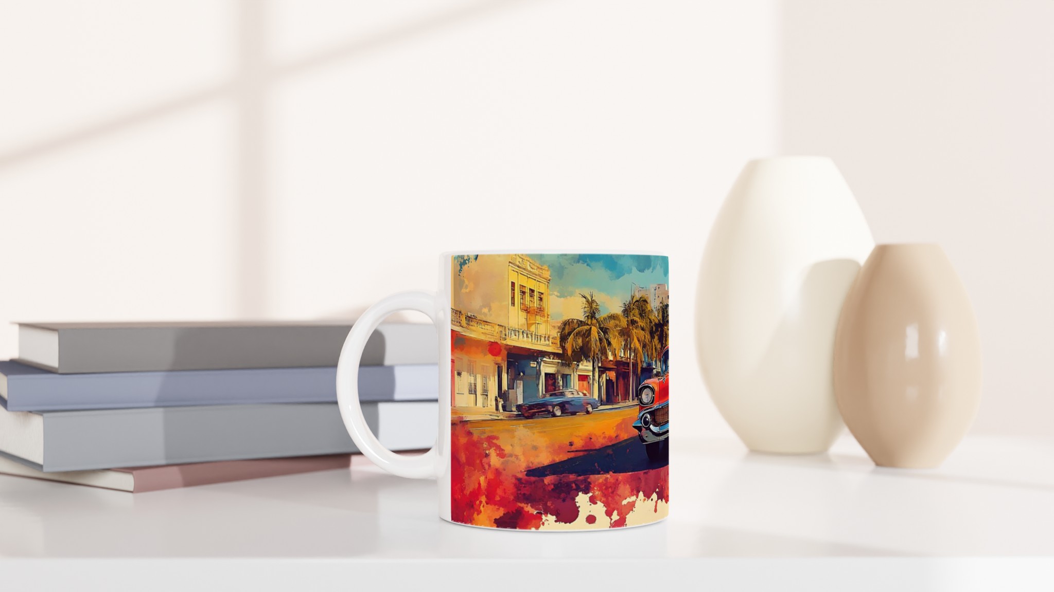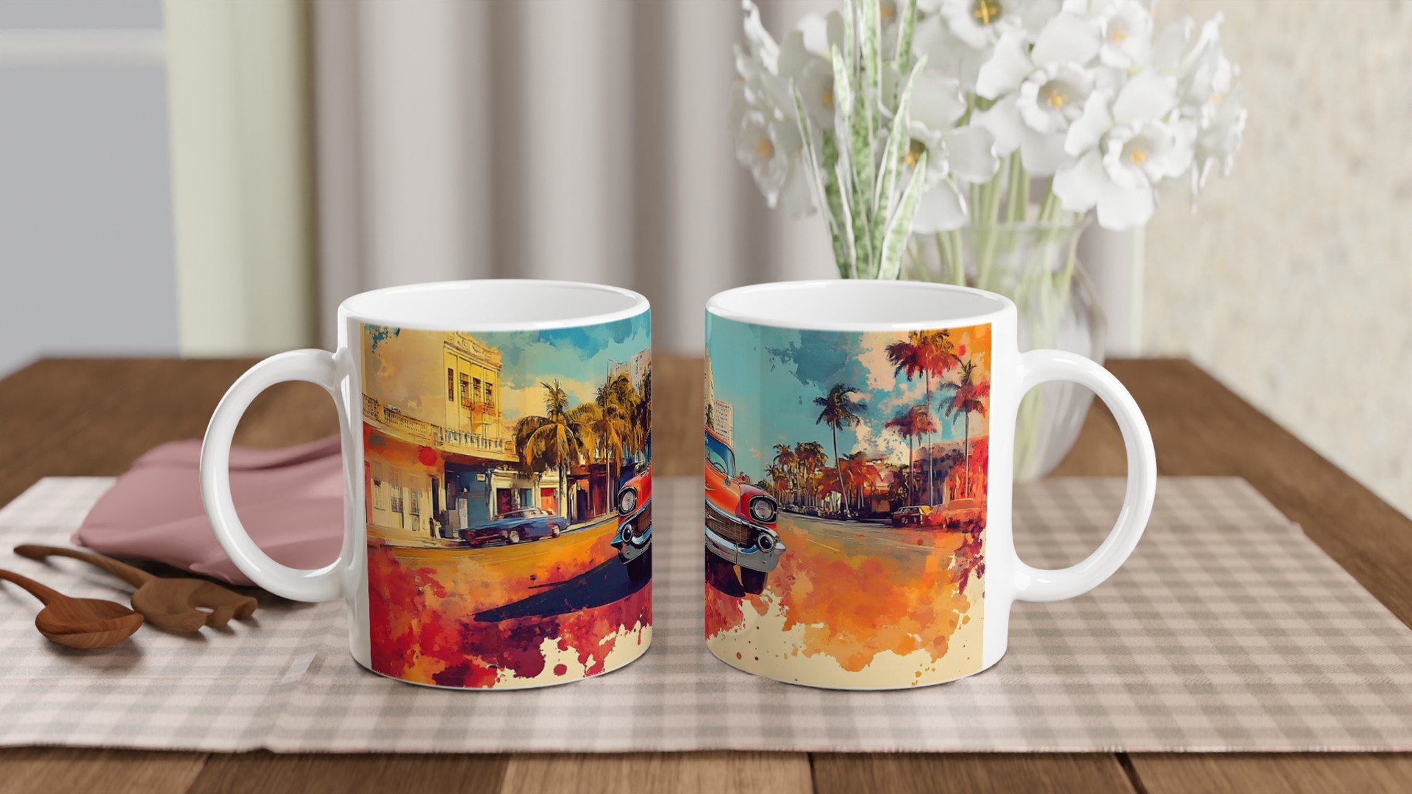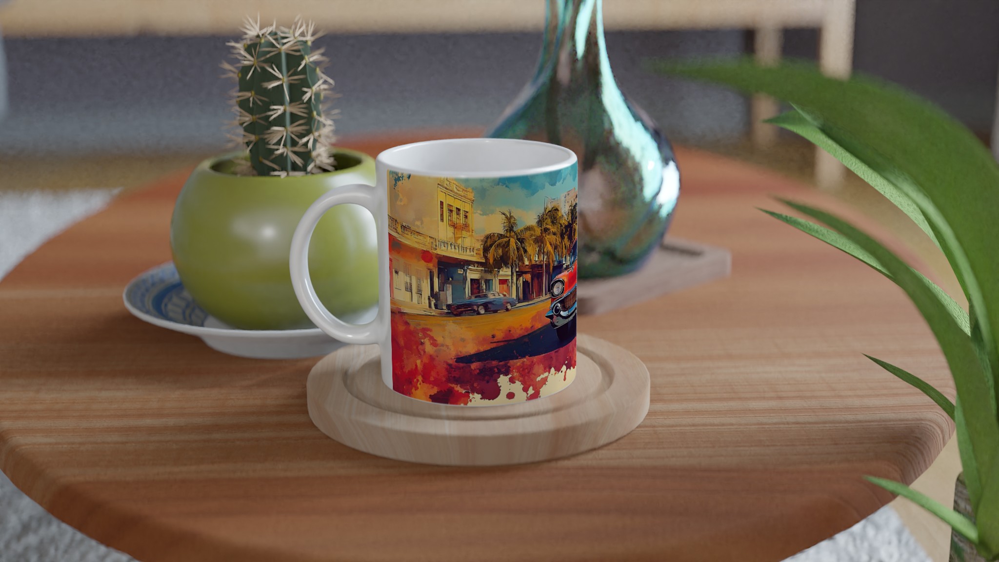 Retro Havana Vibes – Premium Ceramic Mug 11oz, in your choice of seven vibrant colors