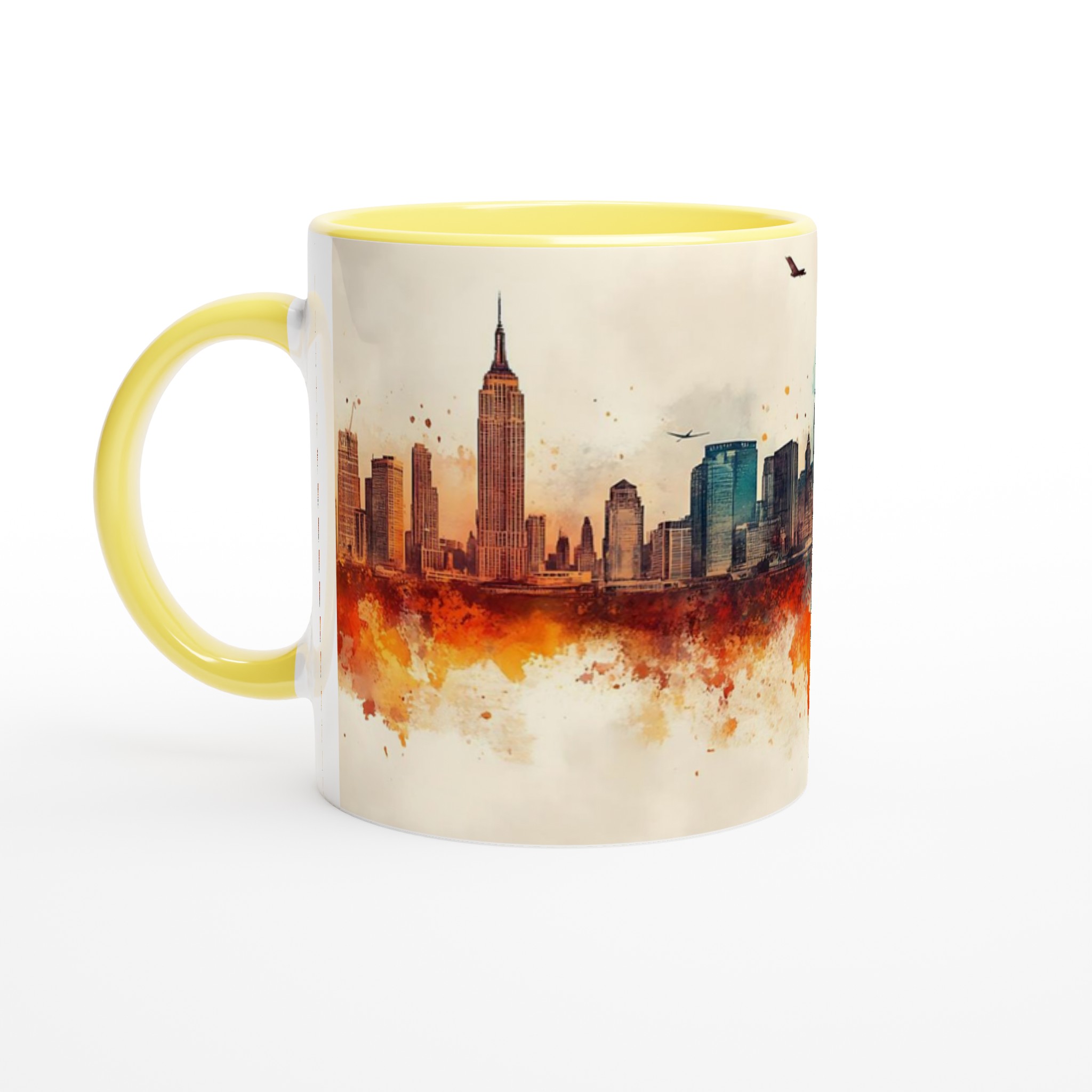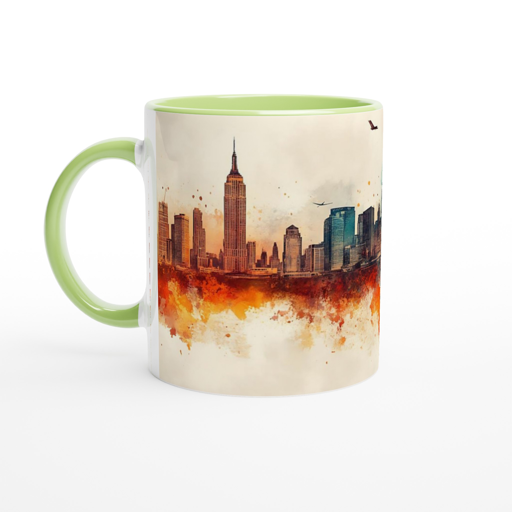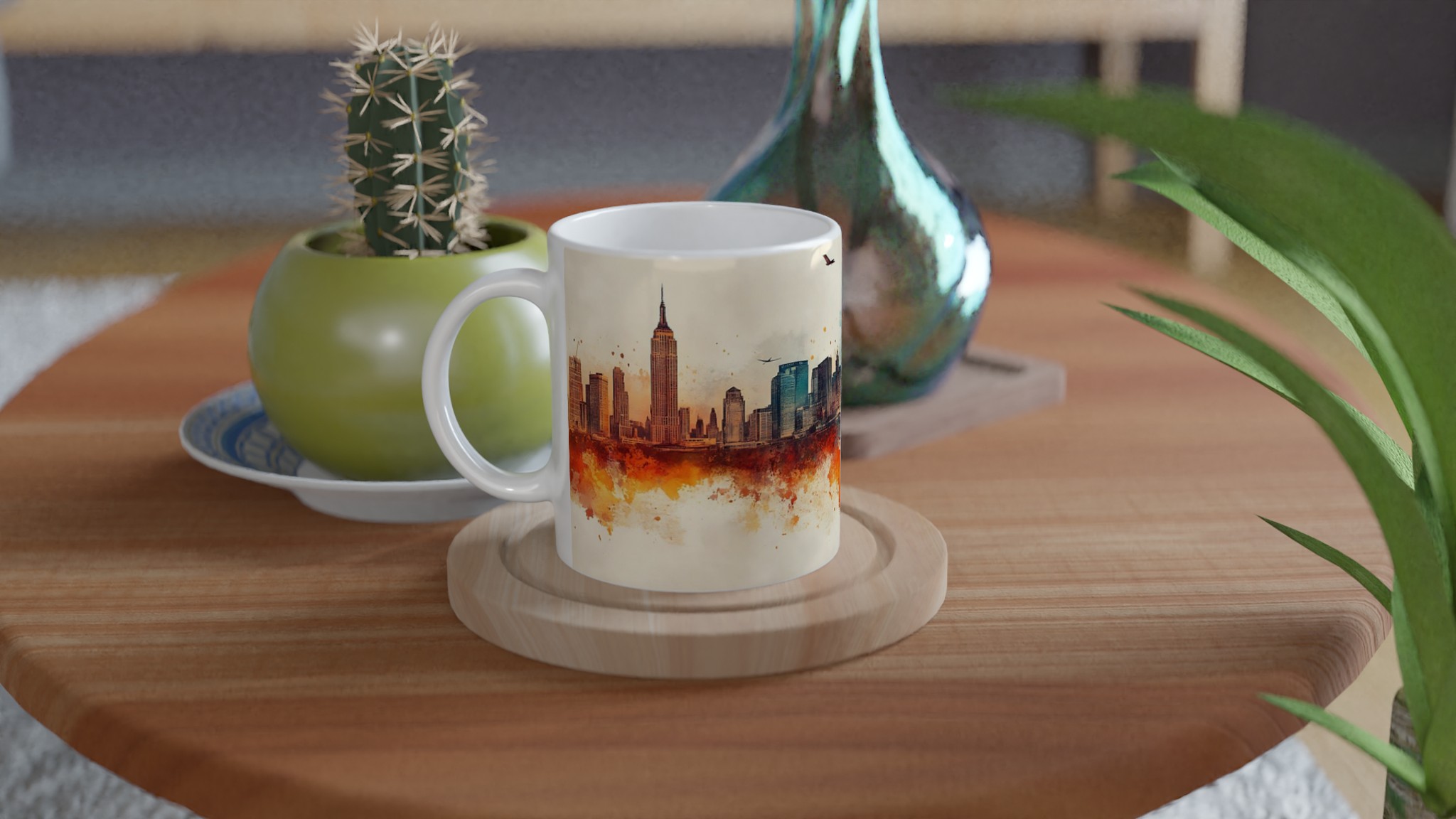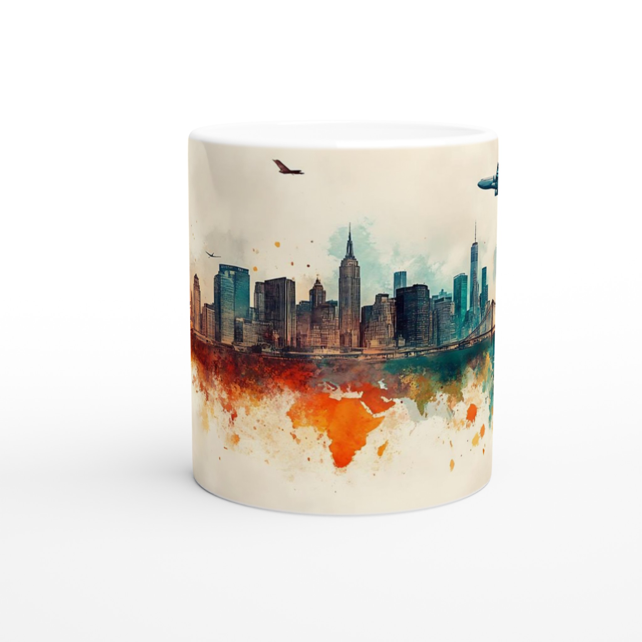 Global Cityscape Watercolor Mug – Everyday Favorite 11oz Ceramic Mug in Your Choice of 7 Vibrant Colors