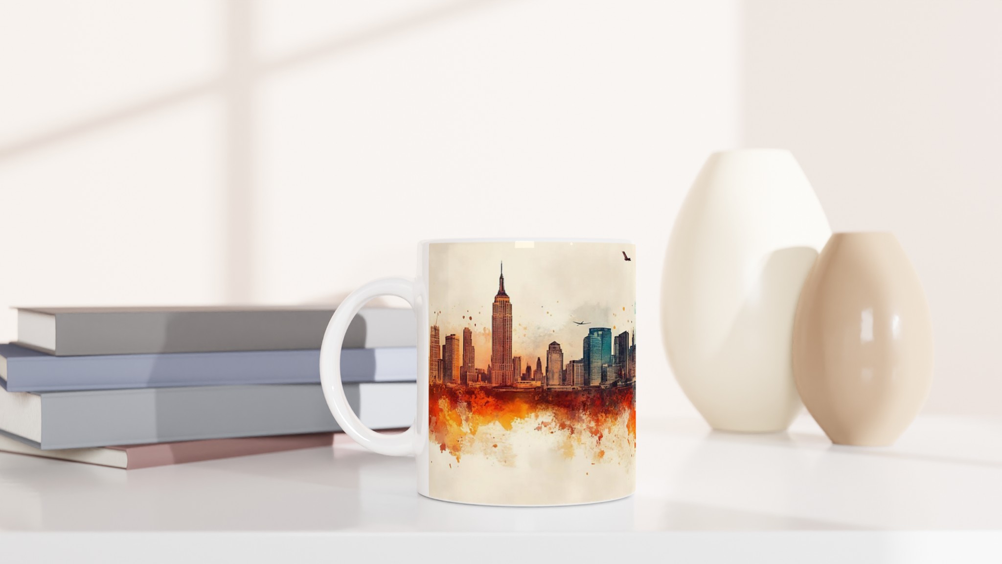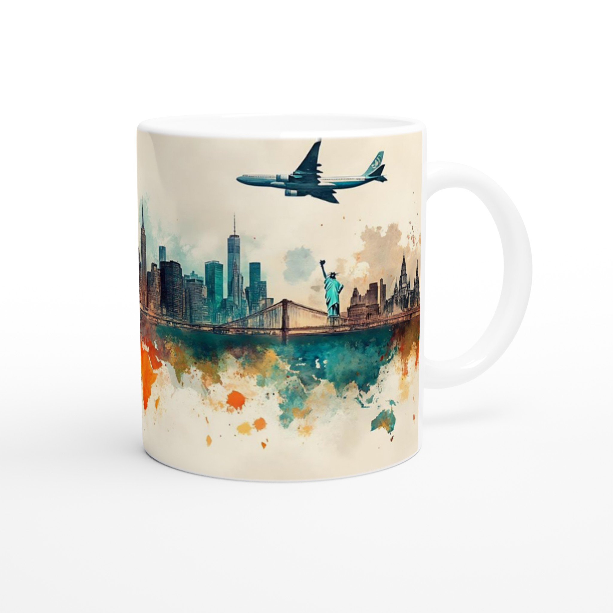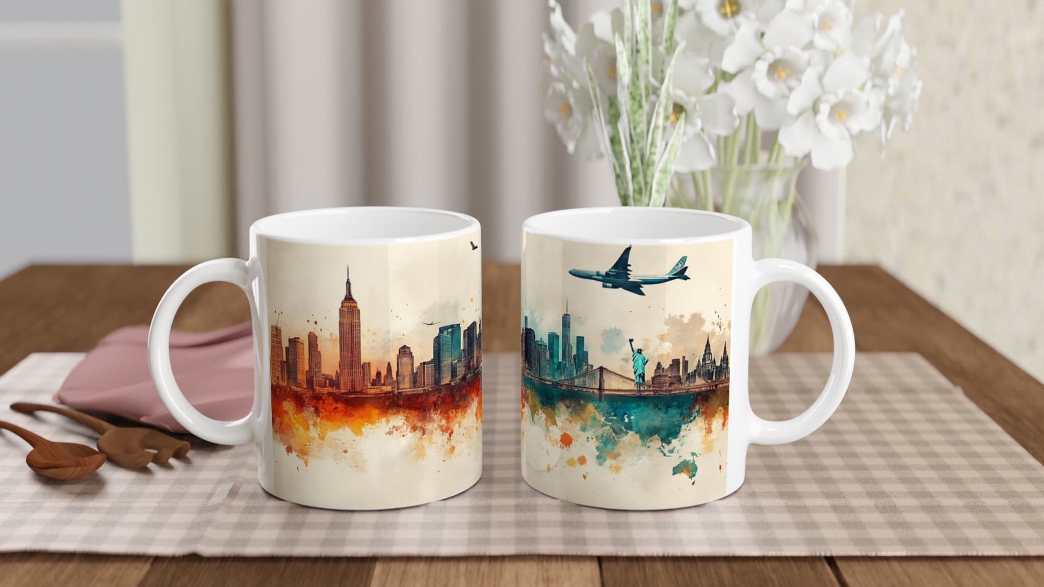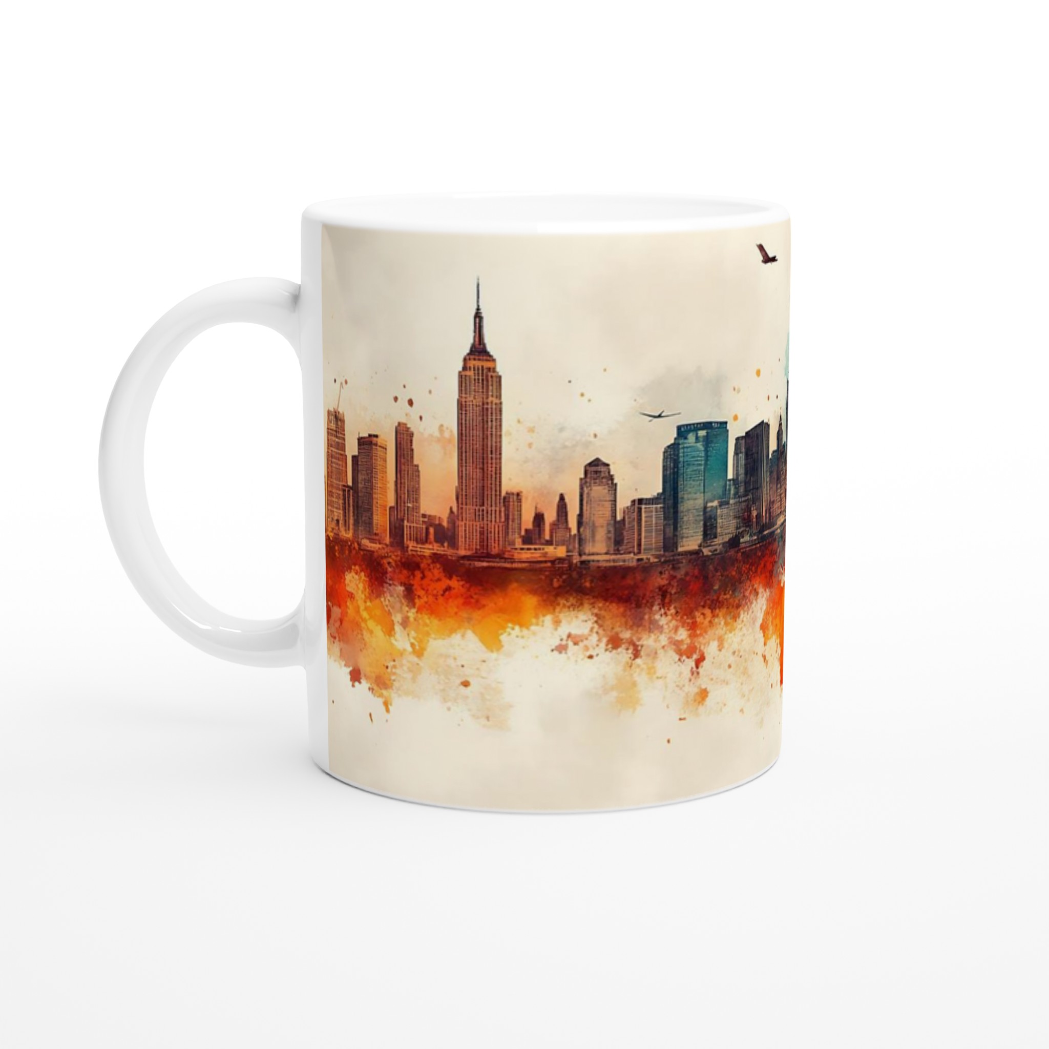 Global Cityscape Watercolor Mug – Everyday Favorite 11oz Ceramic Mug in Your Choice of 7 Vibrant Colors