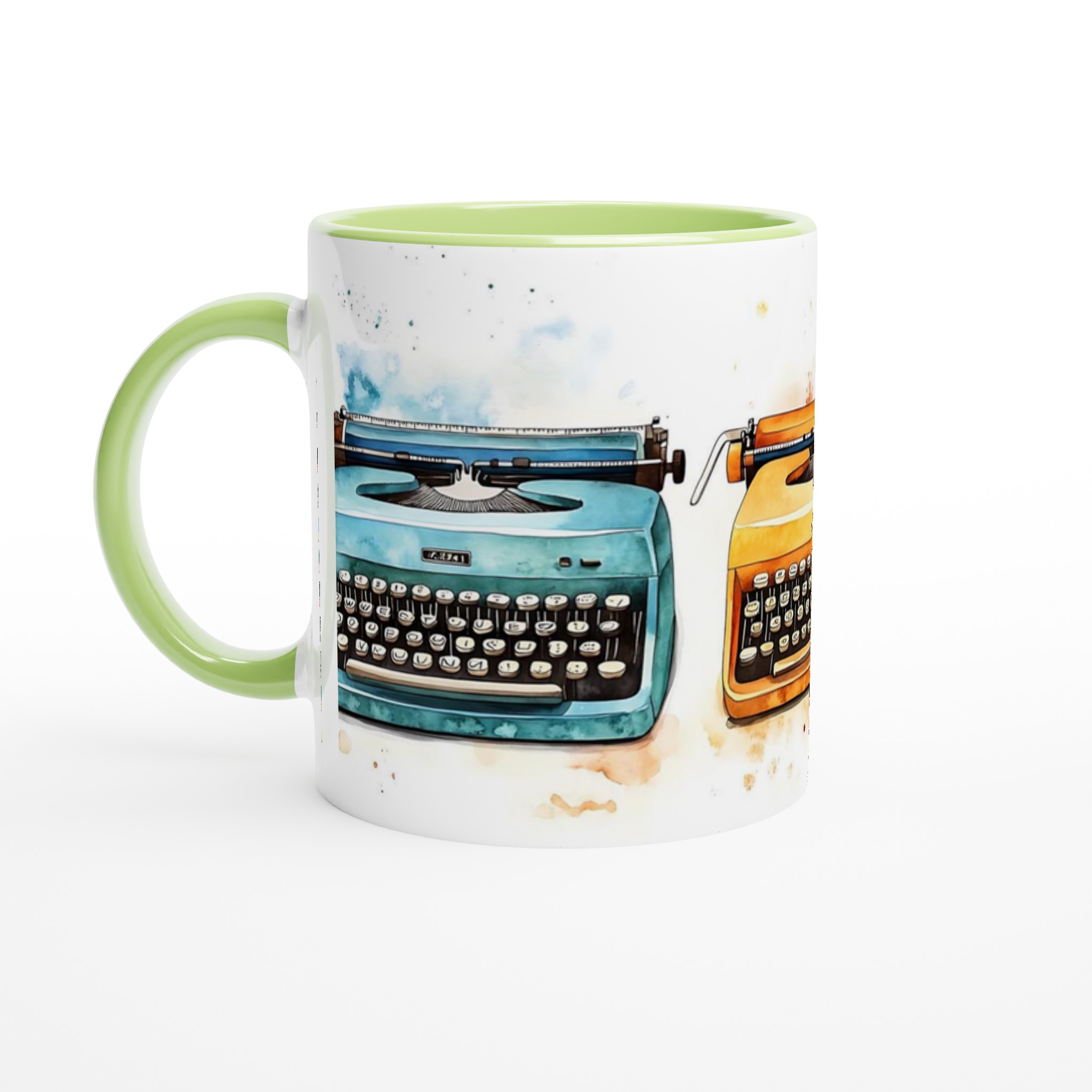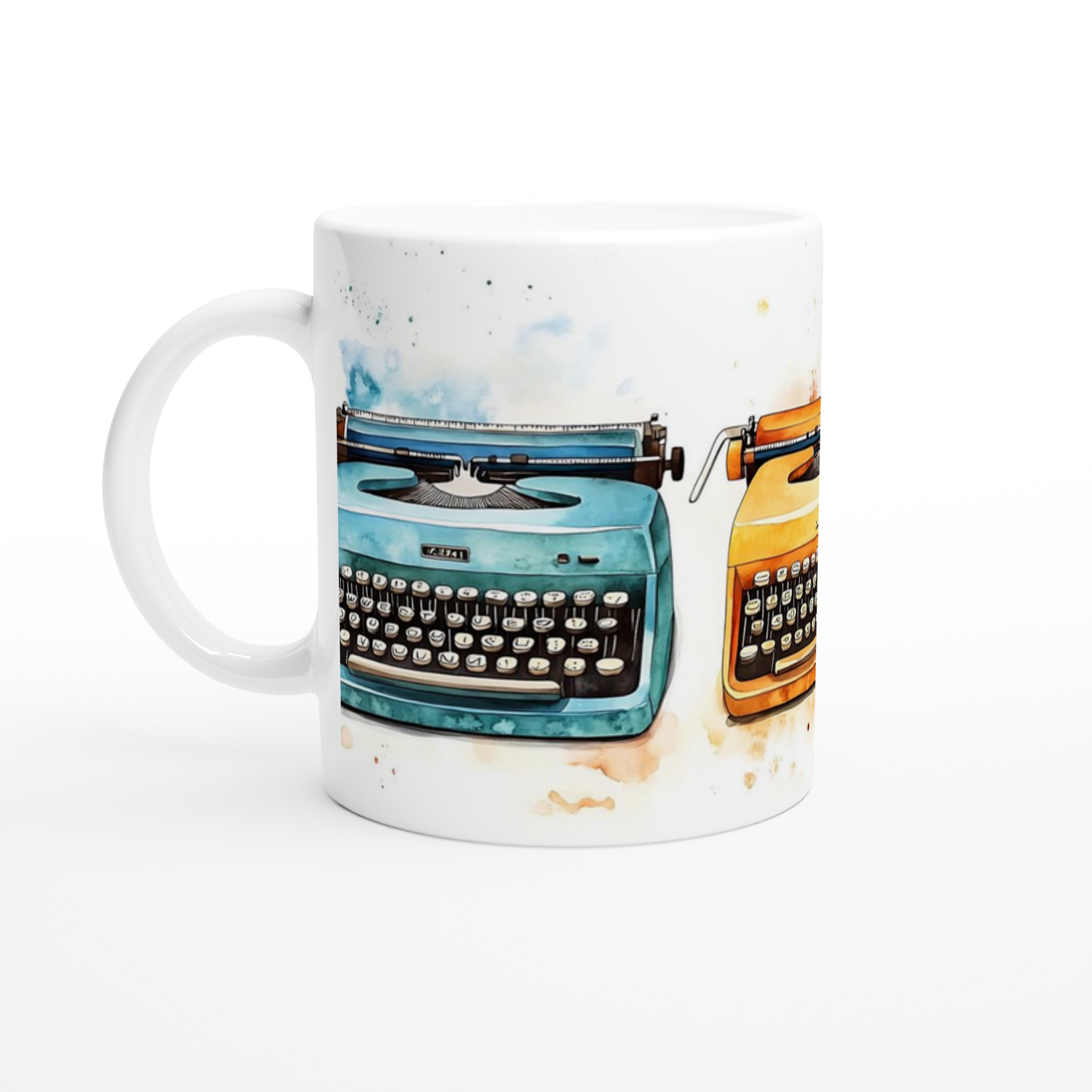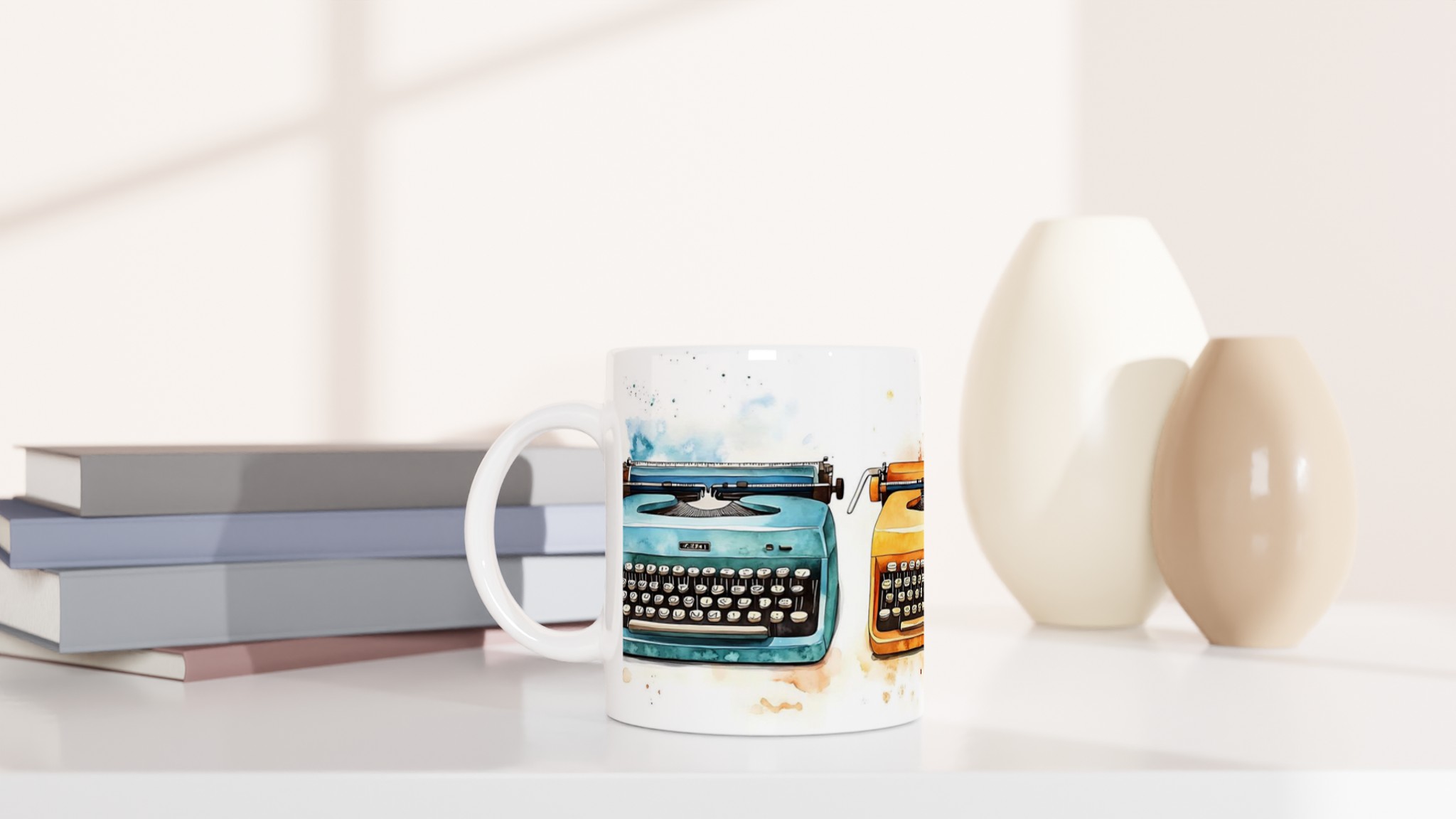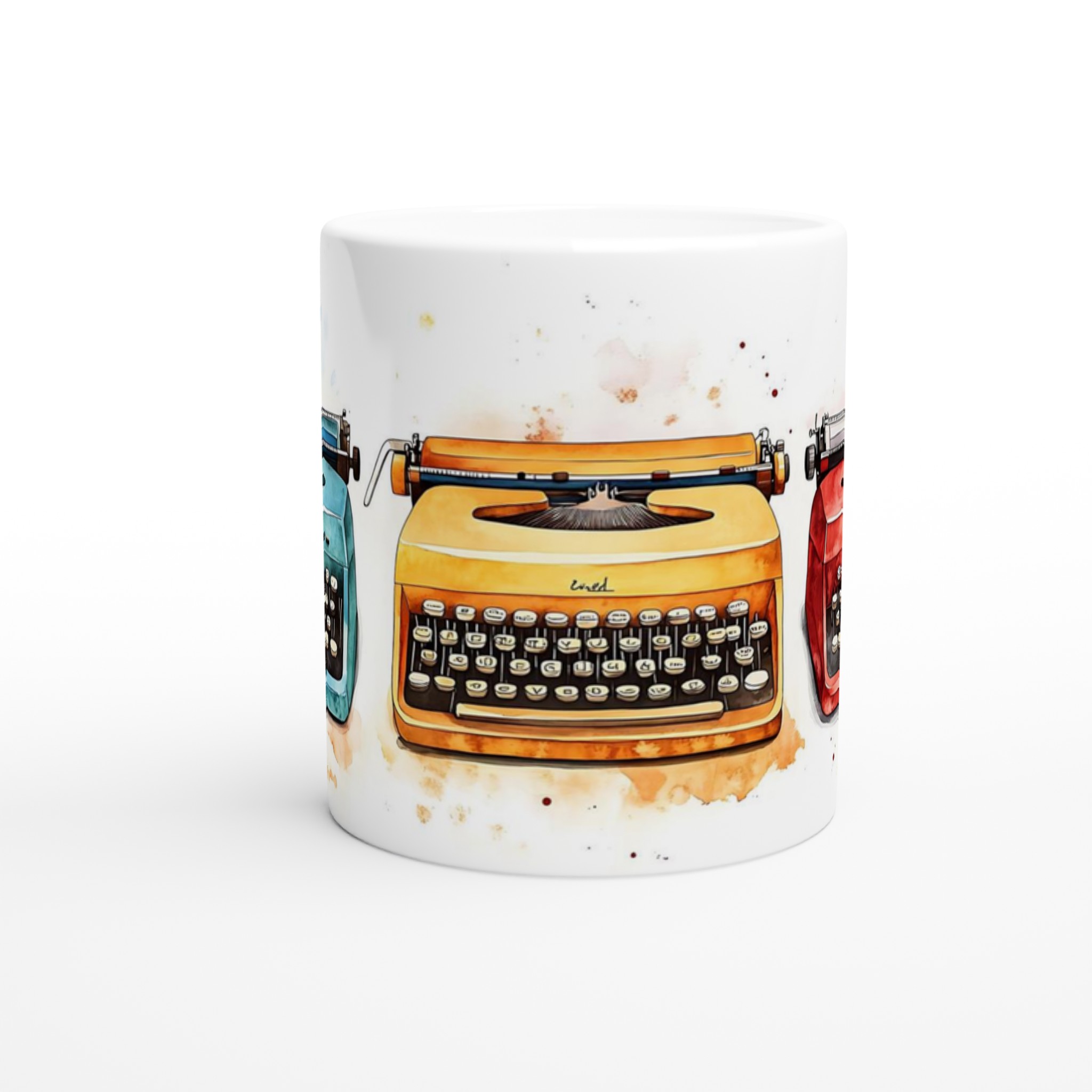 Retro Writer’s Muse – Watercolor Typewriter Ceramic Mug 11oz – Choose Your Creative Hue!