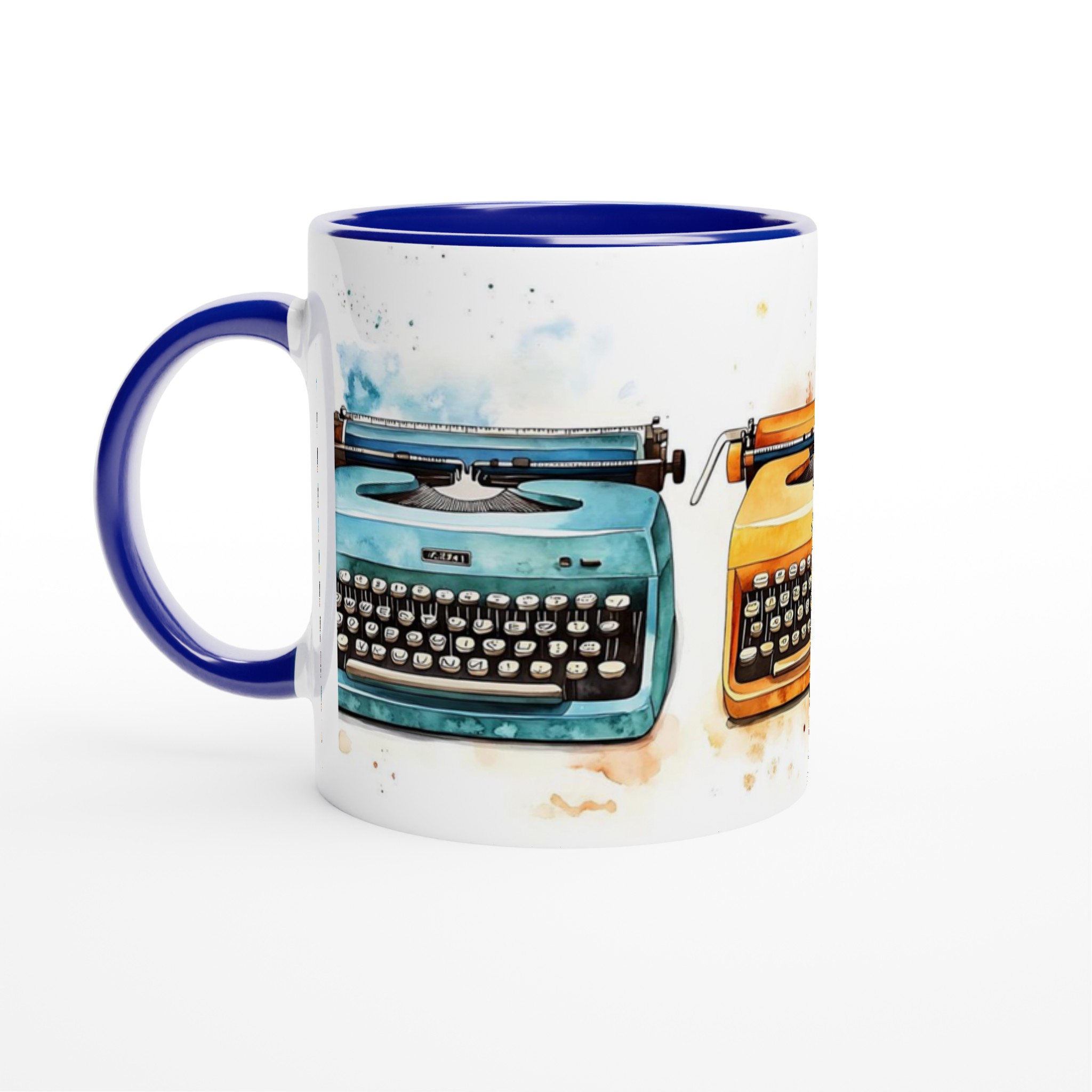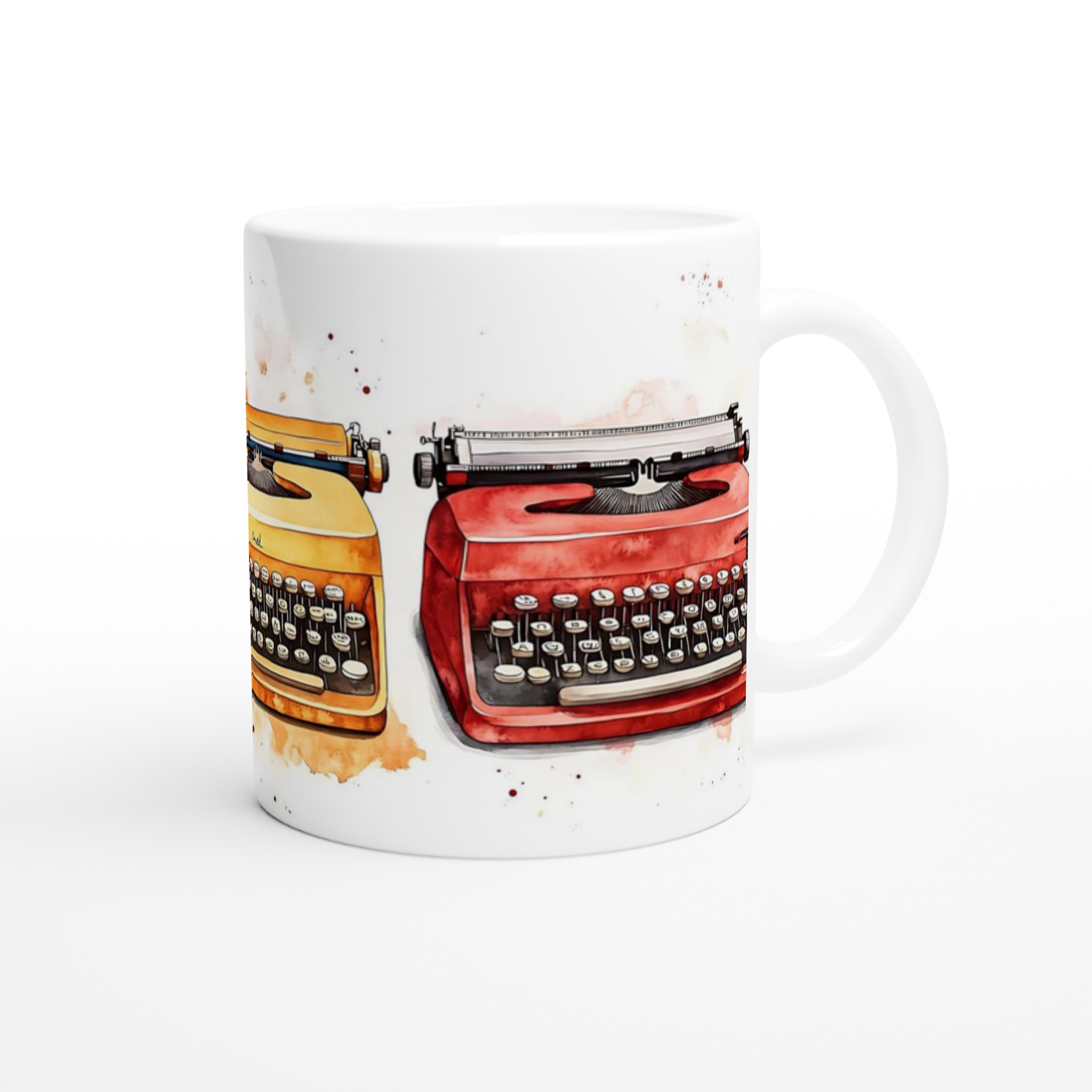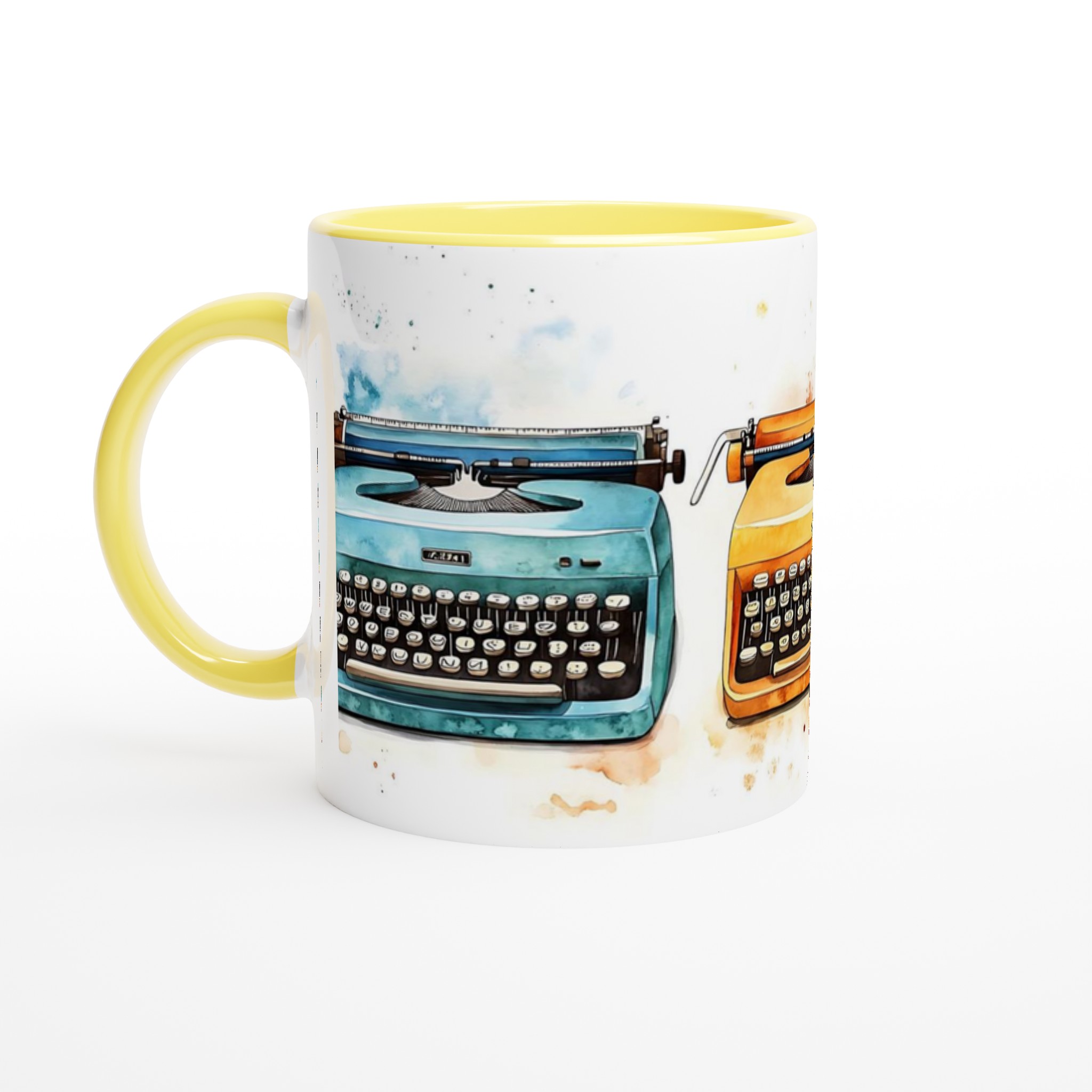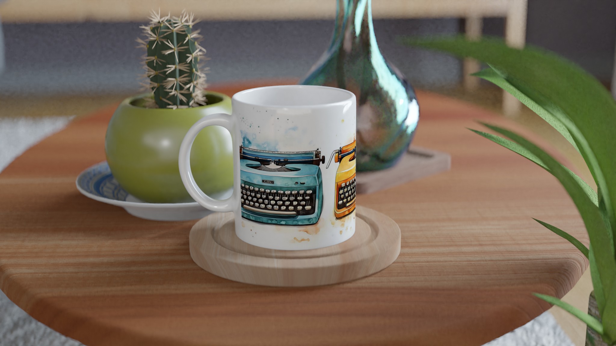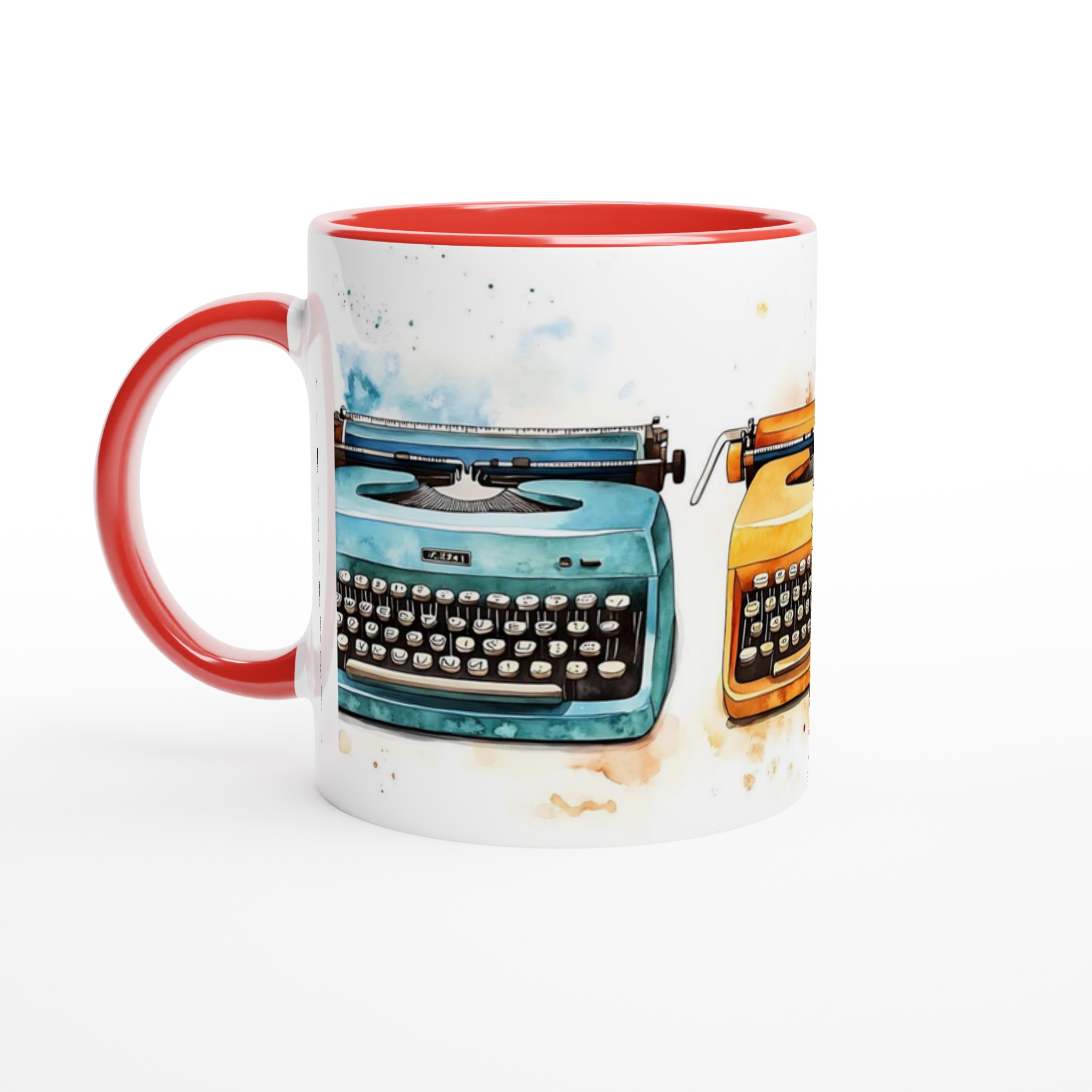 Retro Writer’s Muse – Watercolor Typewriter Ceramic Mug 11oz – Choose Your Creative Hue!