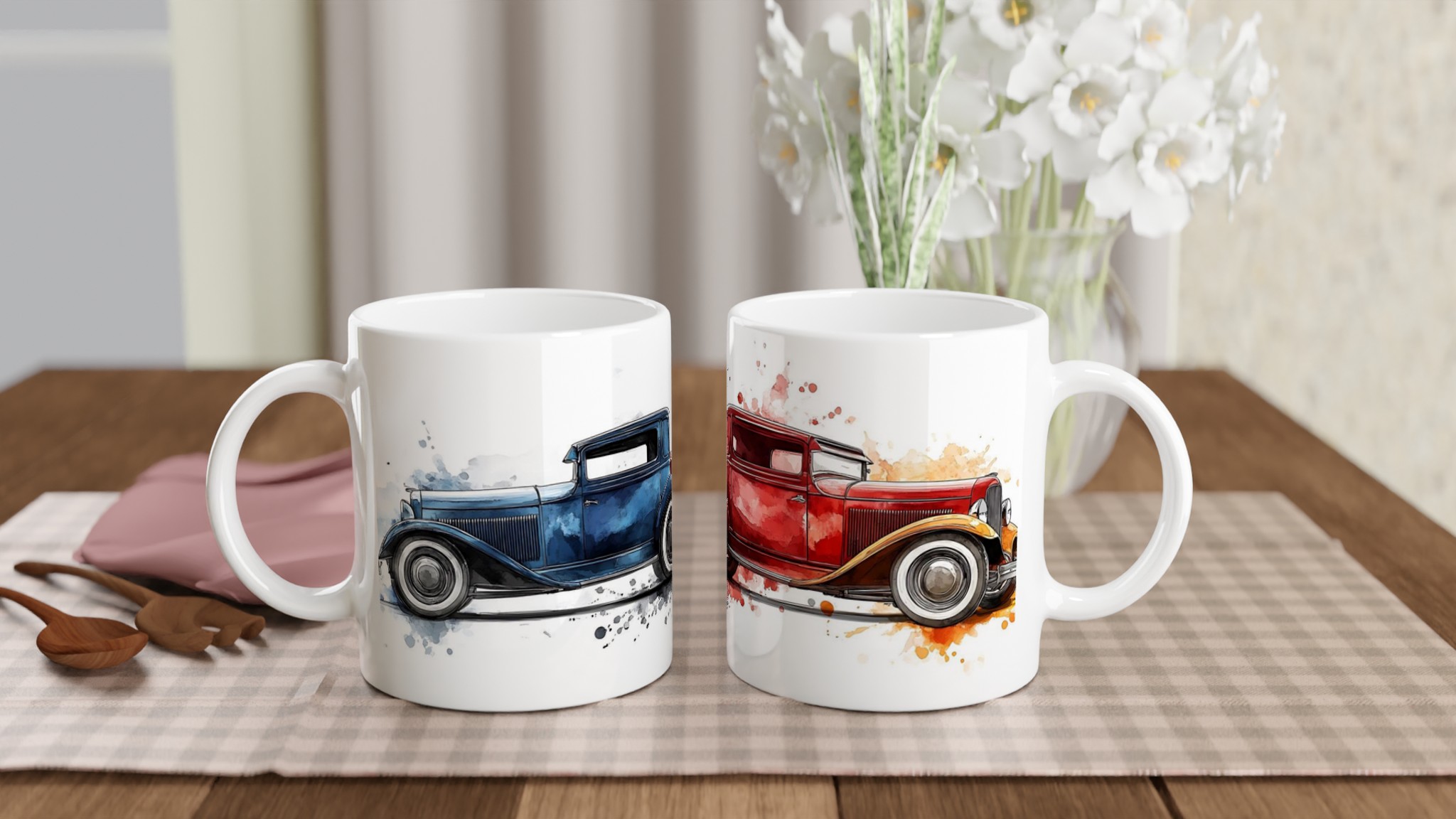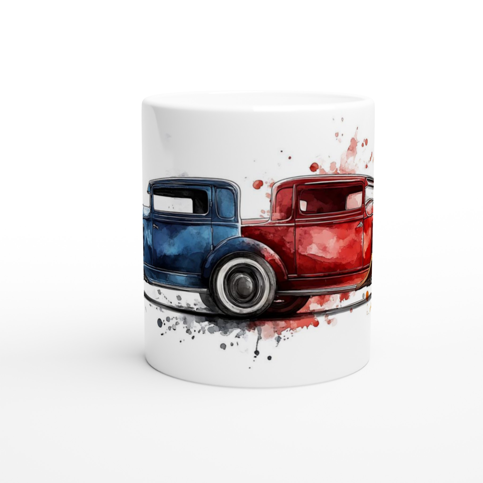 Classic Hot Rod Watercolor Mug – Vintage Car Art for Everyday Delight, in Your Favorite Hue!