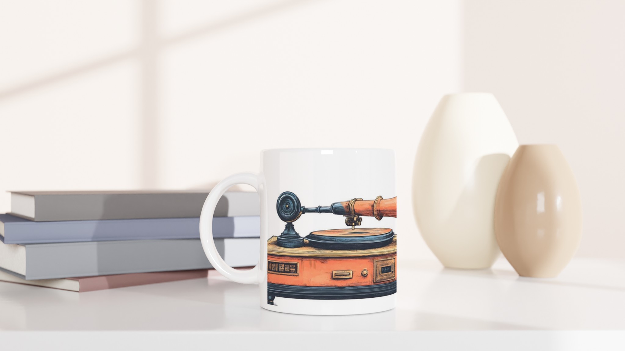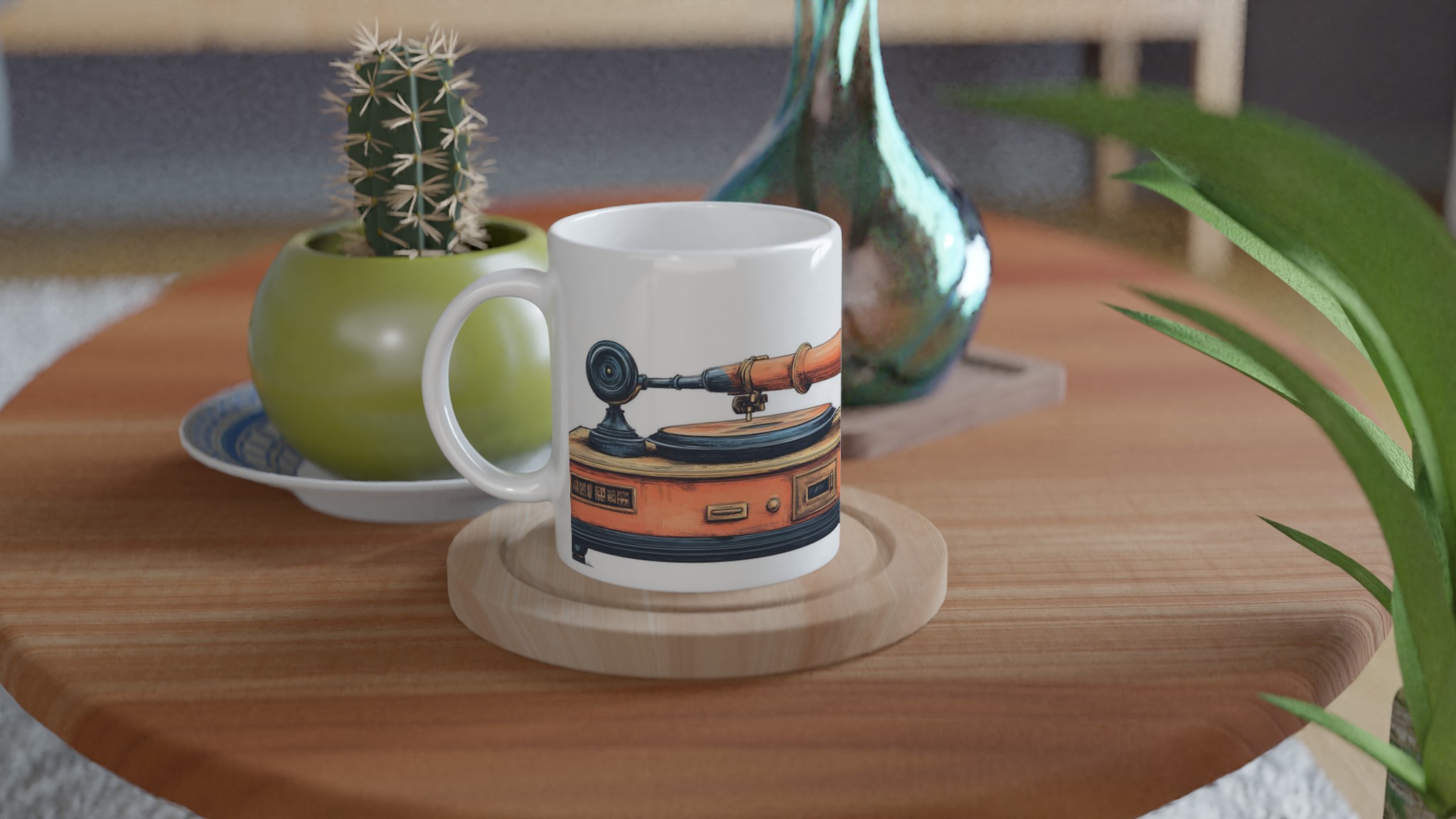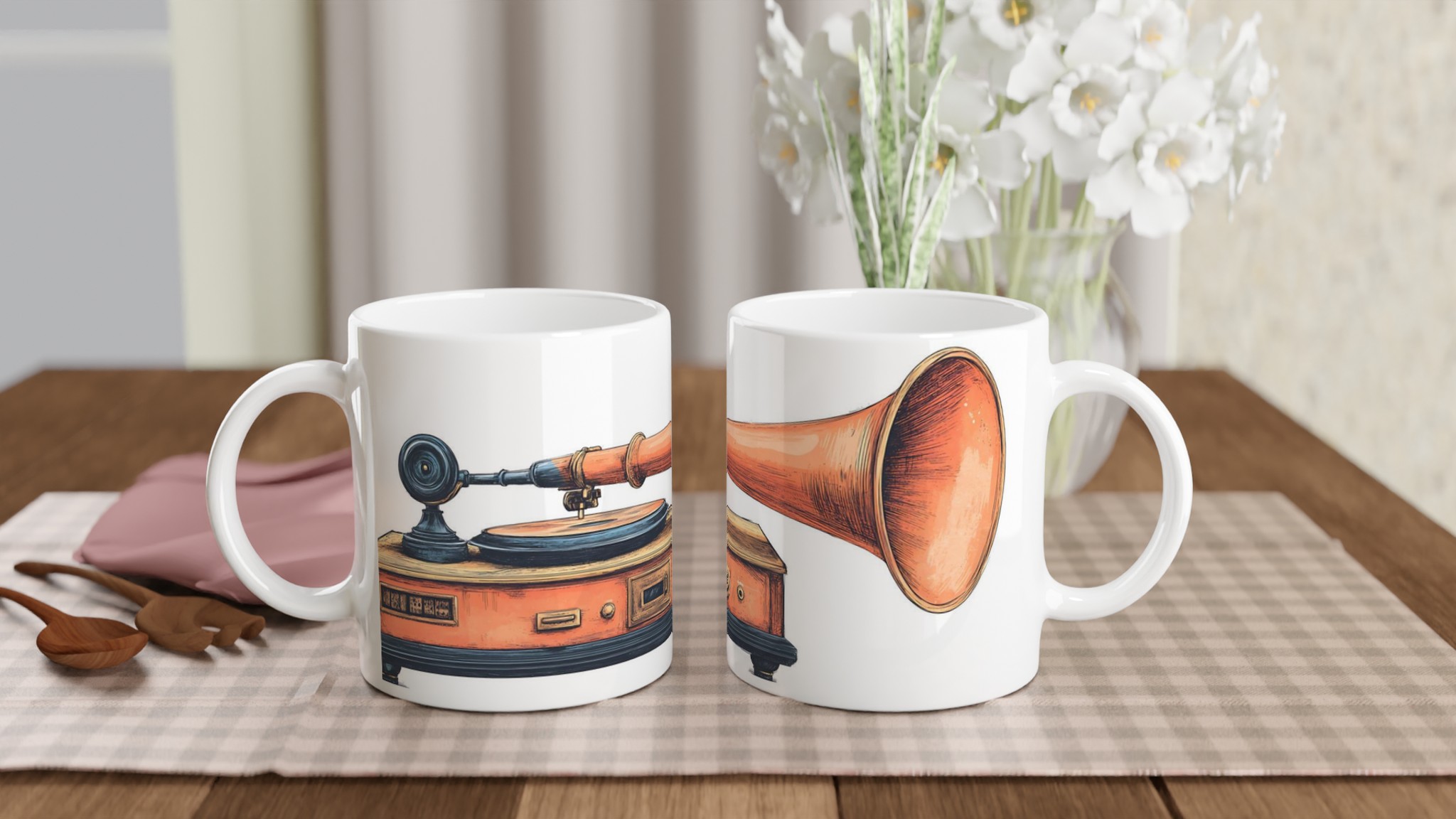 Vintage Gramophone Sketch Ceramic Mug – Relive Classic Melodies with Your Favorite Beverage in 7 Colors