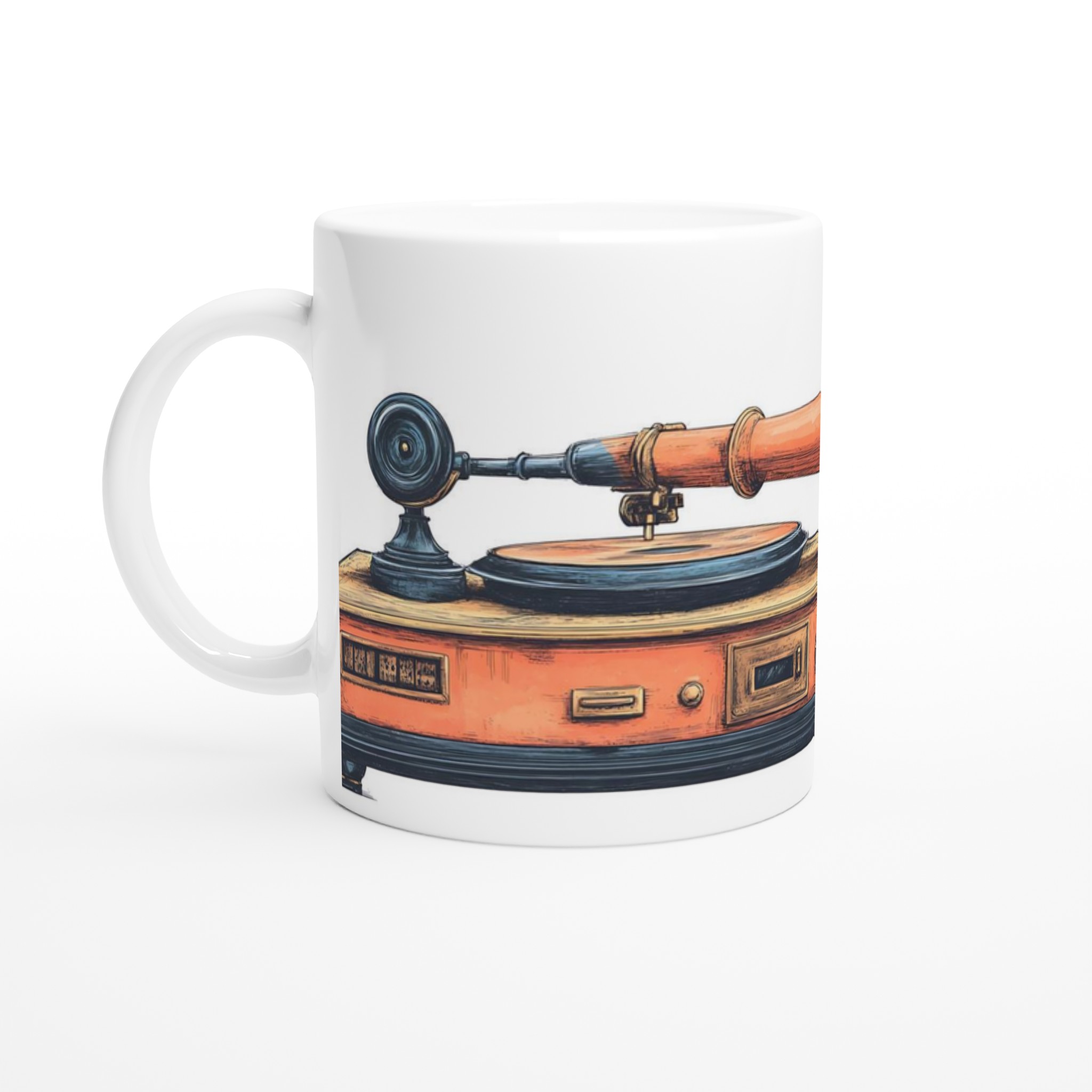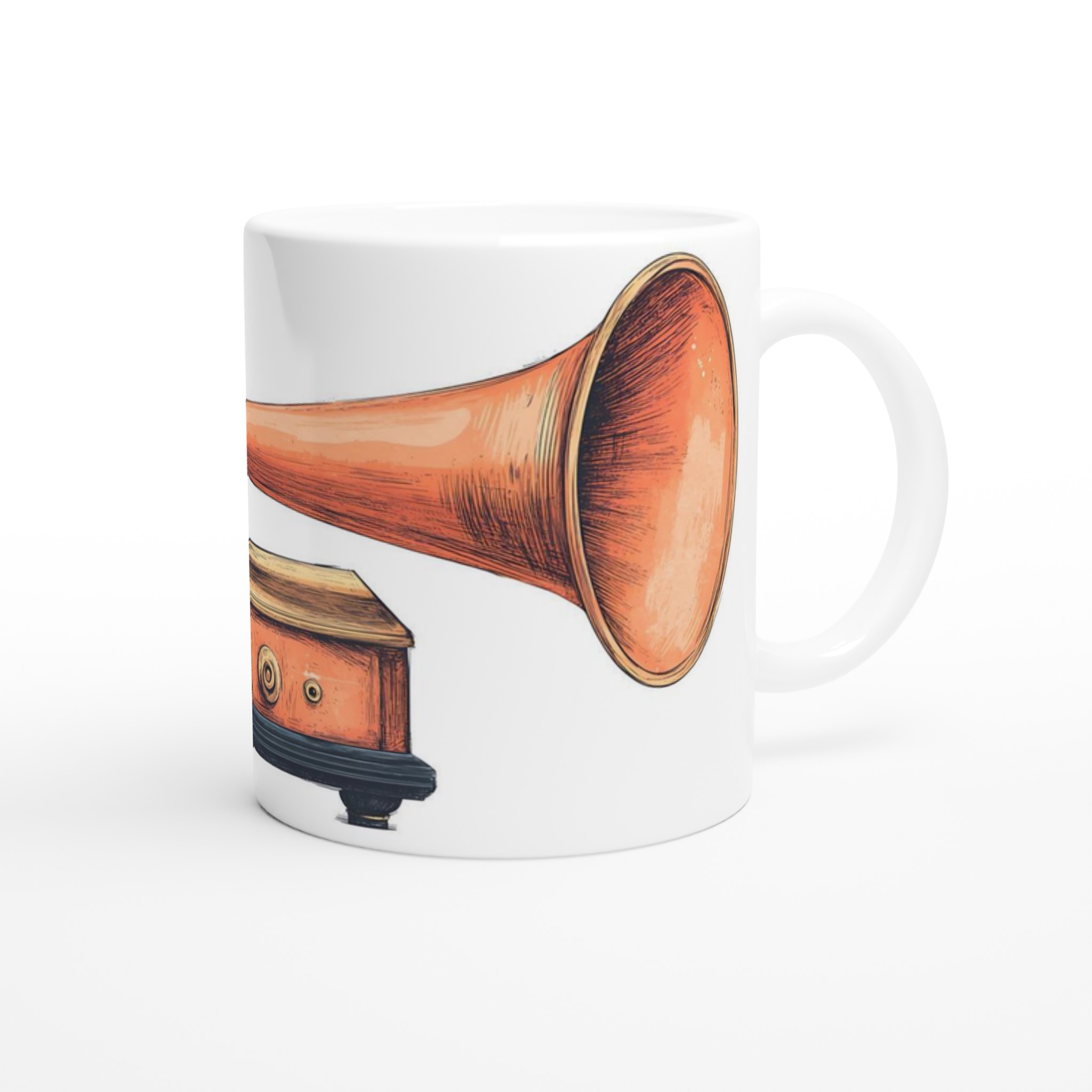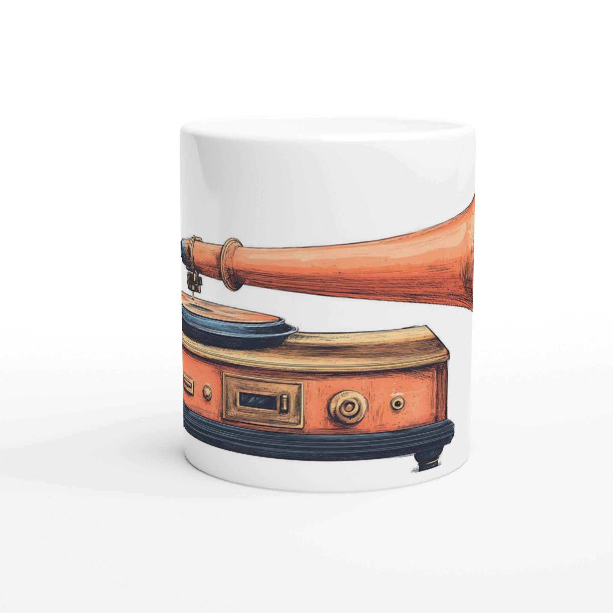 Vintage Gramophone Sketch Ceramic Mug – Relive Classic Melodies with Your Favorite Beverage in 7 Colors