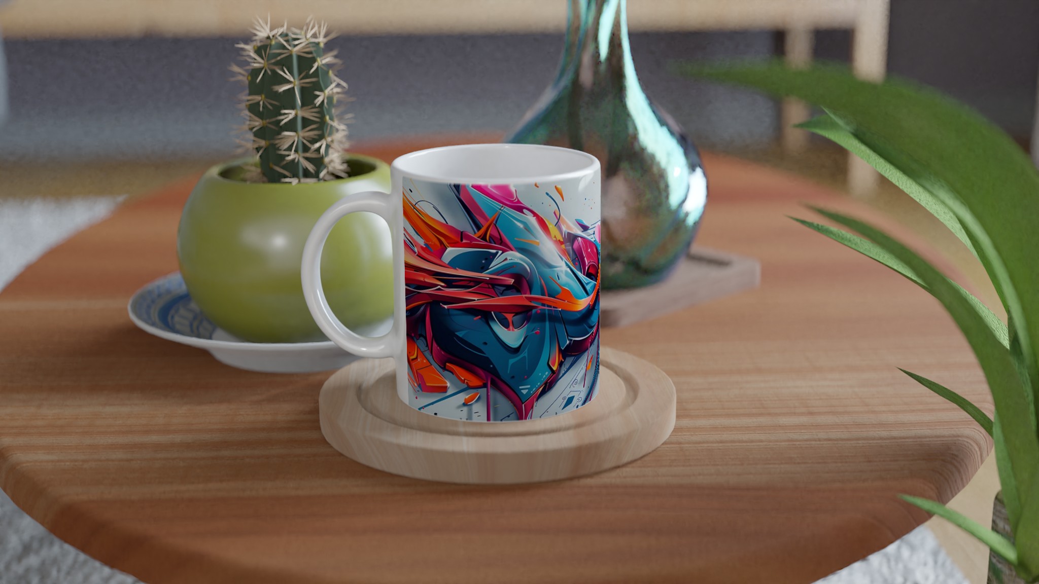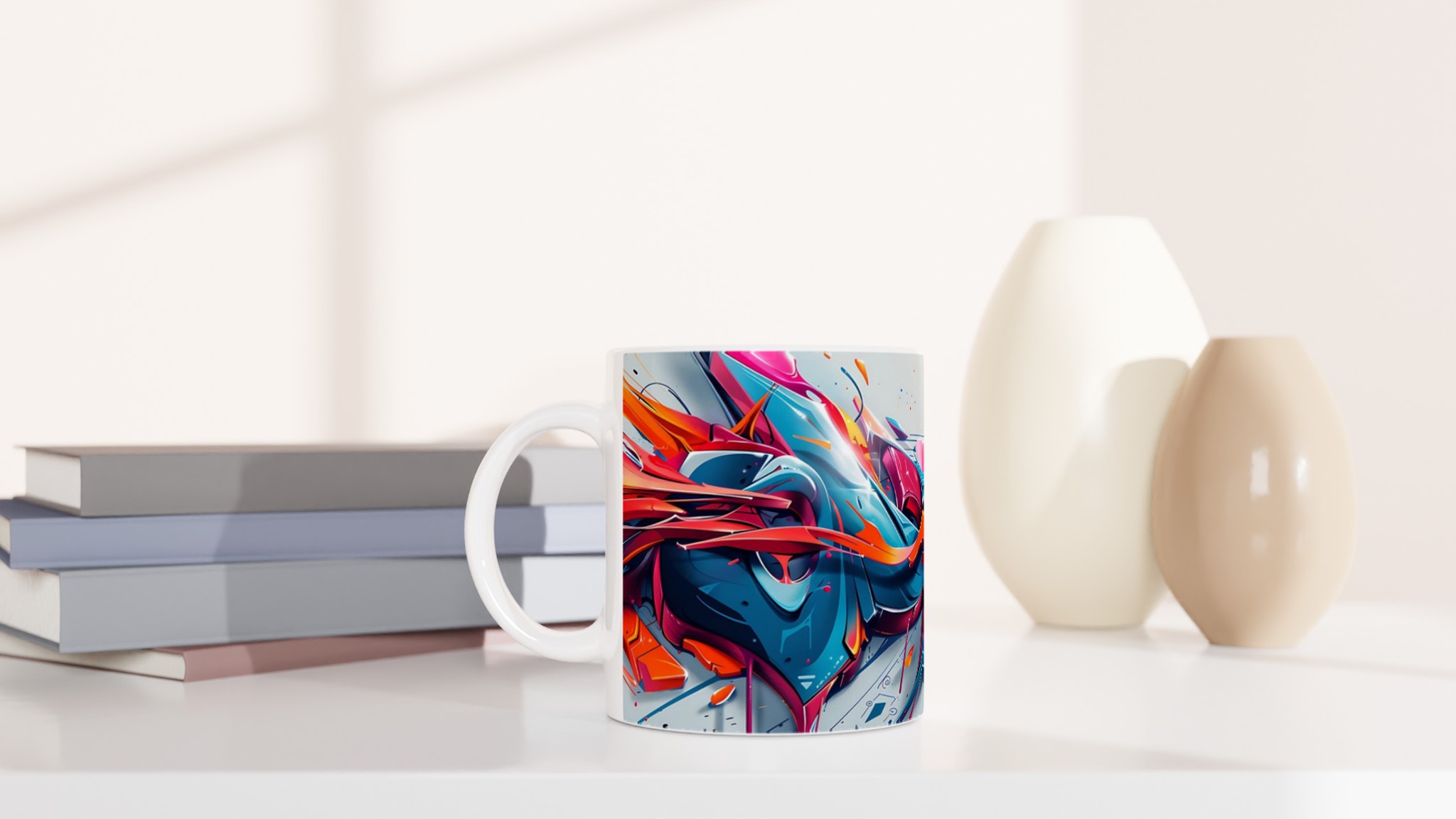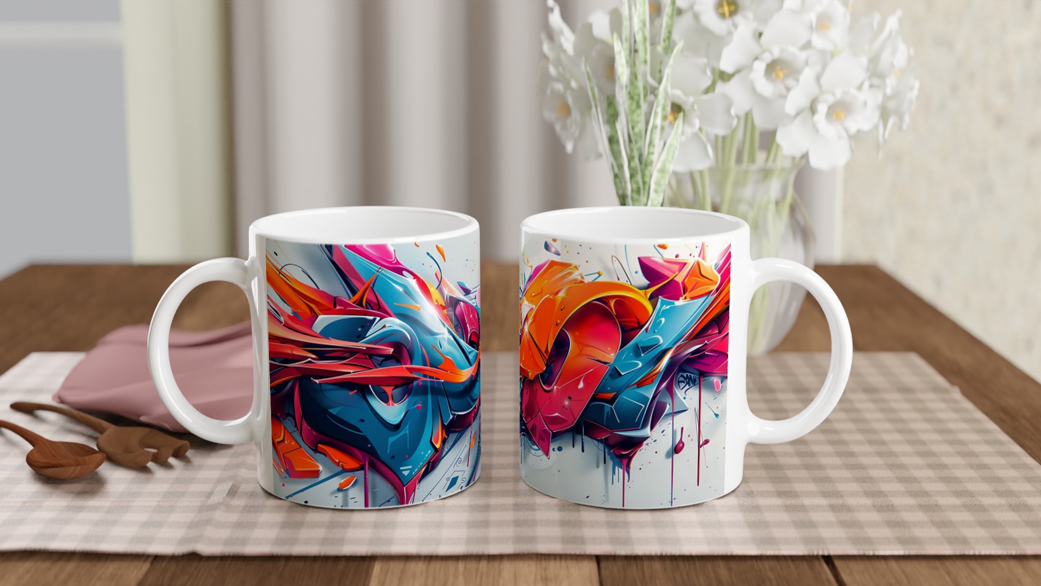 Vibrant Graffiti Swirl – Ceramic Mug 11oz, in your choice of seven striking colors!
