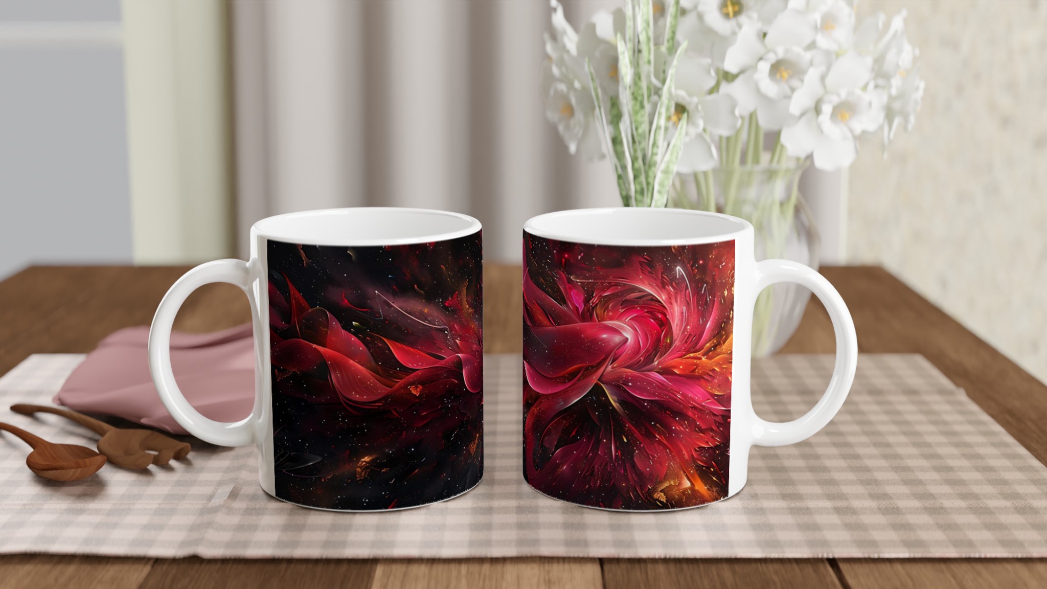 Cosmic Bloom – Abstract Floral 11oz Ceramic Mug in your choice of seven vibrant hues