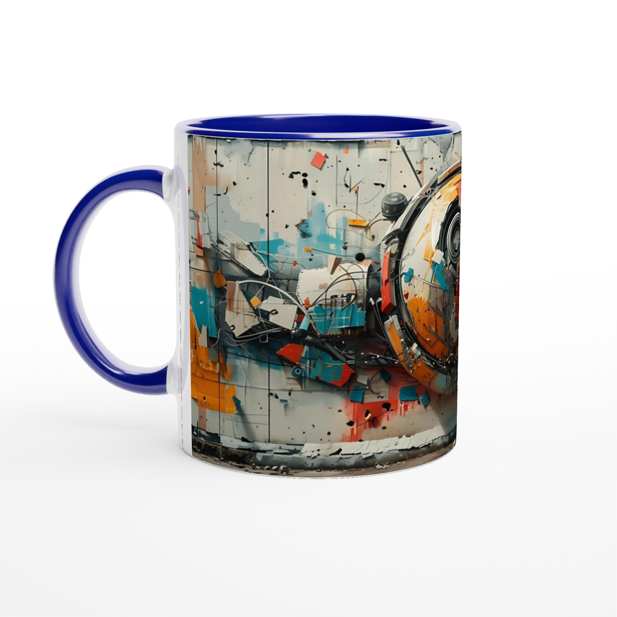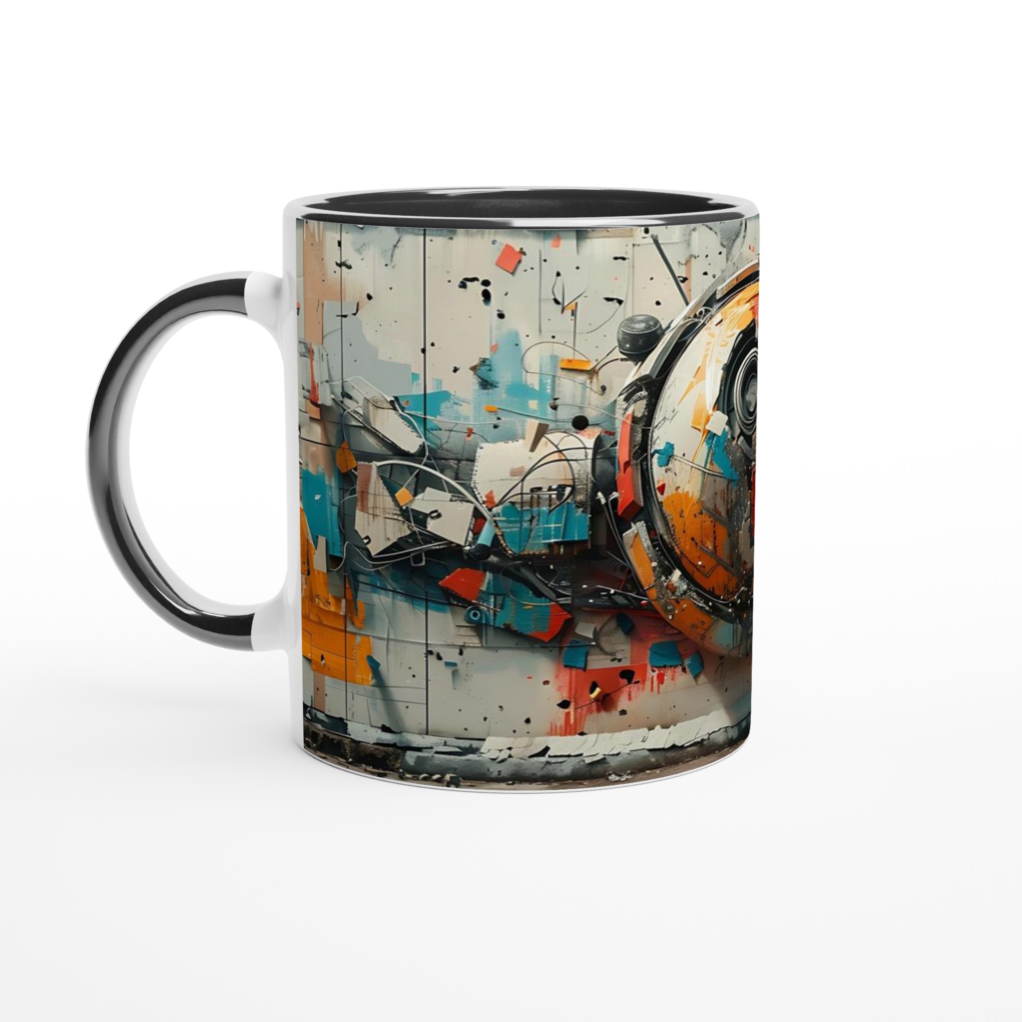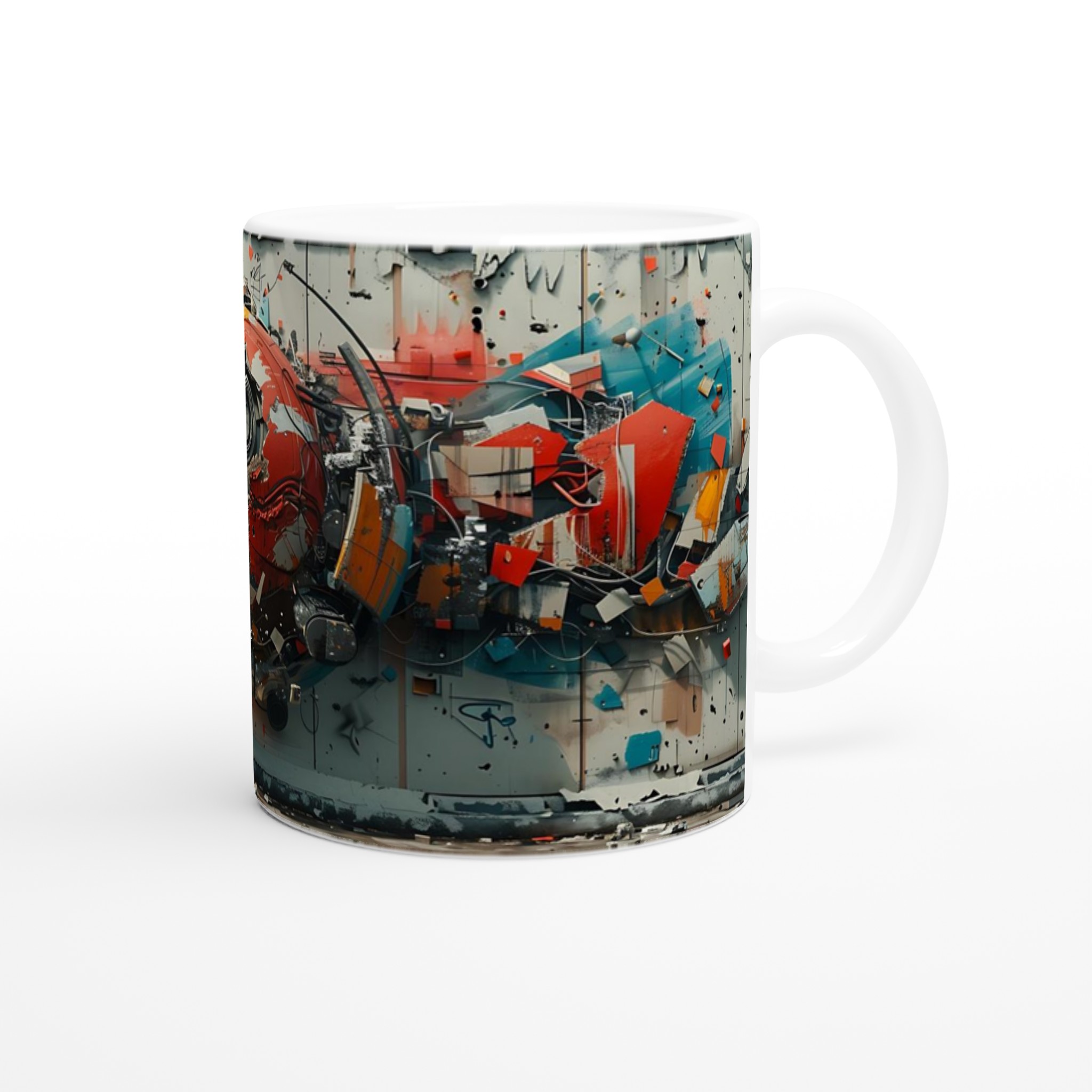 Abstract Urban Industrial Art Ceramic Mug – Unique Gift in Your Choice of 7 Vibrant Colors