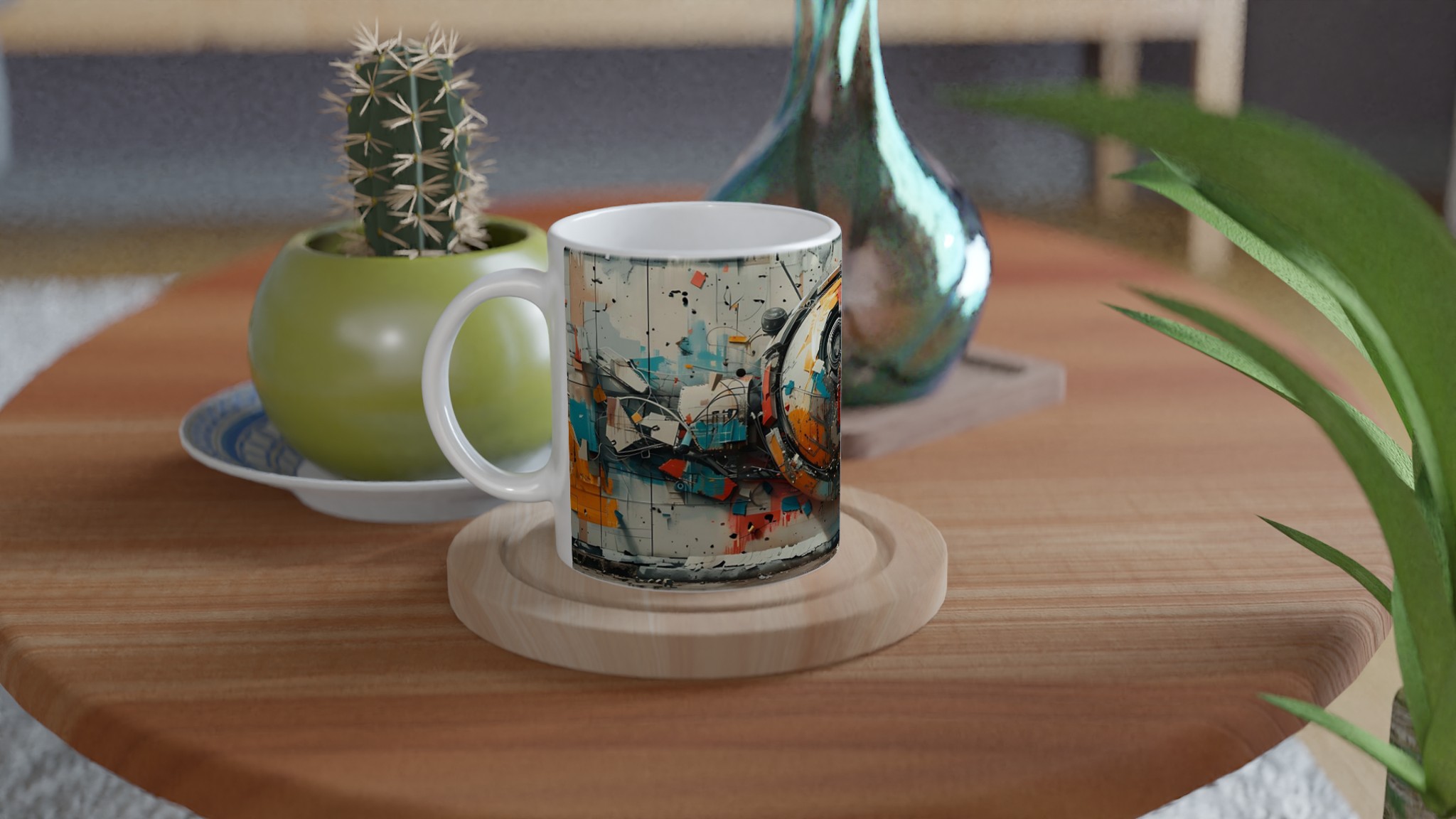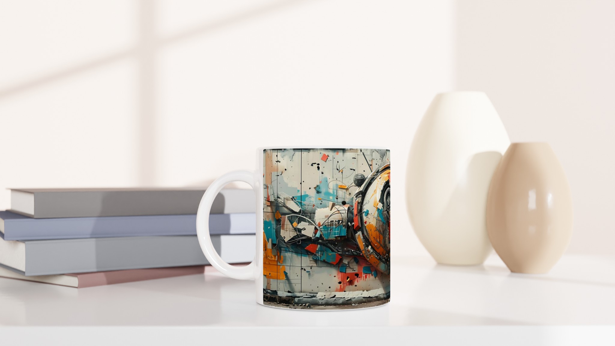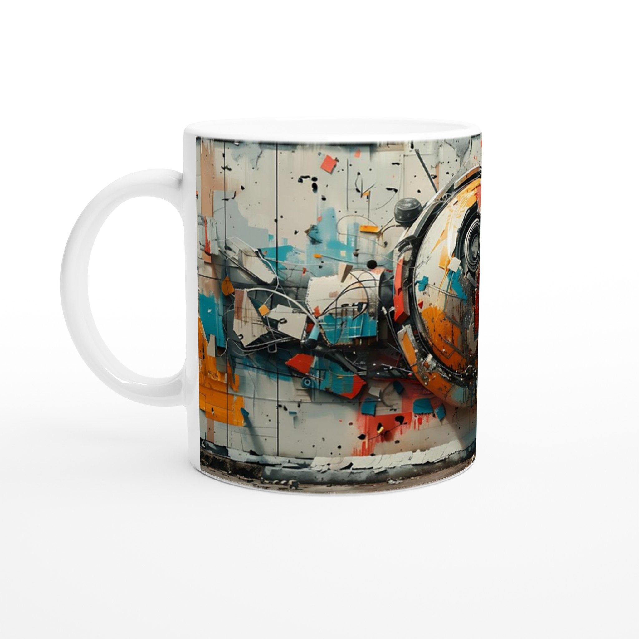 Abstract Urban Industrial Art Ceramic Mug – Unique Gift in Your Choice of 7 Vibrant Colors