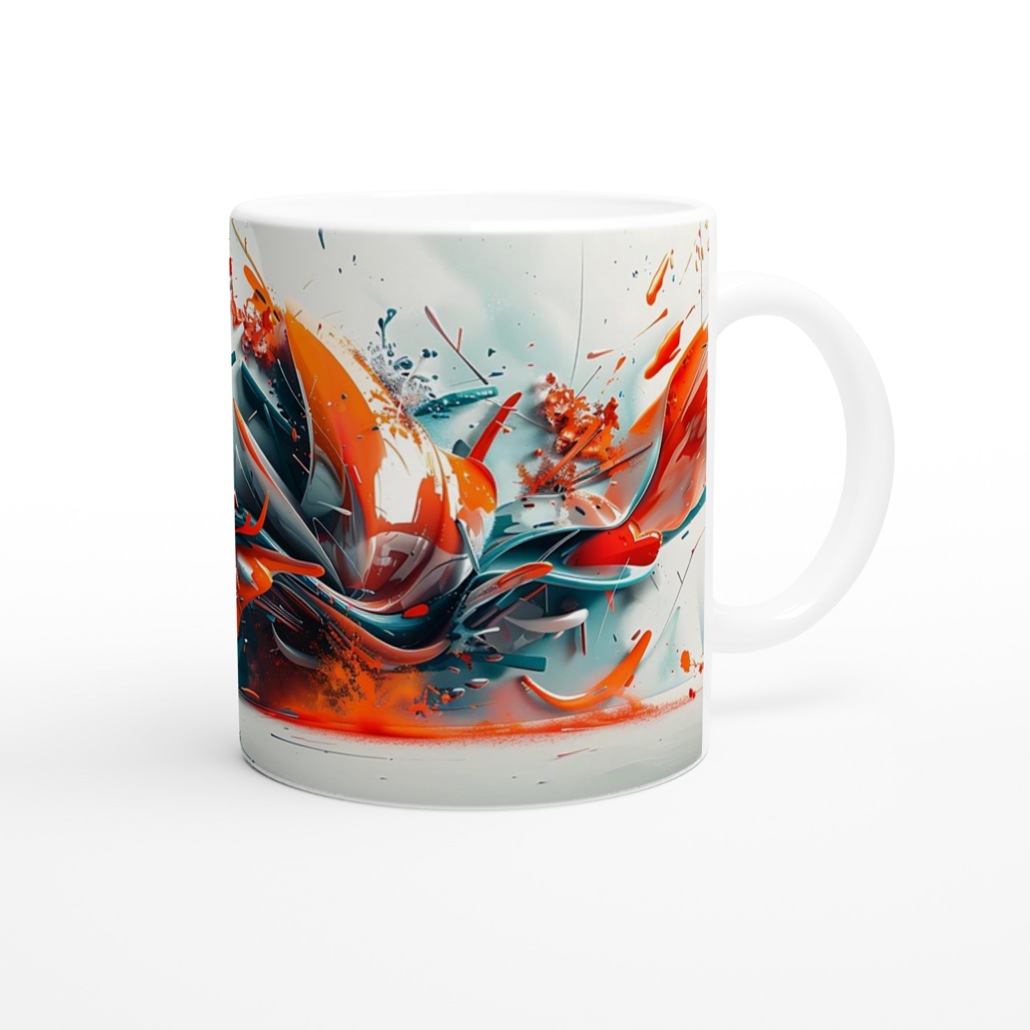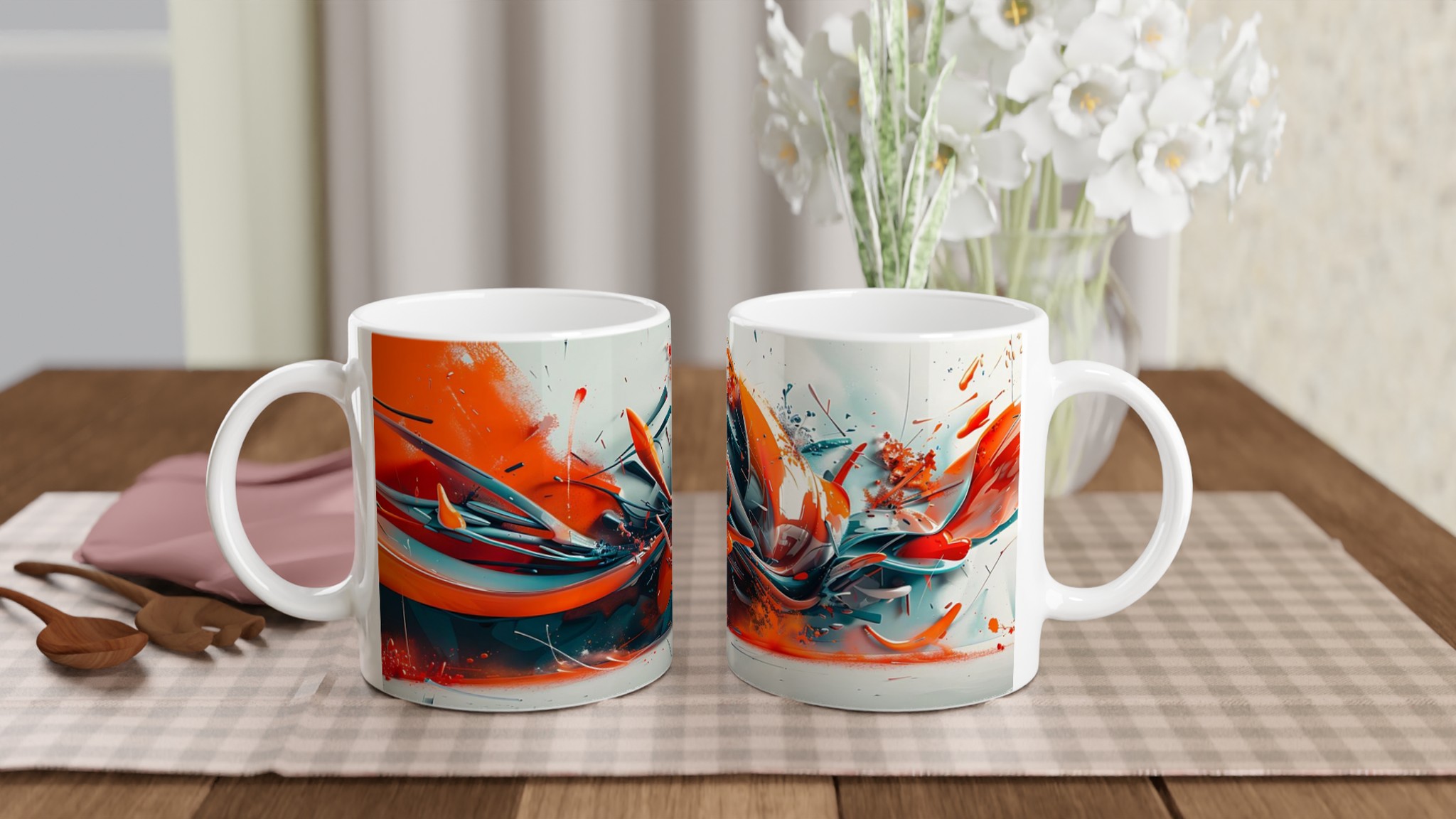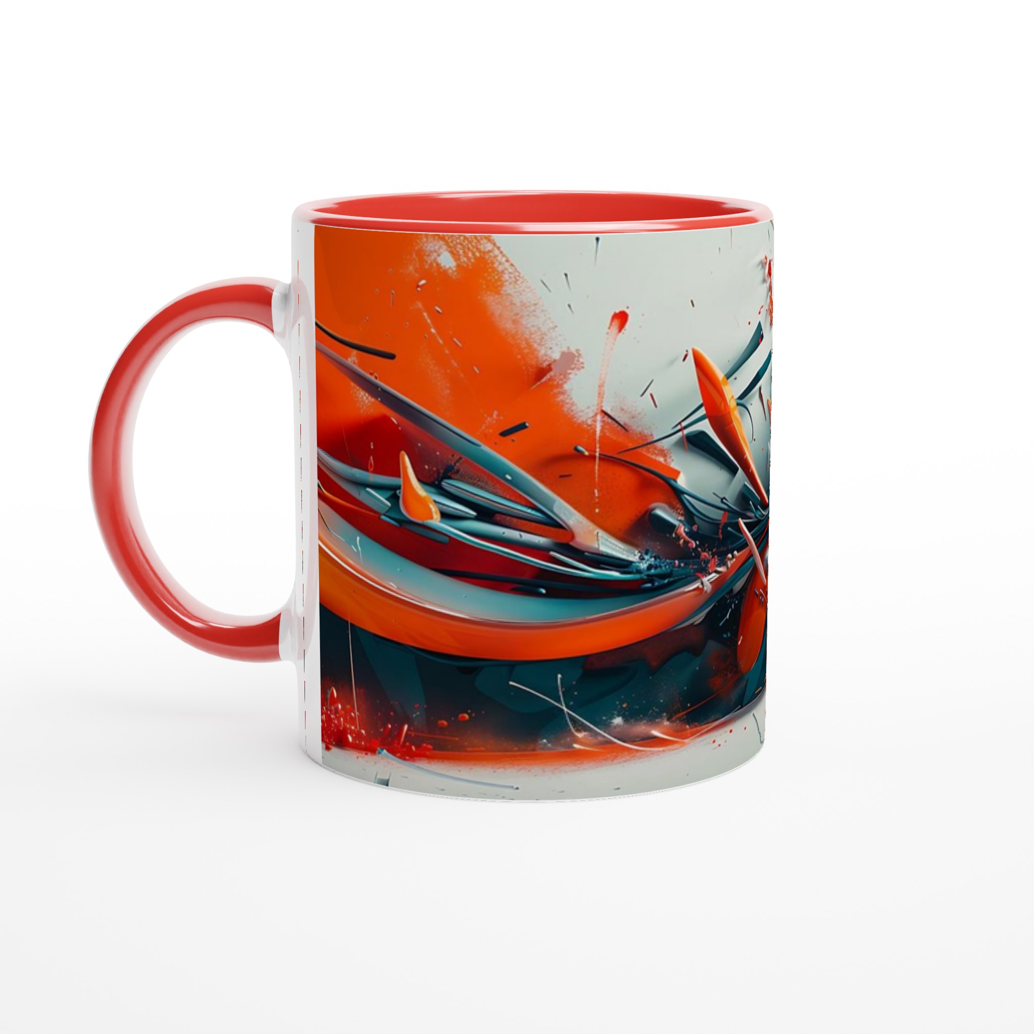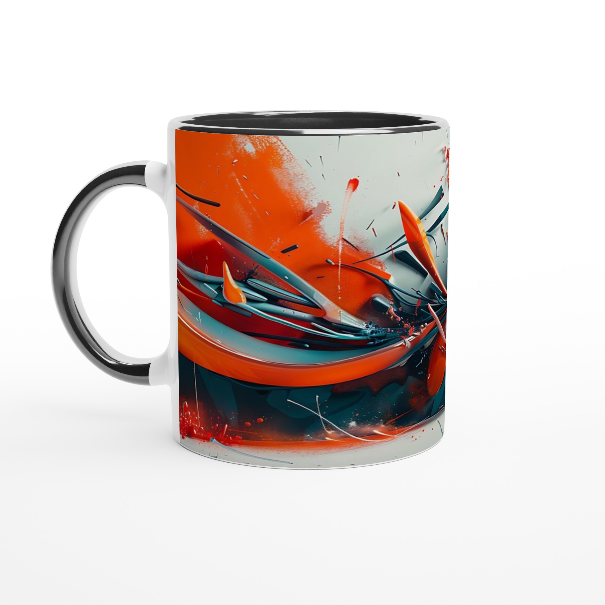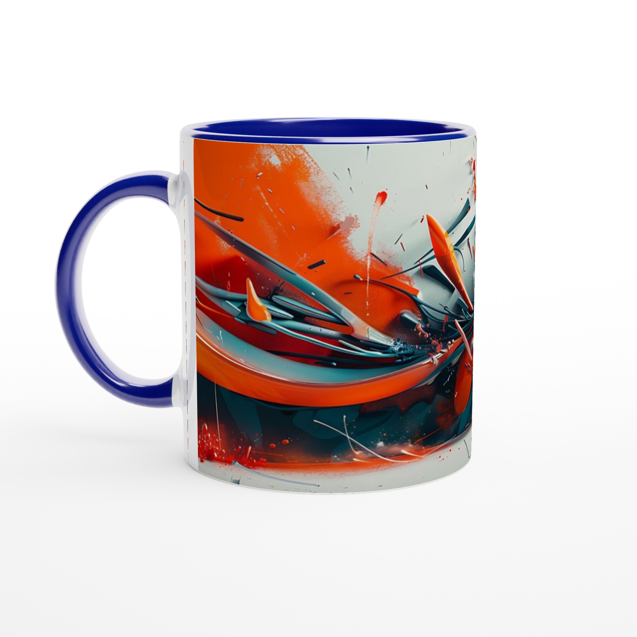 Abstract Flow Ceramic Mug – Vibrant Orange & Teal Art in Your Choice of Seven Hues